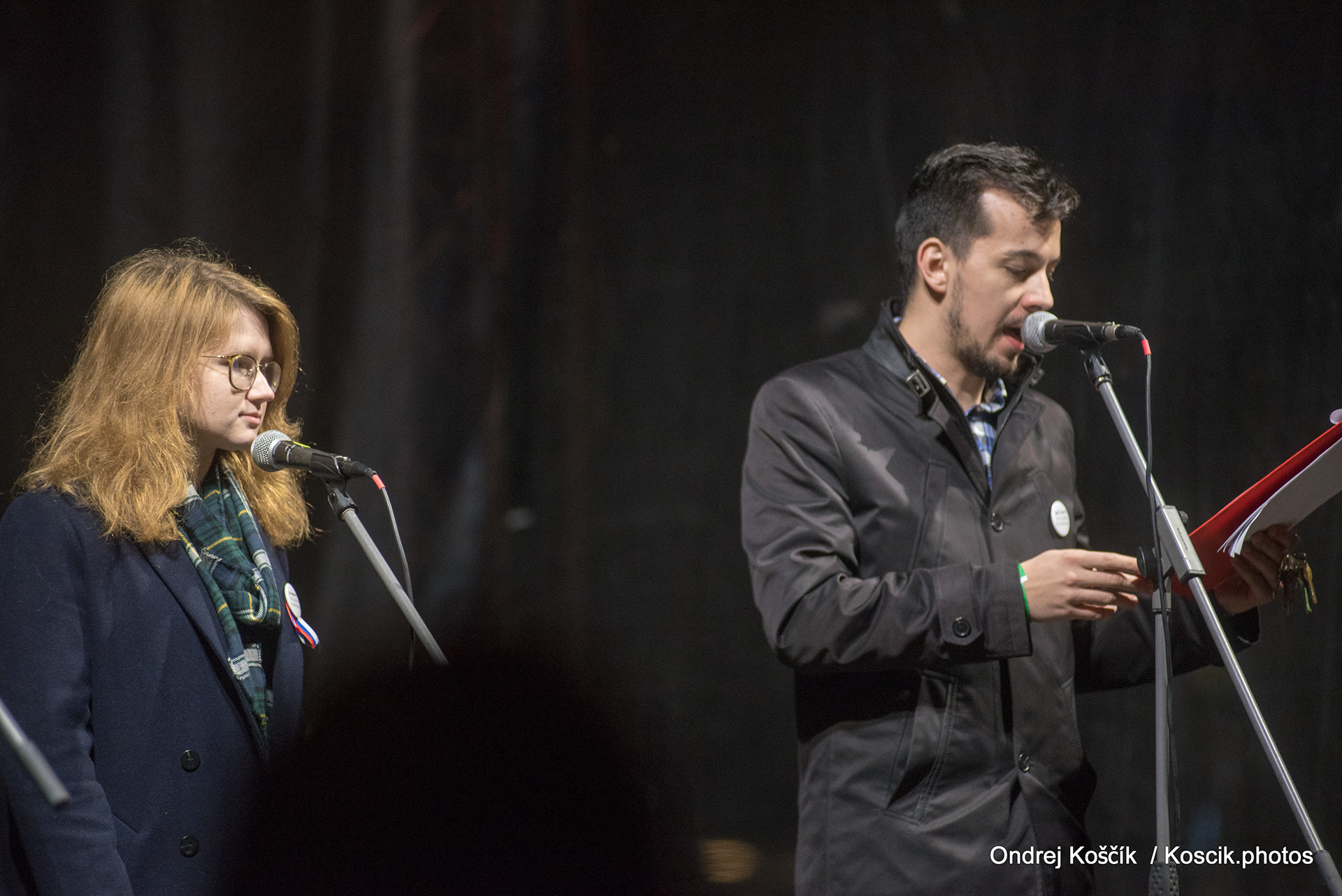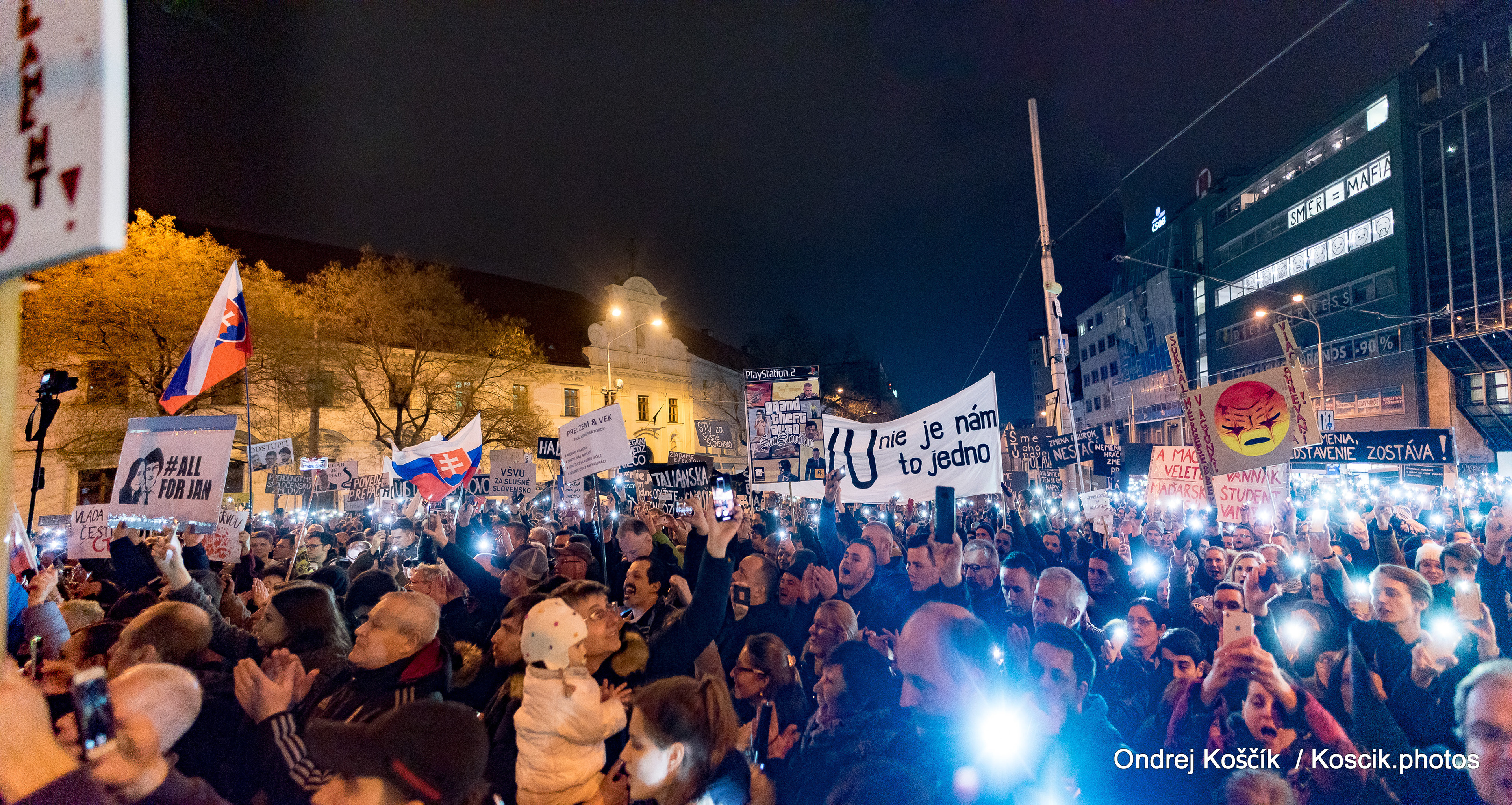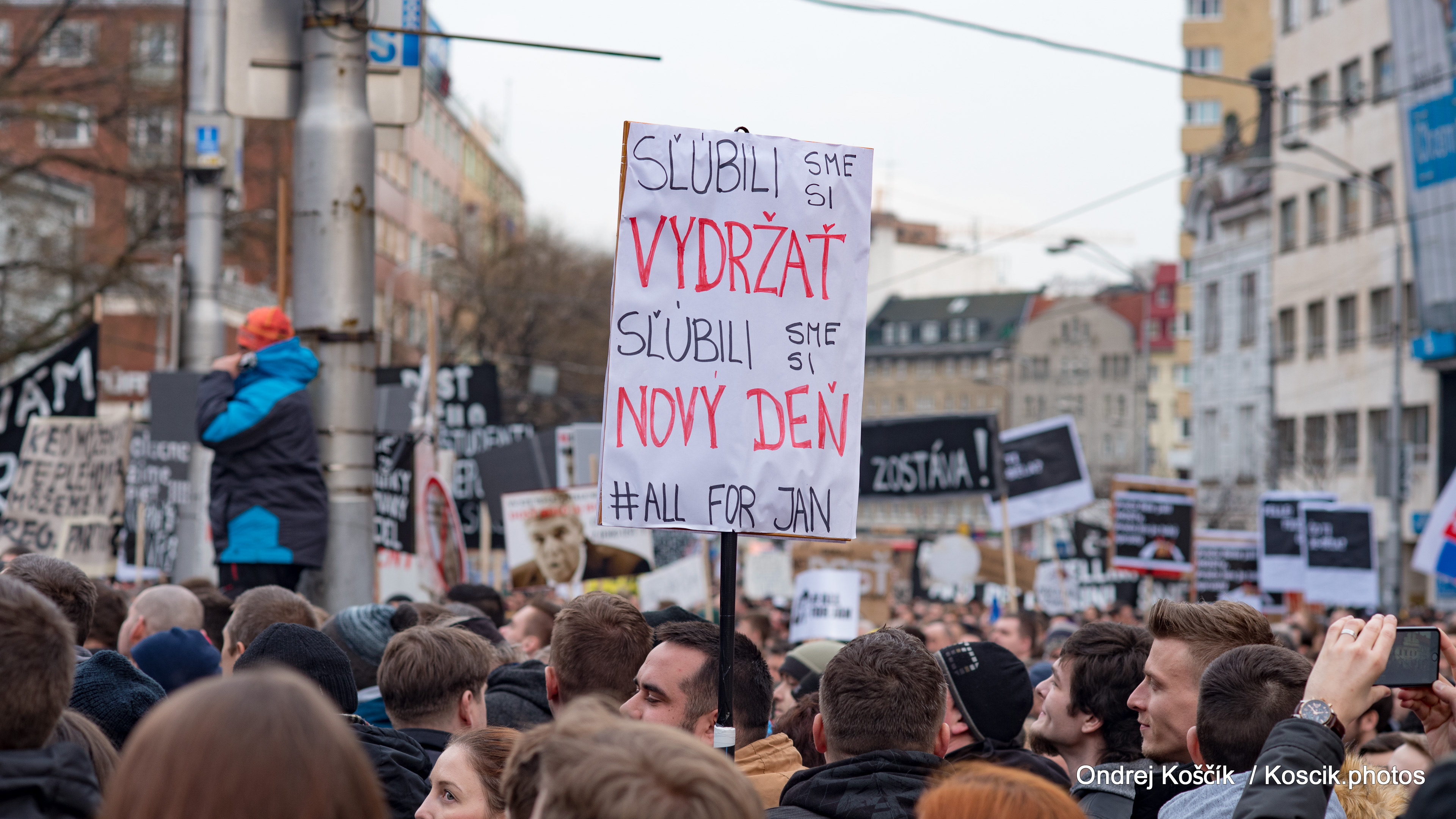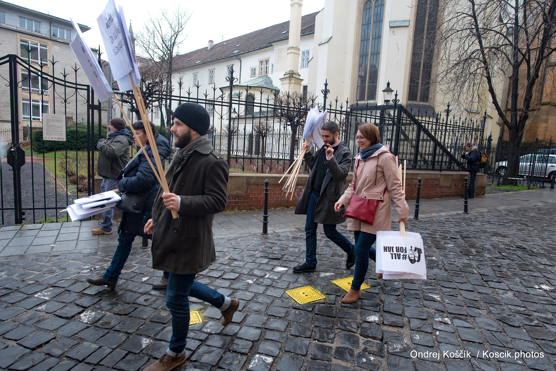 #allforjan With colleagues from the Bridge - English language centre at the second of protests following the murder of the journalist Ján Kuciak and his fiancée Martina Kušnírová.