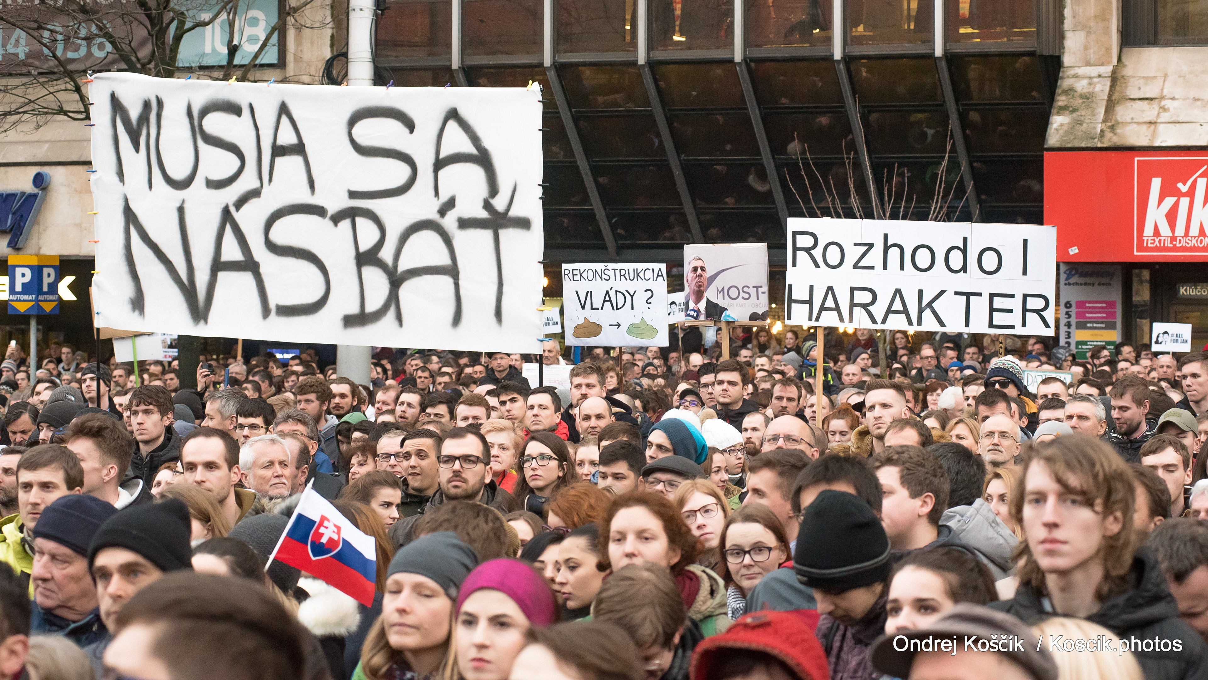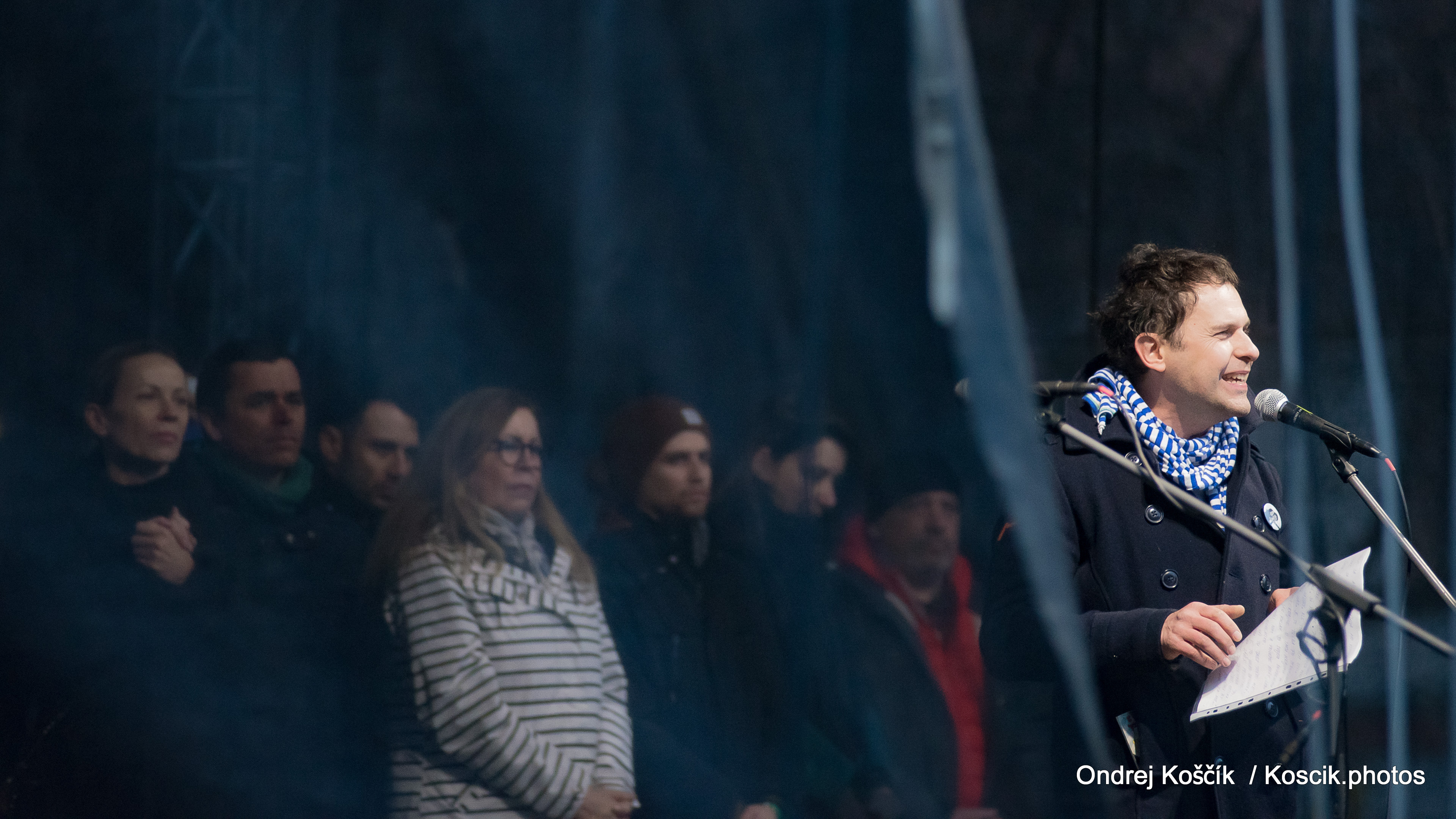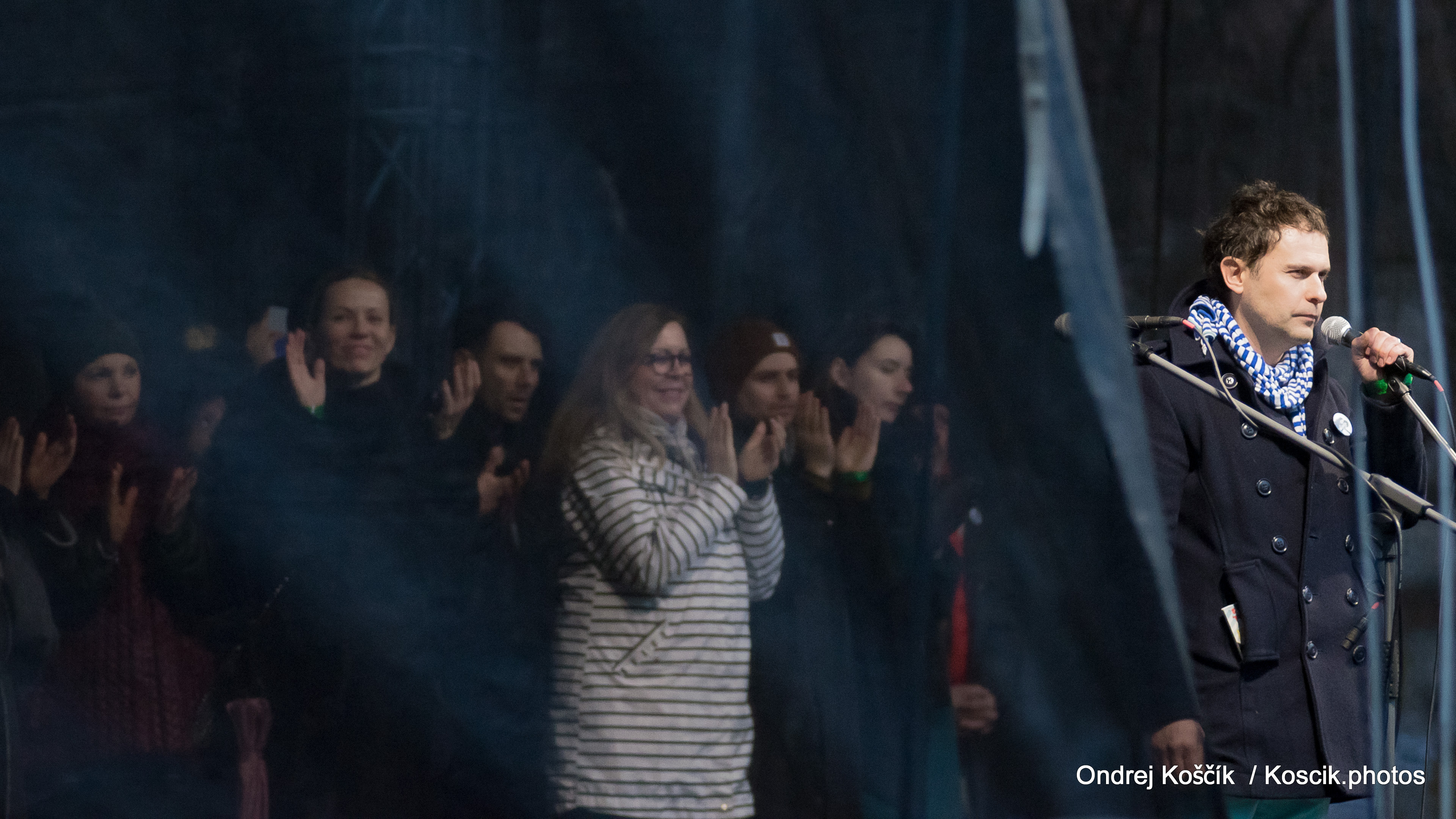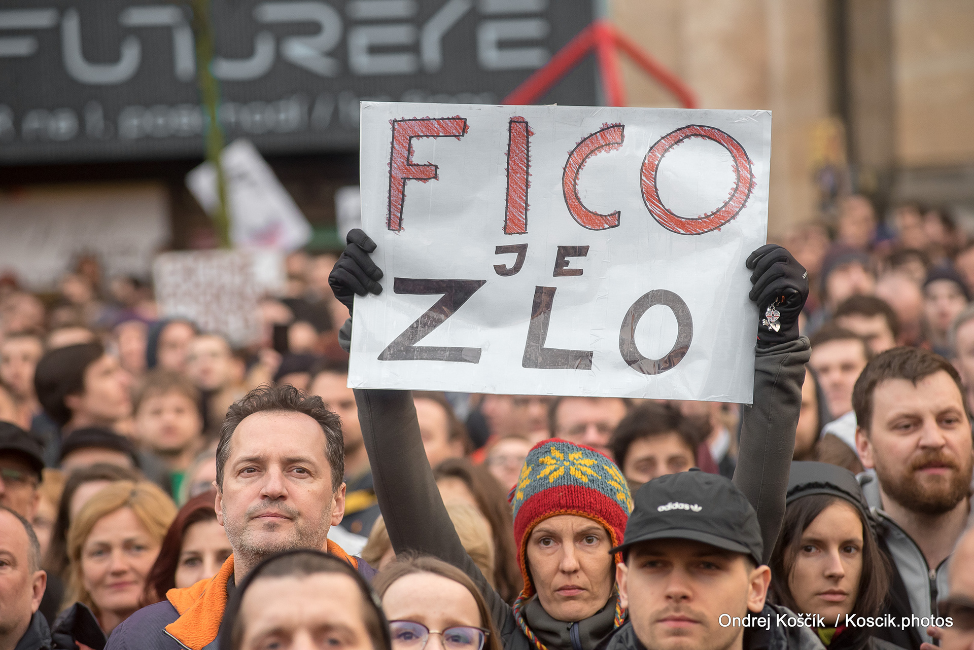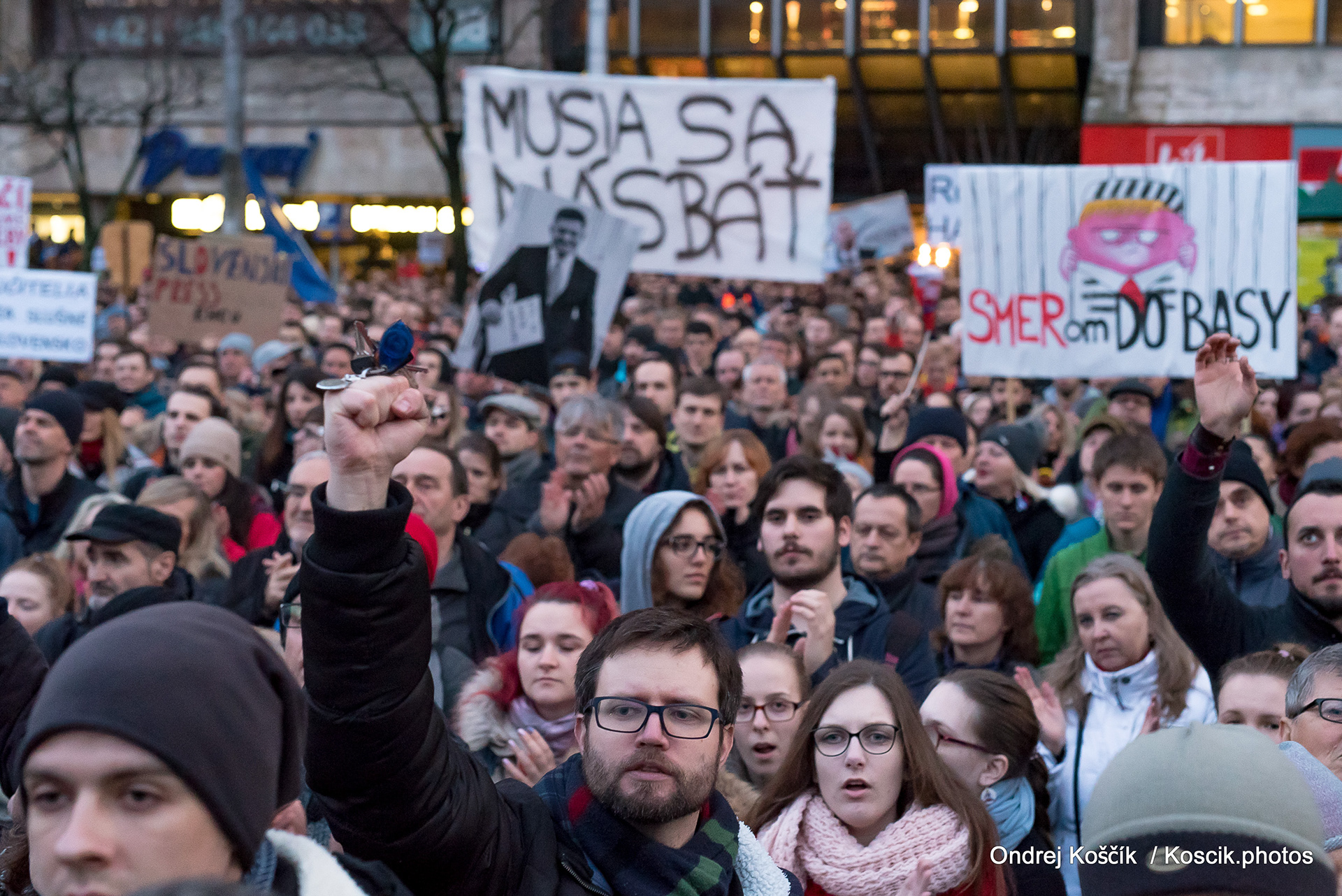 #allforjan With colleagues from the Bridge - English language centre at the second of protests following the murder of the journalist Ján Kuciak and his fiancée Martina Kušnírová.