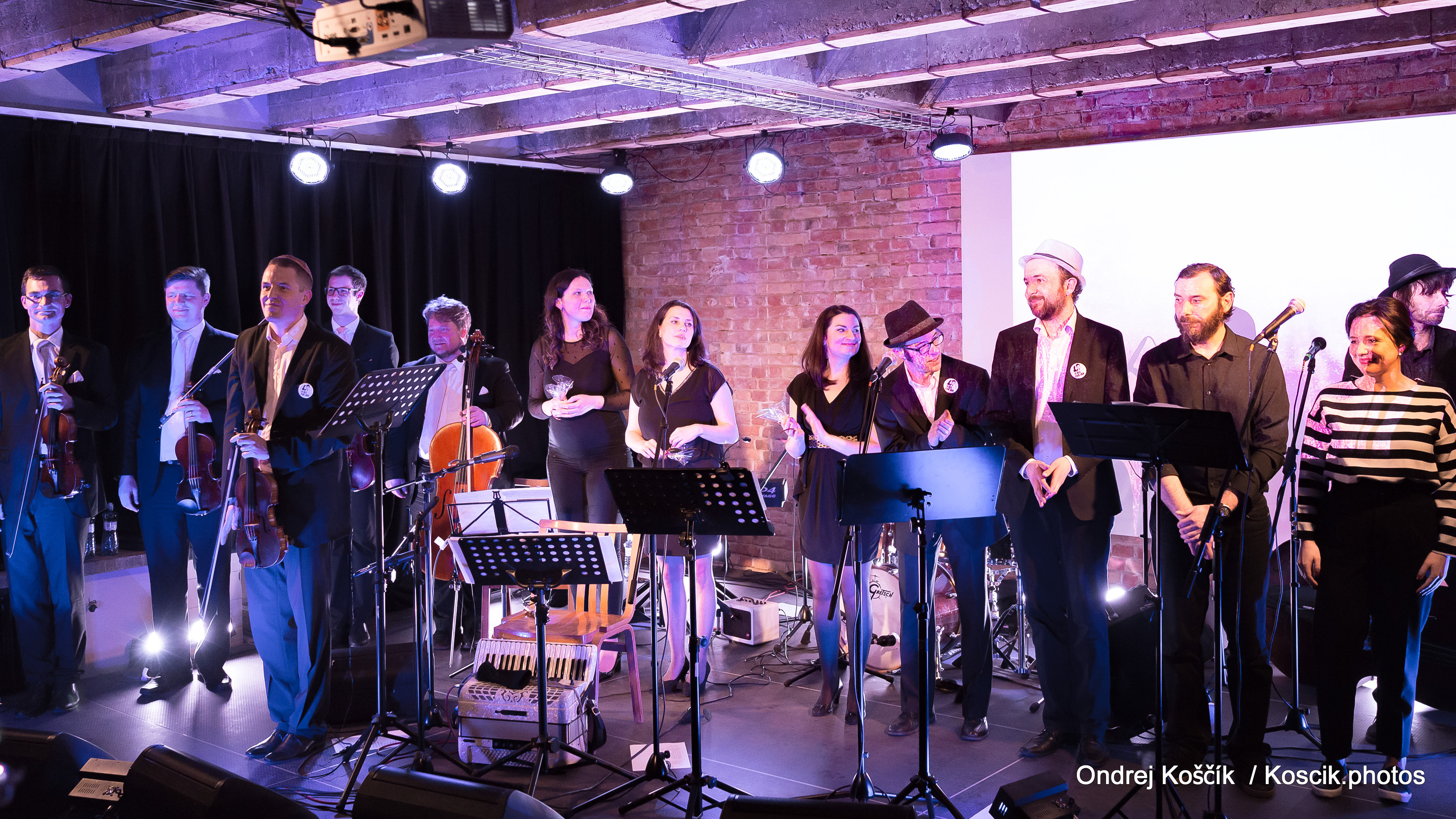 Preßburger Klezmer Band introducing their haunting album of ballads, Baladen in Nová Cvernovka, Bratislava with help of Ľubica Čekovská, Robert Pospiš, Martin Sillay, Alena Heribanová, Mucha Kvartet & Miriam Rodriguez Brullová
