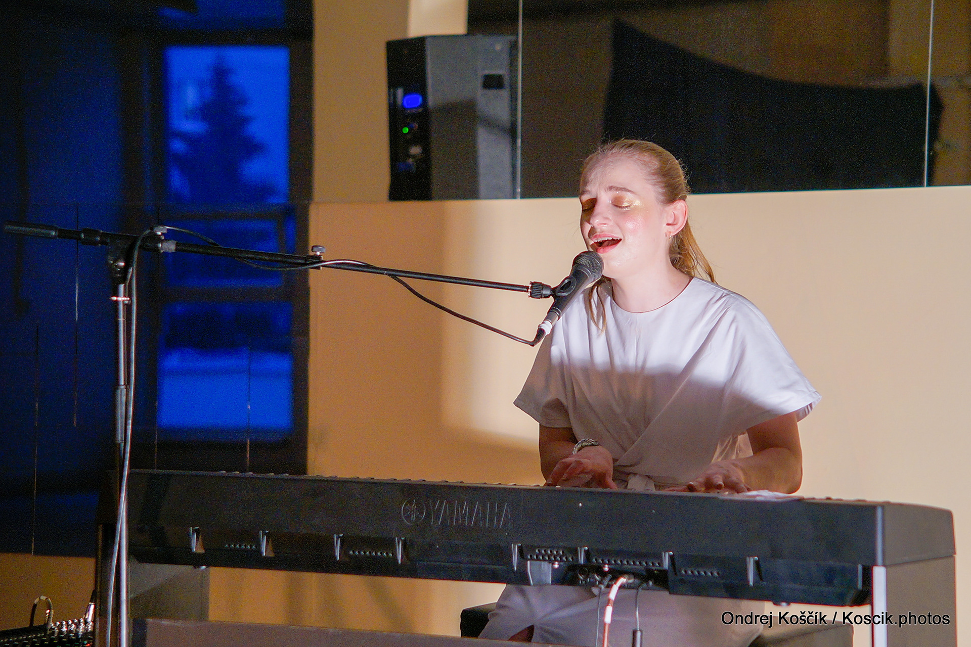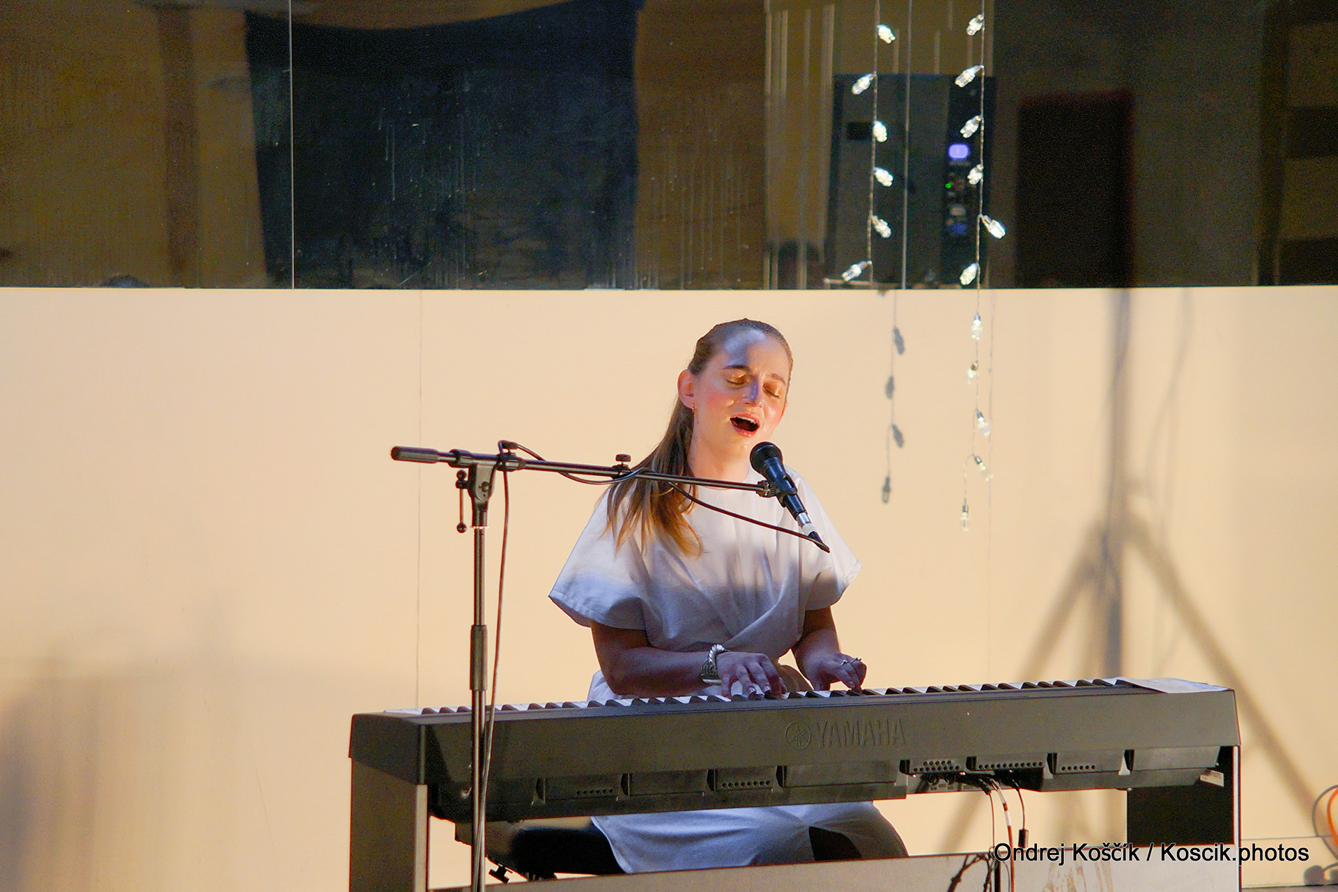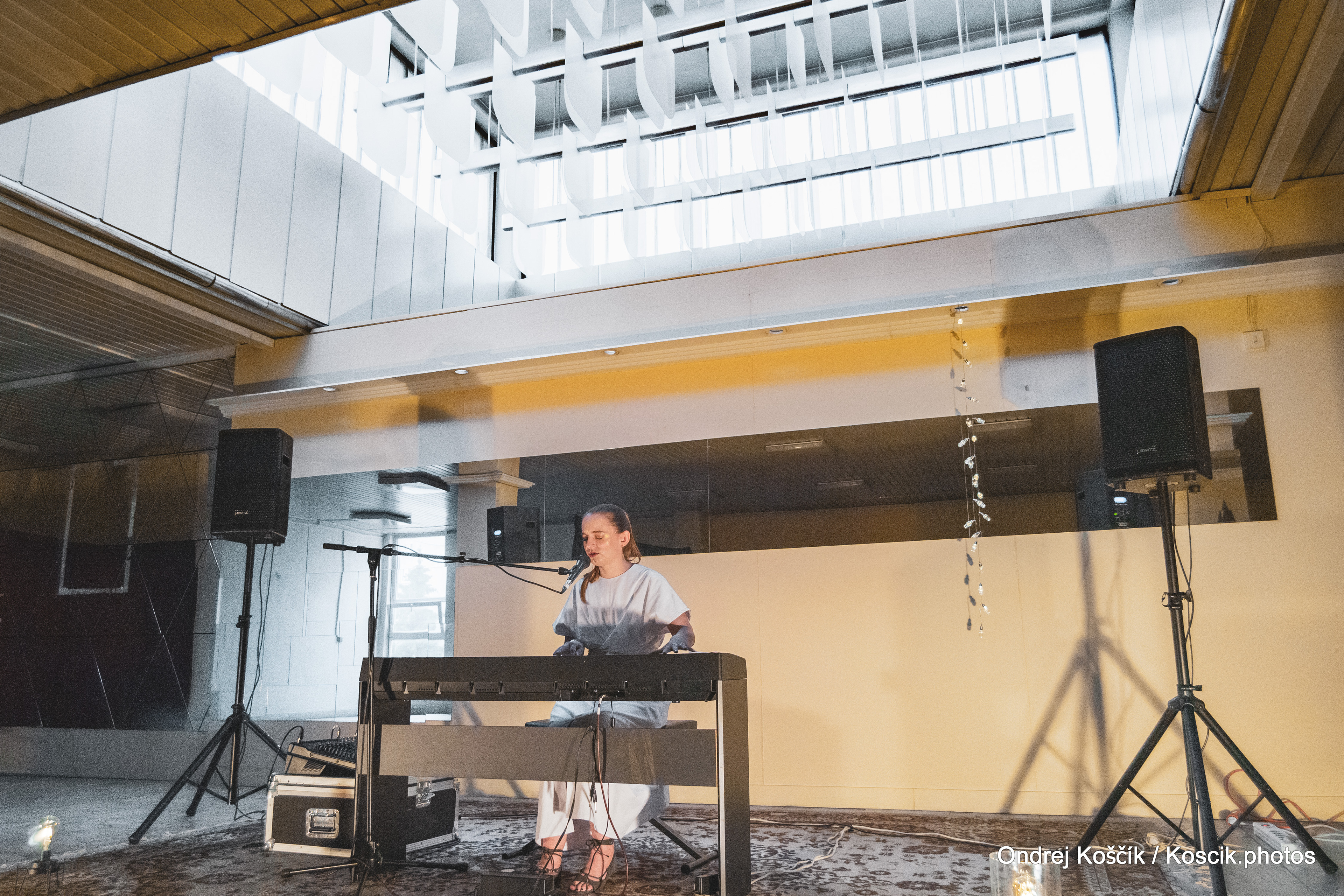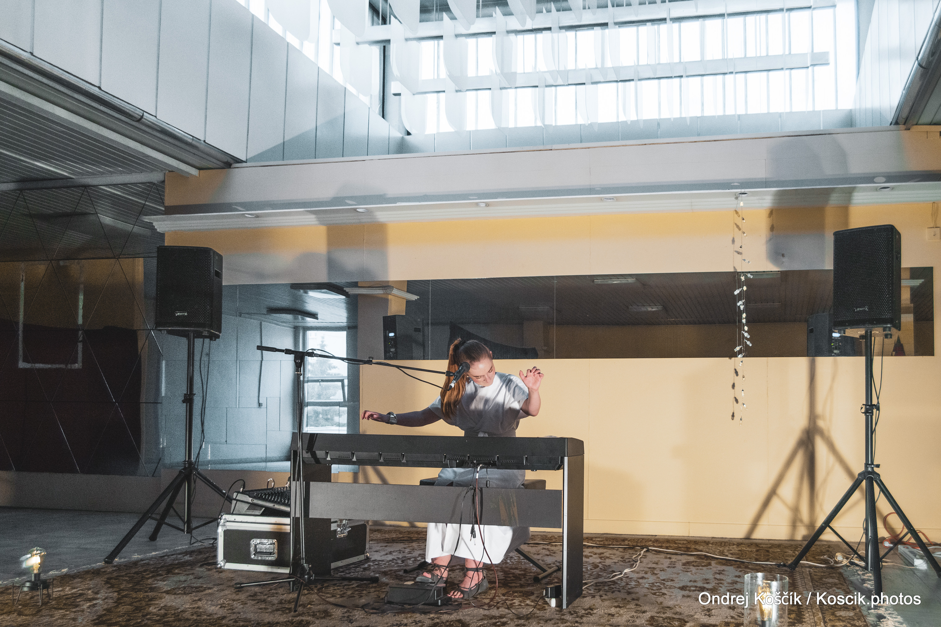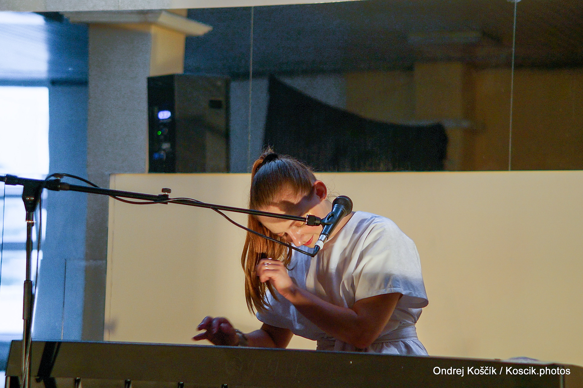 Katka Máliková v ŠUM - kníhkupectve a kultúrno-komunitnom centre v Trebišove „Jemná, zahmlená no veľmi silná spomienka na niečo, čo sa nestalo.“ Katarína Máliková (1990) pochádza z Polomky na Horehroní. Nahrala dva albumy: Pustvopol a Postalgia. Rolu speváčky a klaviristky strieda s tvorením originálnych skladieb a aranžmánov ľudových piesní. Žáner, ktorý tvorí, sa pohybuje na hrane artpopových kompozícií s nádychom baroque minimal a novej world music. Jej tvorba môže miestami znieť scénicky, alebo kinematograficky. Na svojom v poradí druhom albume prekračuje hranice žánru world music a posúva sa do nových, pre ňu neprebádaných zdrojov zvuku. Fotky vznikli aj s podporou štipendia Fondu na podporu umenia.