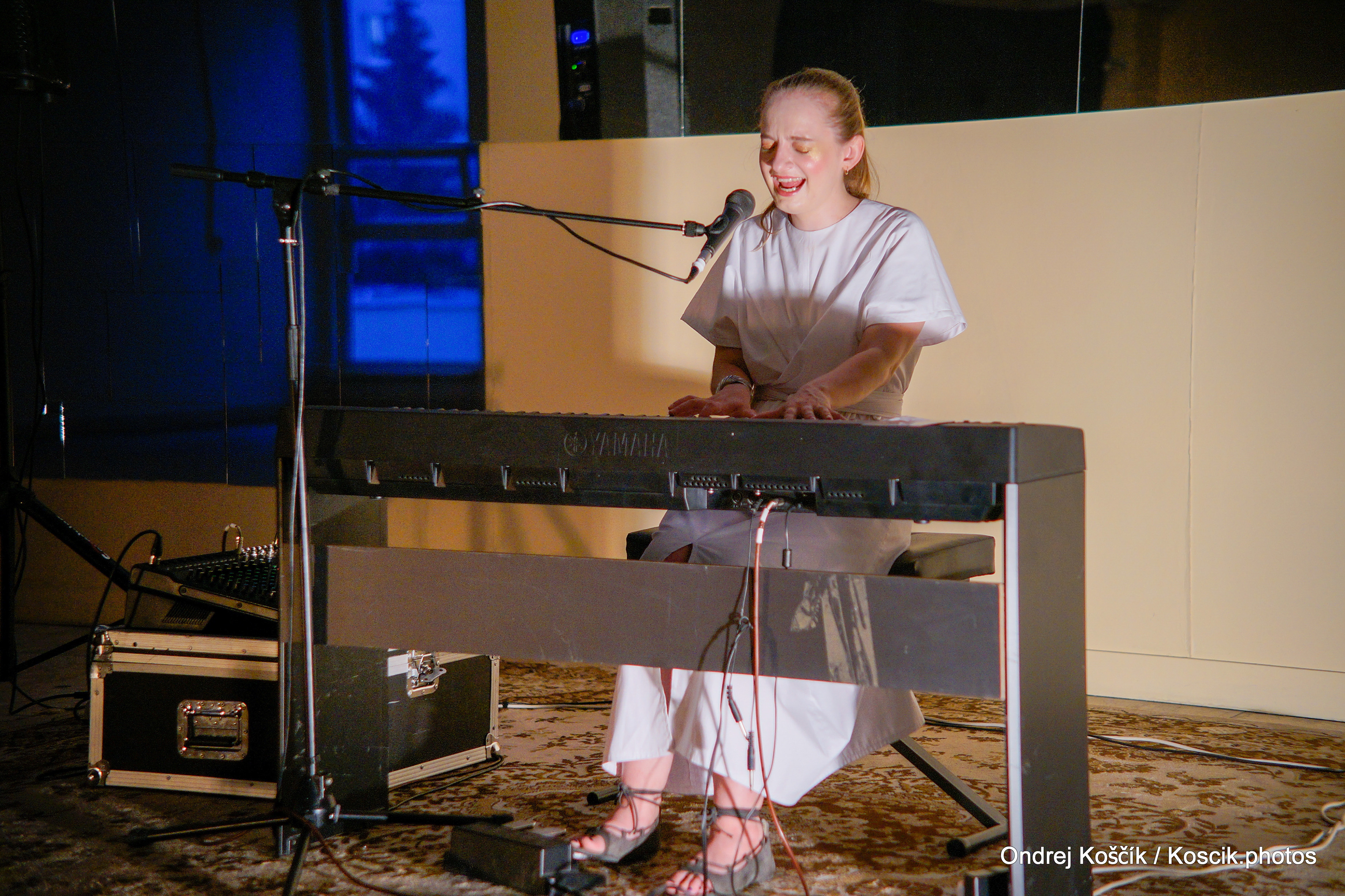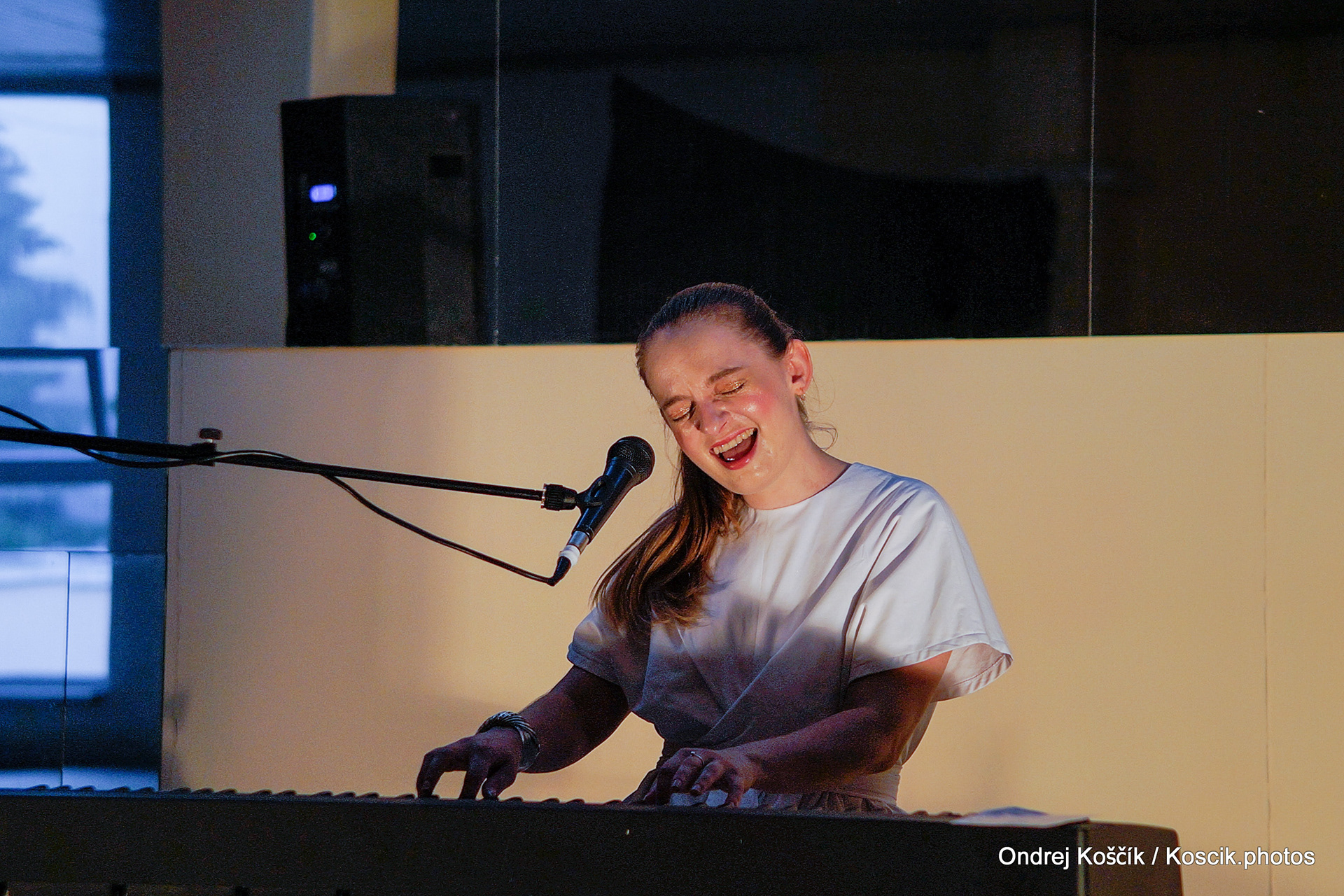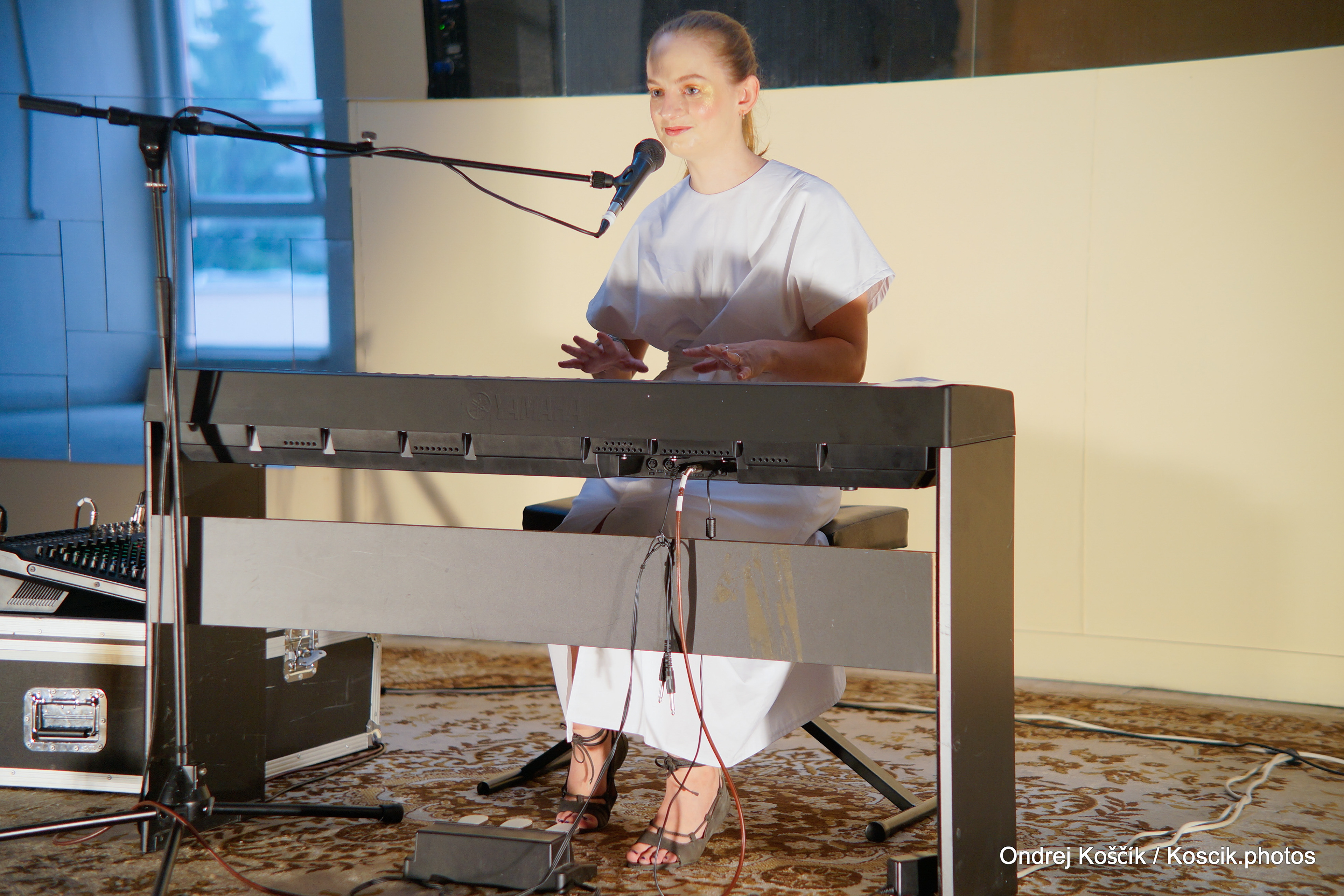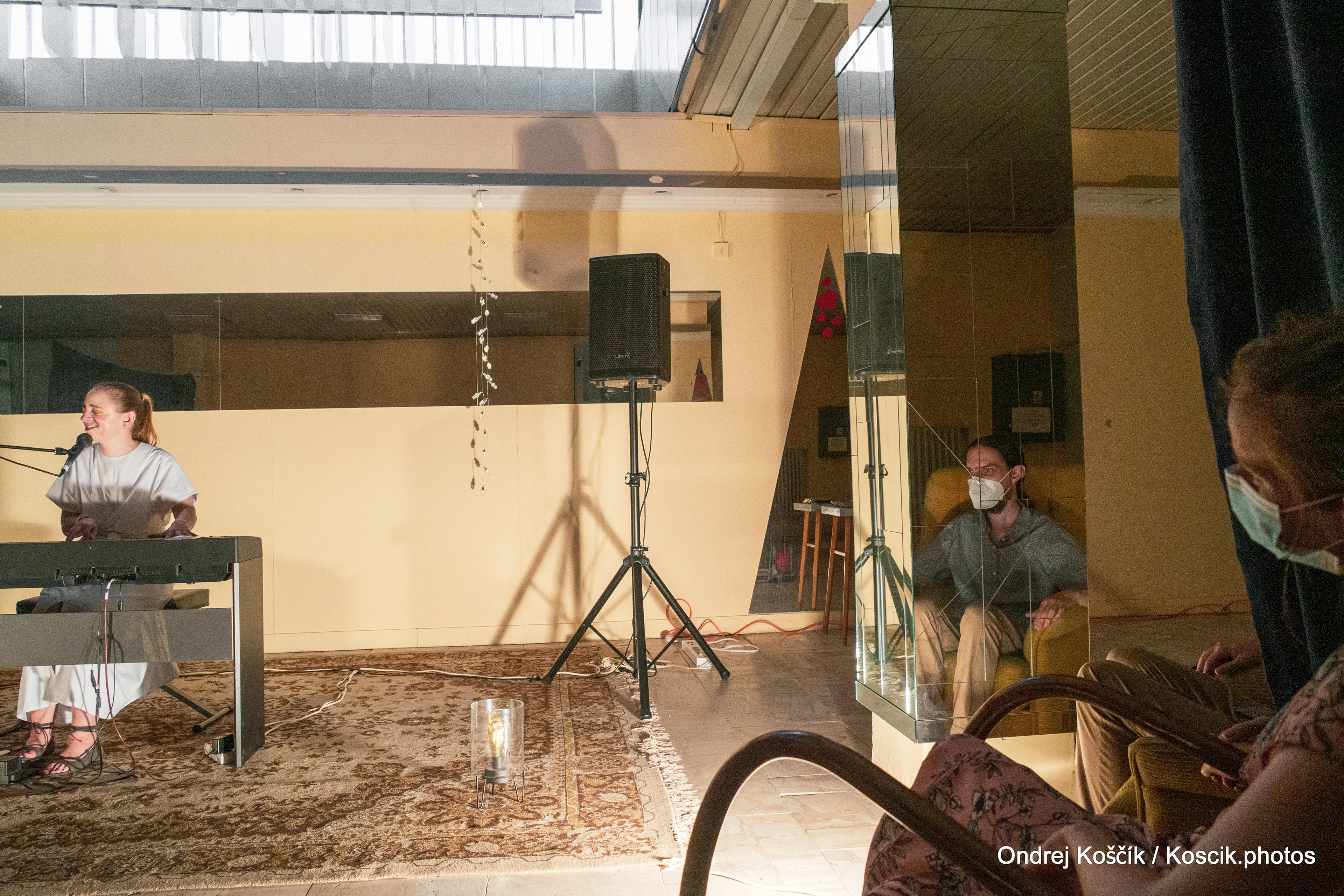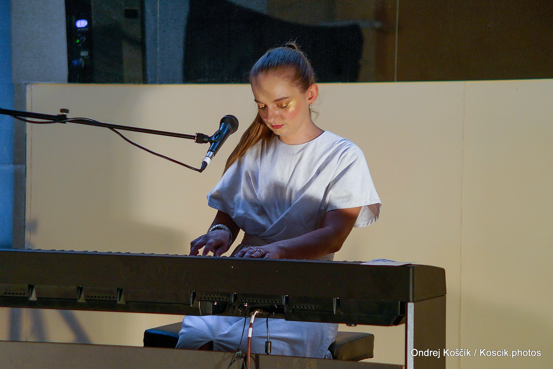 Katka Máliková v ŠUM - kníhkupectve a kultúrno-komunitnom centre v Trebišove „Jemná, zahmlená no veľmi silná spomienka na niečo, čo sa nestalo.“ Katarína Máliková (1990) pochádza z Polomky na Horehroní. Nahrala dva albumy: Pustvopol a Postalgia. Rolu speváčky a klaviristky strieda s tvorením originálnych skladieb a aranžmánov ľudových piesní. Žáner, ktorý tvorí, sa pohybuje na hrane artpopových kompozícií s nádychom baroque minimal a novej world music. Jej tvorba môže miestami znieť scénicky, alebo kinematograficky. Na svojom v poradí druhom albume prekračuje hranice žánru world music a posúva sa do nových, pre ňu neprebádaných zdrojov zvuku. Fotky vznikli aj s podporou štipendia Fondu na podporu umenia.