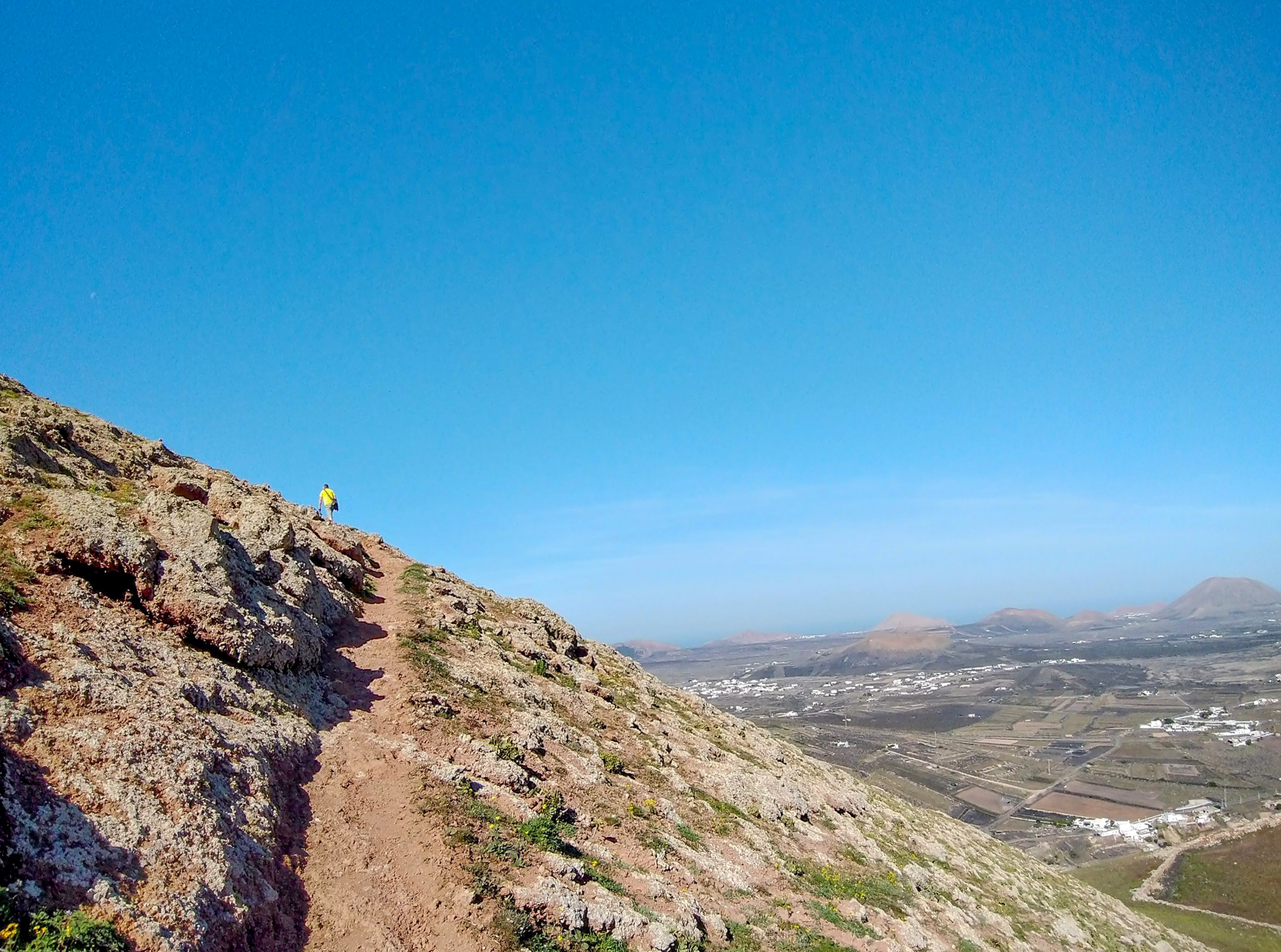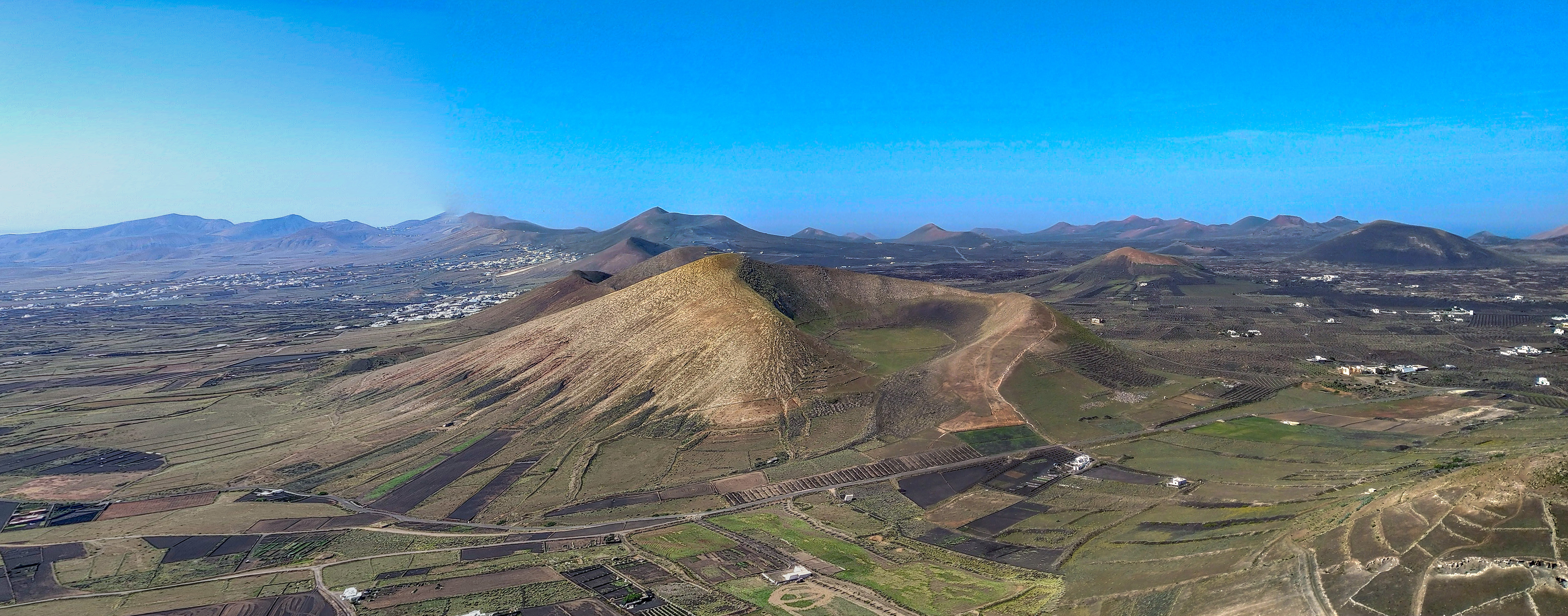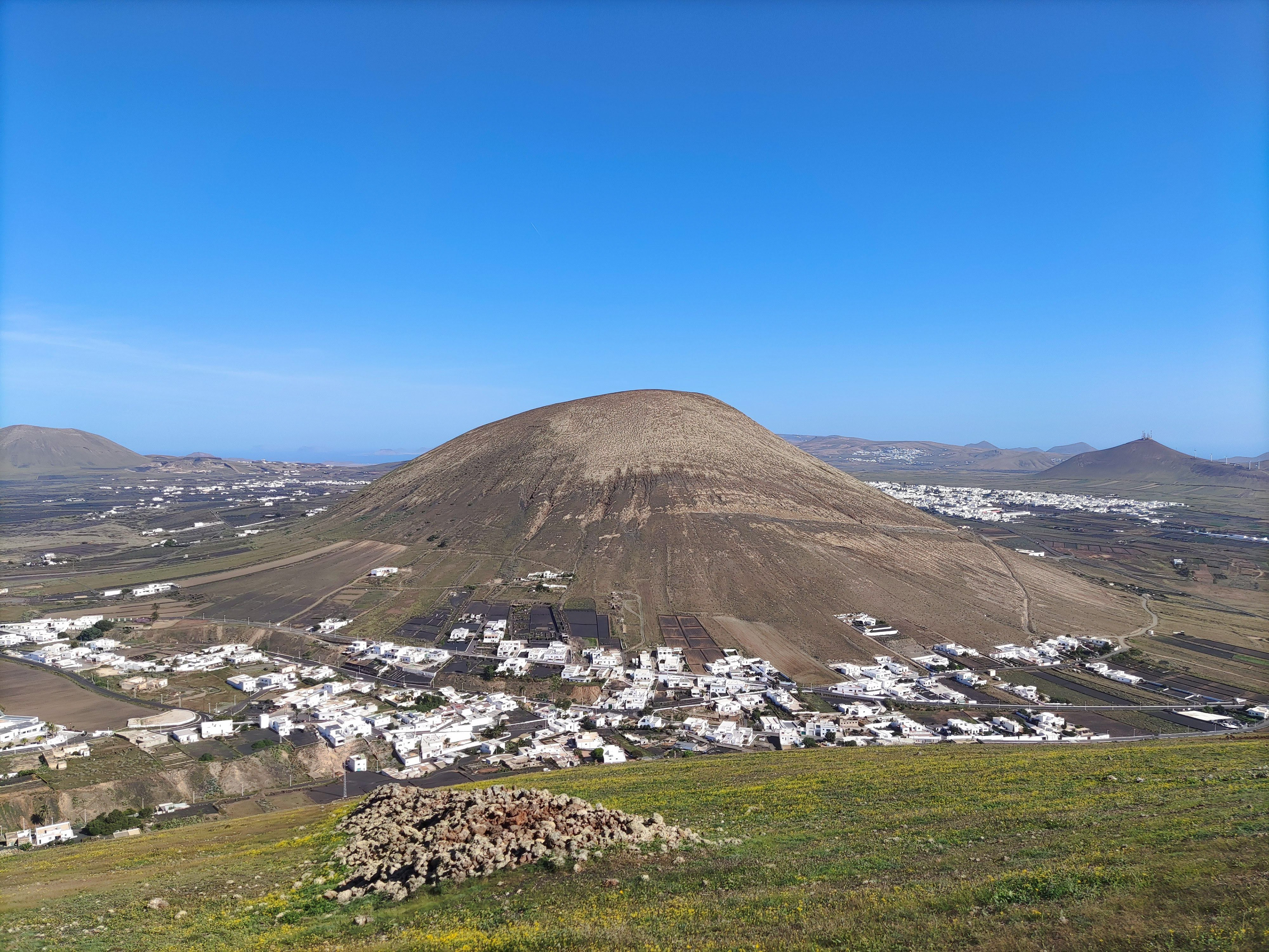 At 595m Montaña Blanca is one of the highest volcanoes on Lanzarote. After Montaña de Guardilama it is the second highest mountain of the San Bartolomé Chain and number six of the whole island. Its name - White Mountain - already indicates that it stands apart from all the blackness of the Montañas del Fuego nearby; a pale, perfectly structured volcano cone.