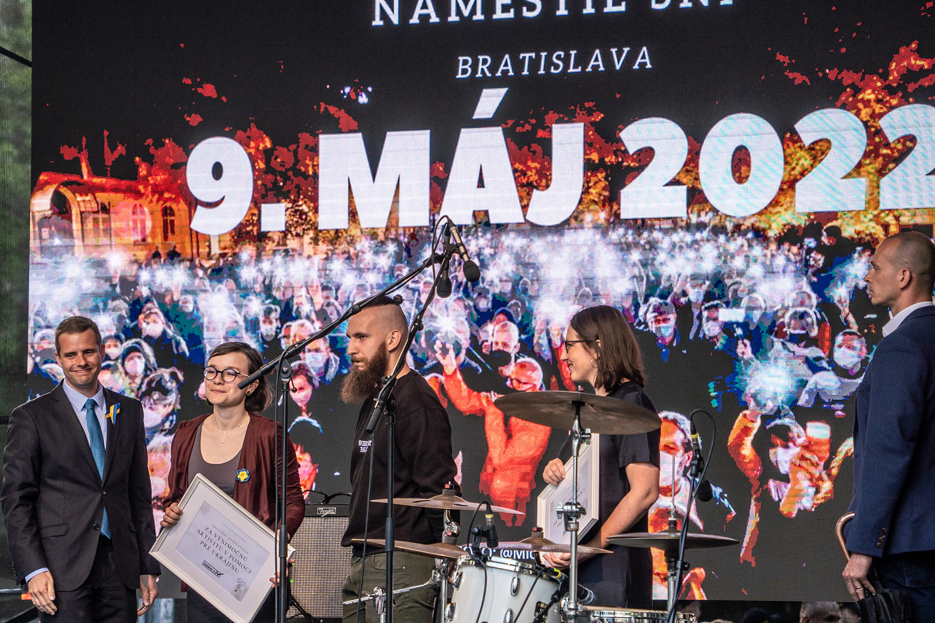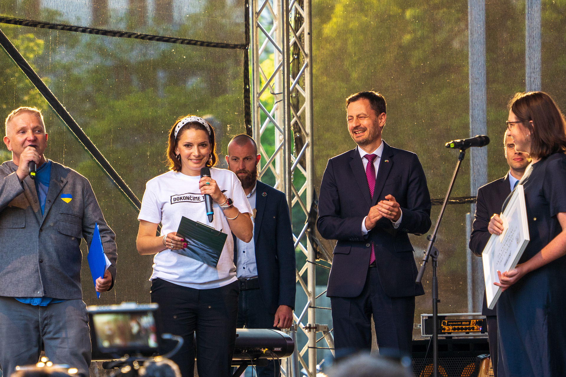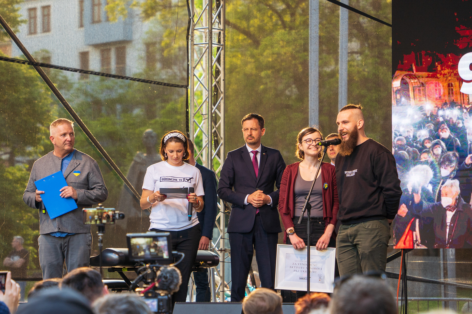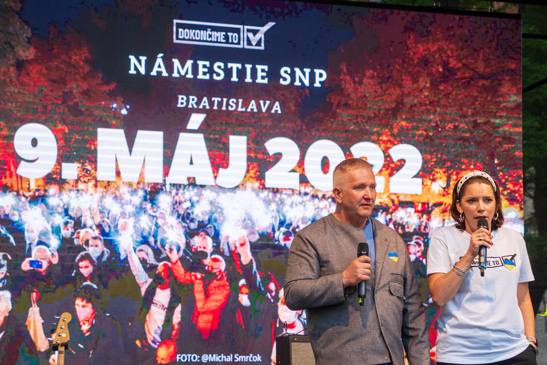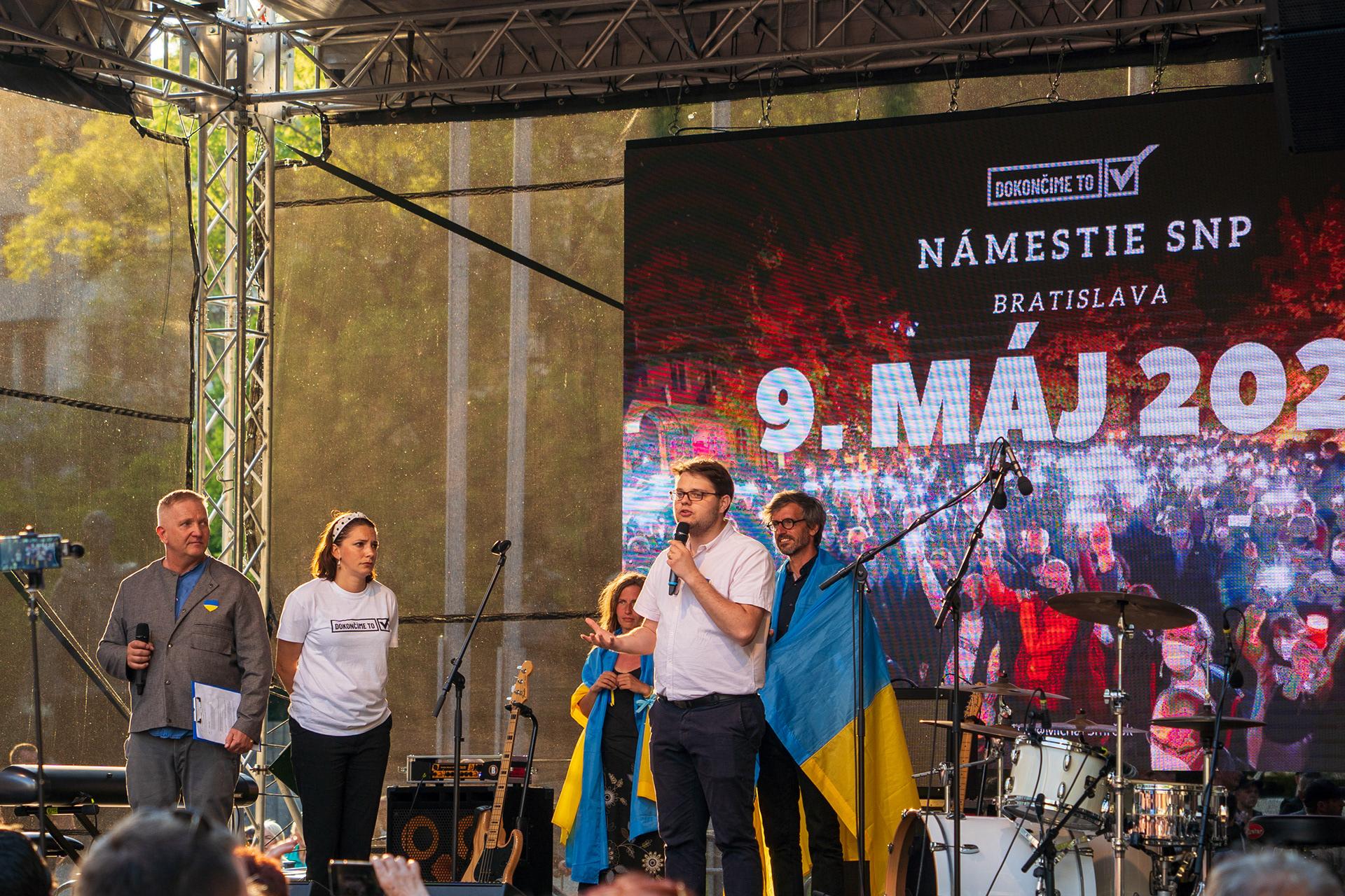 Malý návrat k veľkej iniciatíve - Dokončime to, Pomôžme Ukrajine, Mier Ukrajine, Človek v ohrození, Dobre, Dorota Nvotova, Korben Dallas, Eduard Heger - predseda vlády SR , Martin Klus, Daniel Milo a ďalší na námestí SNP 9. mája, Deň Európy