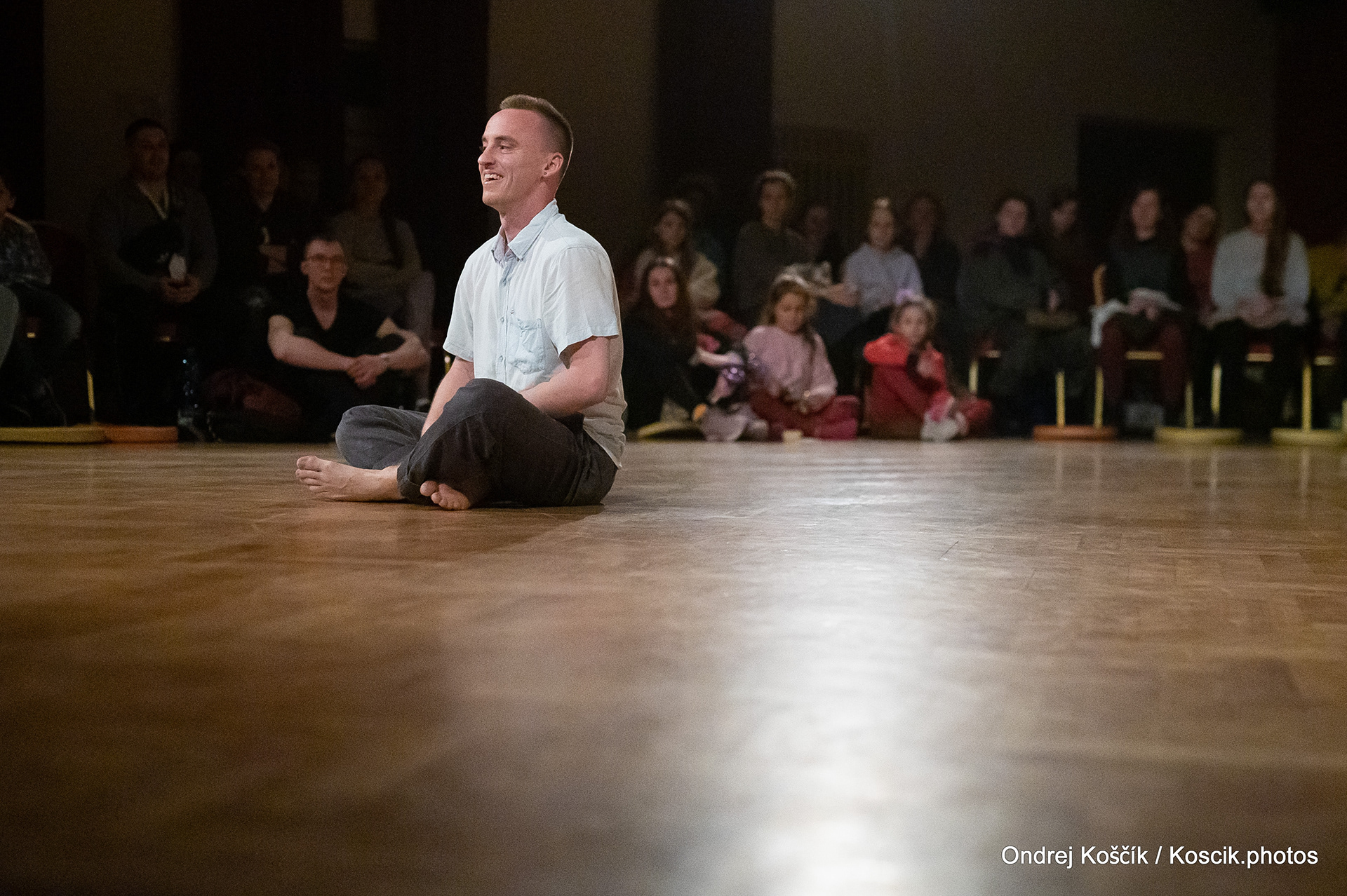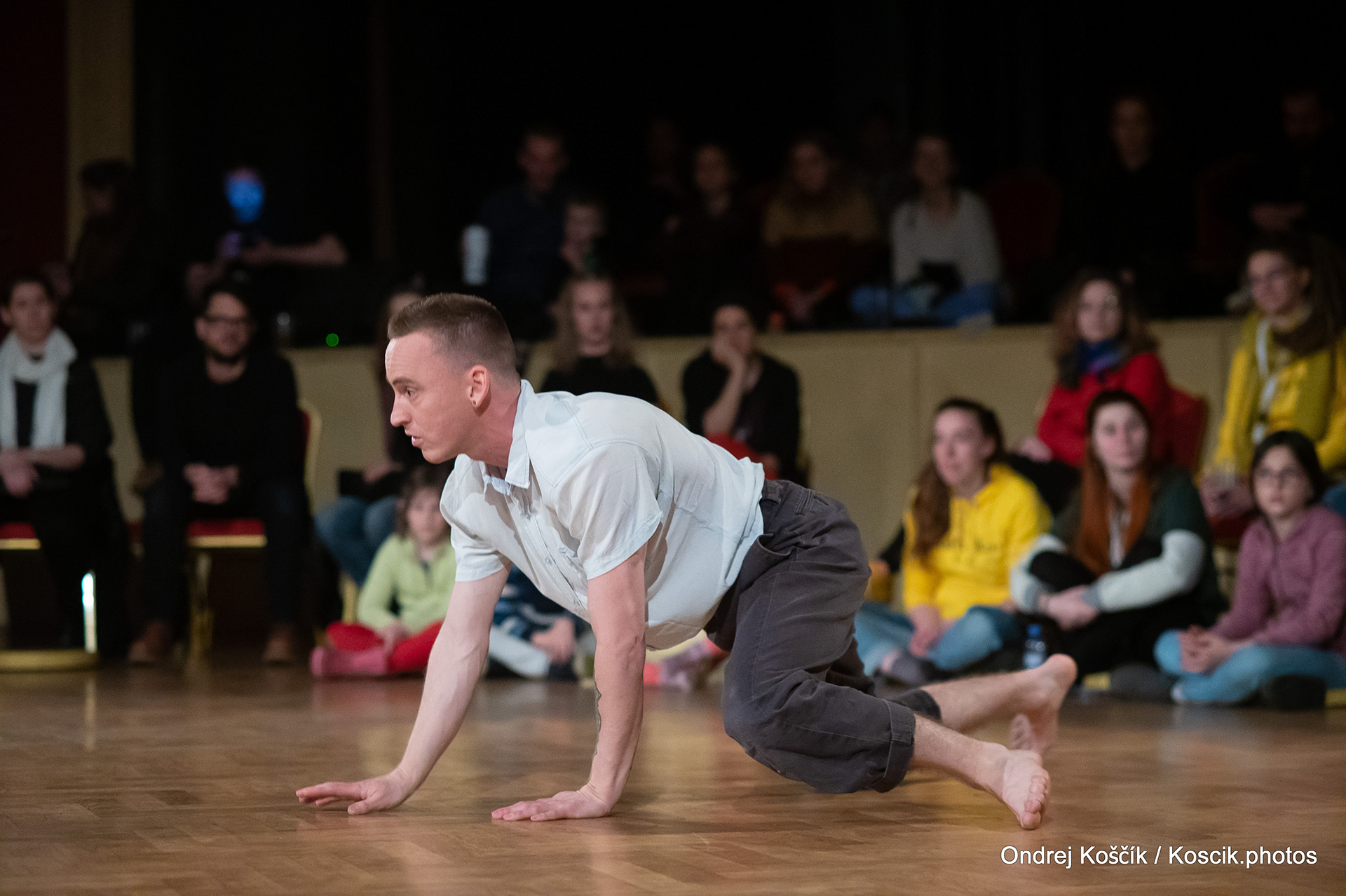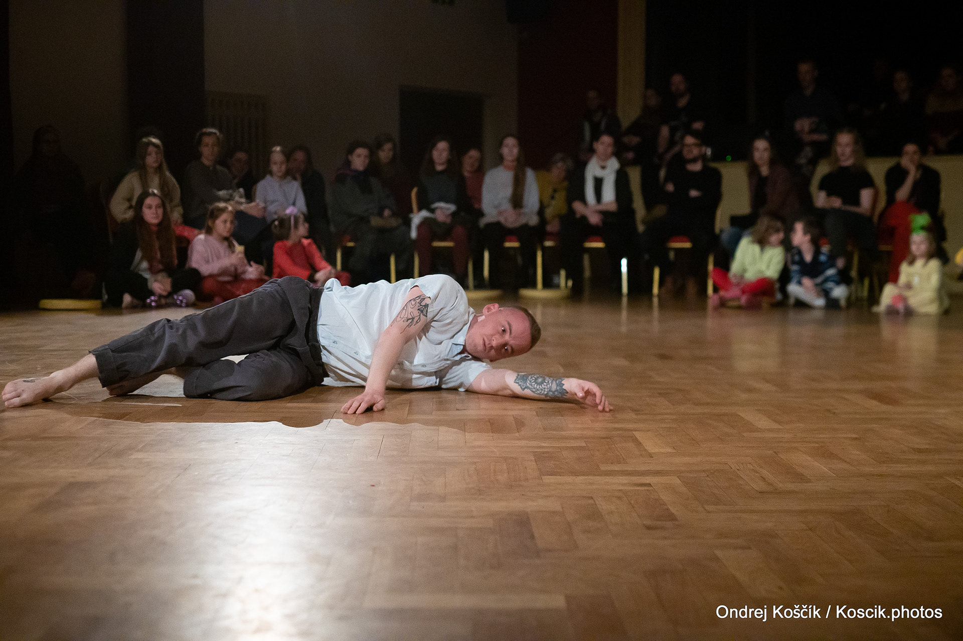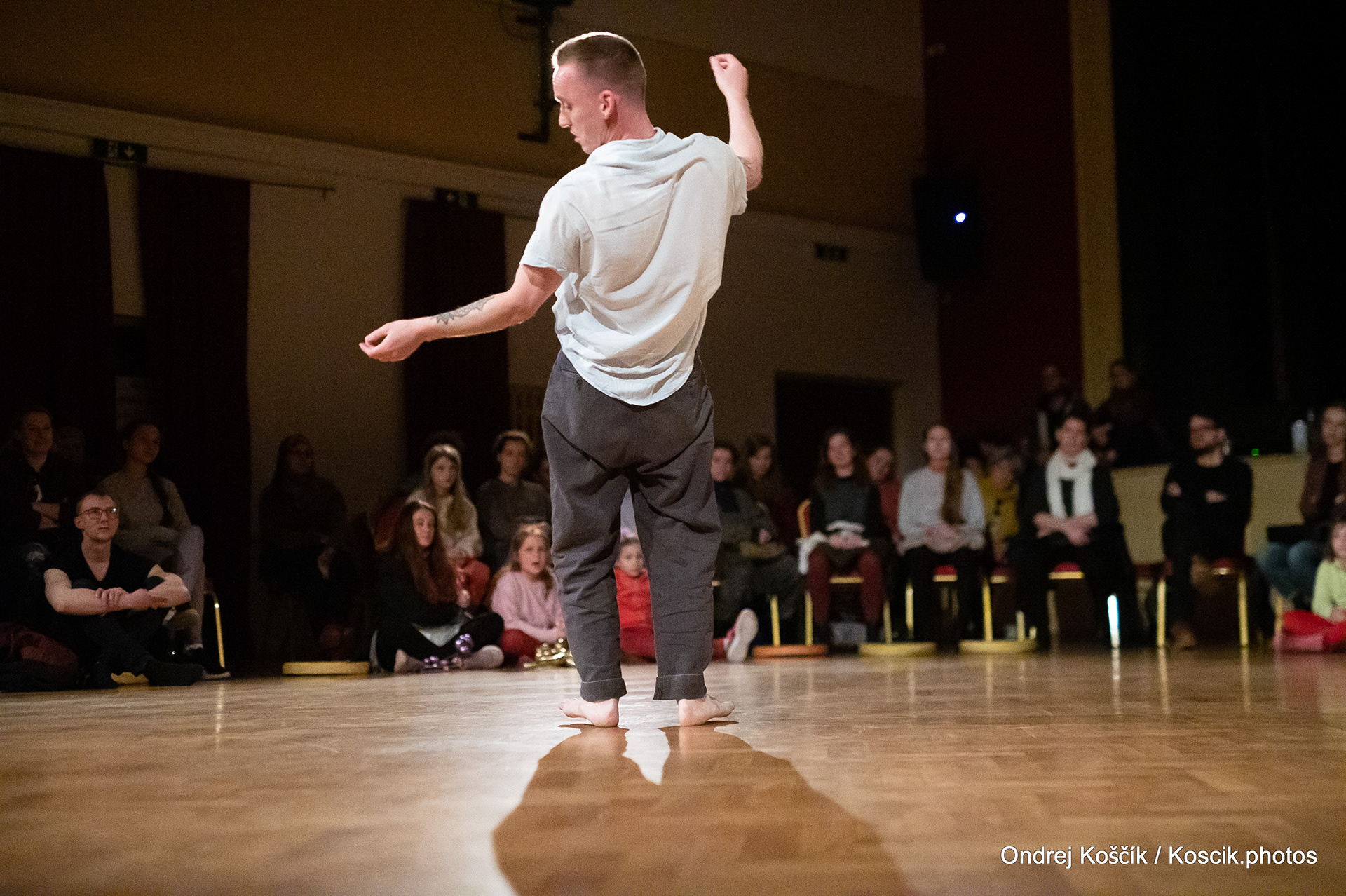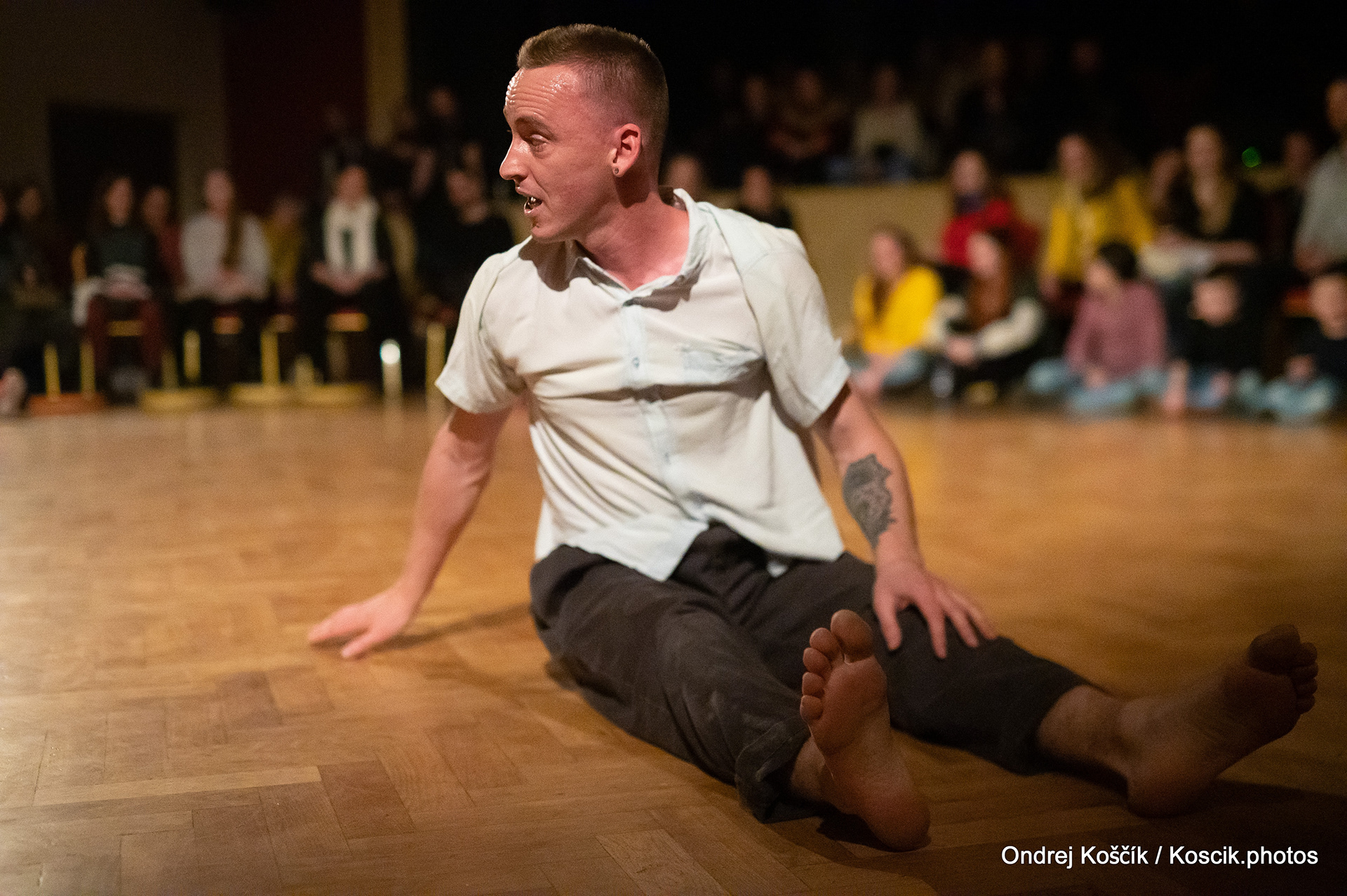 The performance is a format with a strong focus on body work, and includes a Cyr wheel. It was born from a playful acrodance research driven by questions, at the confluence of Contemporary Circus and Dance. 'Something wants to collapse' is a dialogue with gravity. A wedding ring, put right in between the Earth and the Sky; between inside and outside, concentration and expansion, introspection and the others. Yann Szuter is a french dancer, circus artist and street-performer, and his artistic research explores the human body relation to gravity and the subsequent movement and qualities to it, among other things.