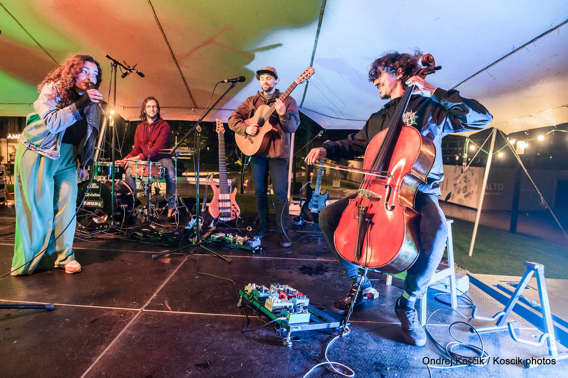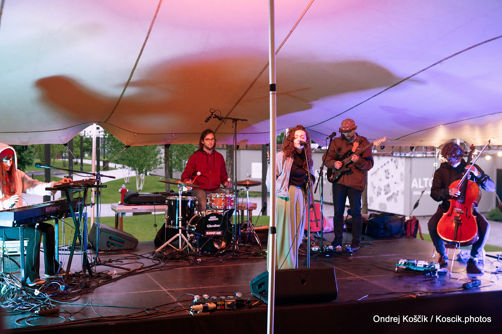 Dis is Markéta combines folk, world music and contemporary genres in their songs. The concert was part of the Urban Market 2023 (Spring Edition), a showcase of local design and creativity that took place in the Jurkovič heating plant, an industrial space in the downtown of Bratislava. The concert was on Friday, May 12, 2023, at 20:00. Dis is Markéta played songs from their debut EP hrajžemi, which was nominated for two Radio_Head Awards 2022 in the categories of World music and Folk music. They also received a prize from the Advance Investments Foundation and a financial contribution for the production of their new album. The concert was free of charge, but donations were welcome to support the band and the Urban Market project. The concert was attended by many fans and admirers of Dis is Markéta’s unique style and voice