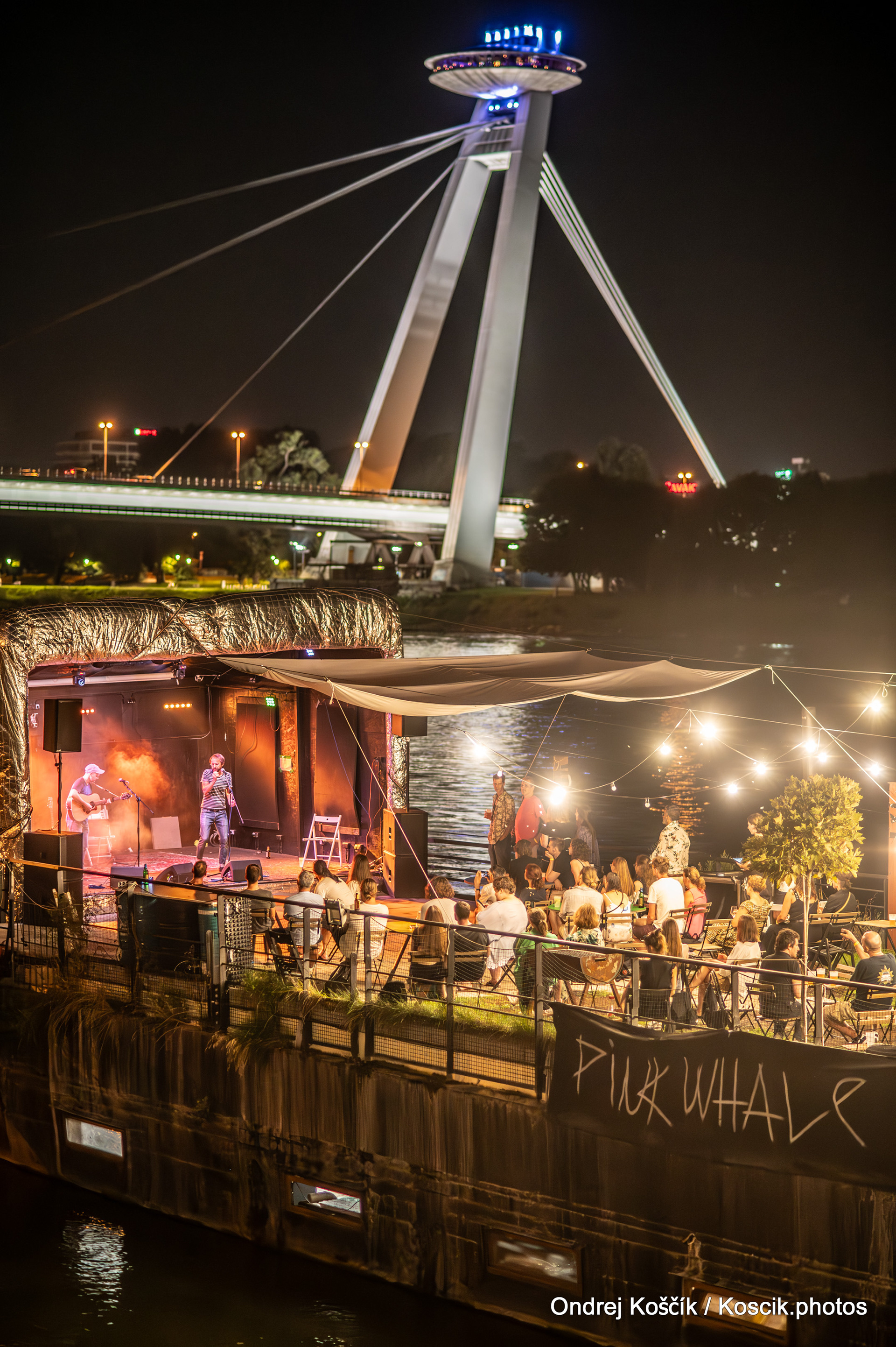 We had a night of music and fun on the Danube on August 25th. We joined a special concert featuring two amazing Slovak artists: Kolowrat and Zabiť Františka. They performed their songs on the Pink Whale, a new cultural center on a ship that offered a cozy and unique atmosphere. We enjoyed the acoustic versions of Kolowrat’s rock songs, as well as the indie pop tunes of Zabiť Františka. It was a memorable experience that we will never forget.
