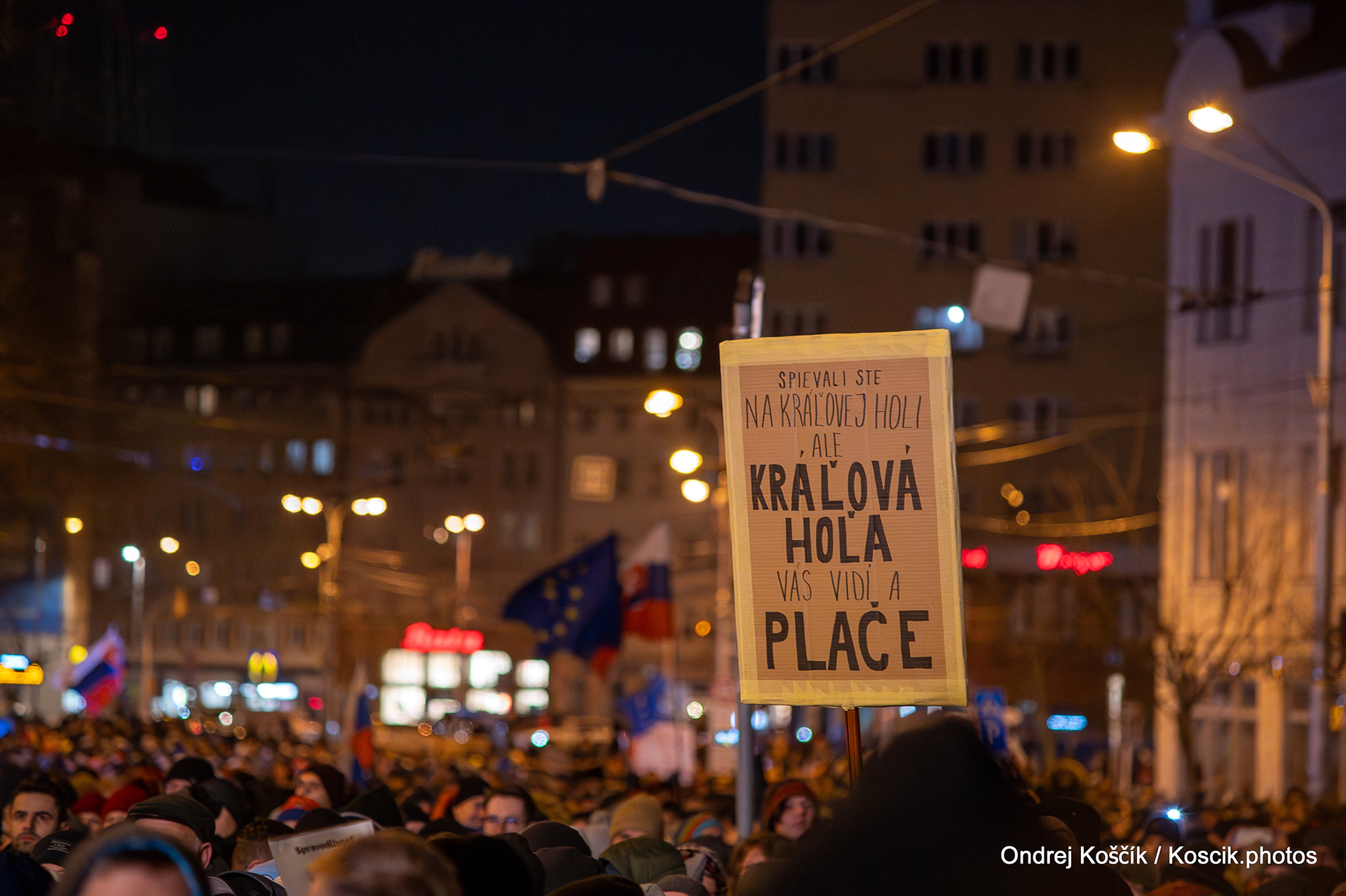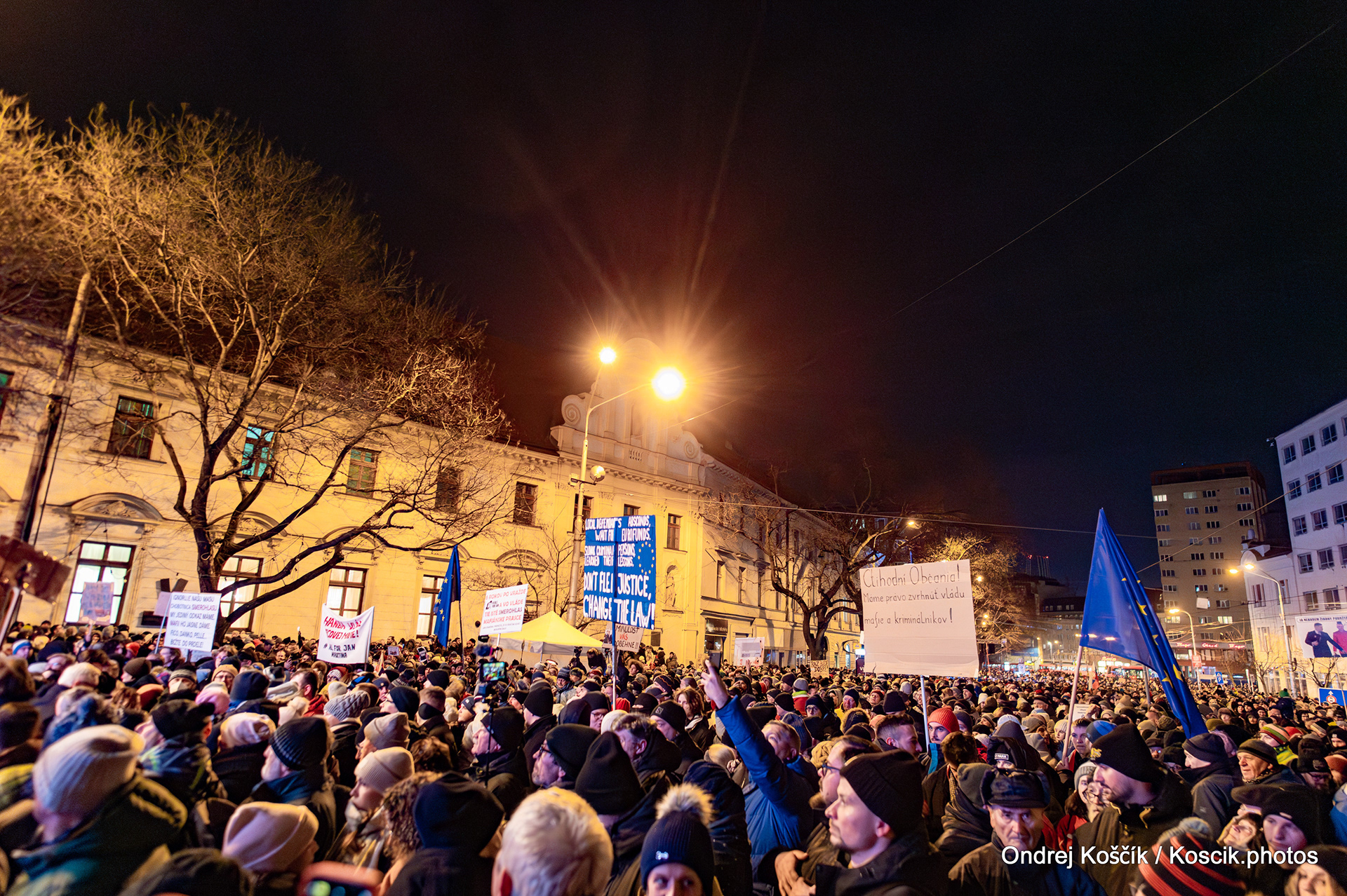 25 Jan 2024: Protivládne protesty sa opäť rozrástli, stále pribúdajú nové mestá a aj mimo Bratislavy počítajú účasť v tisícoch, napríklad v Košiciach, Prešove či Žiline. Demonštranti prišli aj v zahraničí – v Paríži, Prahe, Brne a Krakove