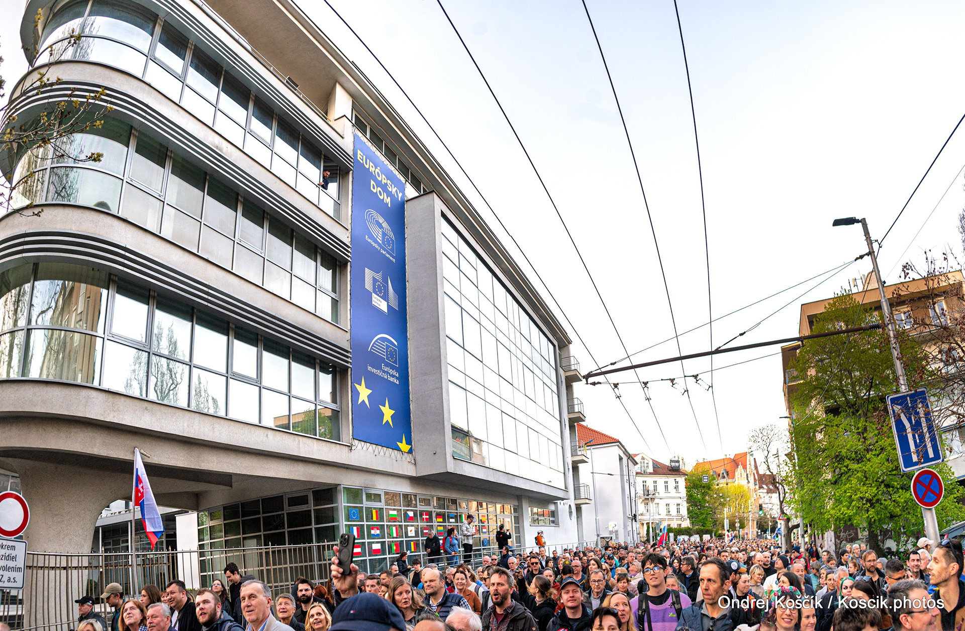 The Pochod proti ruskému zákonu on April 3, 2025, in Bratislava, organized by Mier Ukrajine, was primarily a demonstration against proposed legislative changes that many saw as a threat to Slovakia’s democratic integrity and sovereignty. While the protest carried strong messages of solidarity with Ukraine, the focus was on internal concerns—particularly fears that the law could increase government control over media and civil society, limit freedoms, and align Slovakia more closely with authoritarian models. The photo report captures the urgency of the protest—banners reflecting diverse demands, passionate speeches warning of the risks to democracy, and a collective call for transparency and accountability in governance.