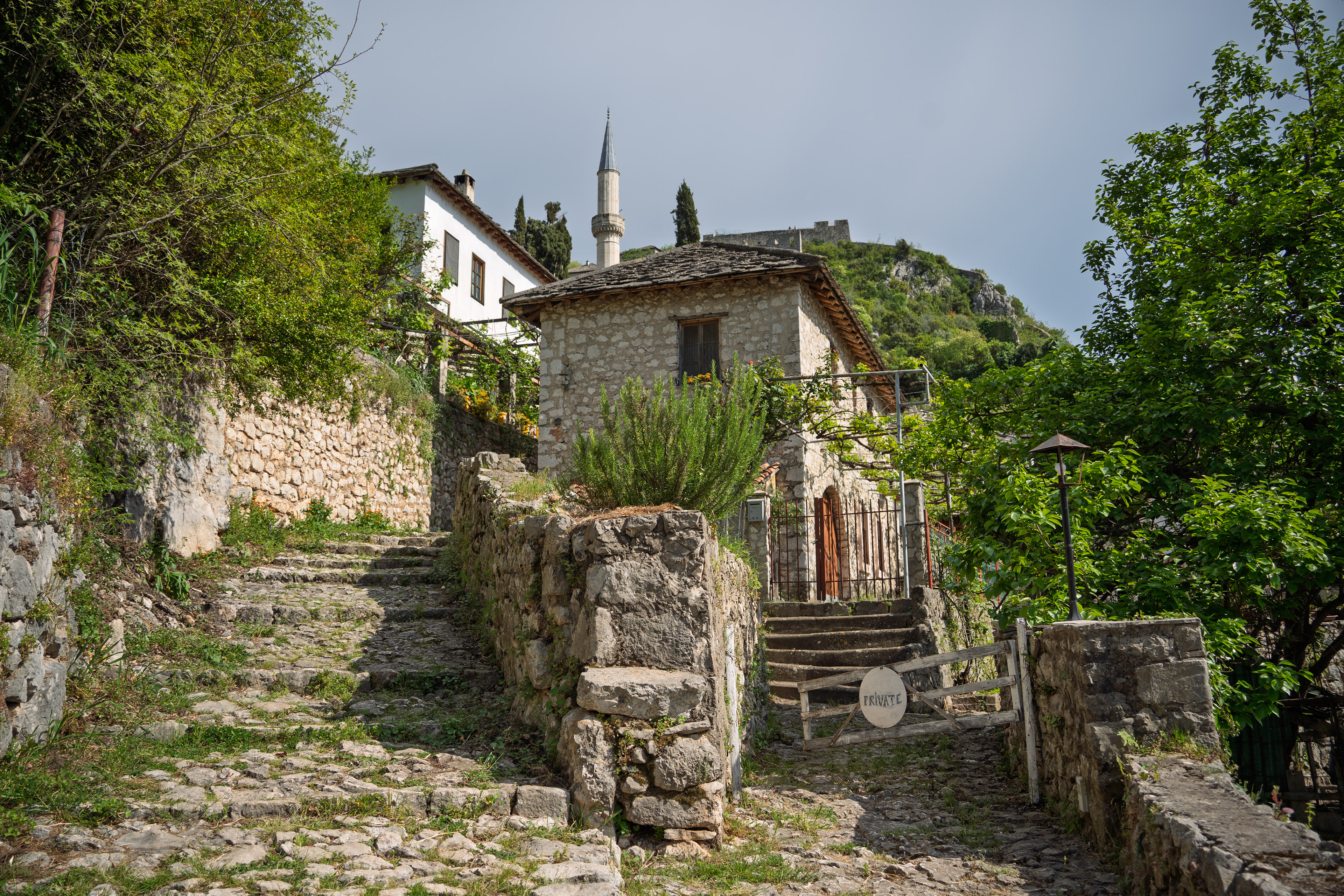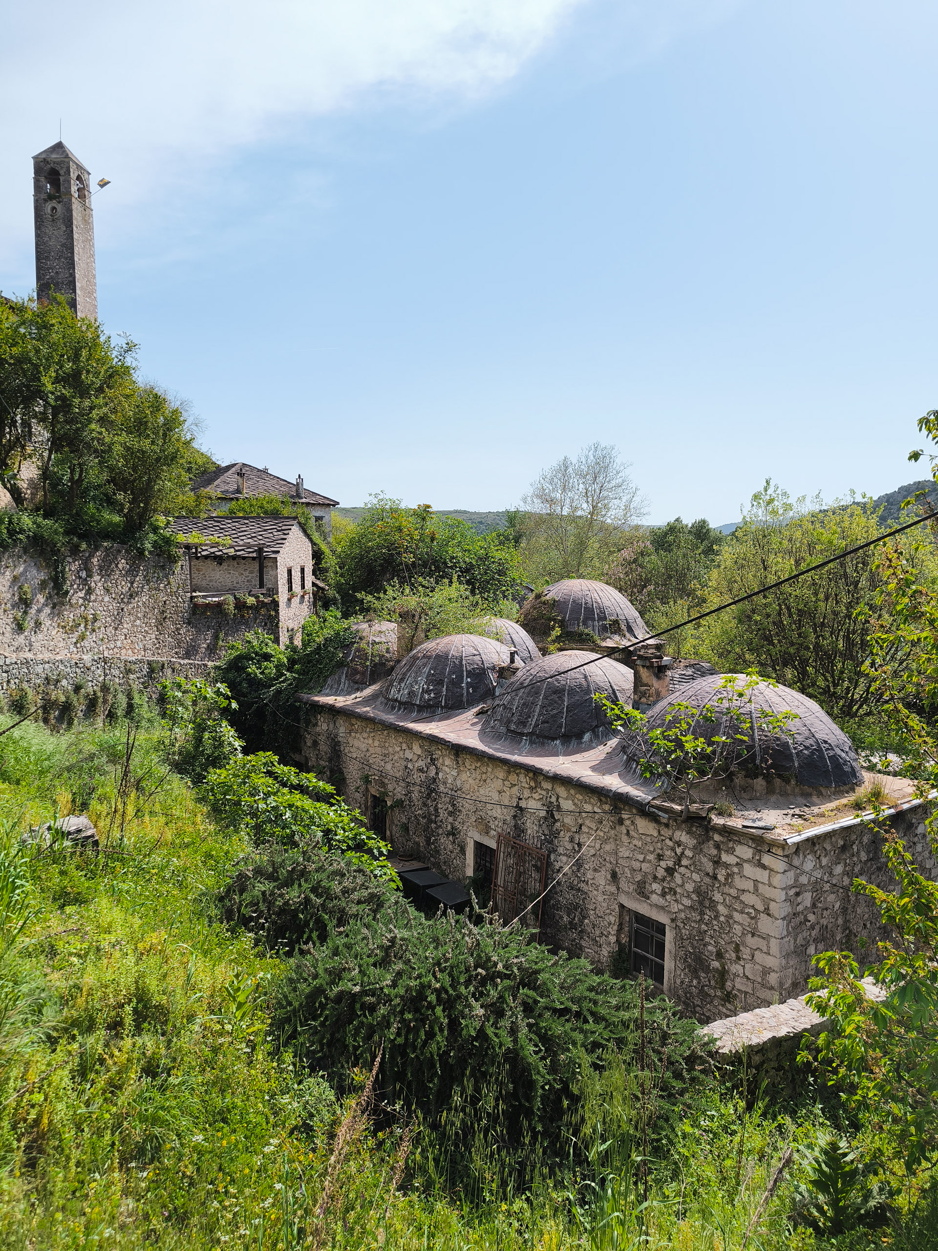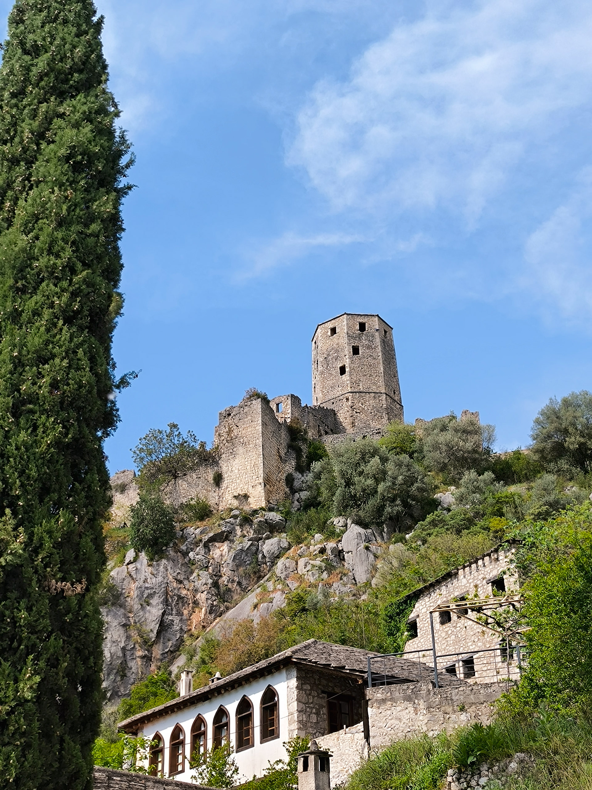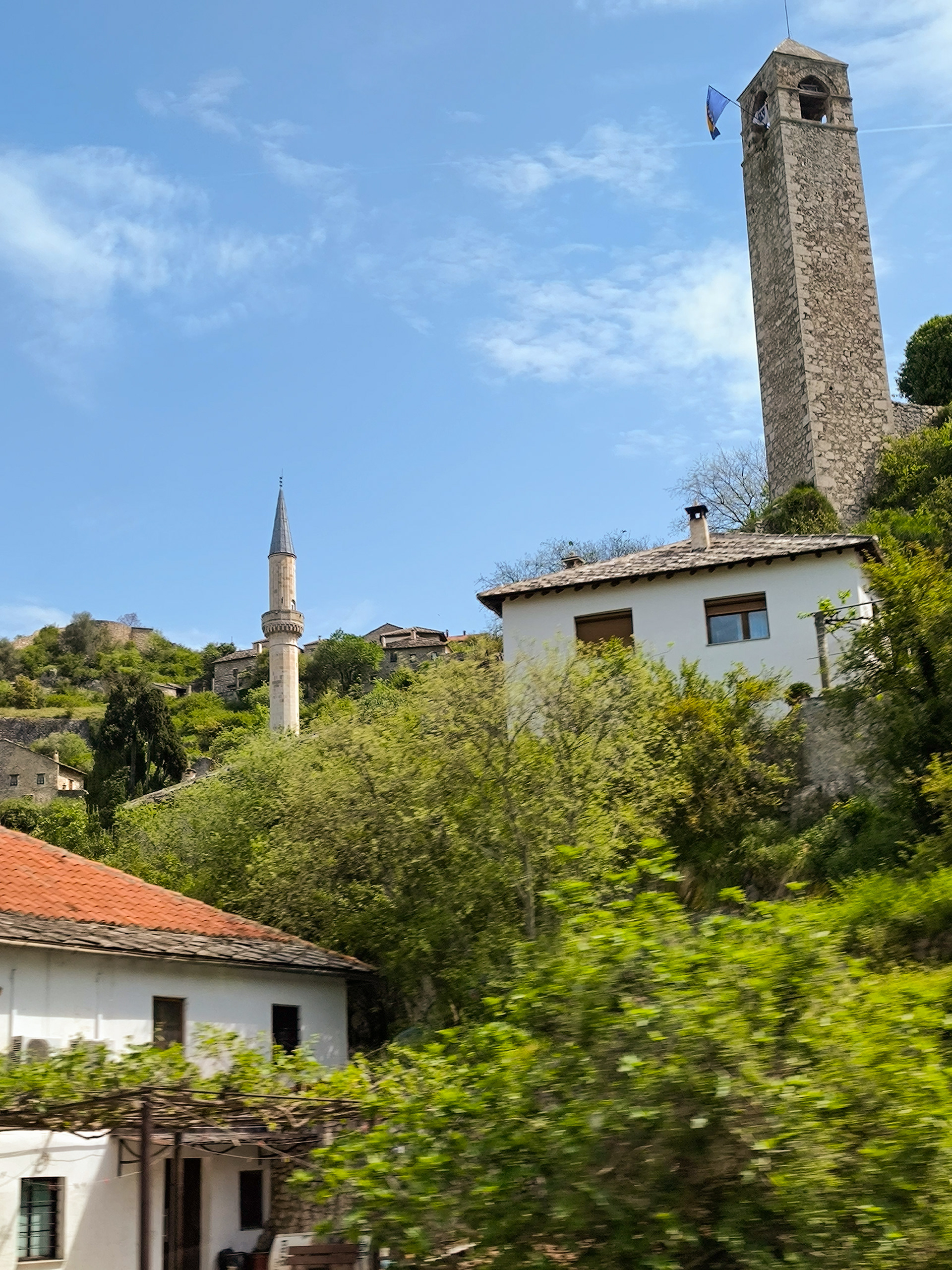 On our Easter day trip from Dubrovnik, the bus wound north along the Neretva River to the striking hilltop settlement of Počitelj, a UNESCO‑listed gem that seems to rise organically from the rocky slopes. Enclosed by centuries‑old stone walls, the town’s skyline is crowned by the cylindrical Gavrakapetan Tower and punctuated by slender minarets, recalling its flourishing period under Ottoman rule from the 15th century. Cobbled lanes led us past arched gateways, fortified bastions, and traditional stone houses with wooden balconies — scenes that still echo the blend of medieval Bosnian and later Ottoman architecture. The spring light poured over fruit orchards and terraced gardens cascading toward the river, giving life to a town that has witnessed sieges, trade, and cultural exchange for more than 500 years.