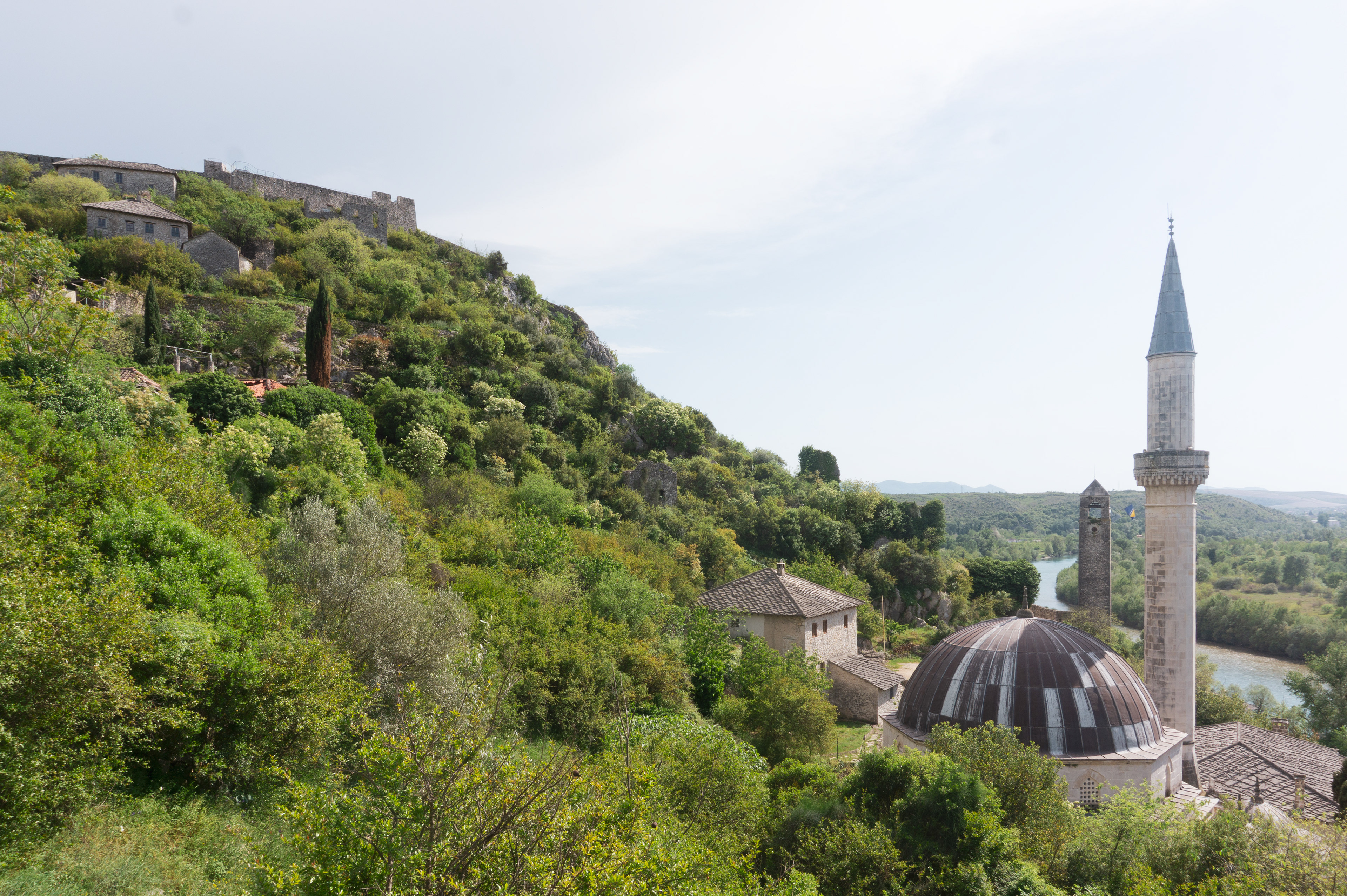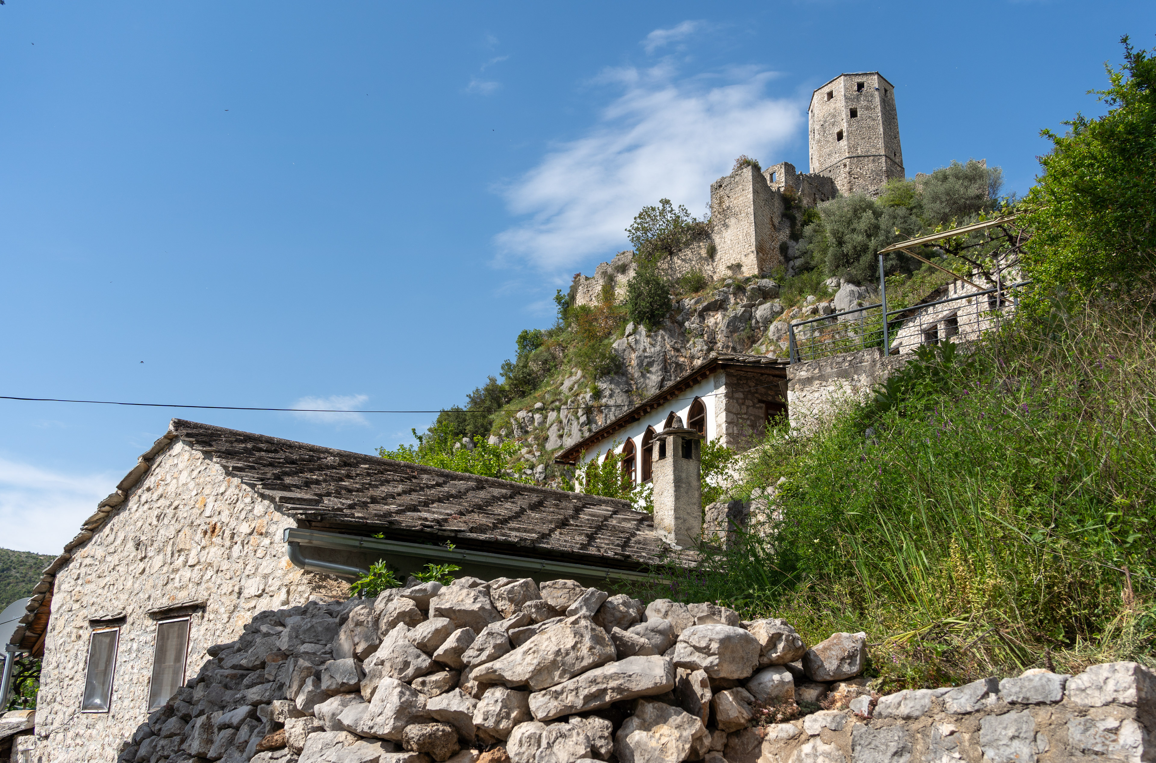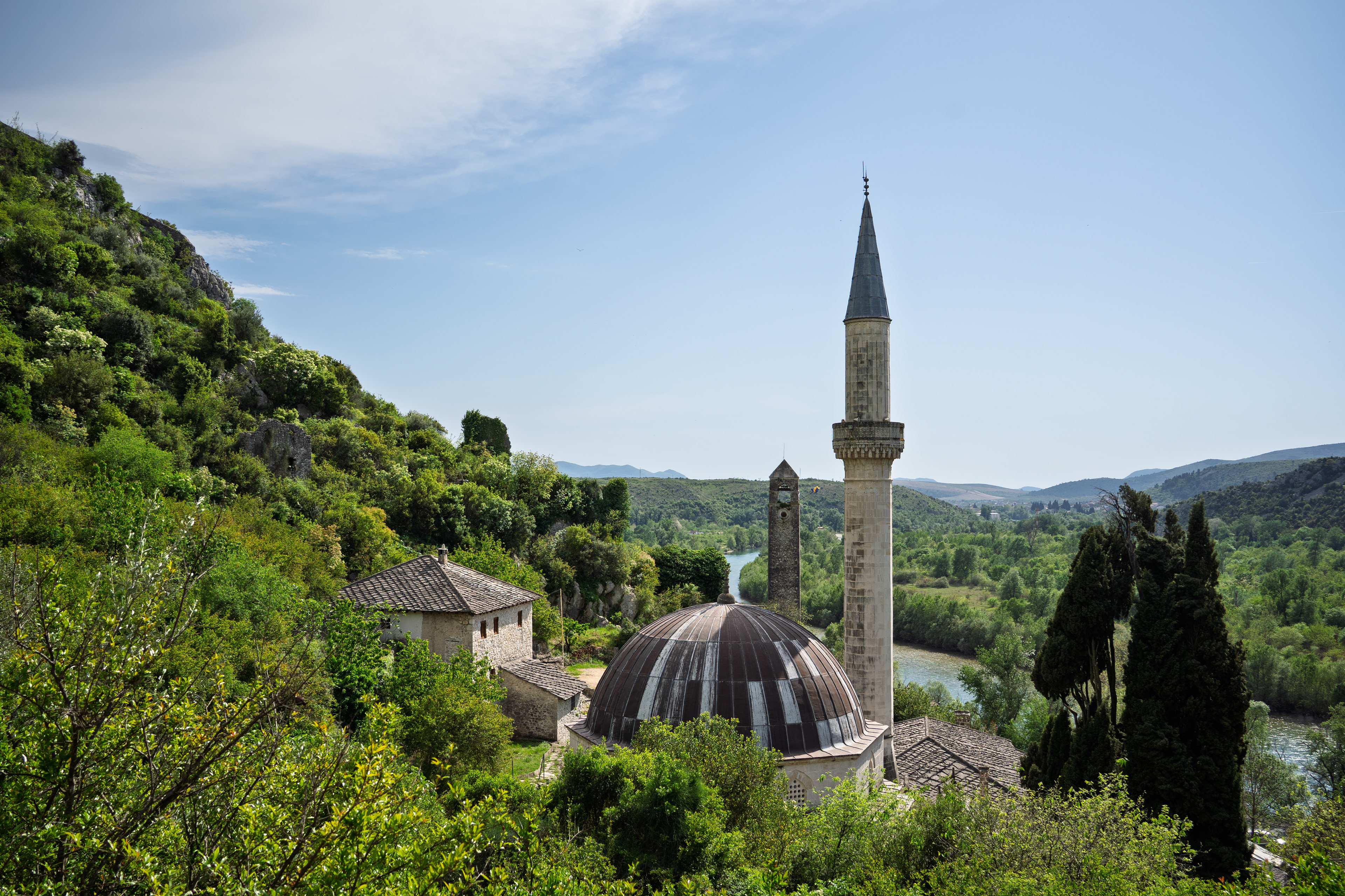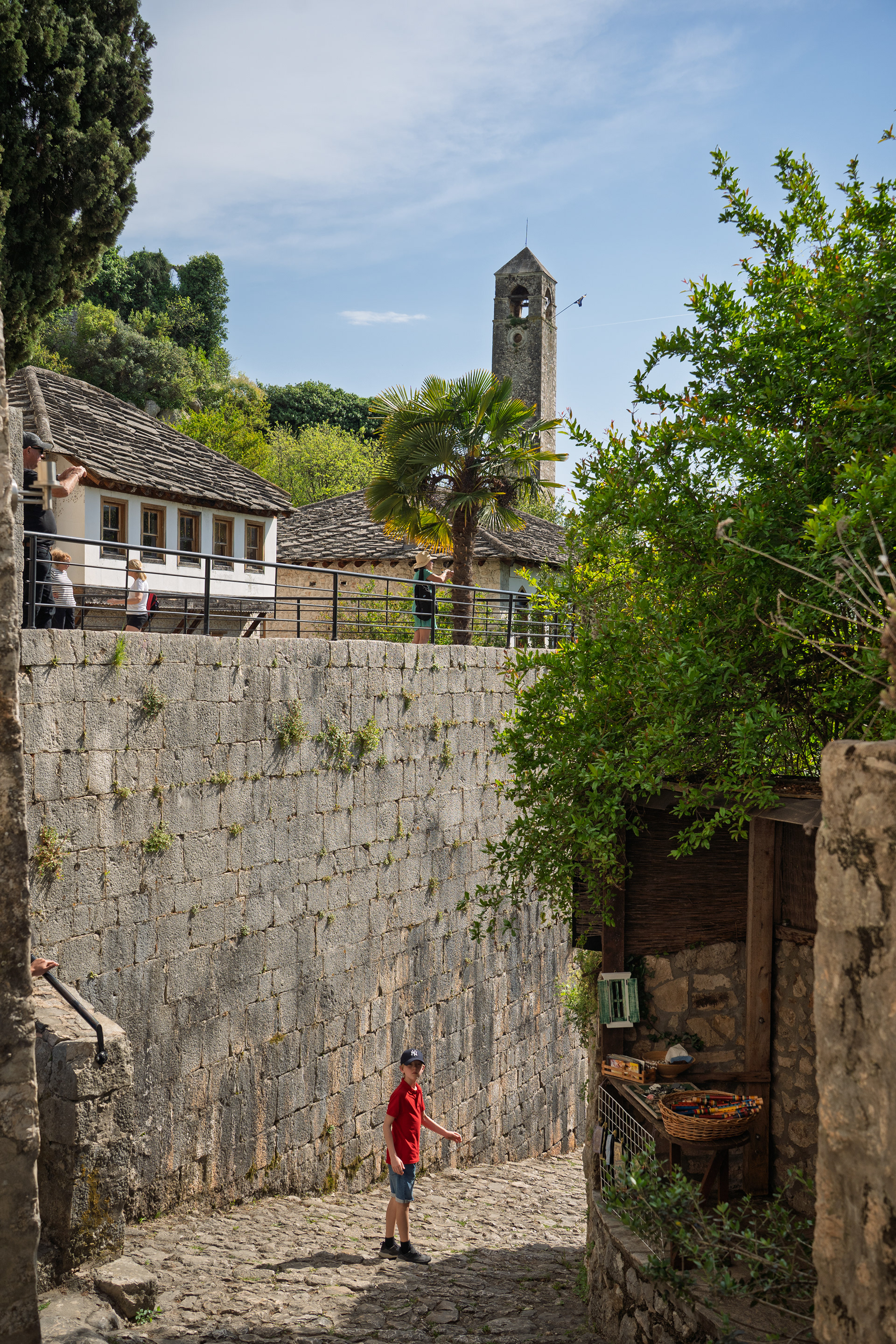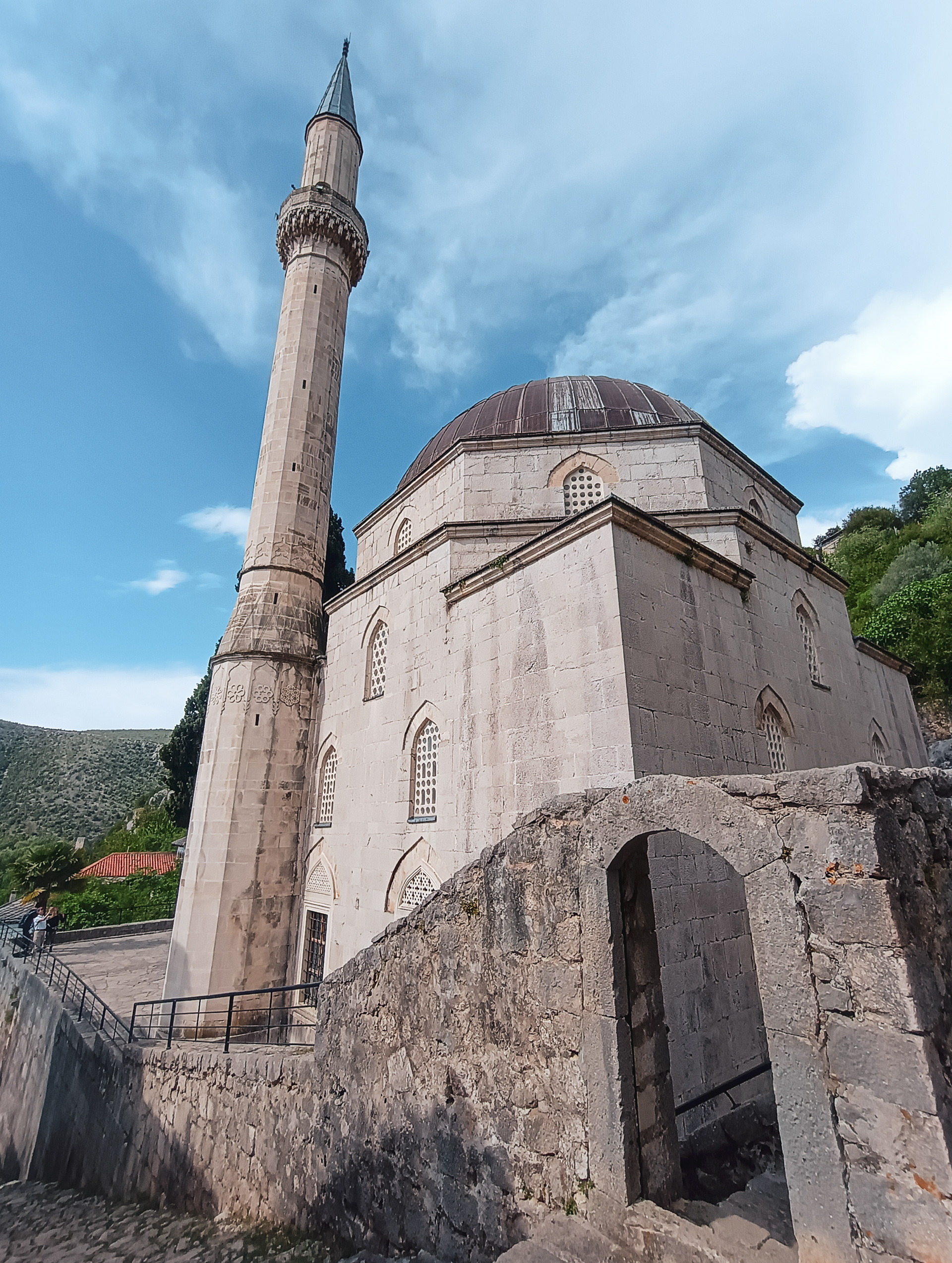 On our Easter day trip from Dubrovnik, the bus wound north along the Neretva River to the striking hilltop settlement of Počitelj, a UNESCO‑listed gem that seems to rise organically from the rocky slopes. Enclosed by centuries‑old stone walls, the town’s skyline is crowned by the cylindrical Gavrakapetan Tower and punctuated by slender minarets, recalling its flourishing period under Ottoman rule from the 15th century. Cobbled lanes led us past arched gateways, fortified bastions, and traditional stone houses with wooden balconies — scenes that still echo the blend of medieval Bosnian and later Ottoman architecture. The spring light poured over fruit orchards and terraced gardens cascading toward the river, giving life to a town that has witnessed sieges, trade, and cultural exchange for more than 500 years.