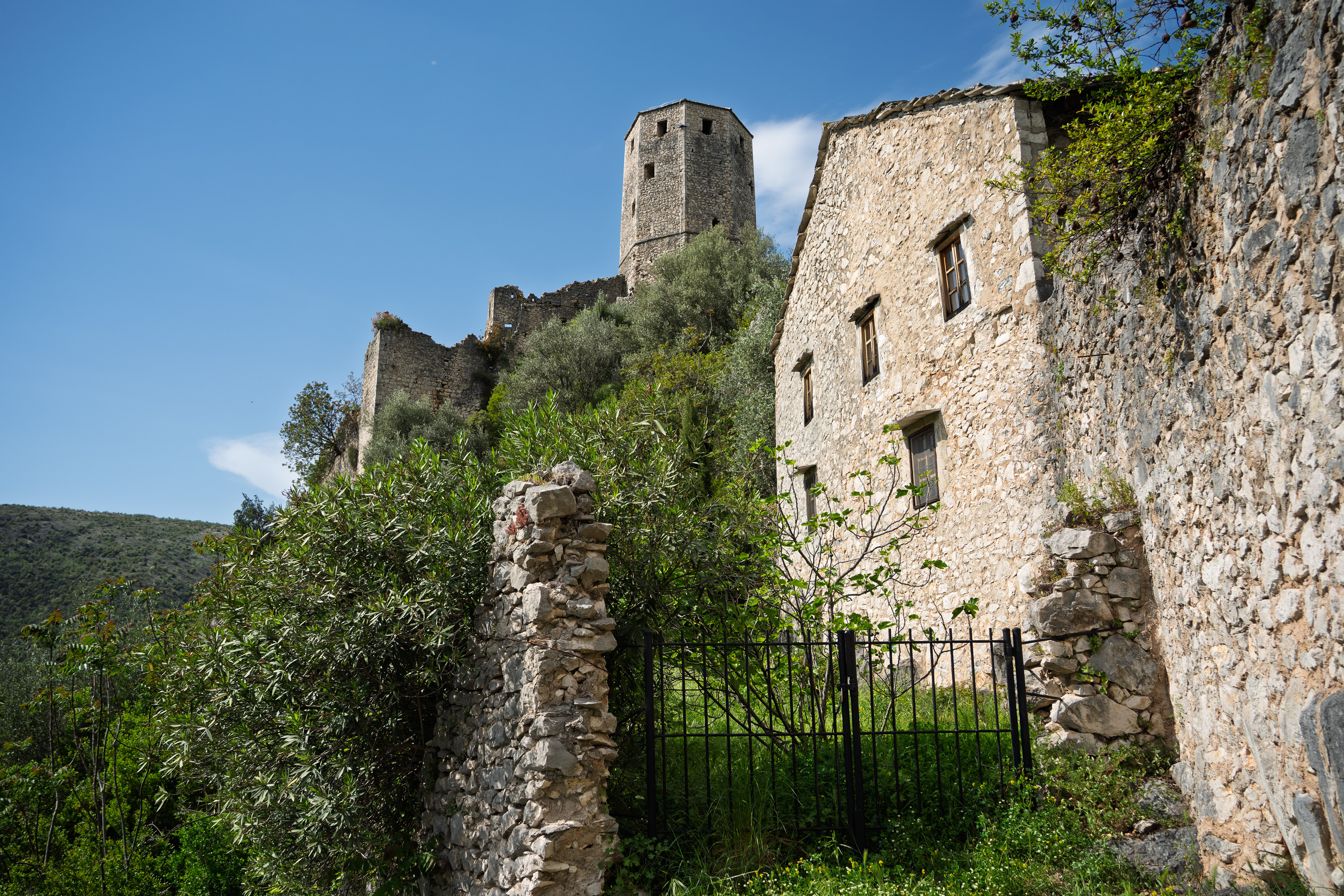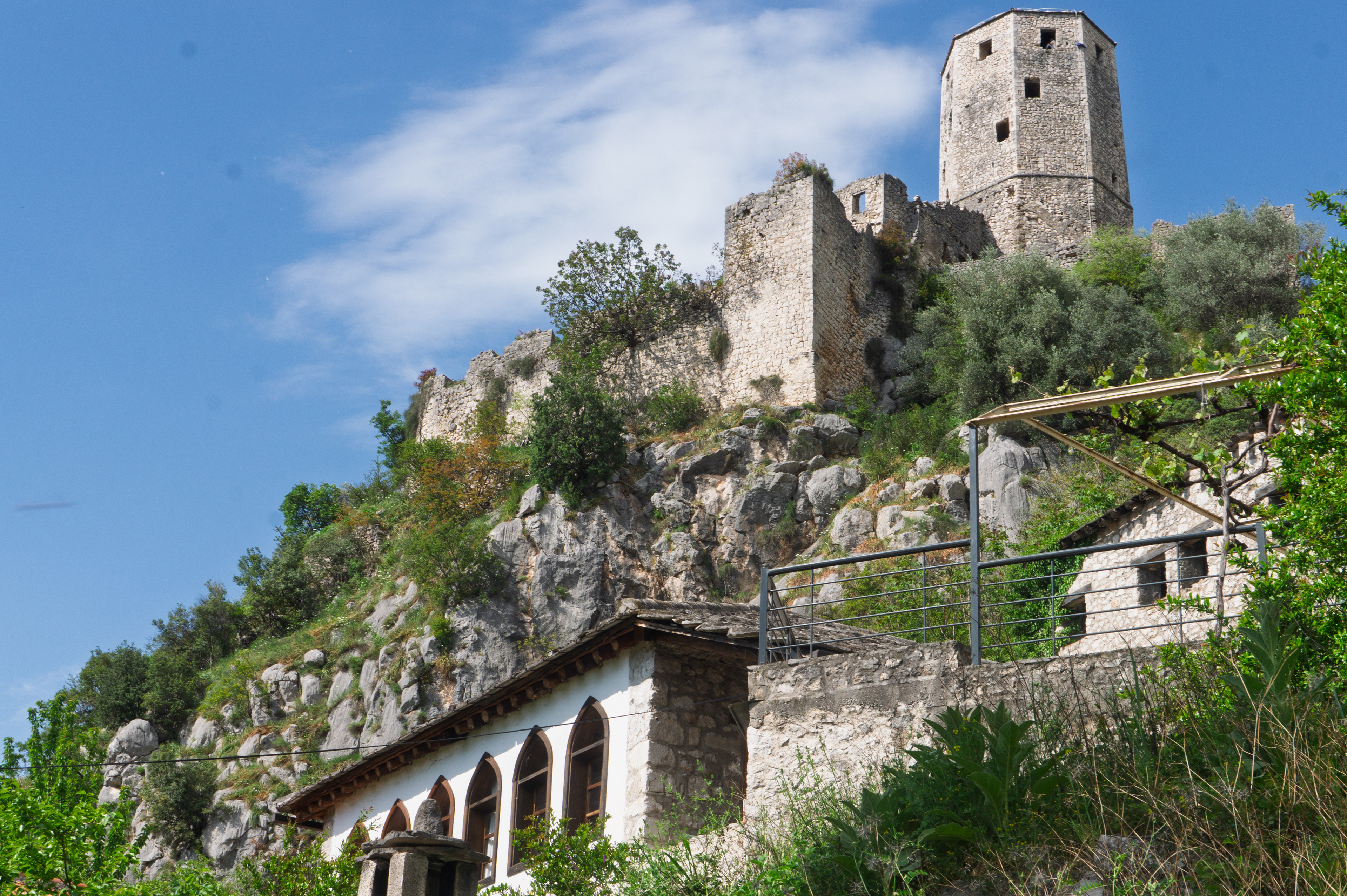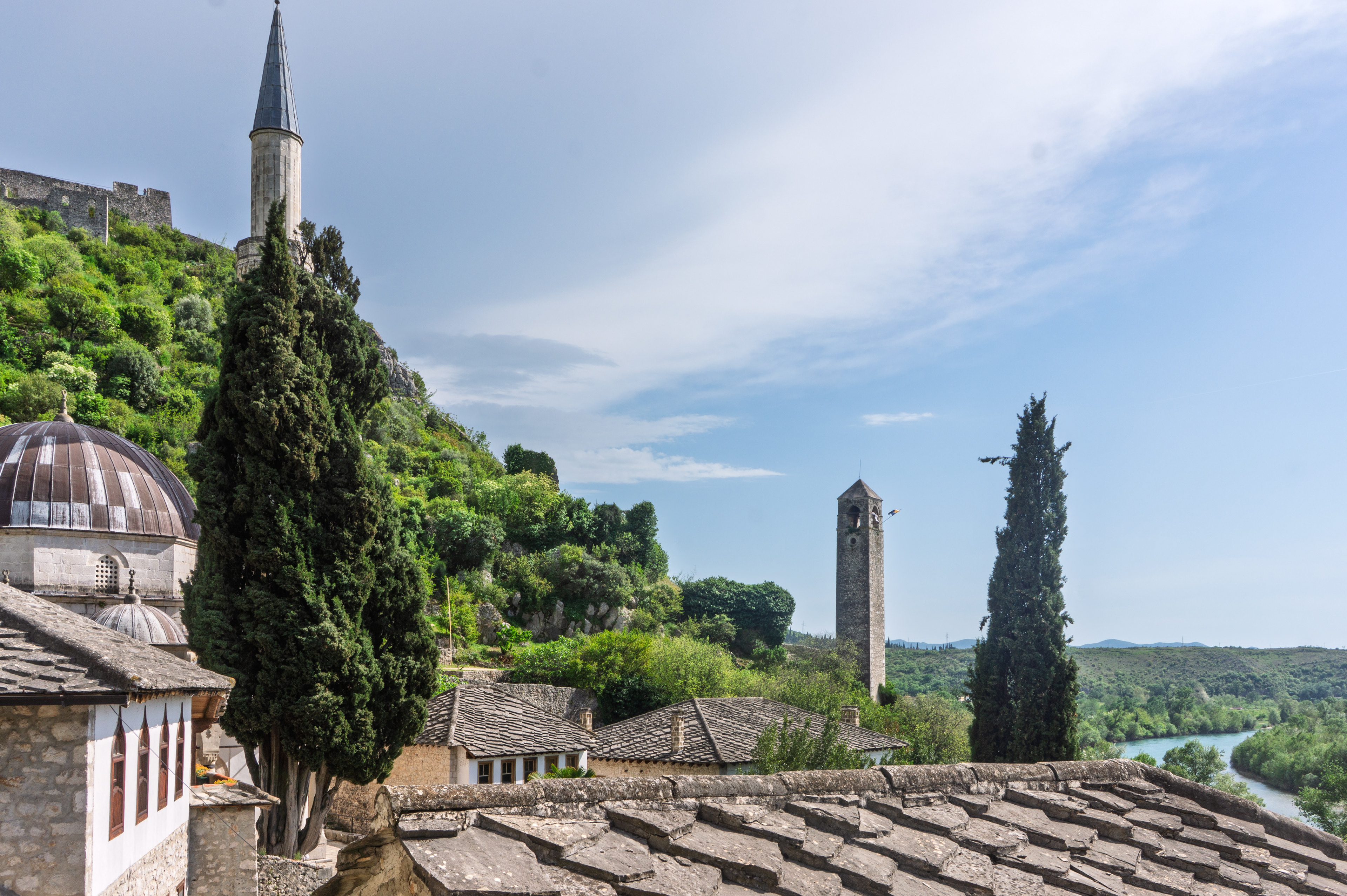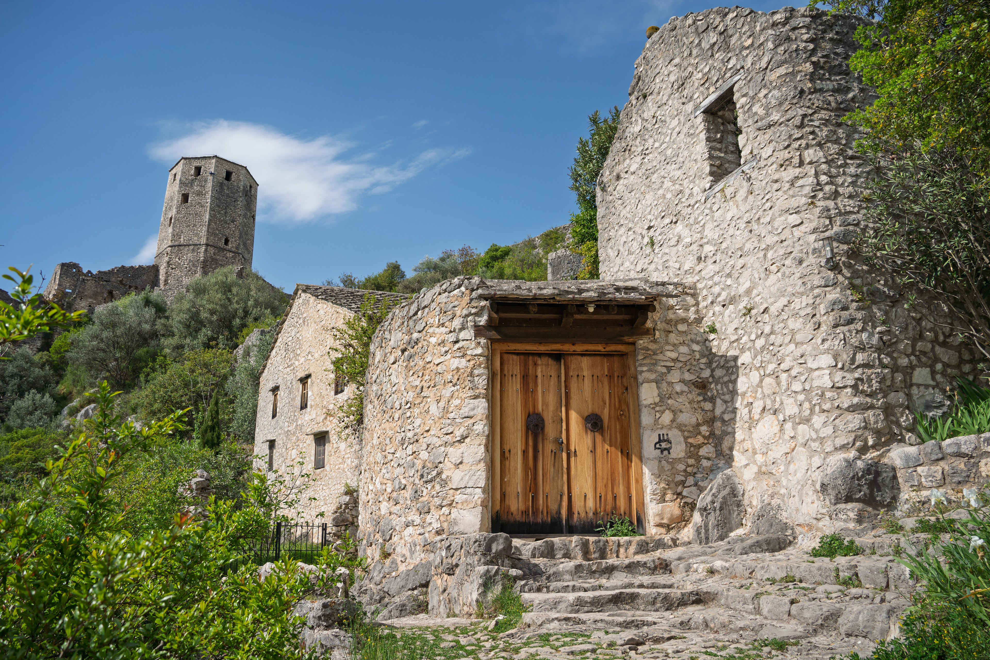 On our Easter day trip from Dubrovnik, the bus wound north along the Neretva River to the striking hilltop settlement of Počitelj, a UNESCO‑listed gem that seems to rise organically from the rocky slopes. Enclosed by centuries‑old stone walls, the town’s skyline is crowned by the cylindrical Gavrakapetan Tower and punctuated by slender minarets, recalling its flourishing period under Ottoman rule from the 15th century. Cobbled lanes led us past arched gateways, fortified bastions, and traditional stone houses with wooden balconies — scenes that still echo the blend of medieval Bosnian and later Ottoman architecture. The spring light poured over fruit orchards and terraced gardens cascading toward the river, giving life to a town that has witnessed sieges, trade, and cultural exchange for more than 500 years.