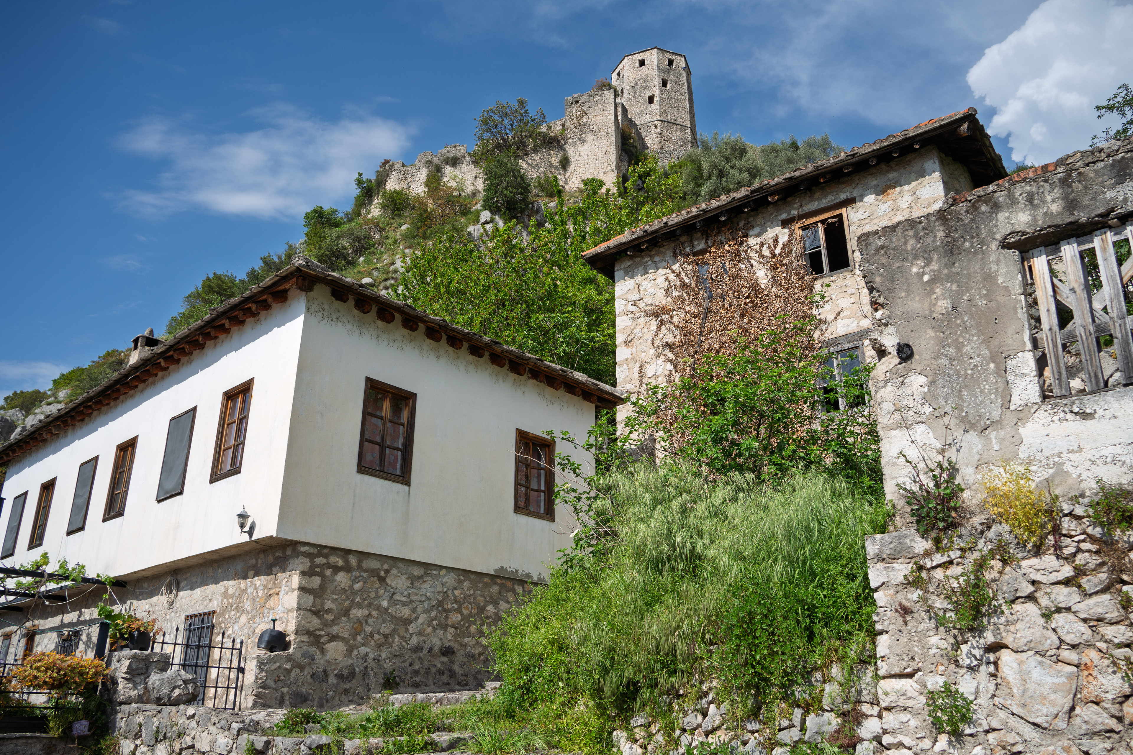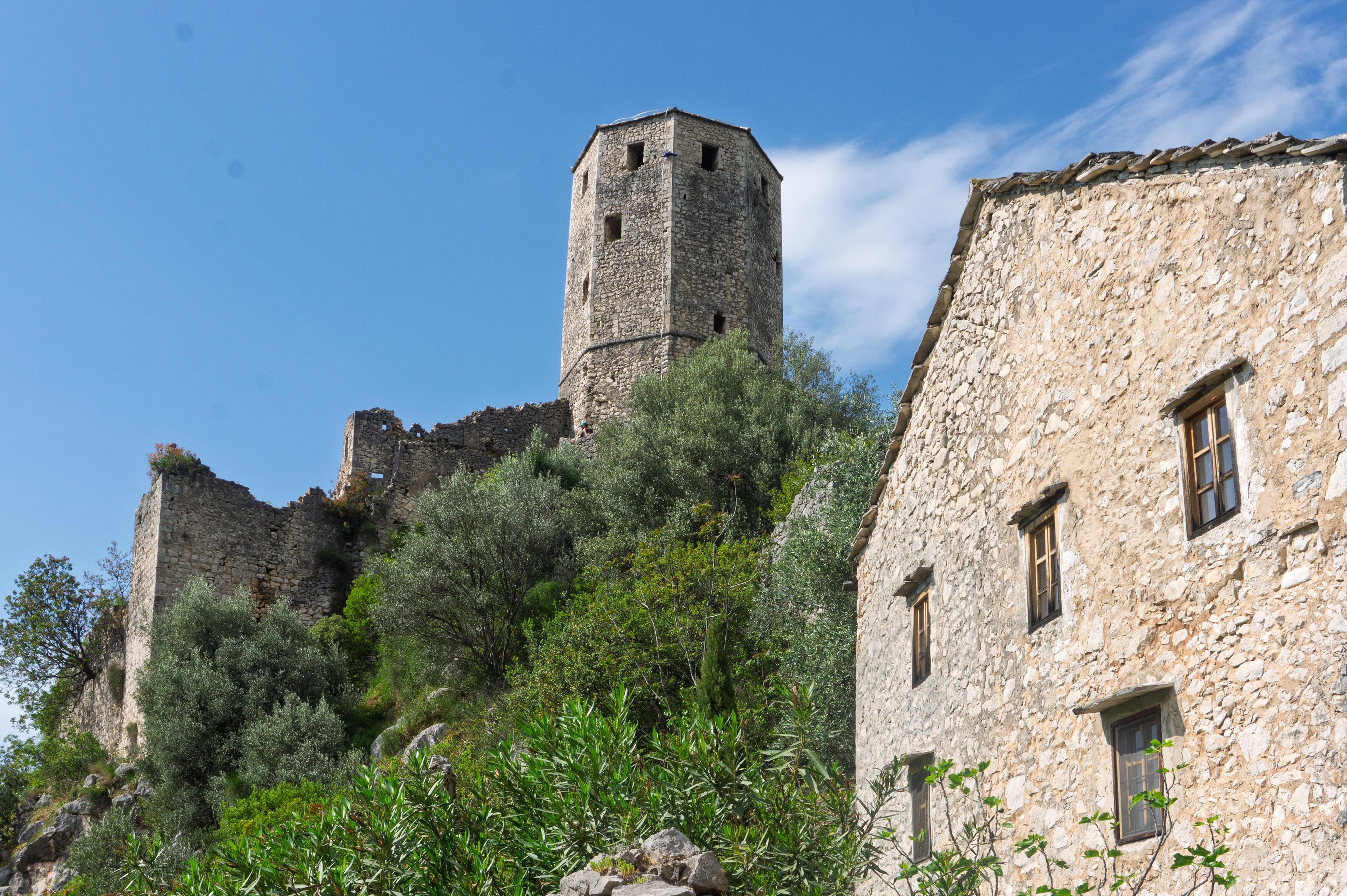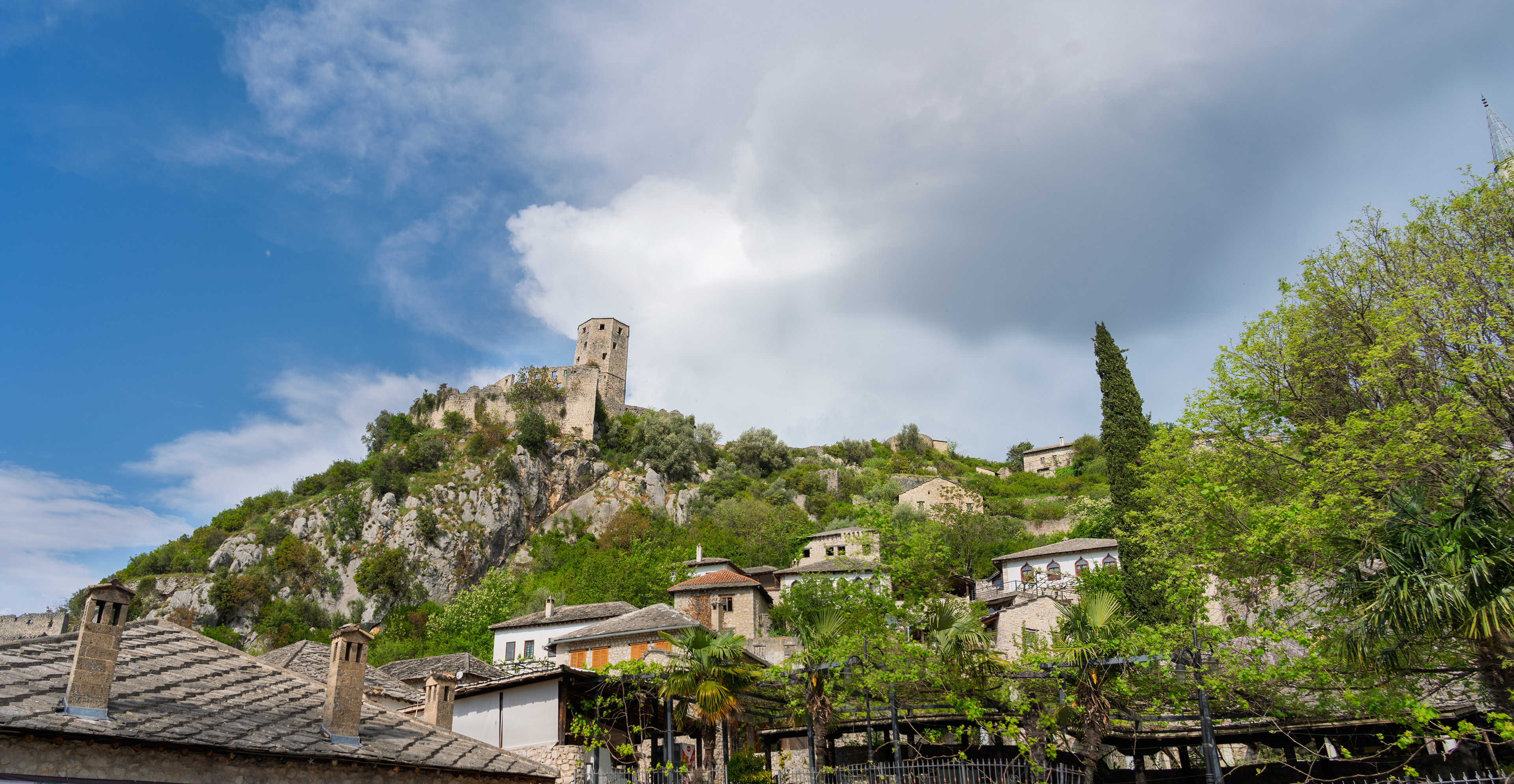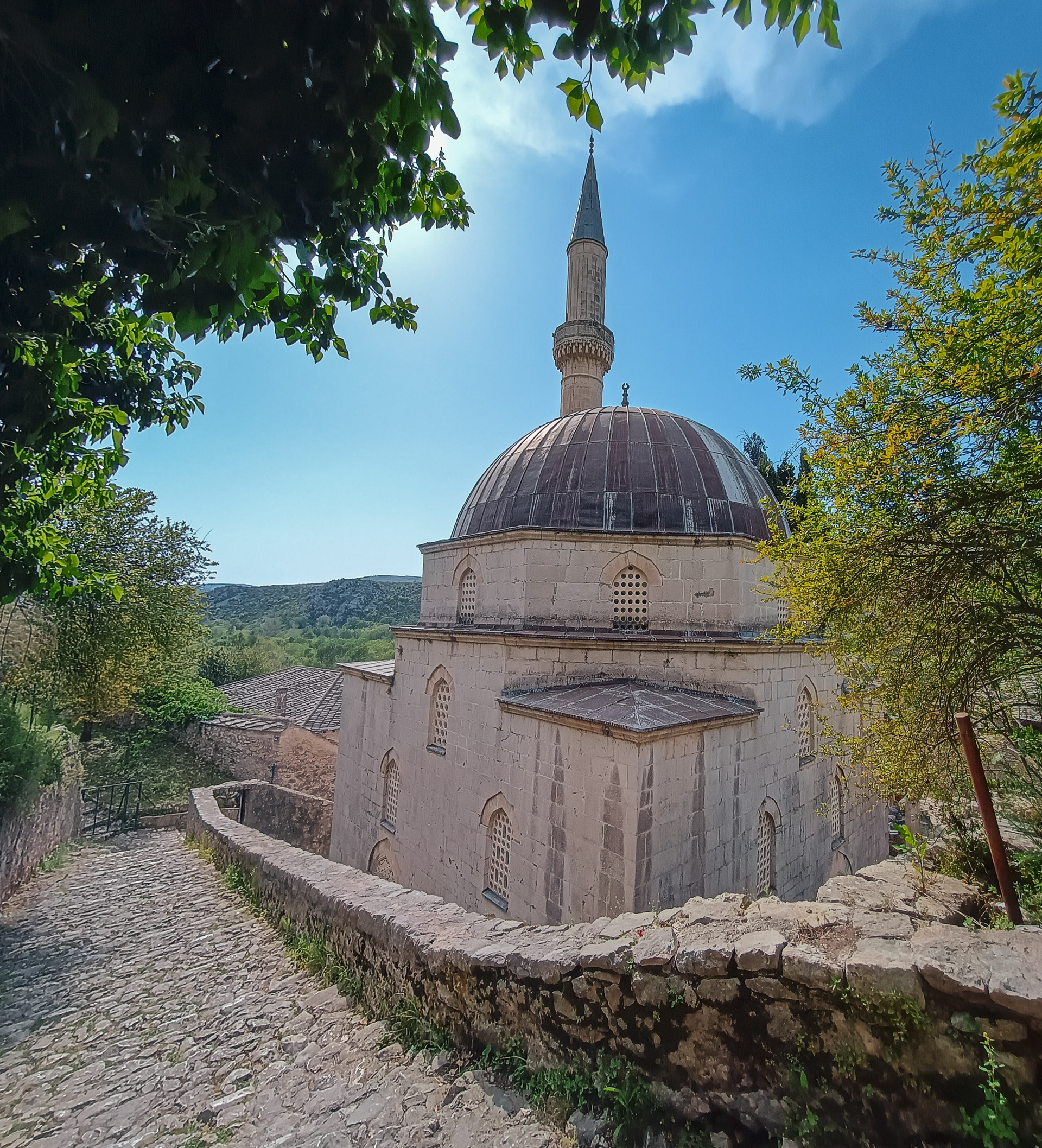 On our Easter day trip from Dubrovnik, the bus wound north along the Neretva River to the striking hilltop settlement of Počitelj, a UNESCO‑listed gem that seems to rise organically from the rocky slopes. Enclosed by centuries‑old stone walls, the town’s skyline is crowned by the cylindrical Gavrakapetan Tower and punctuated by slender minarets, recalling its flourishing period under Ottoman rule from the 15th century. Cobbled lanes led us past arched gateways, fortified bastions, and traditional stone houses with wooden balconies — scenes that still echo the blend of medieval Bosnian and later Ottoman architecture. The spring light poured over fruit orchards and terraced gardens cascading toward the river, giving life to a town that has witnessed sieges, trade, and cultural exchange for more than 500 years.