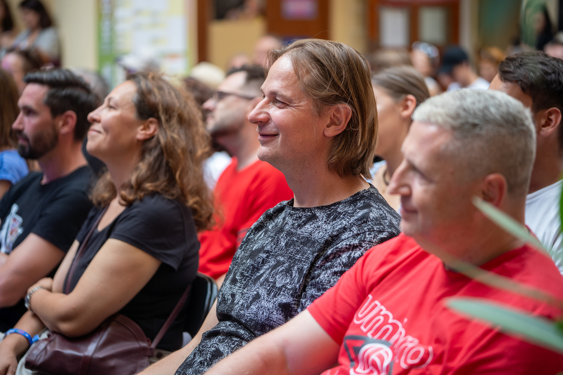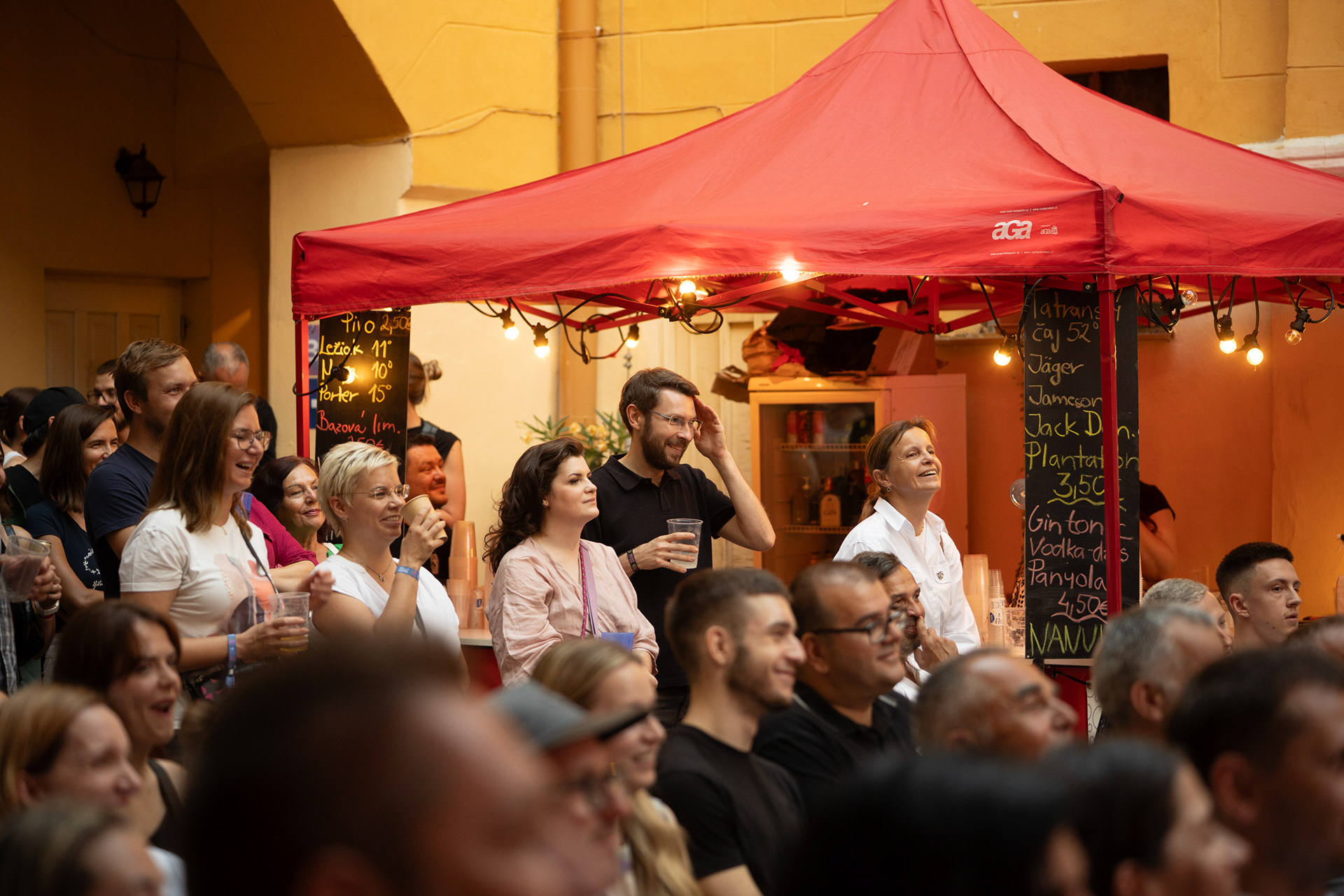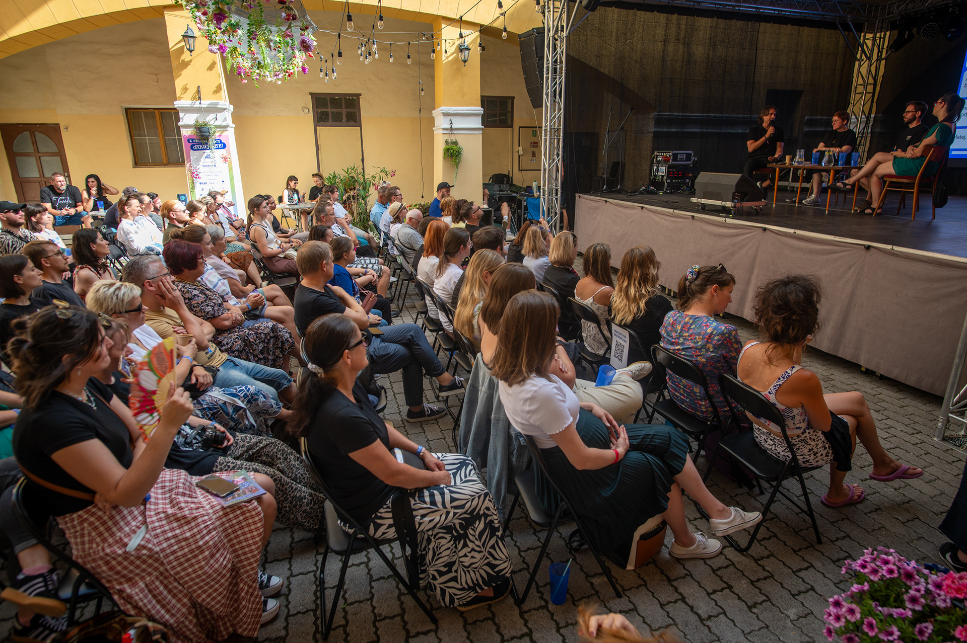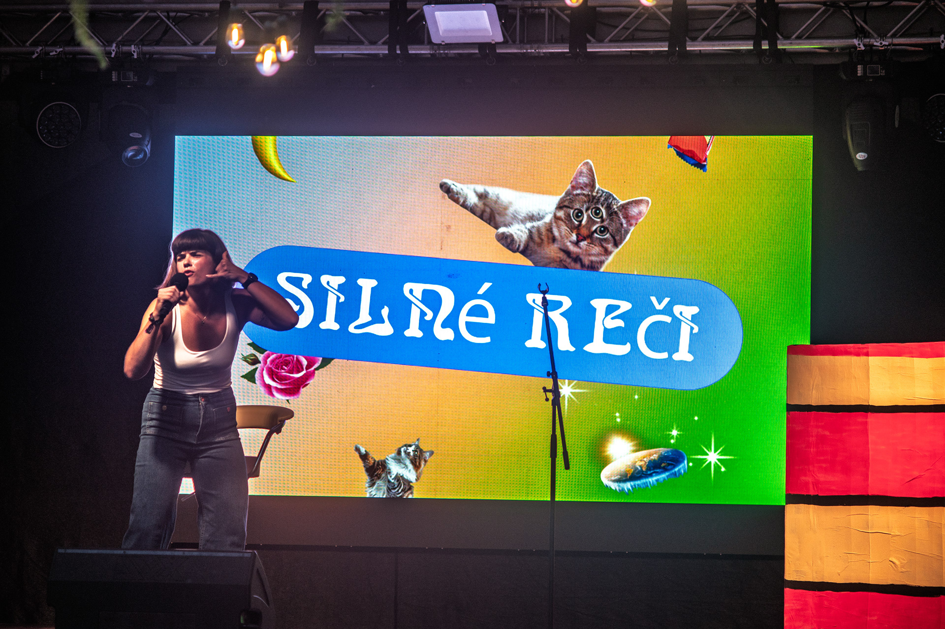 Druhý deň začal pokojnejšie – deti si užili divadlo Houže a výtvarný workshop, dospelí si dali kávu a tvárili sa, že sú v pohode. Literárny cirkus KK Bagalu roztočil slová, Ministerstvo bizarností roztočilo mozgové závity a Silné Reči roztočili bránice. Slam poetry zas dokázala, že aj rýmy môžu mať úder ako kombinačky.