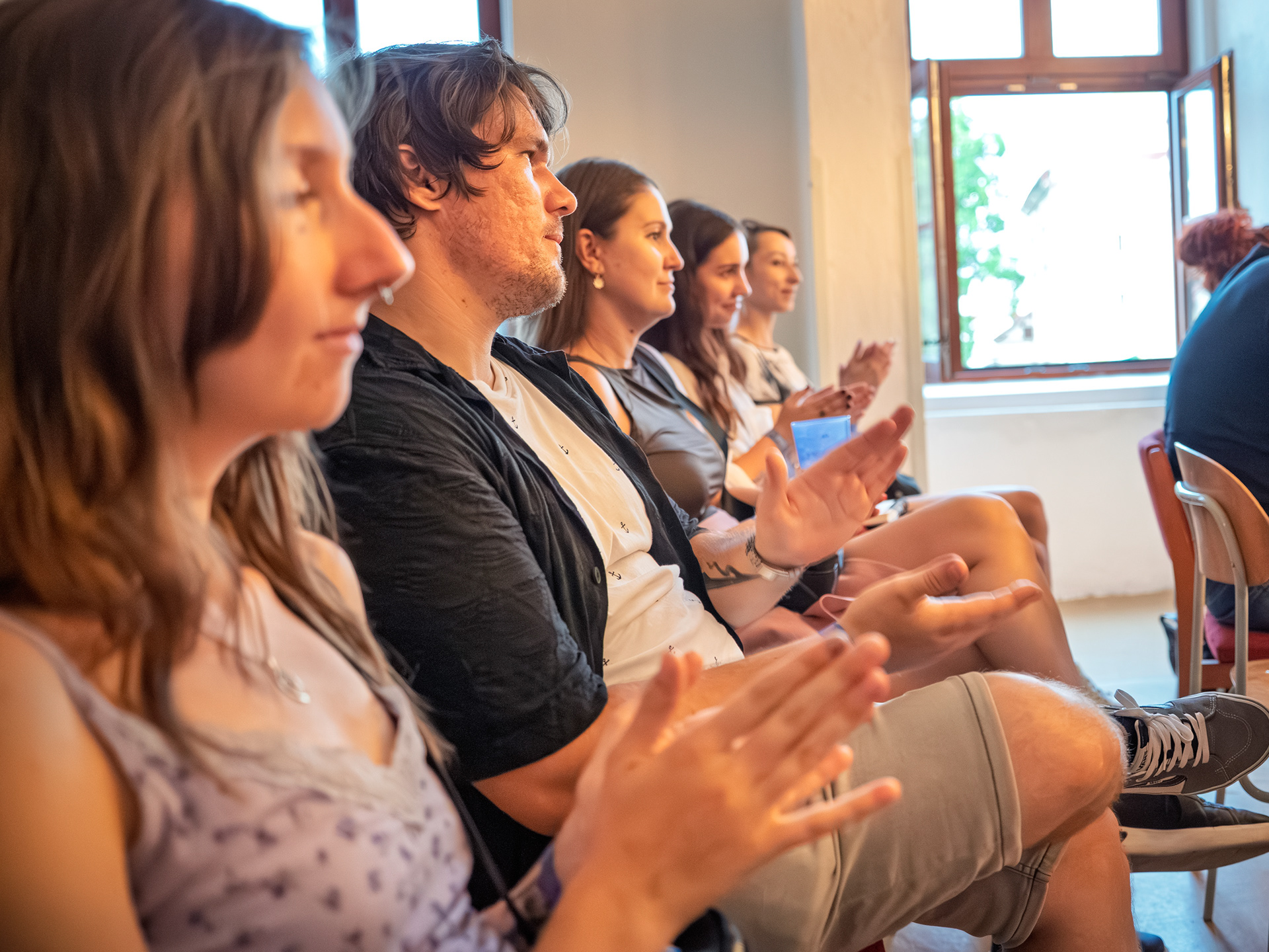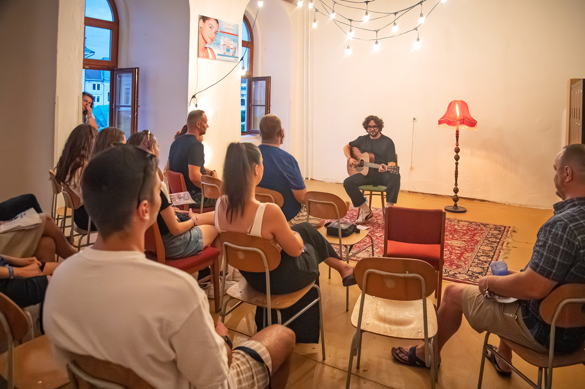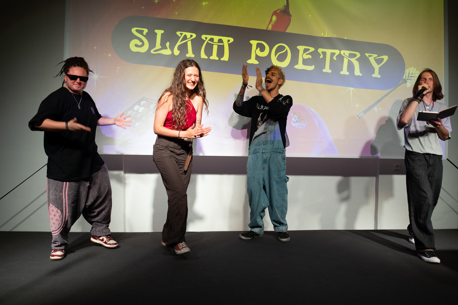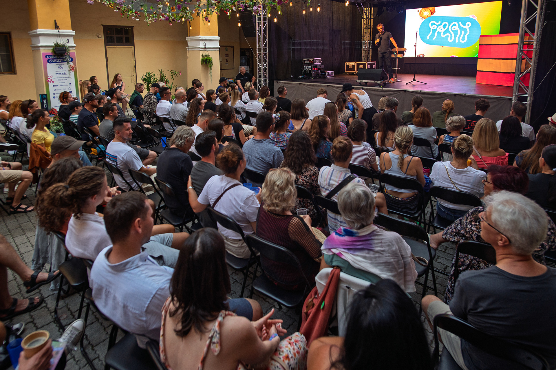 Druhý deň začal pokojnejšie – deti si užili divadlo Houže a výtvarný workshop, dospelí si dali kávu a tvárili sa, že sú v pohode. Literárny cirkus KK Bagalu roztočil slová, Ministerstvo bizarností roztočilo mozgové závity a Silné Reči roztočili bránice. Slam poetry zas dokázala, že aj rýmy môžu mať úder ako kombinačky.