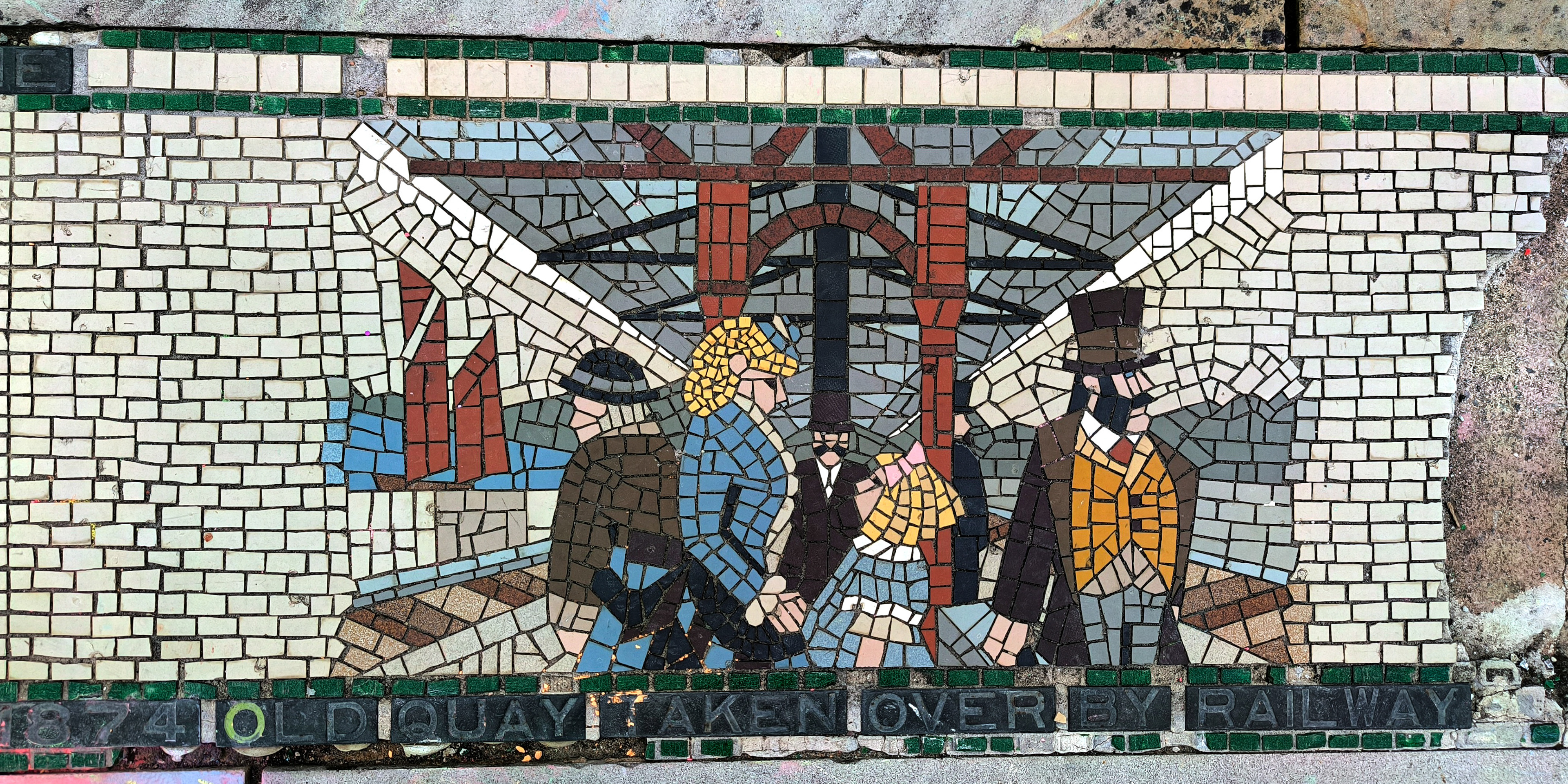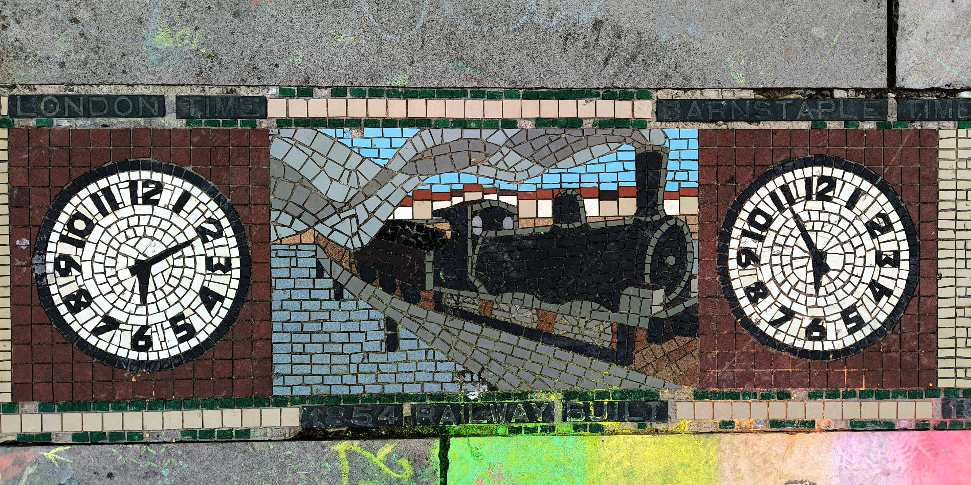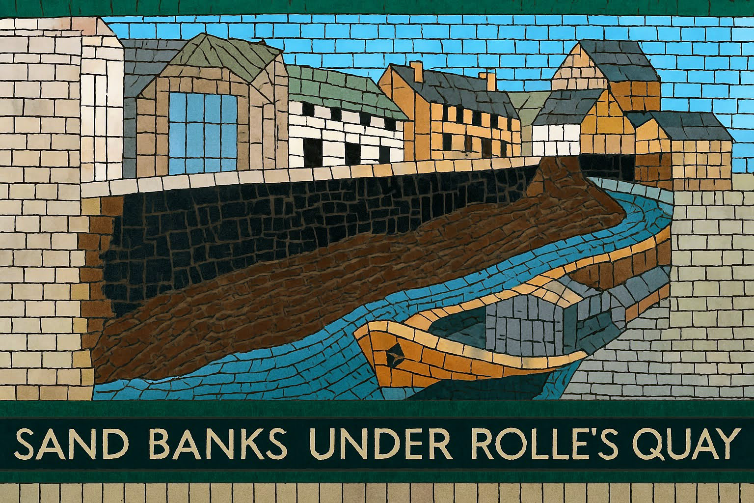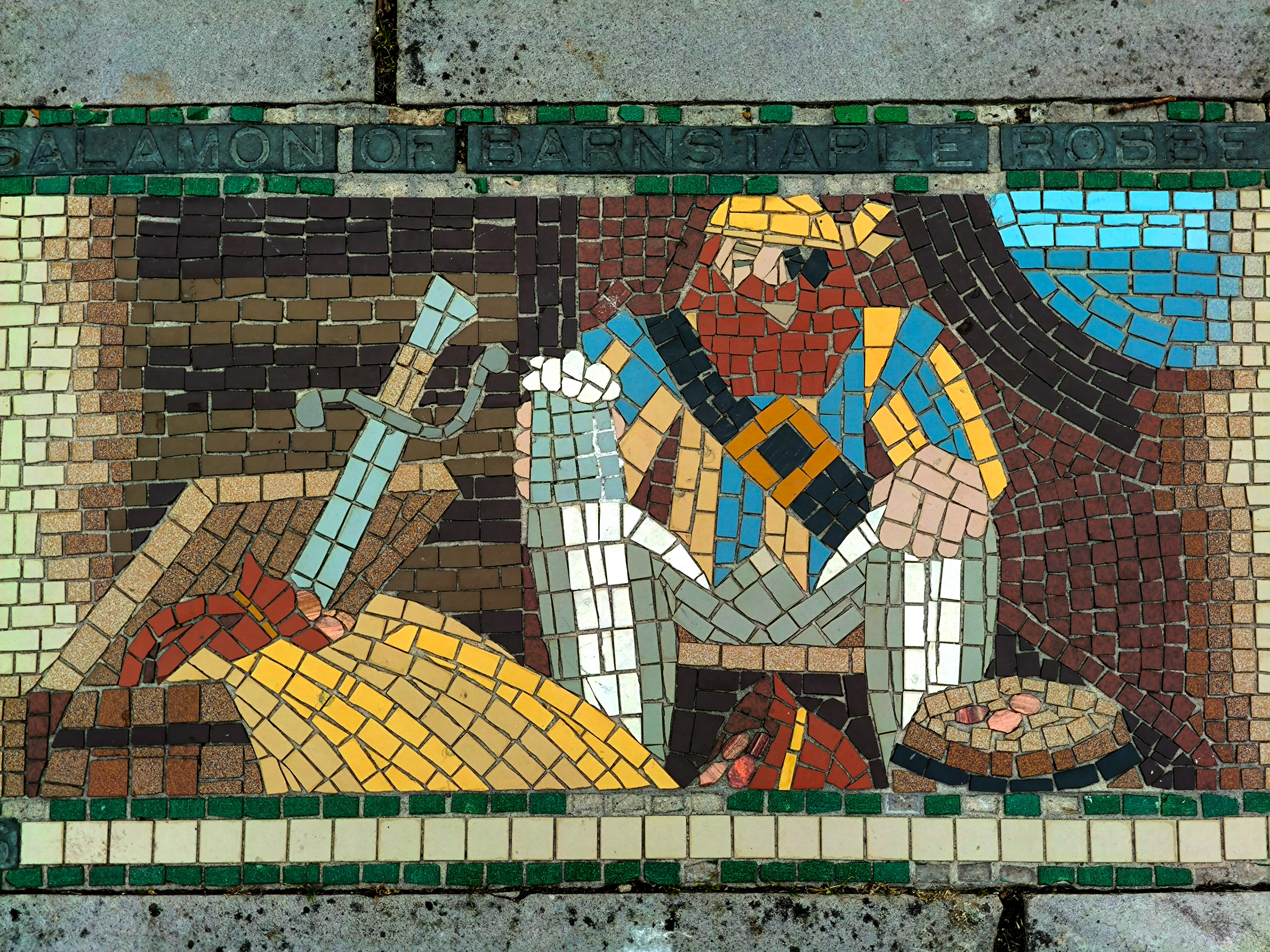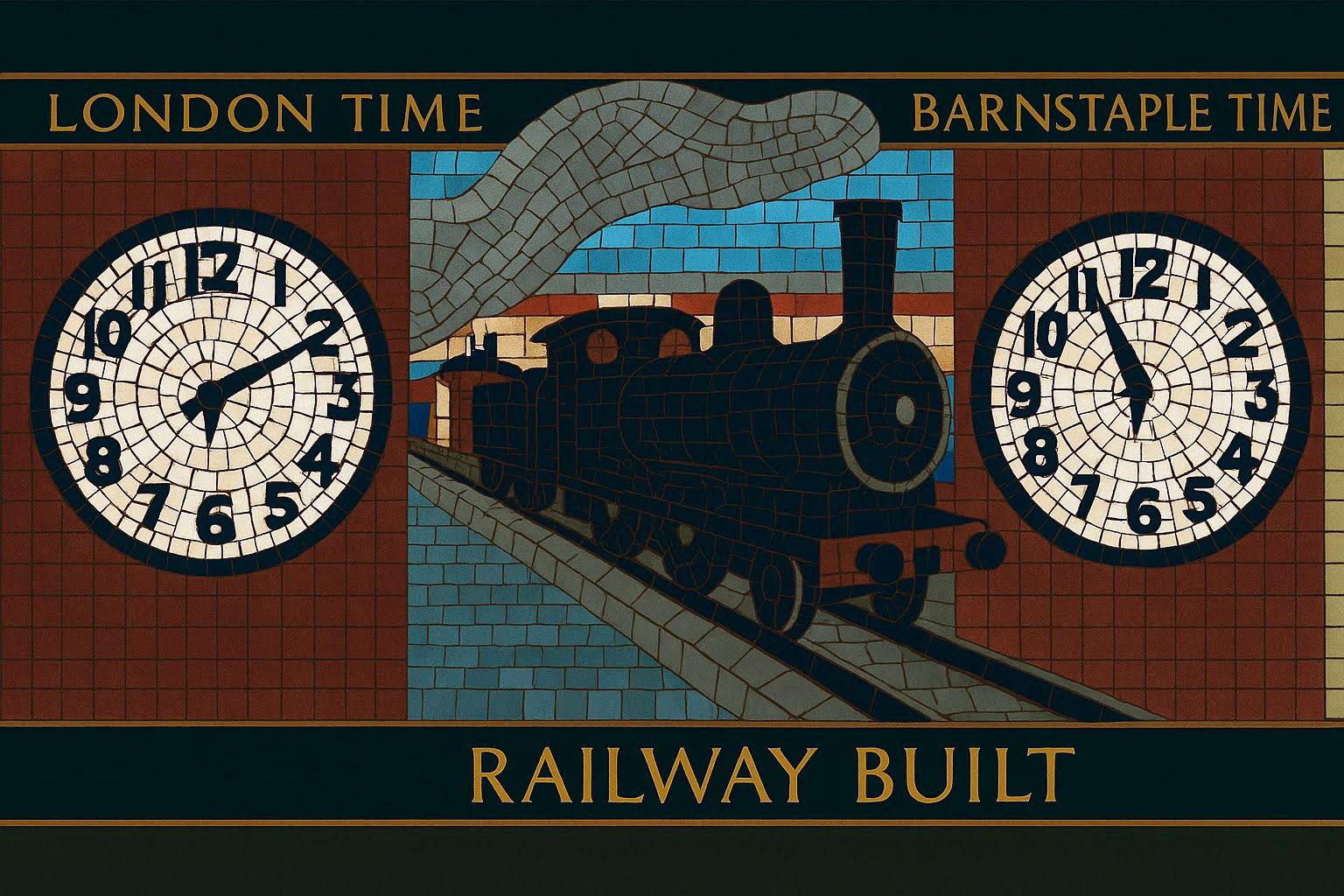 The AI reconstruction reimagines the mosaic not as a restored artifact, but as a living pattern — sharpening faded edges, reviving lost colors, and filling in gaps with a kind of respectful speculation. It becomes a digital echo of what the original might have looked like when newly laid, offering a glimpse into its former vibrancy without pretending to replace the real thing. Instead, the reconstruction works like a companion piece: a way to appreciate the mosaic’s geometry, rhythm, and craftsmanship with fresh eyes, bridging the tactile world of Barnstaple’s streets with the interpretive possibilities of modern technology.