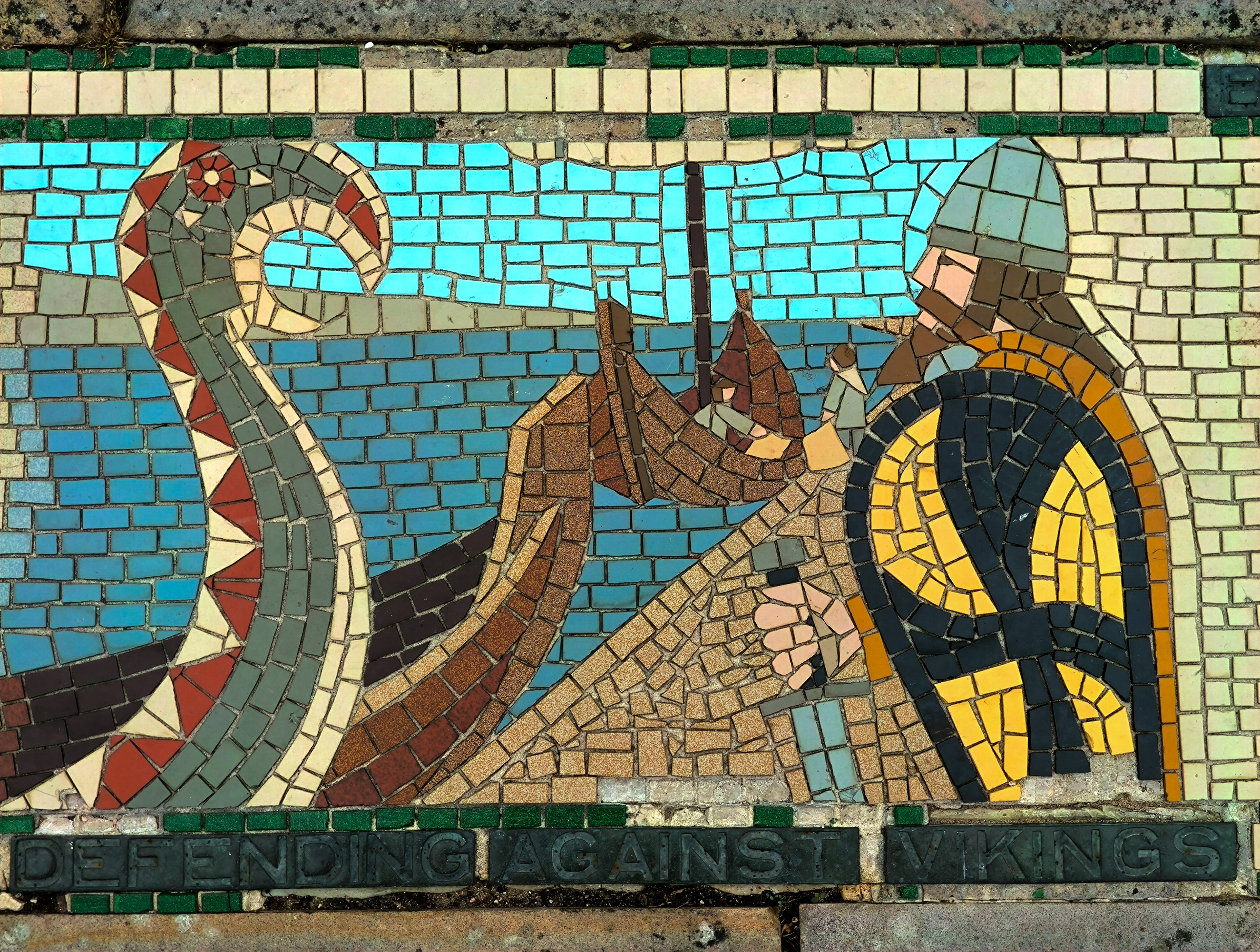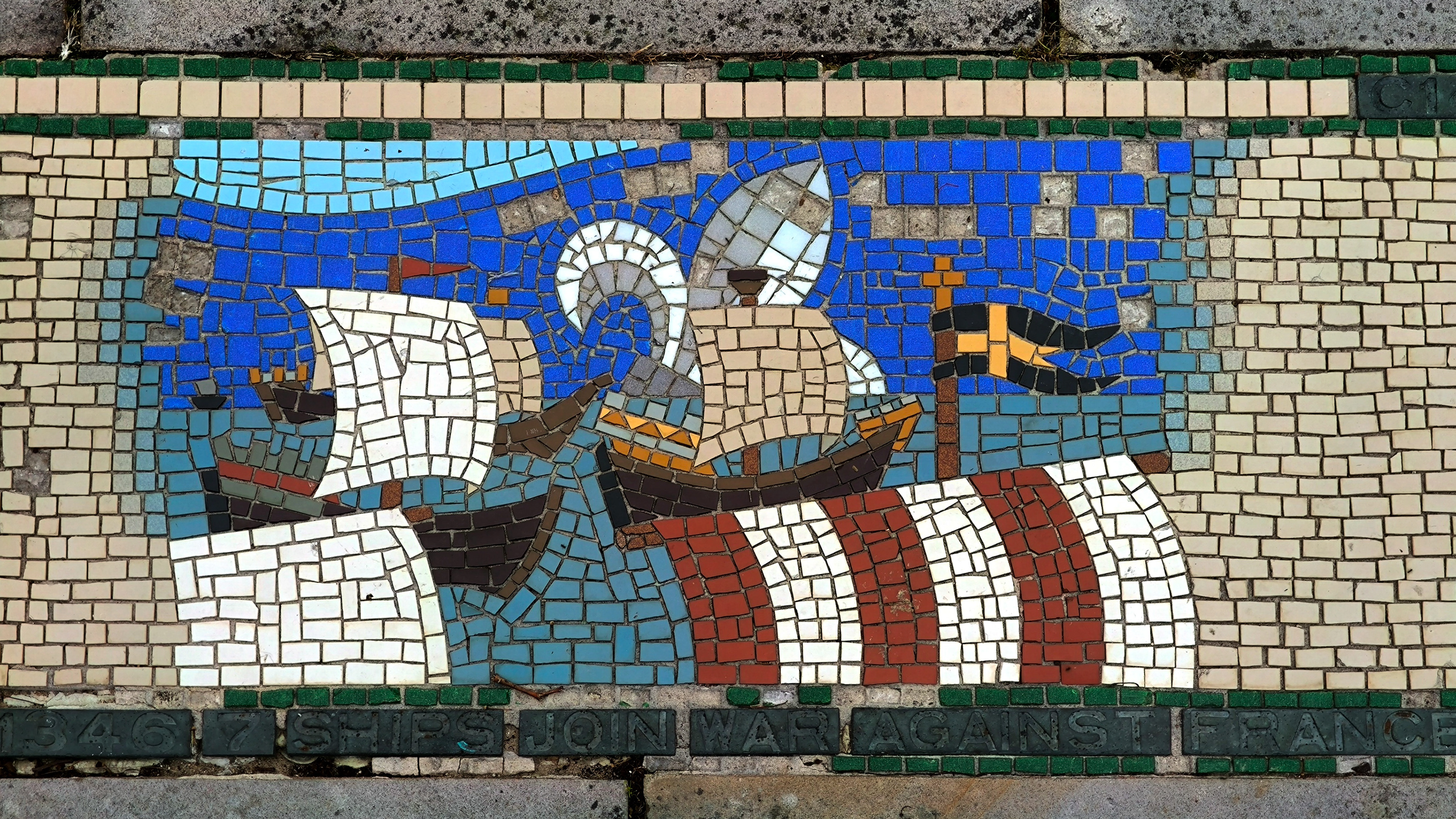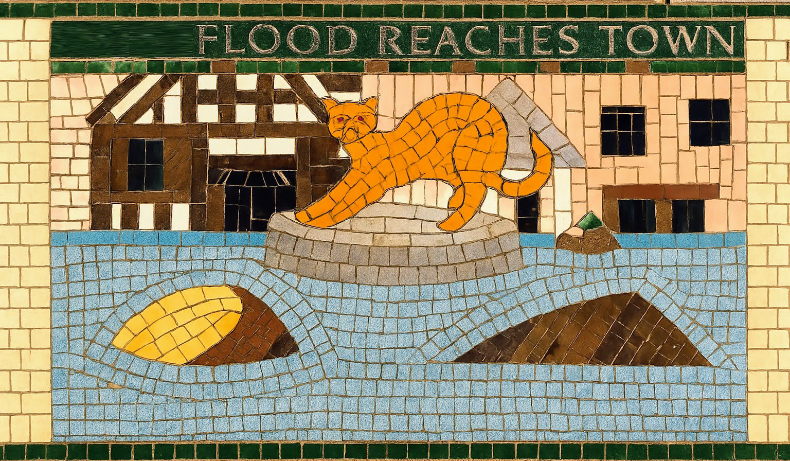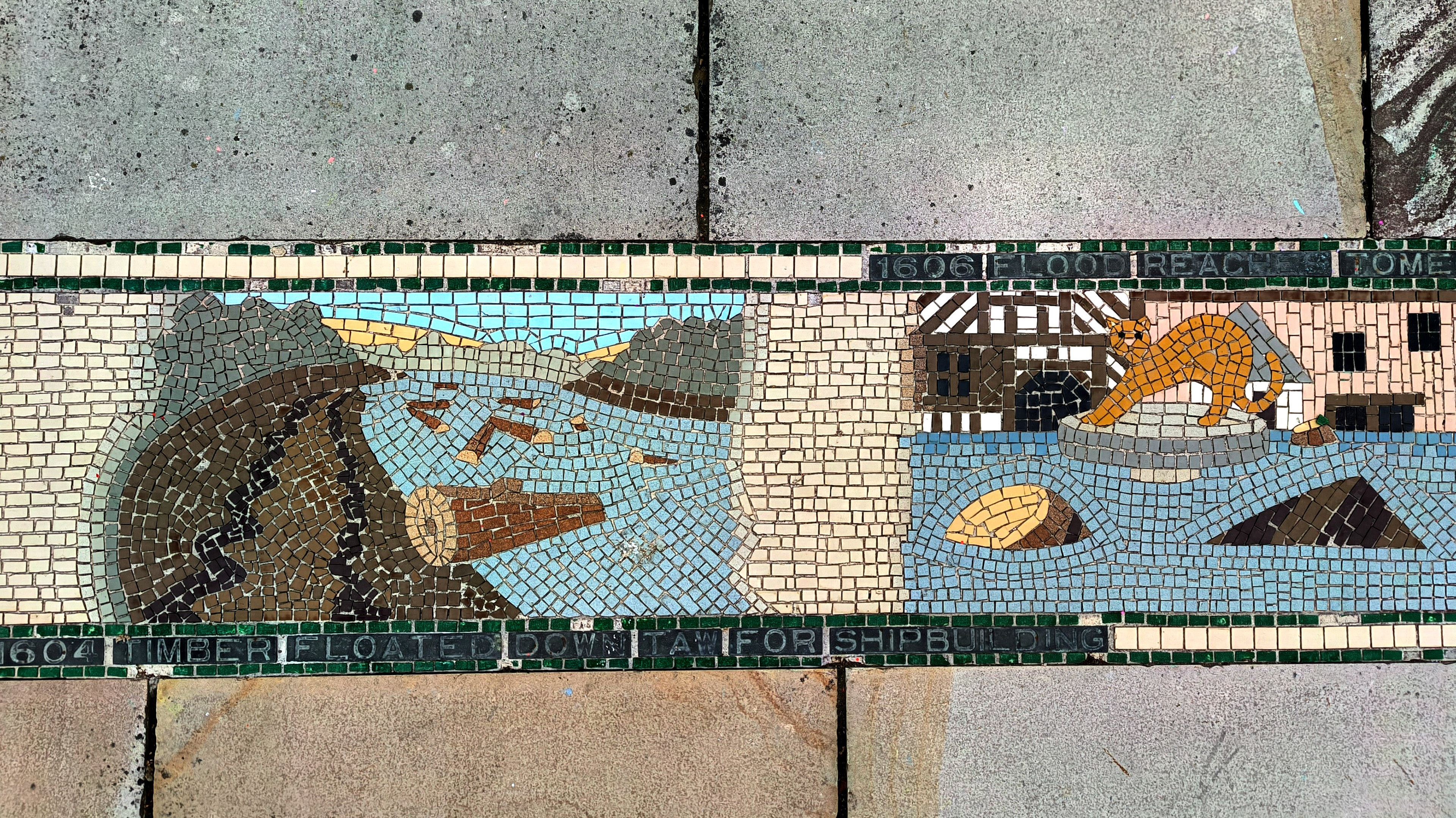 The AI reconstruction reimagines the mosaic not as a restored artifact, but as a living pattern — sharpening faded edges, reviving lost colors, and filling in gaps with a kind of respectful speculation. It becomes a digital echo of what the original might have looked like when newly laid, offering a glimpse into its former vibrancy without pretending to replace the real thing. Instead, the reconstruction works like a companion piece: a way to appreciate the mosaic’s geometry, rhythm, and craftsmanship with fresh eyes, bridging the tactile world of Barnstaple’s streets with the interpretive possibilities of modern technology.