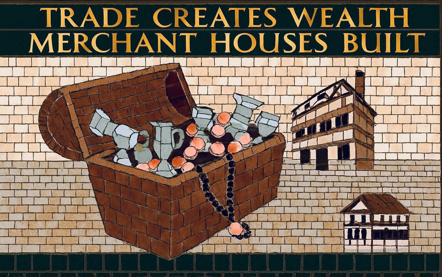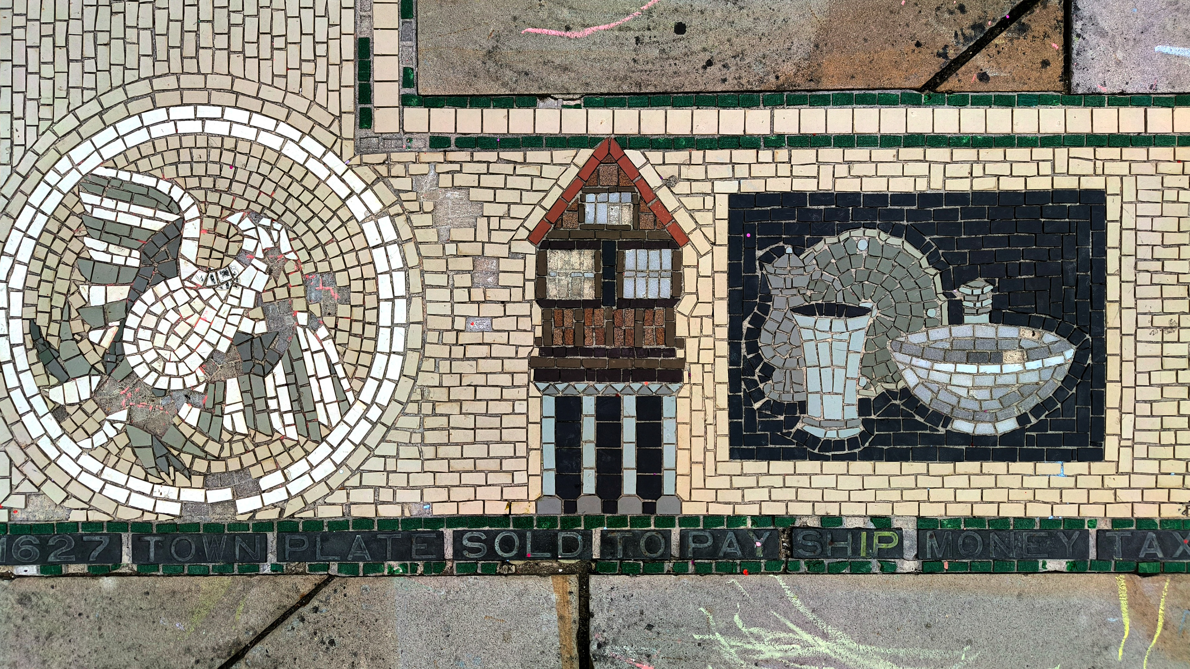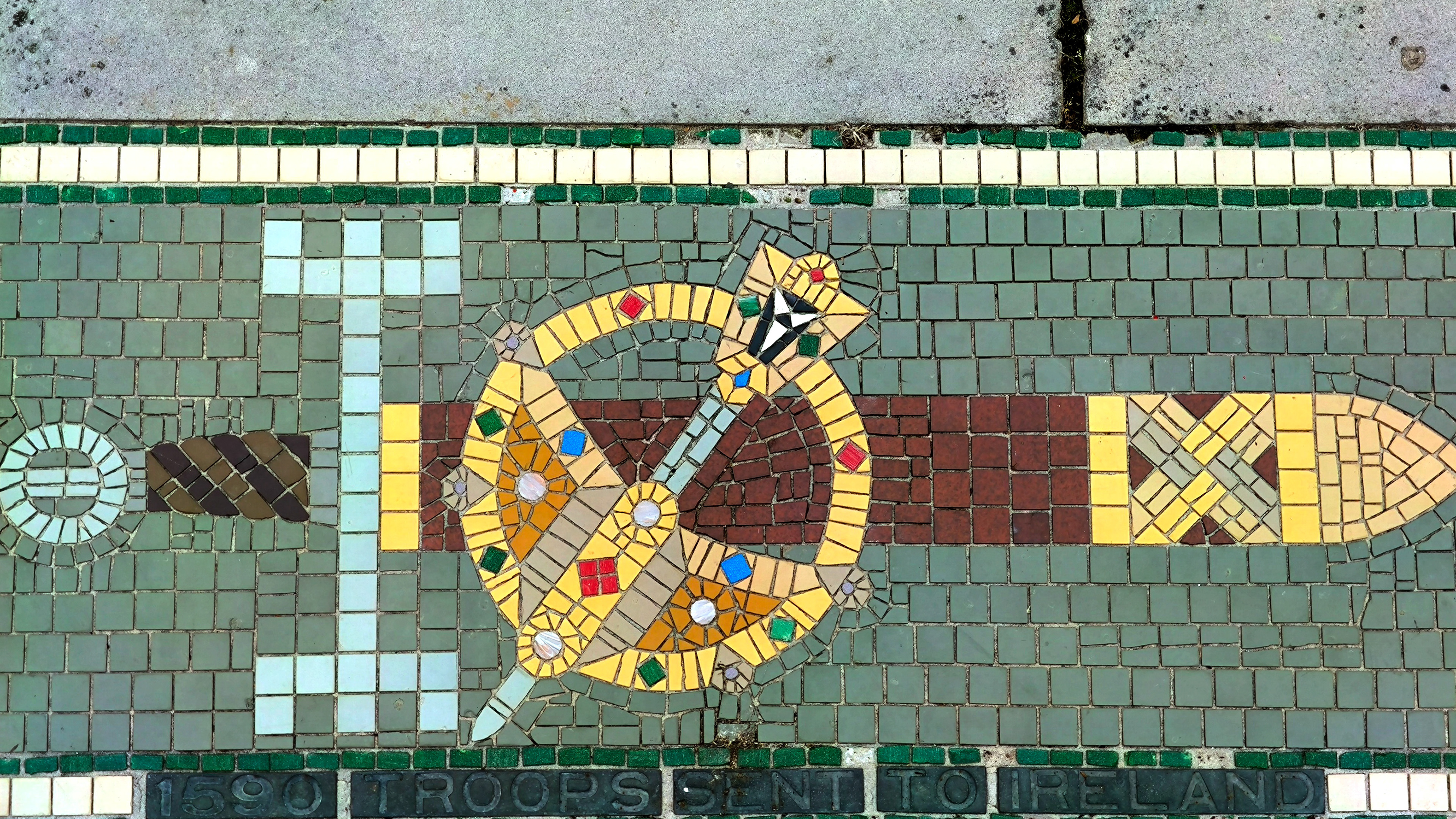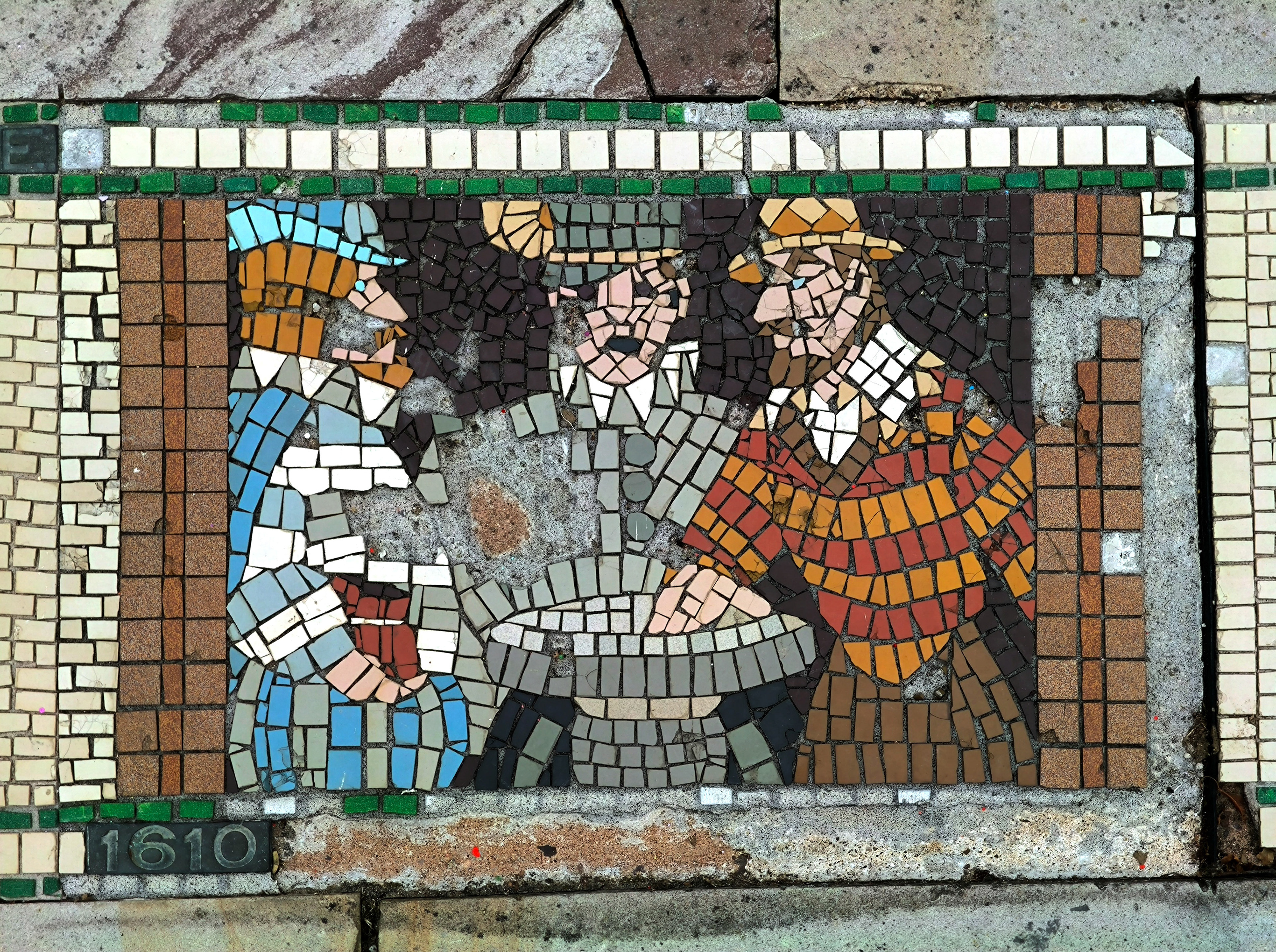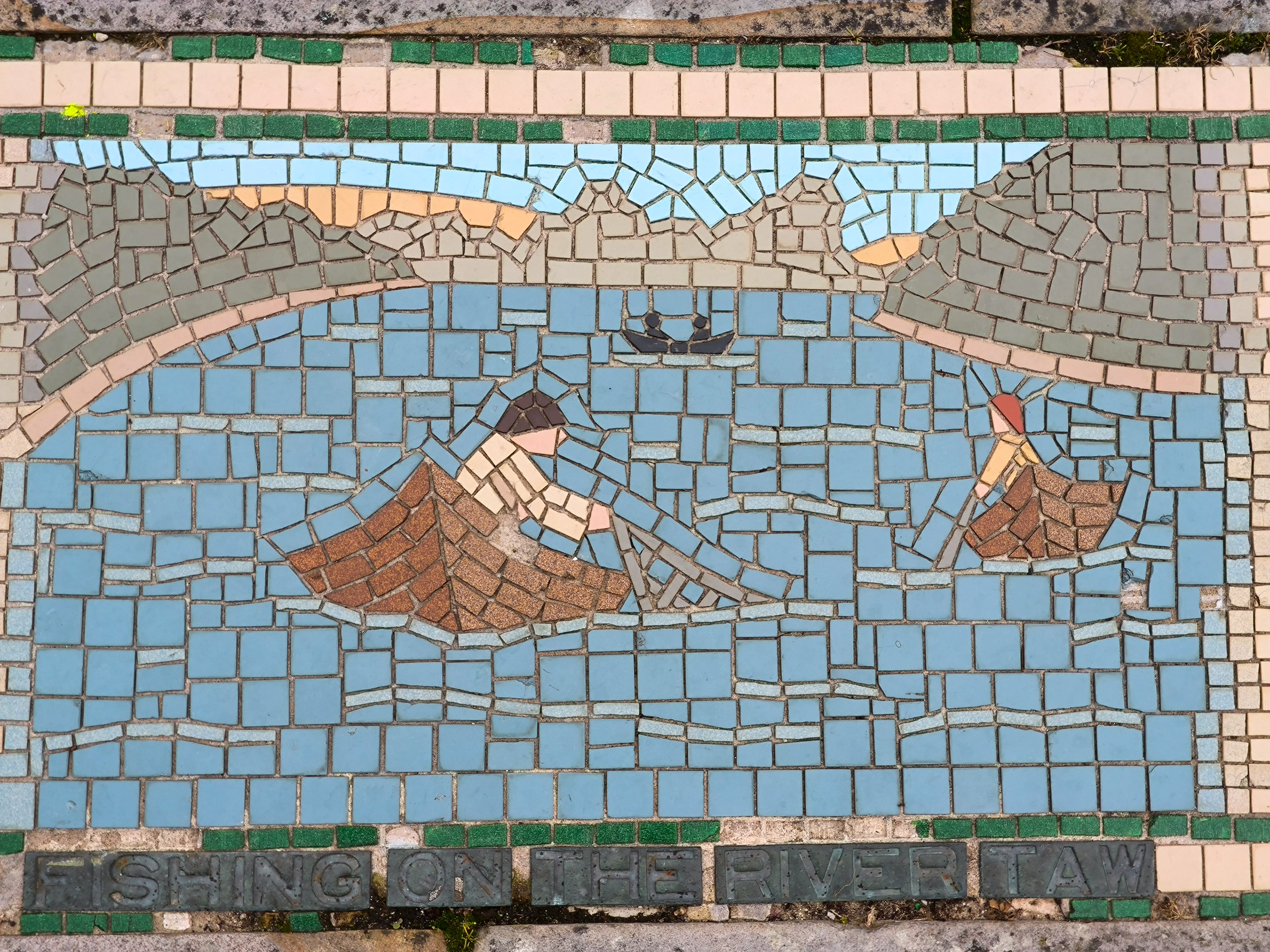 The AI reconstruction reimagines the mosaic not as a restored artifact, but as a living pattern — sharpening faded edges, reviving lost colors, and filling in gaps with a kind of respectful speculation. It becomes a digital echo of what the original might have looked like when newly laid, offering a glimpse into its former vibrancy without pretending to replace the real thing. Instead, the reconstruction works like a companion piece: a way to appreciate the mosaic’s geometry, rhythm, and craftsmanship with fresh eyes, bridging the tactile world of Barnstaple’s streets with the interpretive possibilities of modern technology.