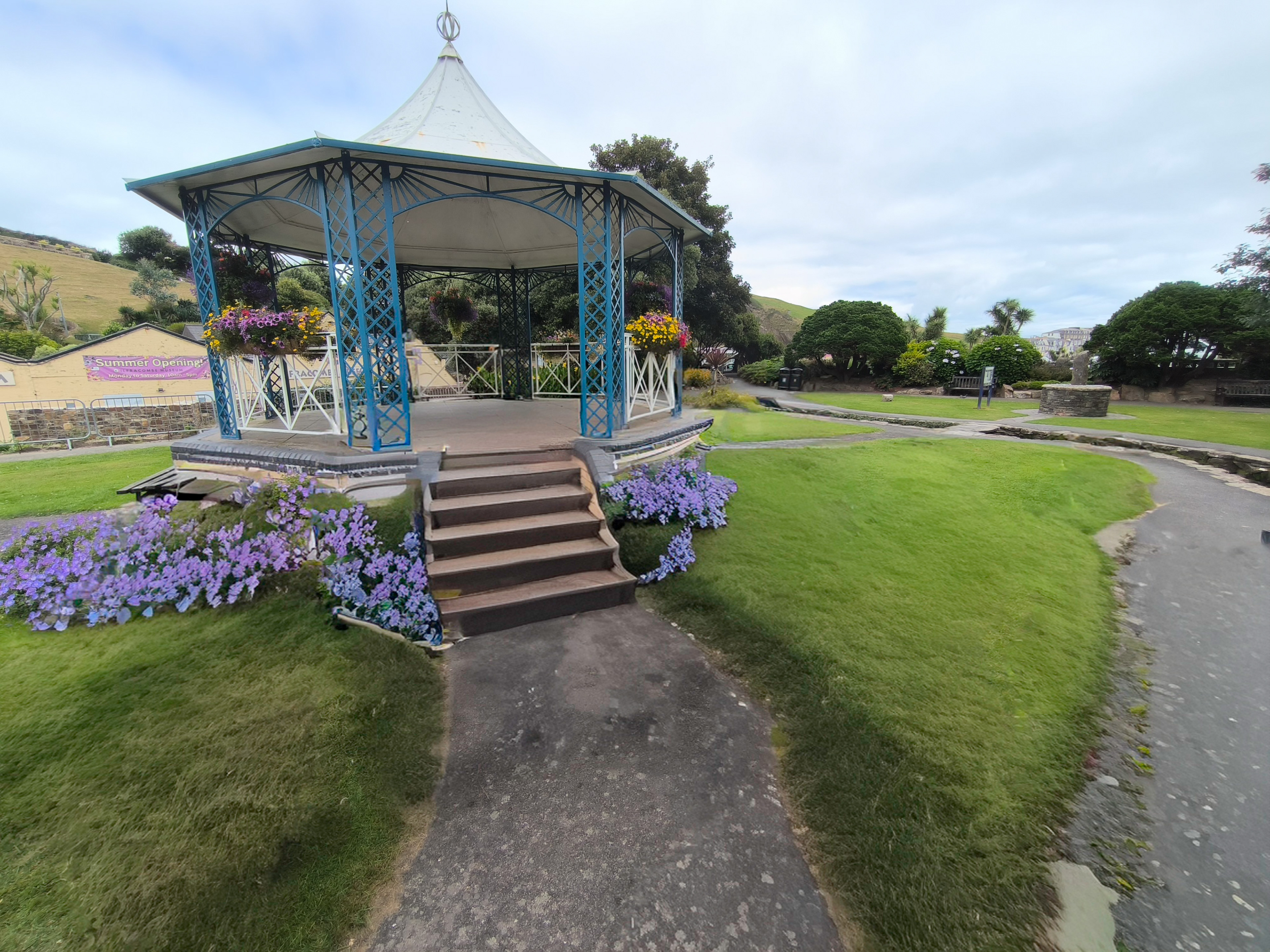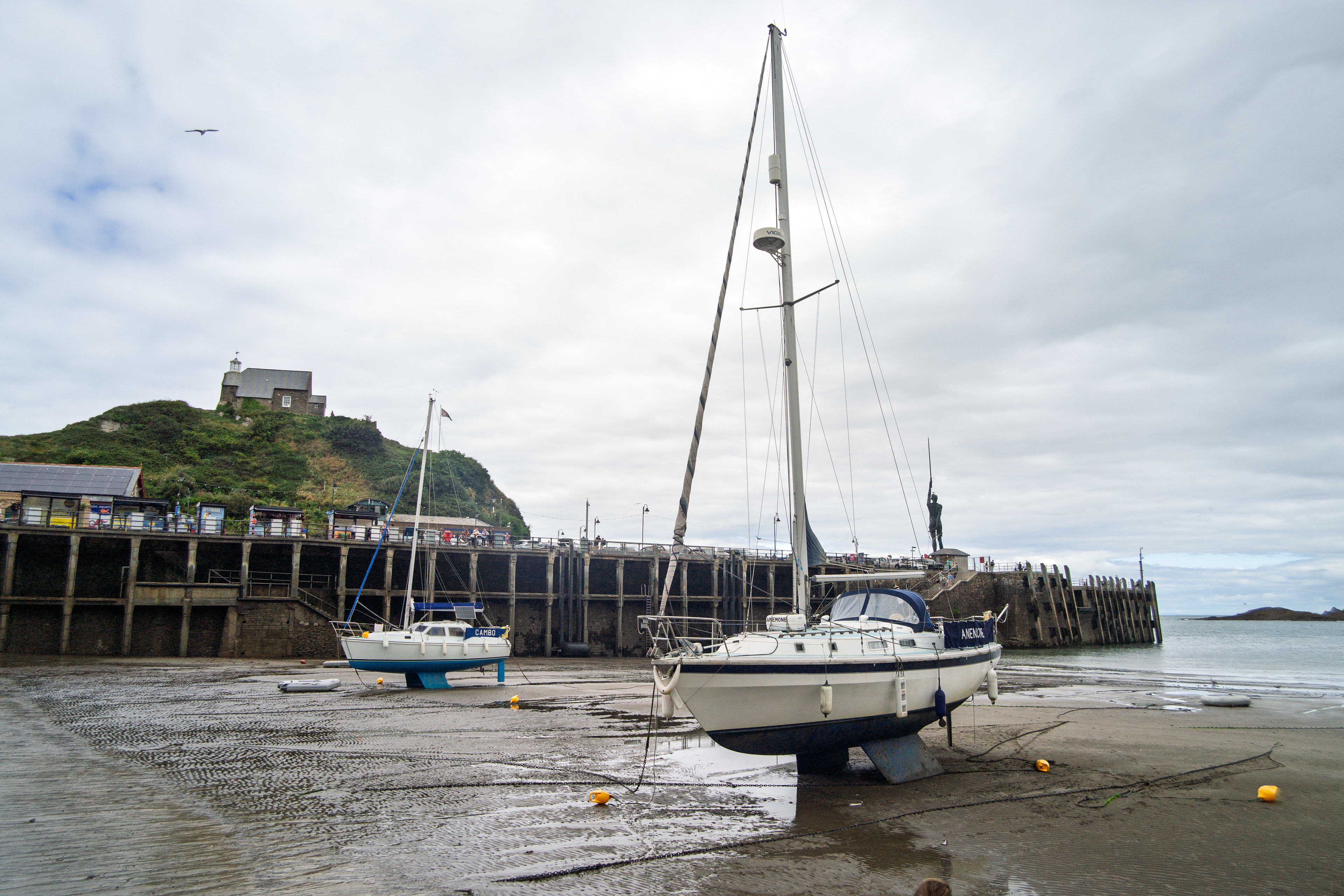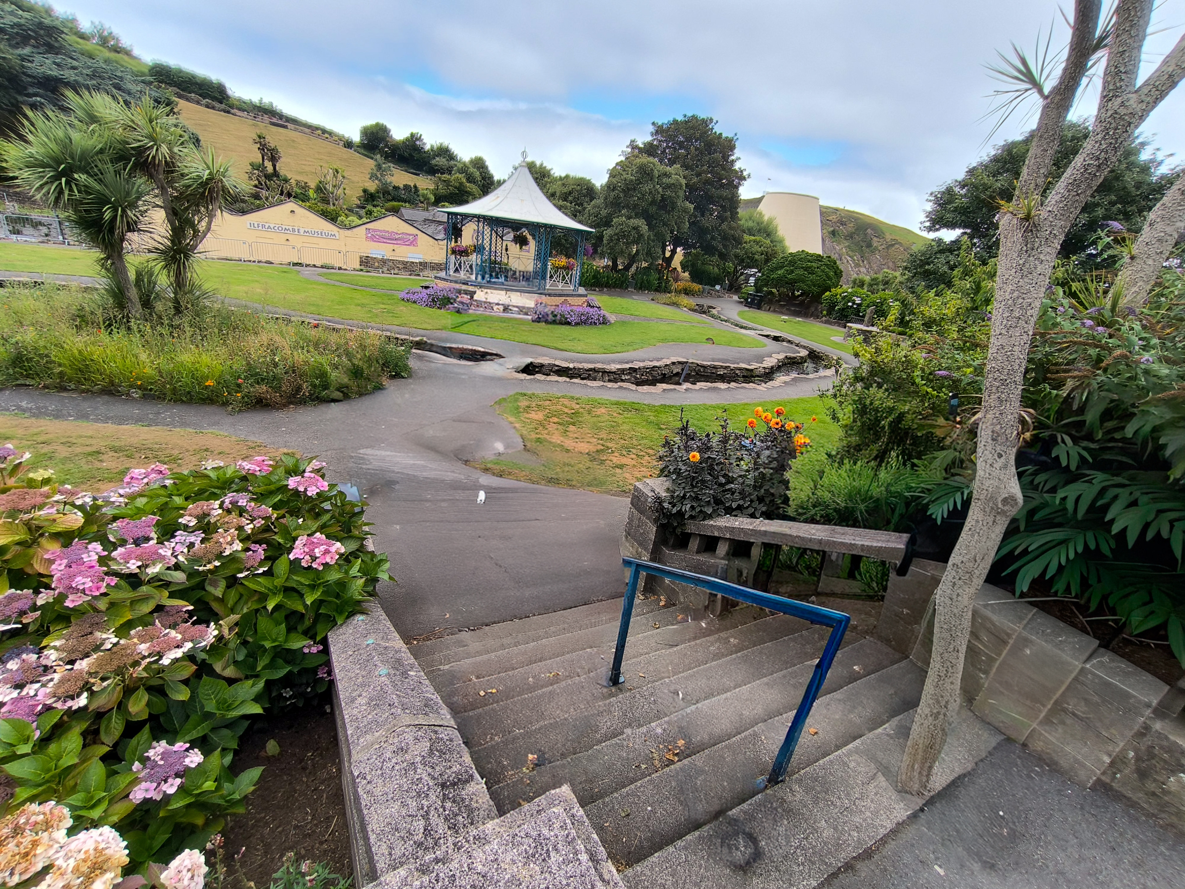 In the height of summer, Ilfracombe feels like a coastal town in full bloom — the harbour alive with visitors, fishing boats, and the steady presence of the RNLI lifeboats ready for their next call, while Damien Hirst’s striking harbour statue rises above it all like a modern sentinel watching over the bay. The Victorian terraces glow in warm light, the sea shifts between turquoise and slate, and the promenade fills with the easy rhythm of holiday wanderers drifting between ice‑cream shops, galleries, and the curve of the cliffs. Up on the headlands, sweeping views open toward the Bristol Channel, and the mix of lively seaside energy and rugged coastline gives Ilfracombe a summer character that feels both vibrant and timeless.