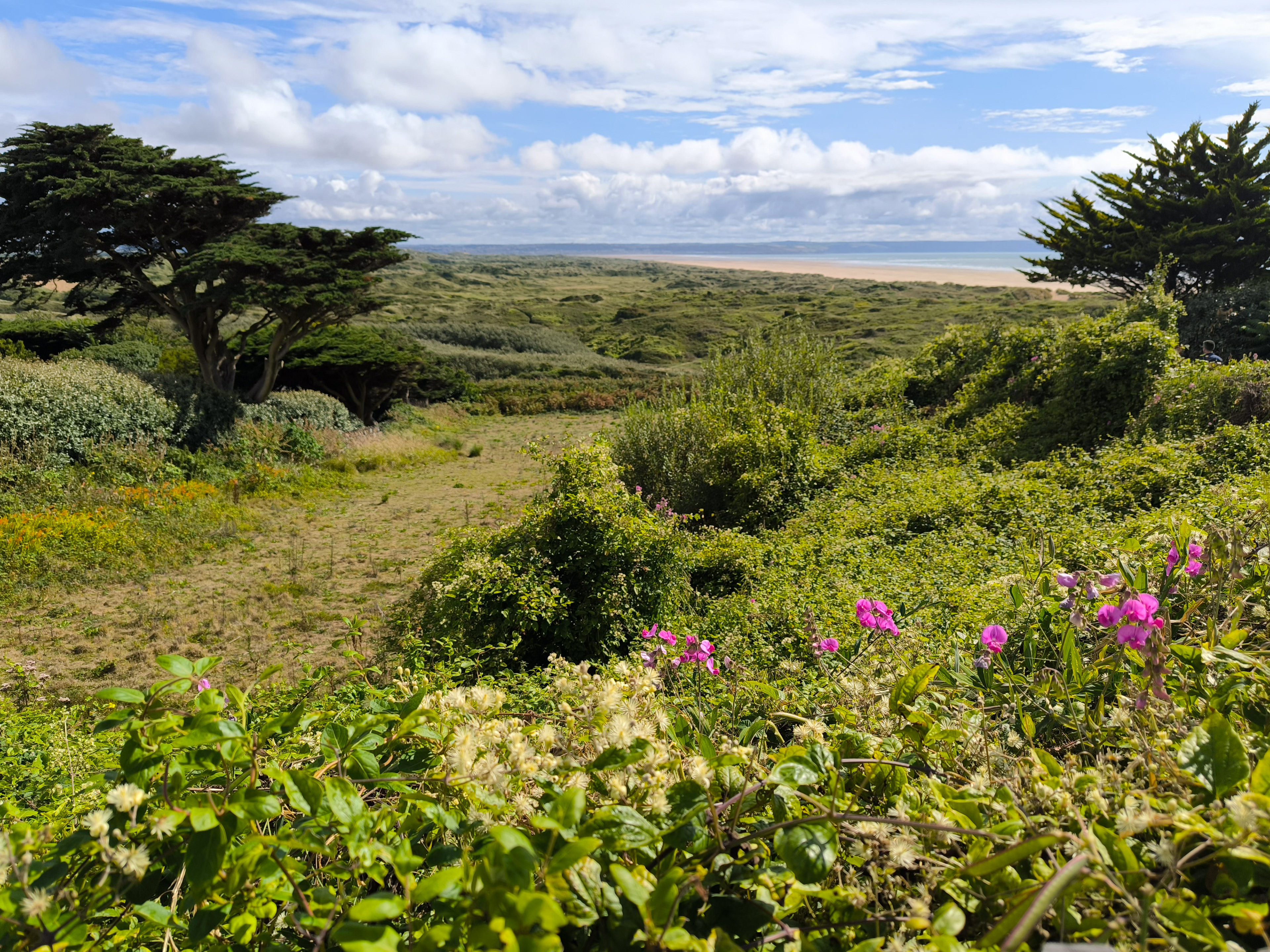 Unfolded along one of North Devon’s most beautiful coastal stretches, starting on the wide, golden expanse of Saunton Sands, where the tide pulled long silver reflections across the beach and surfers drifted like small silhouettes against the Atlantic. From there the path led into the vast dune system of Braunton Burrows, a UNESCO Biosphere Reserve where sandy trails weave through wildflowers, quiet pockets of shade, and the soft hum of insects hidden in the grass. By the time the day reached Croyde, the village felt like a perfect coastal exhale — surf shops, stone cottages, and the curve of the bay glowing in the late‑afternoon light. It was a day shaped by wind, water, and the slow rhythm of walking between landscapes that feel both rugged and deeply peaceful.