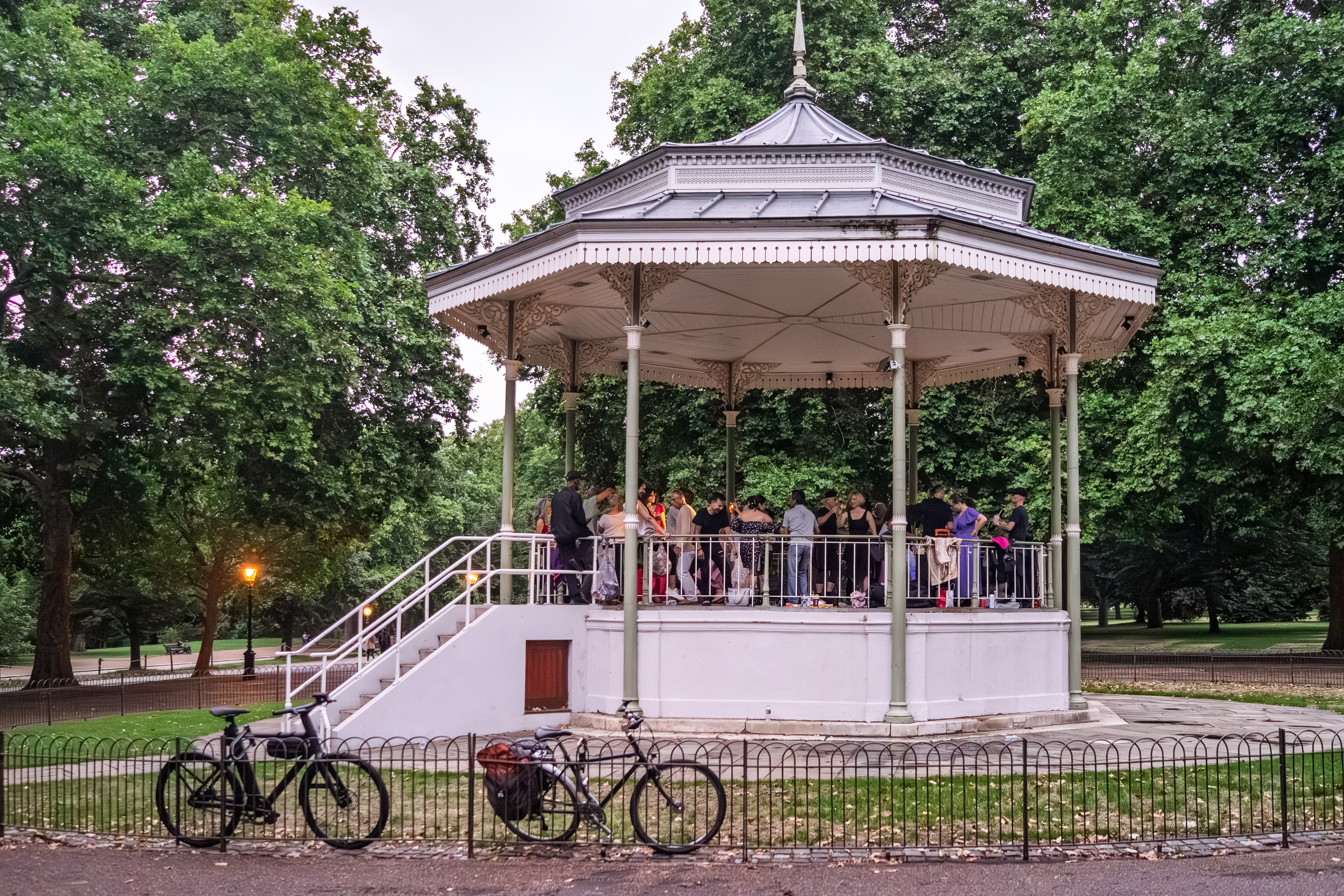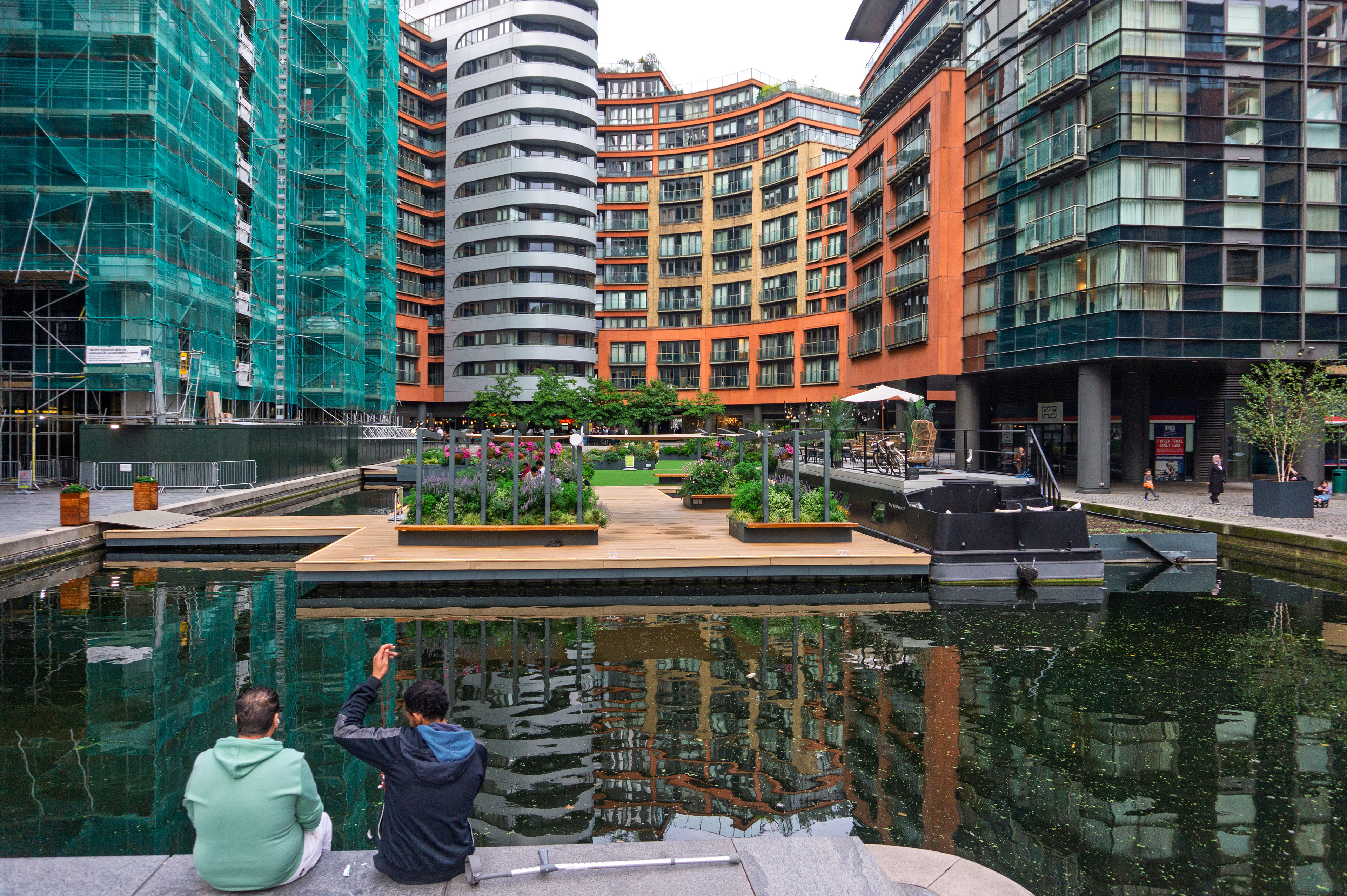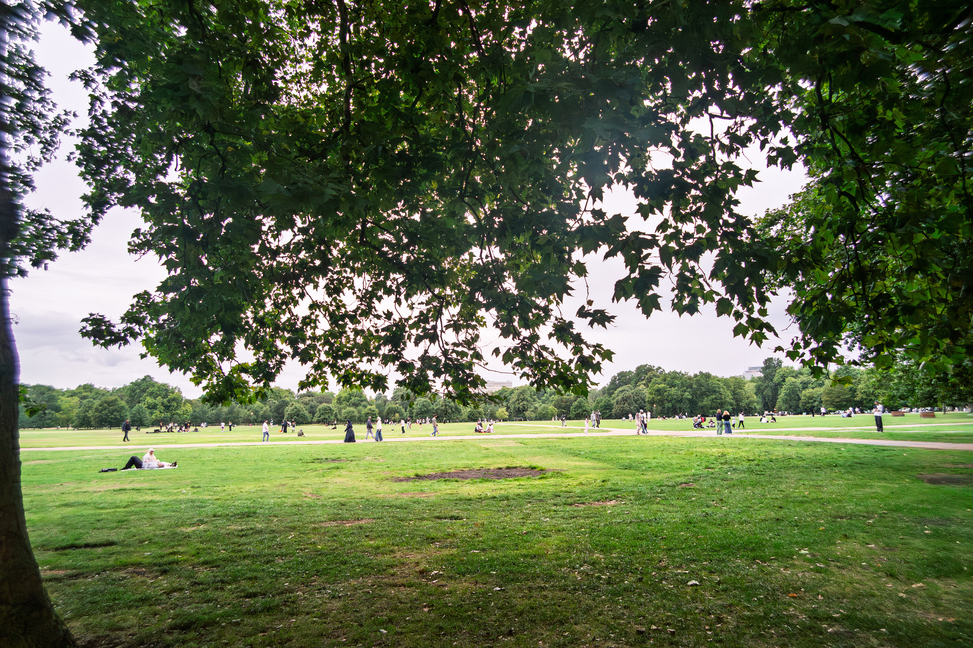 An early‑August walk in London drifts effortlessly between river, park, and canal — starting along the Thames where people gather outside riverside pubs, the tide low enough to reveal the wooden ribs of the embankment, and bridges casting long shadows across the shore. From there the city softens into green: wide lawns dotted with picnics, sculptures rising from quiet corners, and bandstands filled with music, dancing, and the hum of weekend conversations. Later, the walk slips into the canal districts, where colourful boats, floating gardens, and bright murals turn the water into a moving gallery, and people sit at the edge of the towpath with their feet almost touching the reflections. London in early August feels both lively and unhurried — a city stretching out in the warmth, inviting you to wander without a plan.