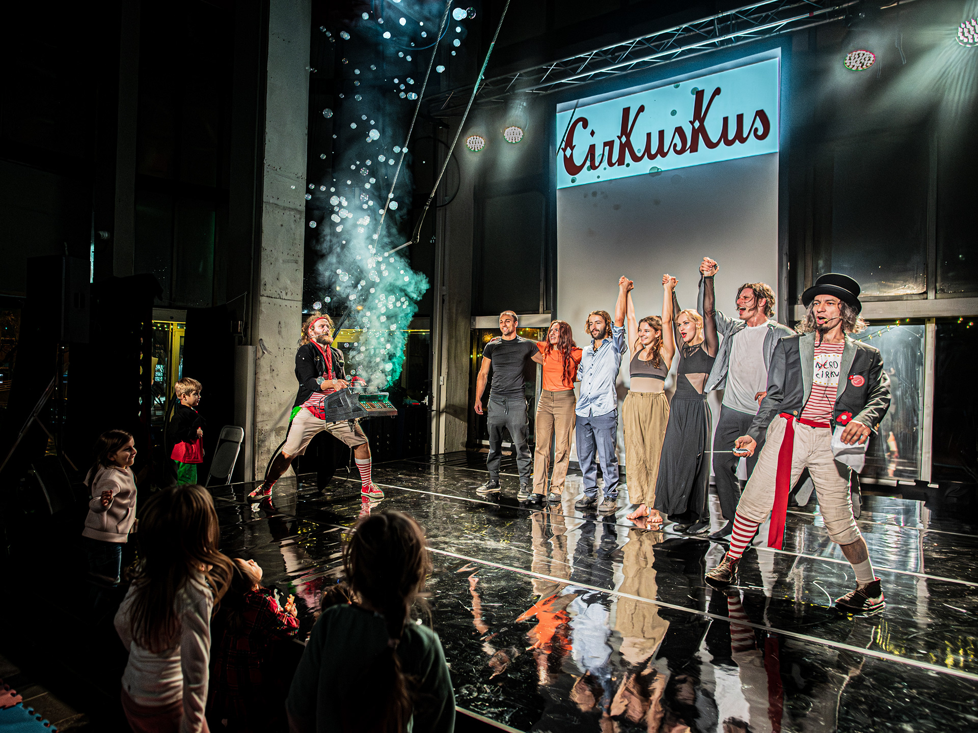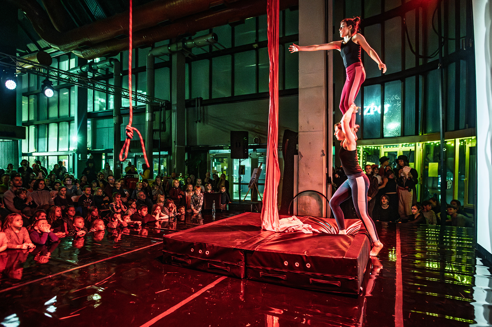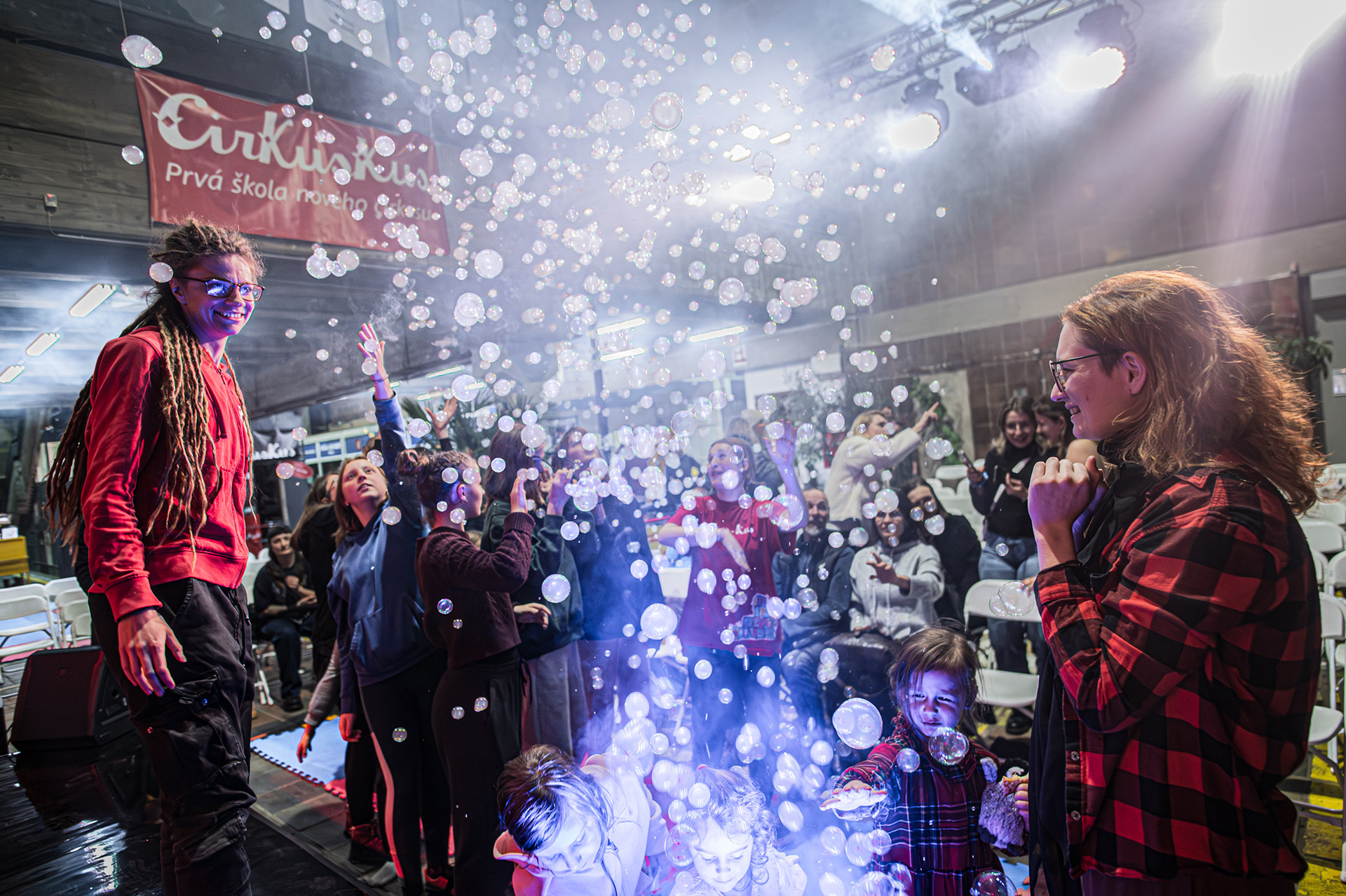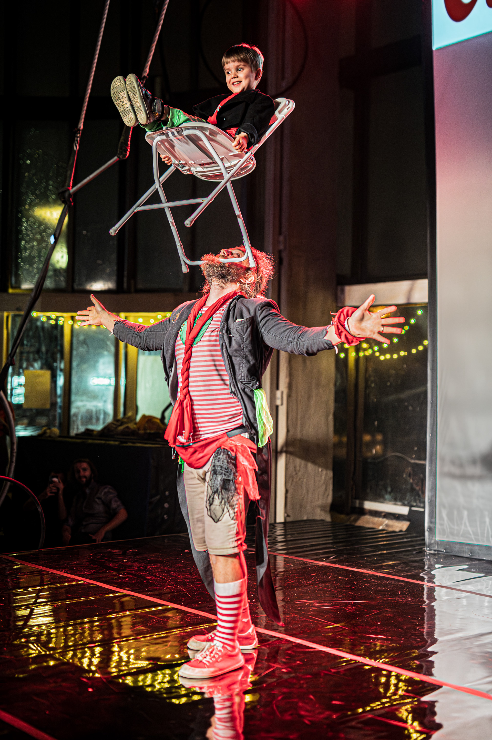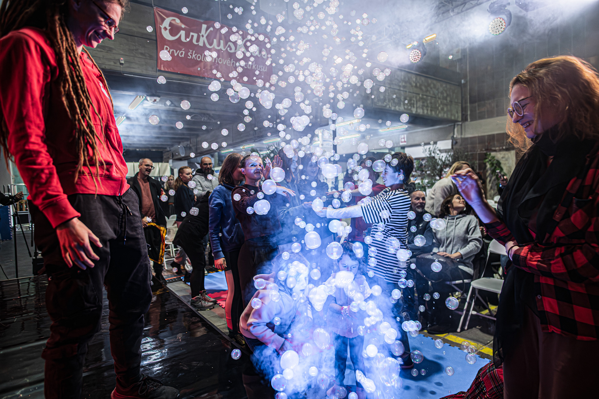 Záver večera patril Open Stage, kde dostali priestor amatéri, študenti aj skúsení performeri. Krátke čísla, improvizácie a experimentálne pokusy vytvorili pestrú mozaiku, ktorá ukázala, aký otvorený a inkluzívny je svet nového cirkusu.