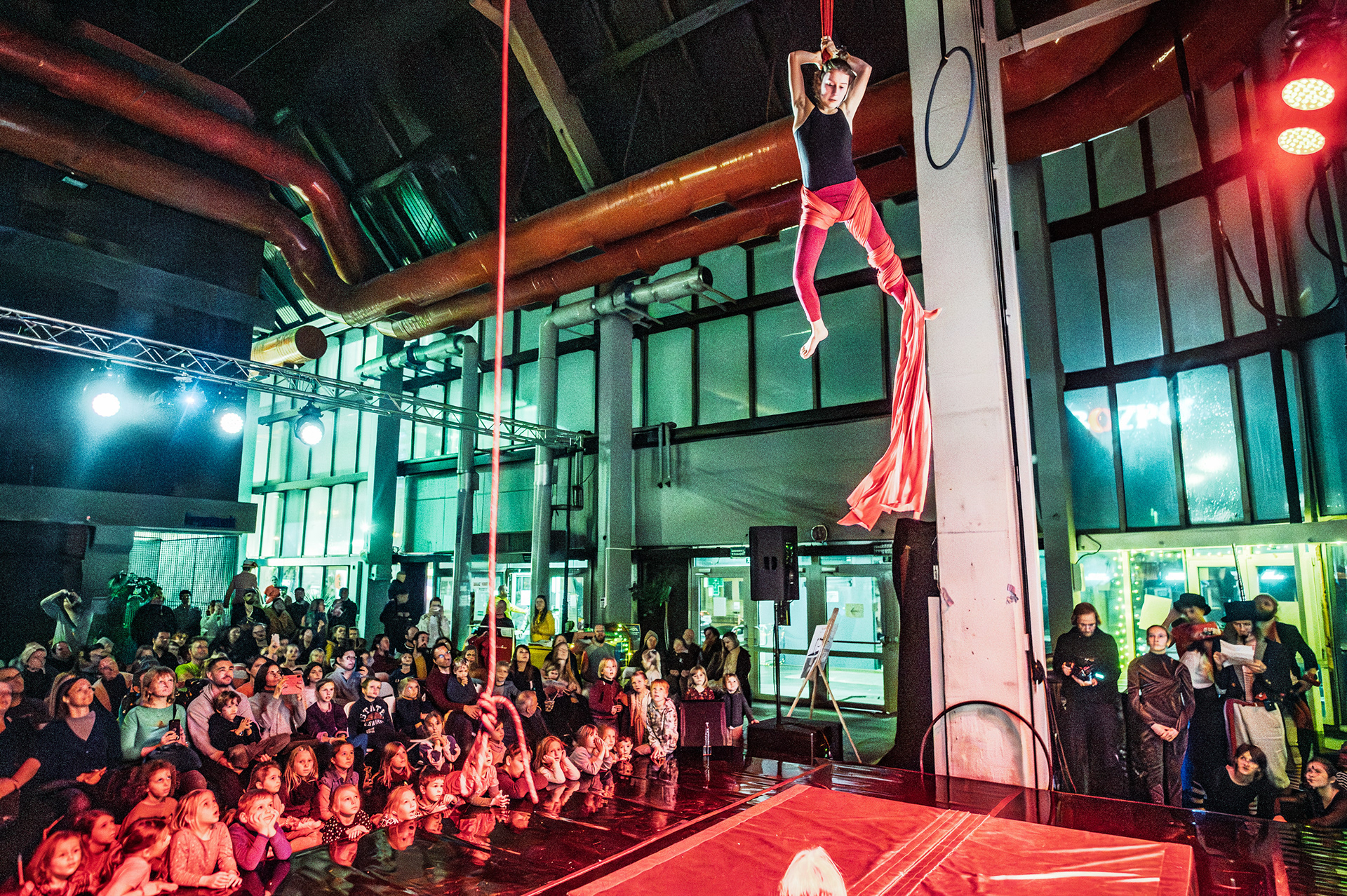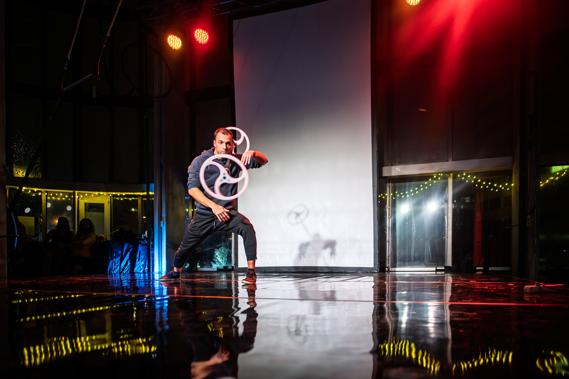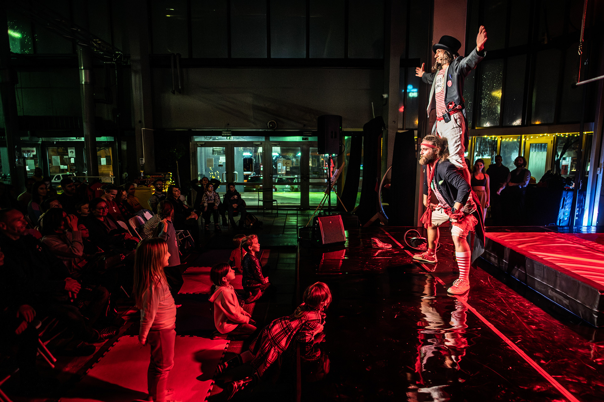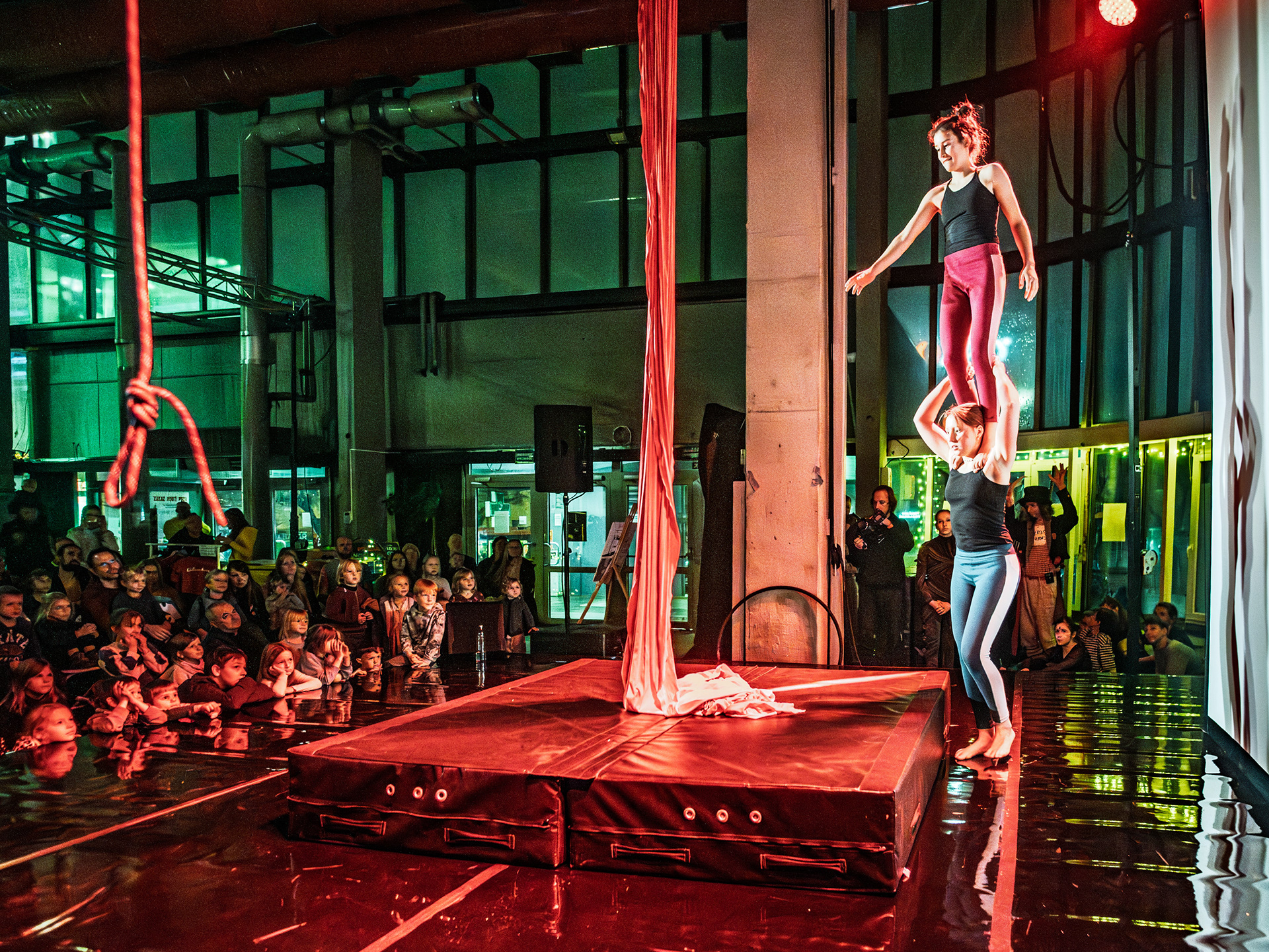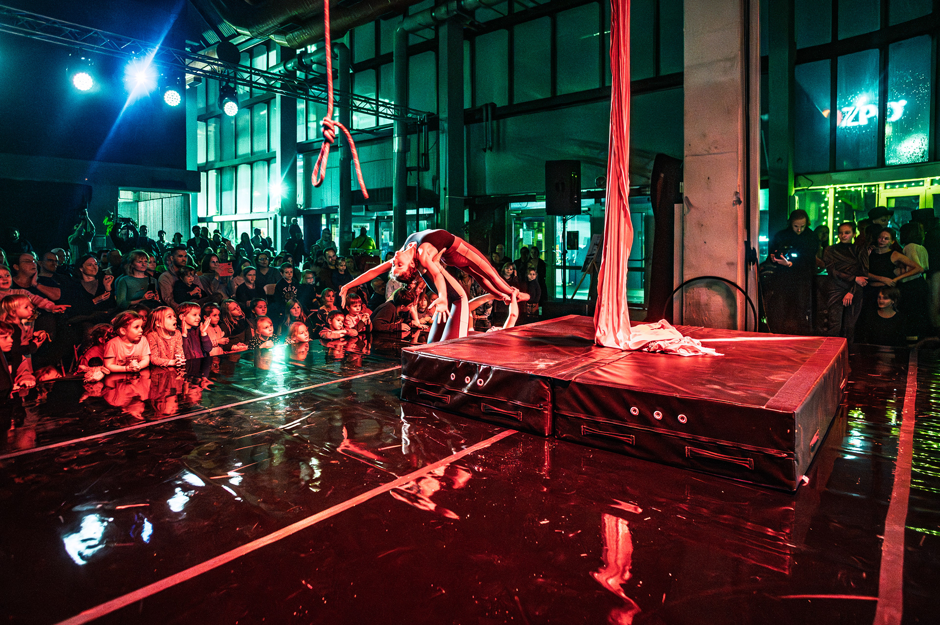 Záver večera patril Open Stage, kde dostali priestor amatéri, študenti aj skúsení performeri. Krátke čísla, improvizácie a experimentálne pokusy vytvorili pestrú mozaiku, ktorá ukázala, aký otvorený a inkluzívny je svet nového cirkusu.