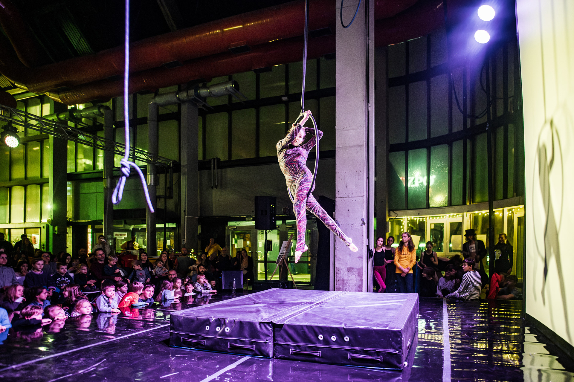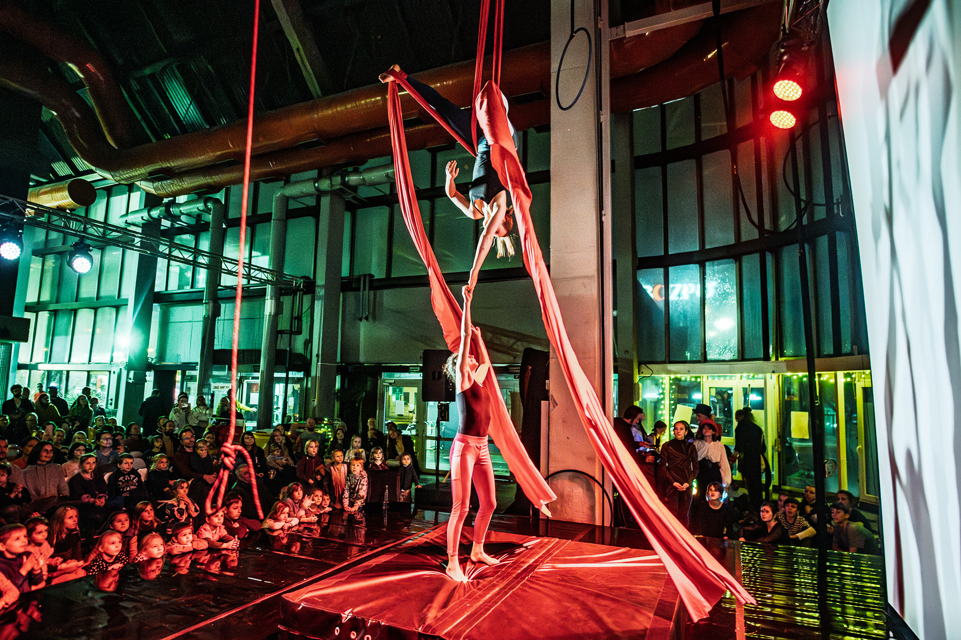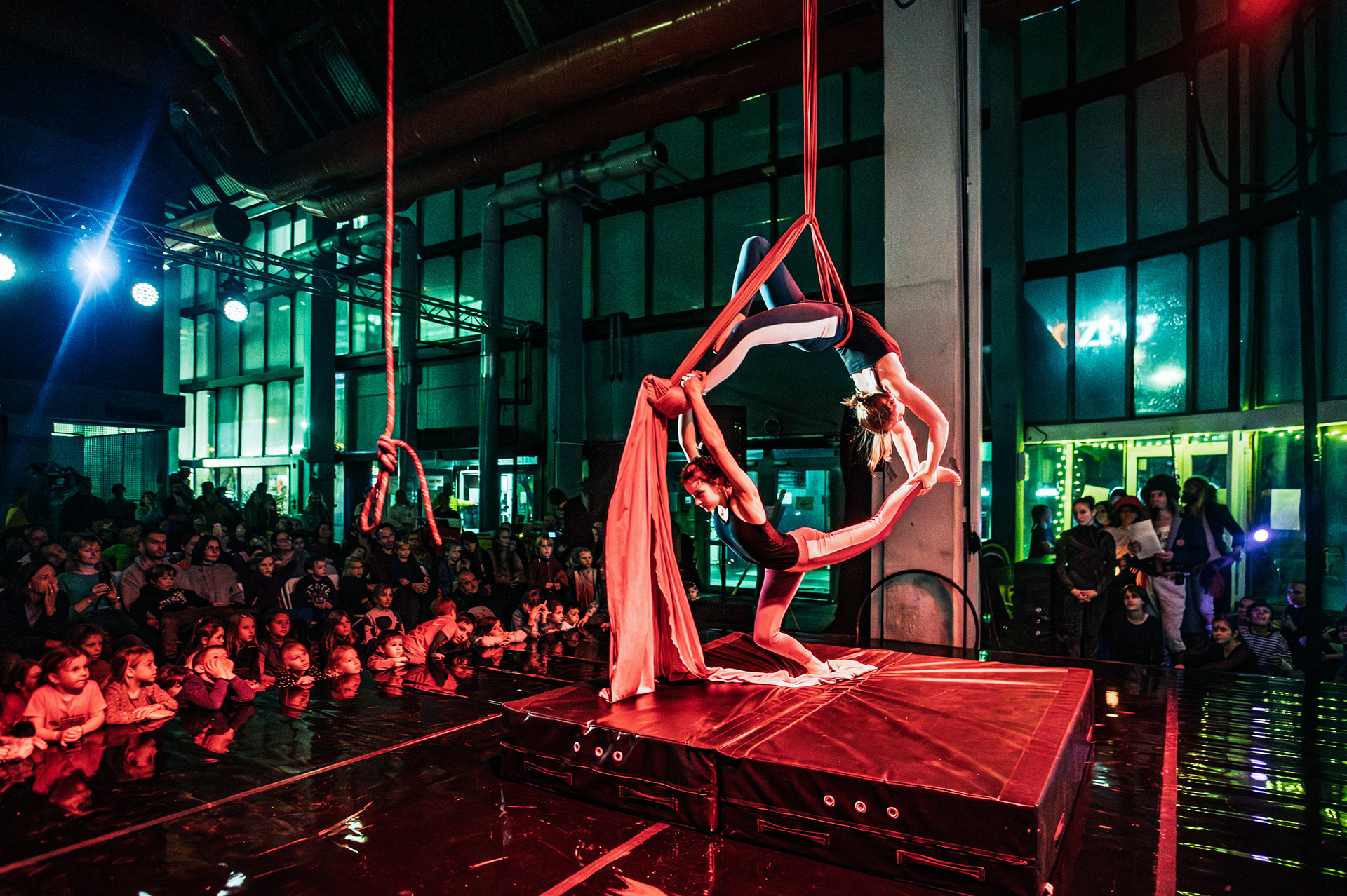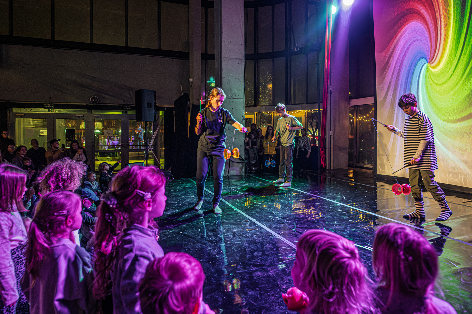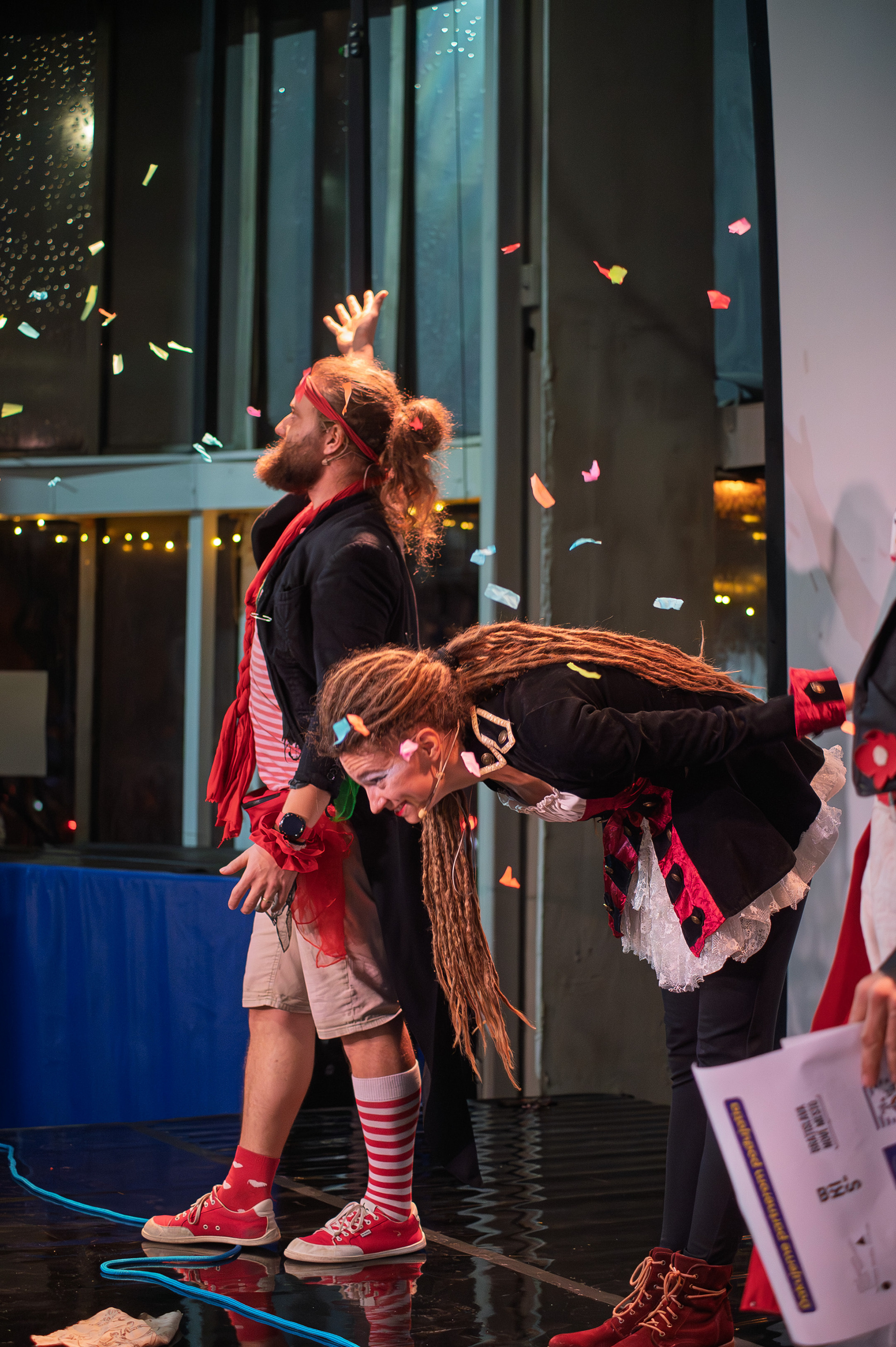 Záver večera patril Open Stage, kde dostali priestor amatéri, študenti aj skúsení performeri. Krátke čísla, improvizácie a experimentálne pokusy vytvorili pestrú mozaiku, ktorá ukázala, aký otvorený a inkluzívny je svet nového cirkusu.