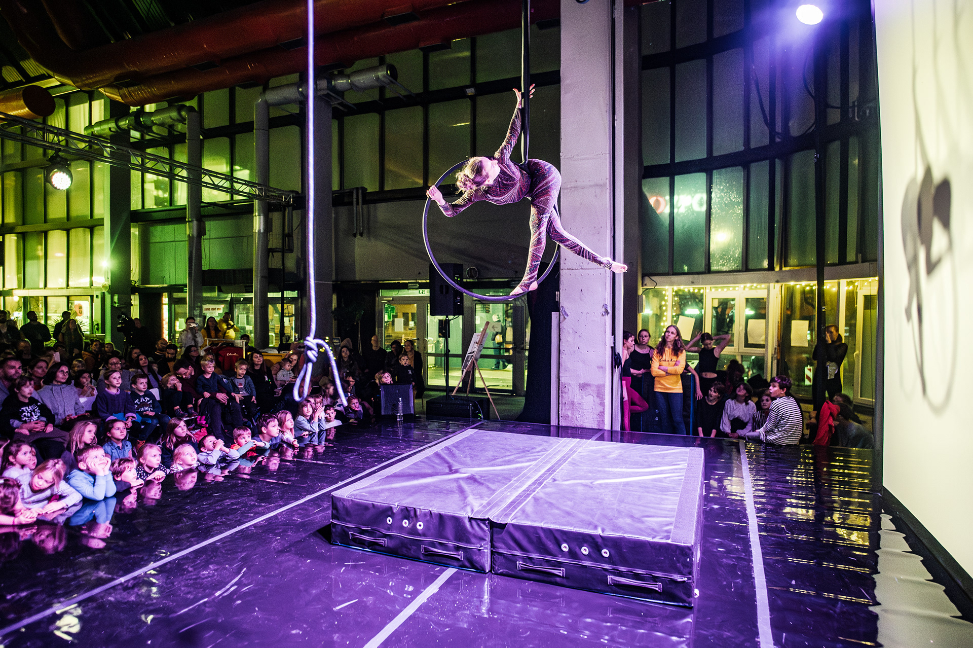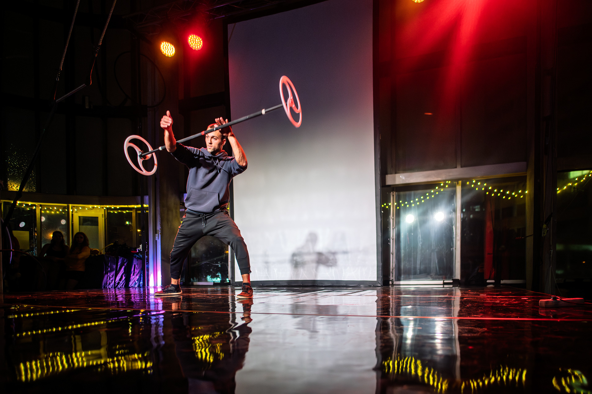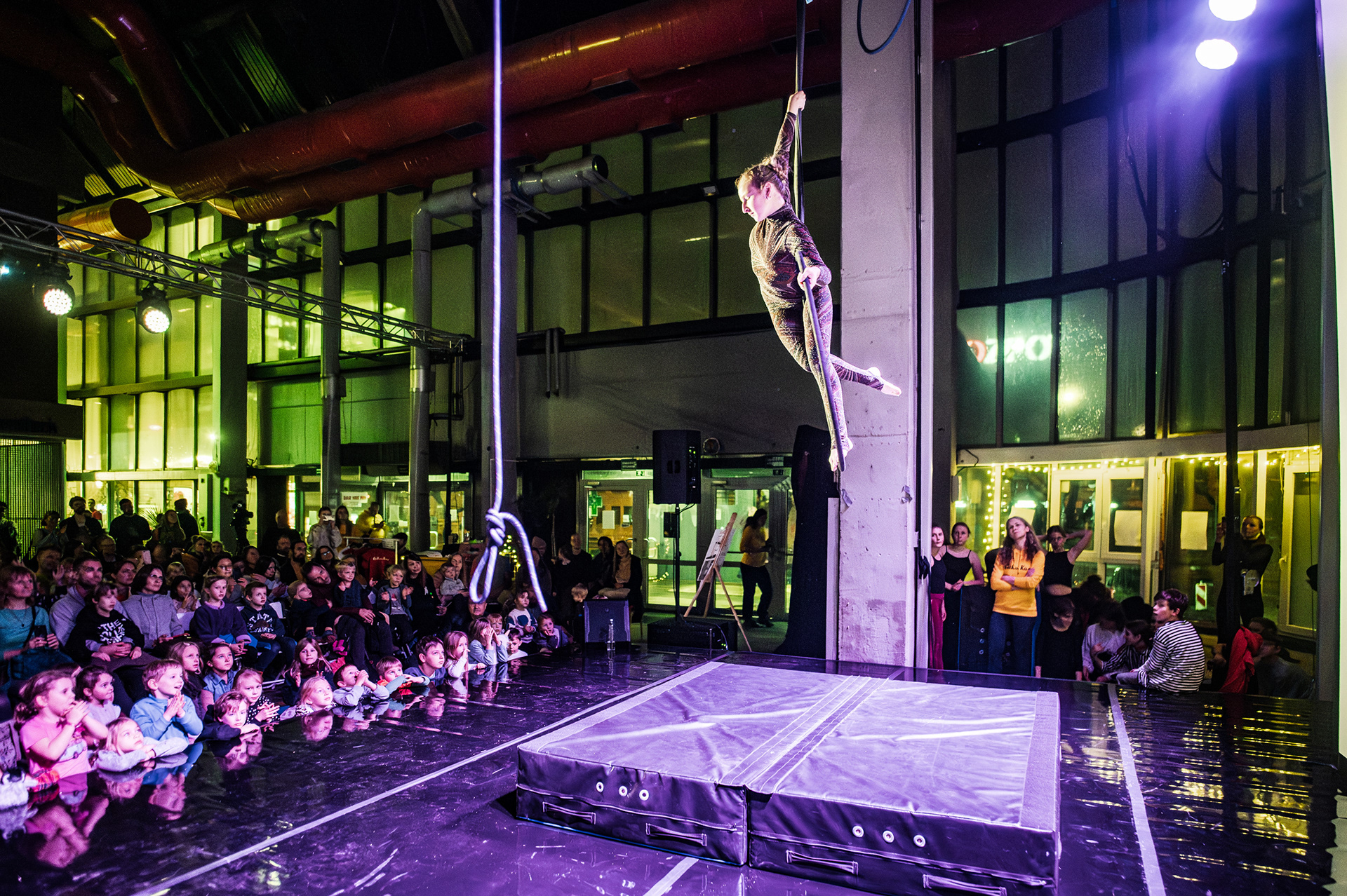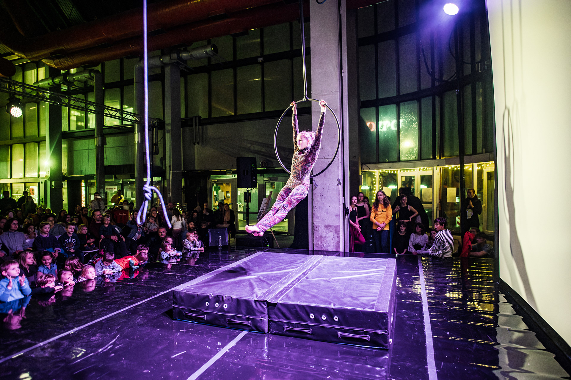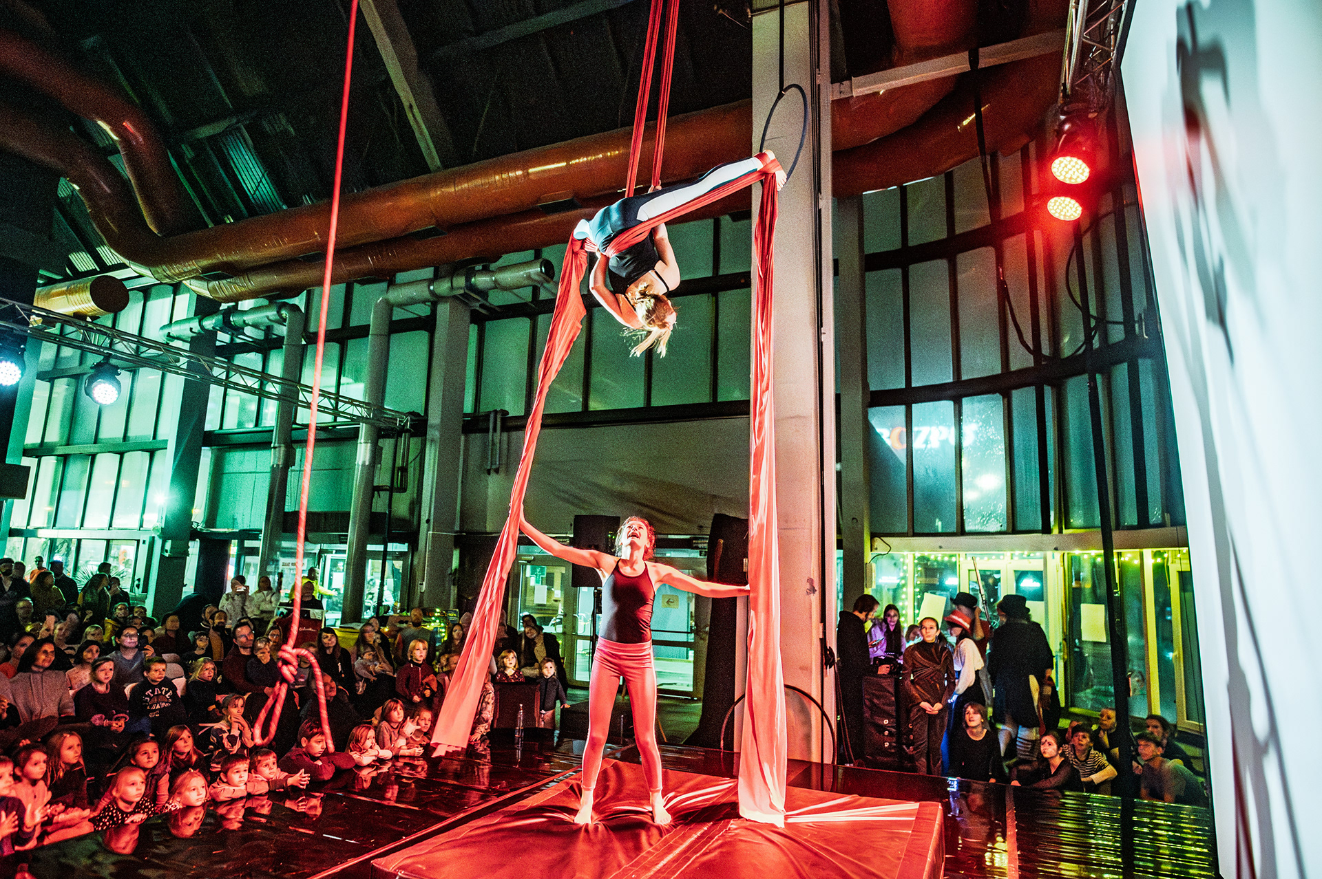 Záver večera patril Open Stage, kde dostali priestor amatéri, študenti aj skúsení performeri. Krátke čísla, improvizácie a experimentálne pokusy vytvorili pestrú mozaiku, ktorá ukázala, aký otvorený a inkluzívny je svet nového cirkusu.