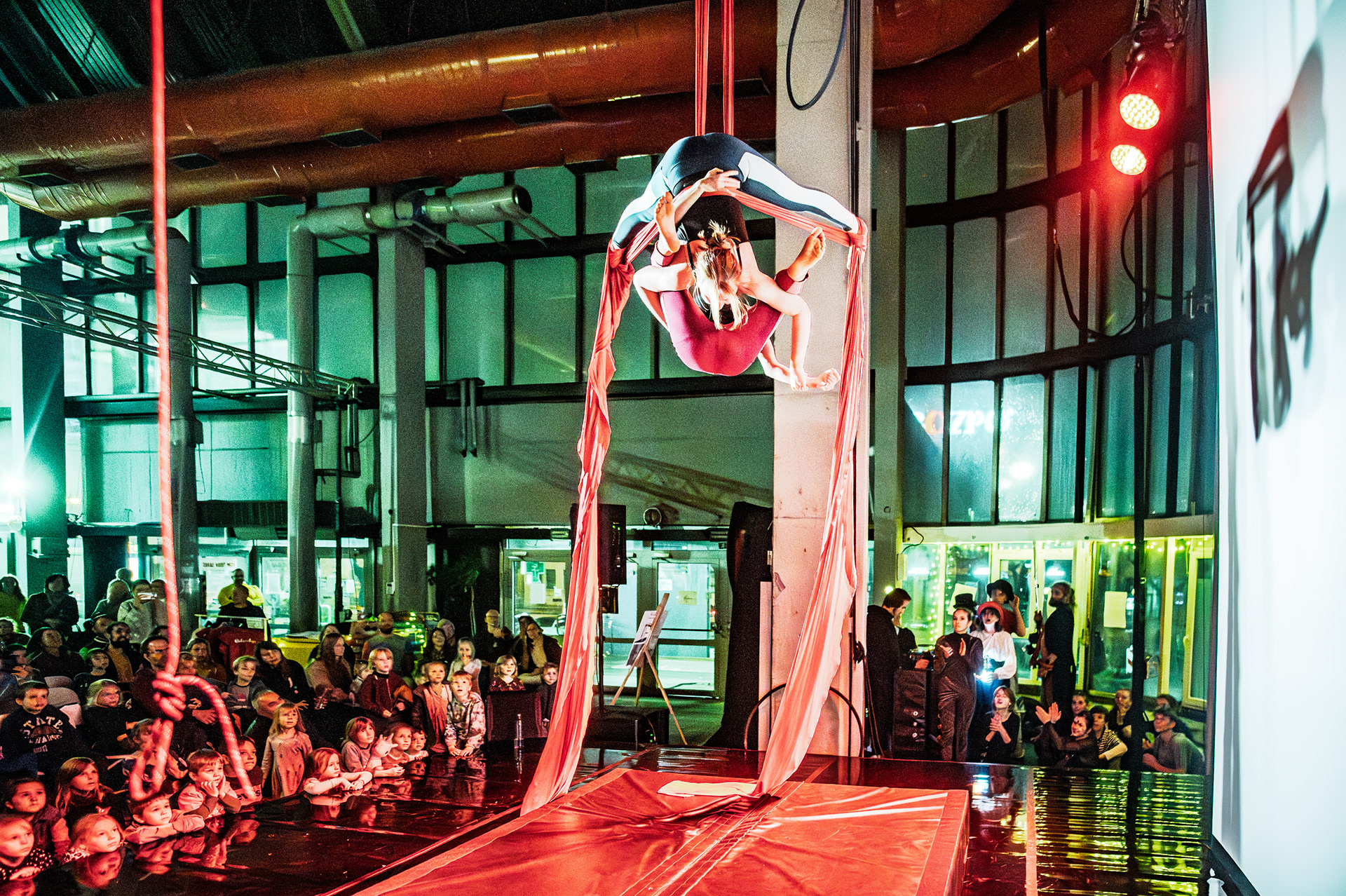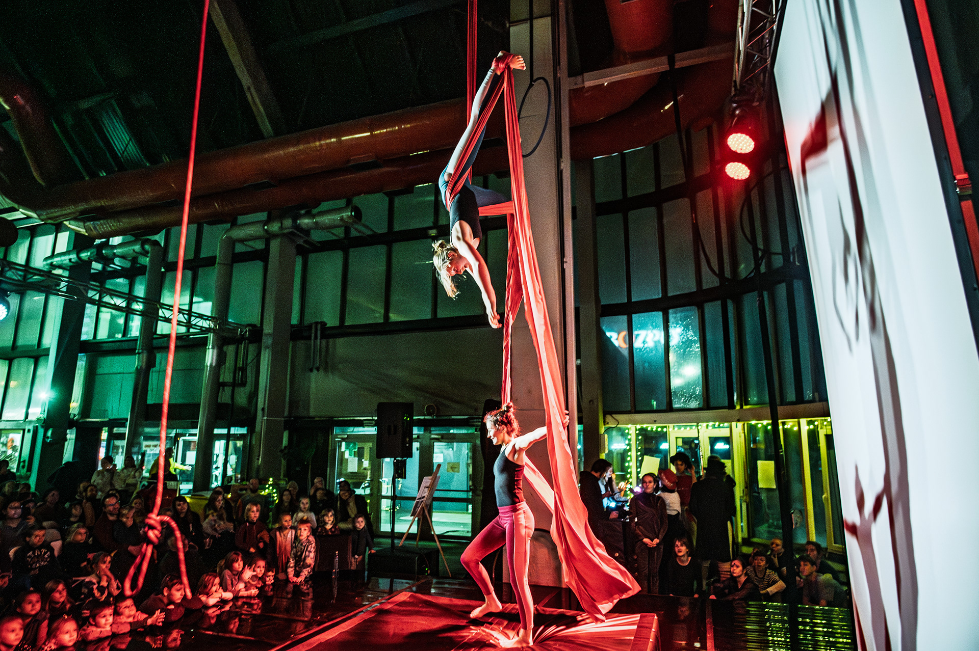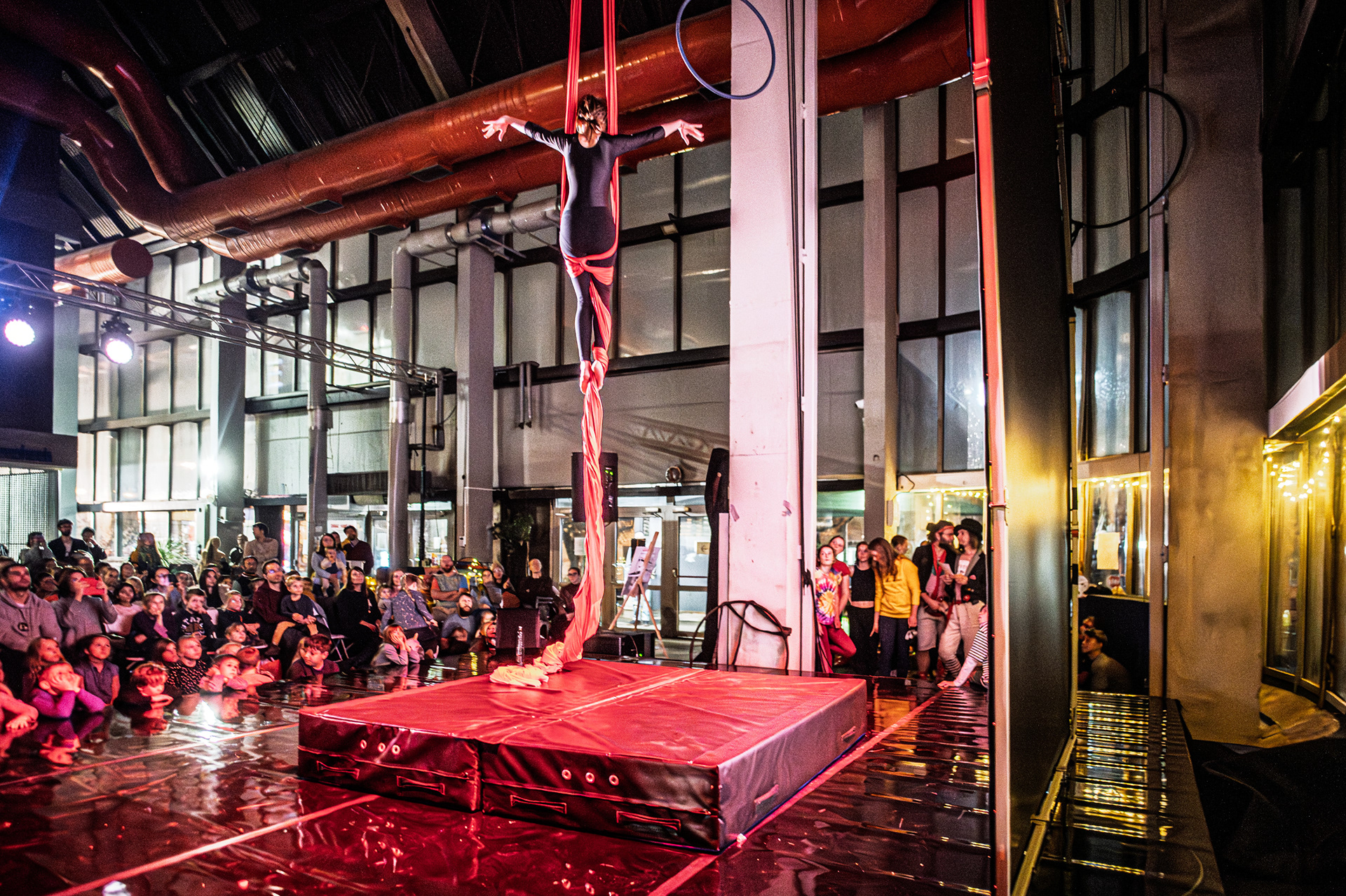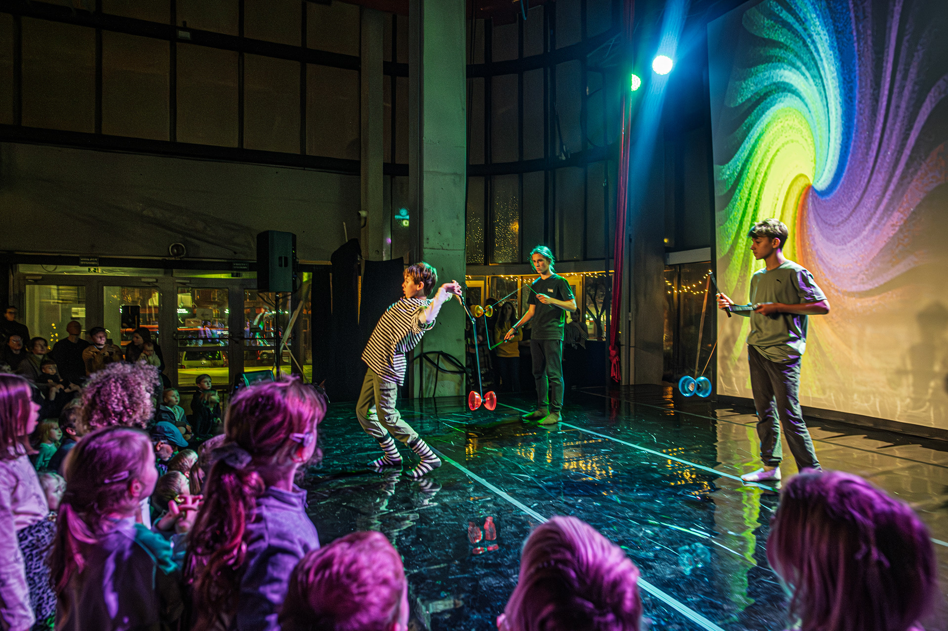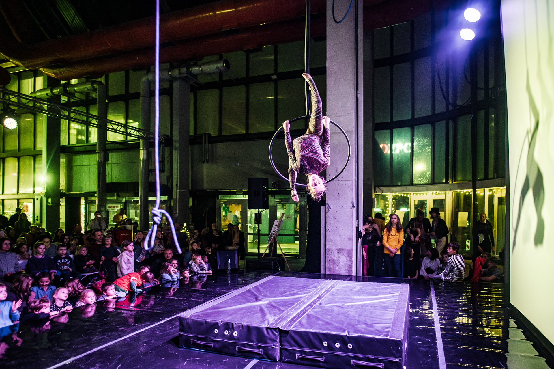 Záver večera patril Open Stage, kde dostali priestor amatéri, študenti aj skúsení performeri. Krátke čísla, improvizácie a experimentálne pokusy vytvorili pestrú mozaiku, ktorá ukázala, aký otvorený a inkluzívny je svet nového cirkusu.