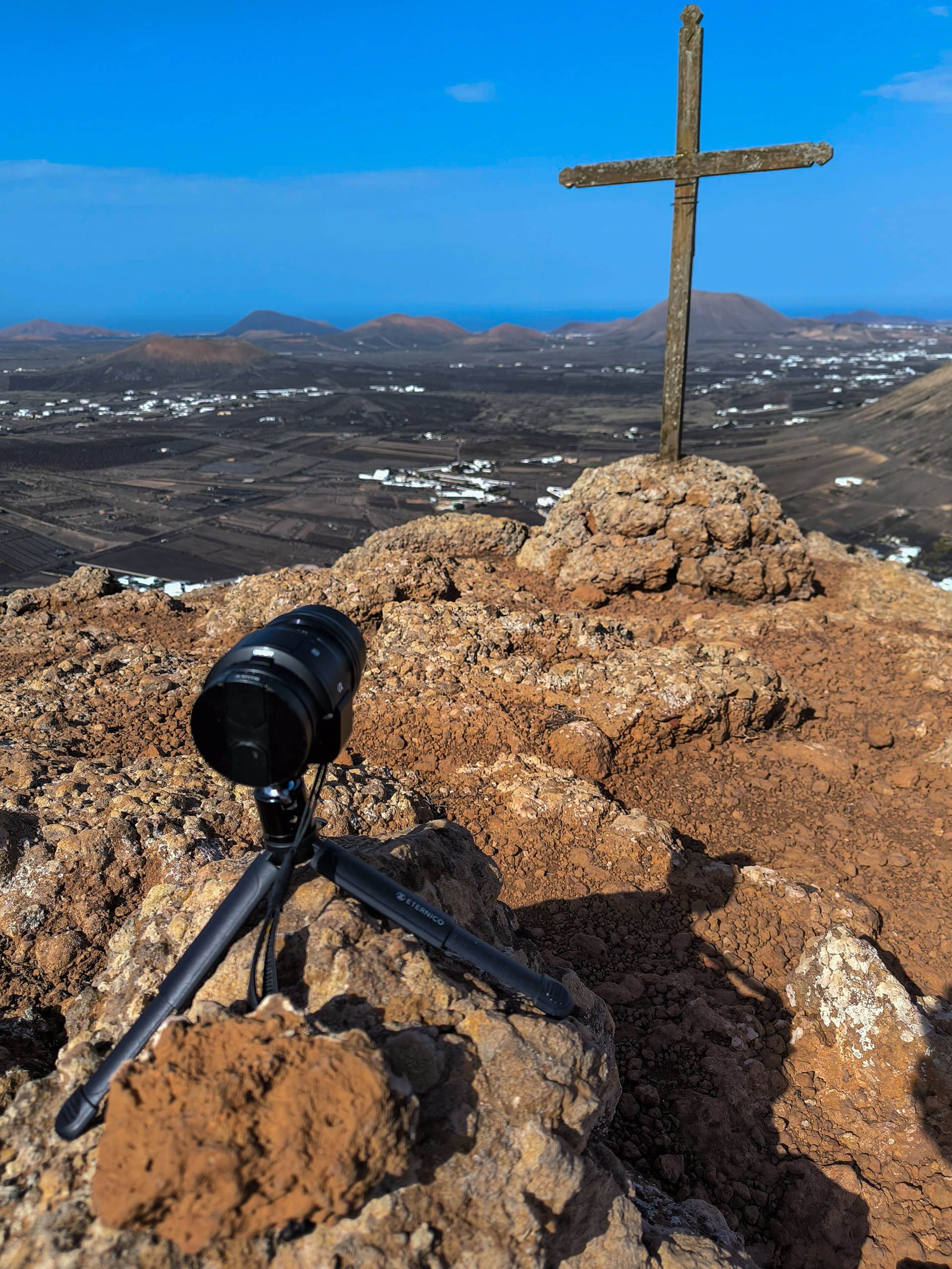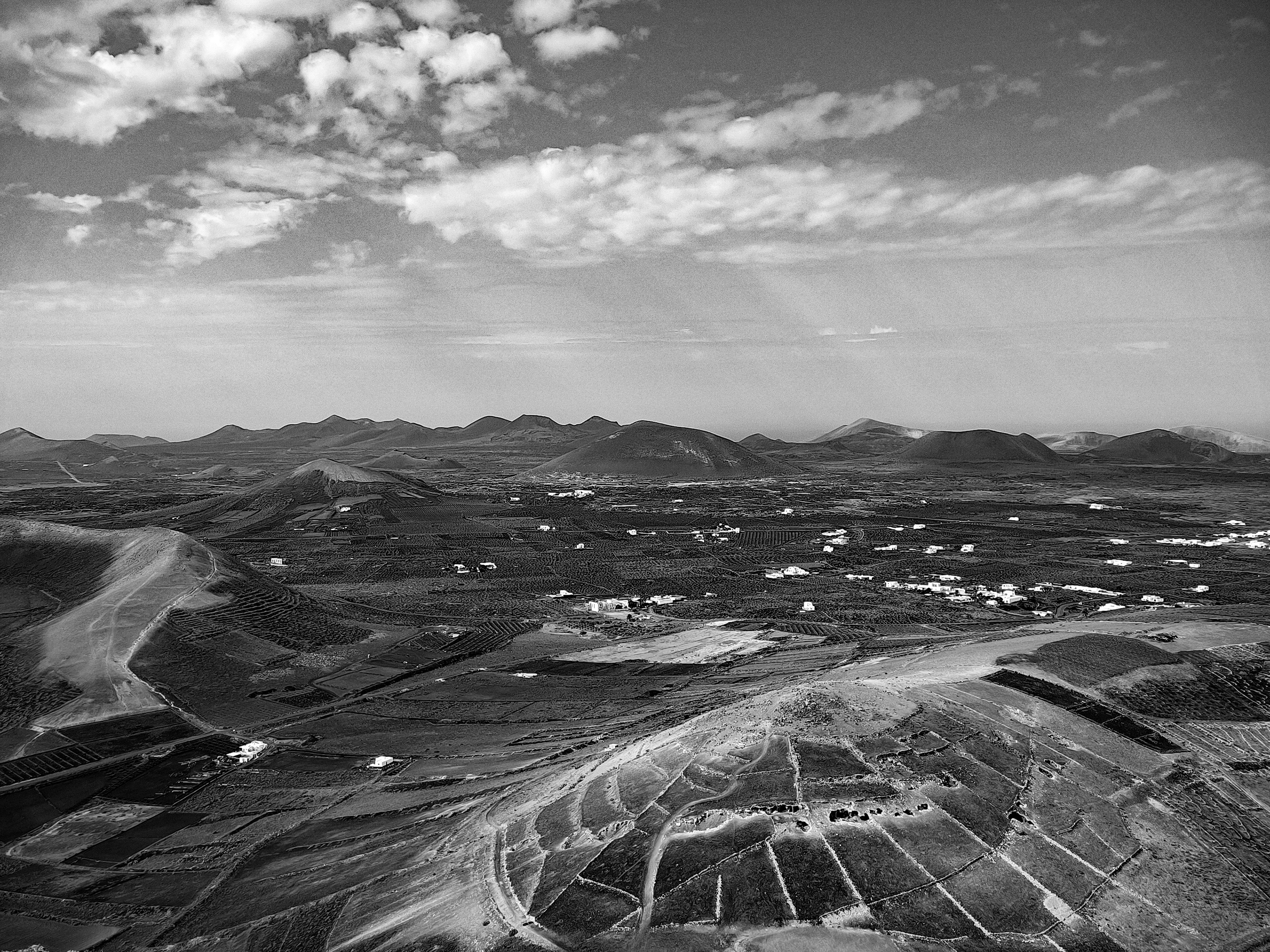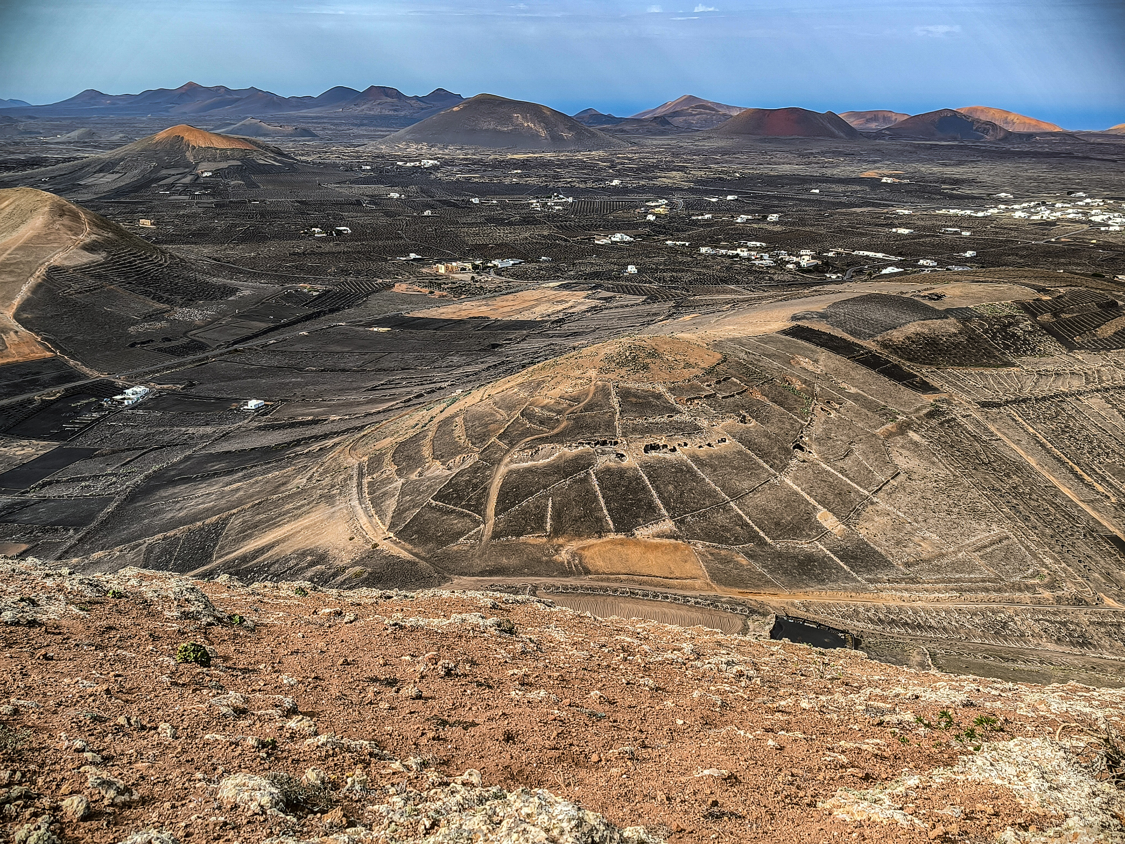 As we gained height, the world behind us expanded: white villages scattered across the lava fields, the rugged land stretching toward the horizon, and the Atlantic shimmering in a deep winter blue. Even from afar, the sea looked alive, shifting and glittering as if it were breathing.