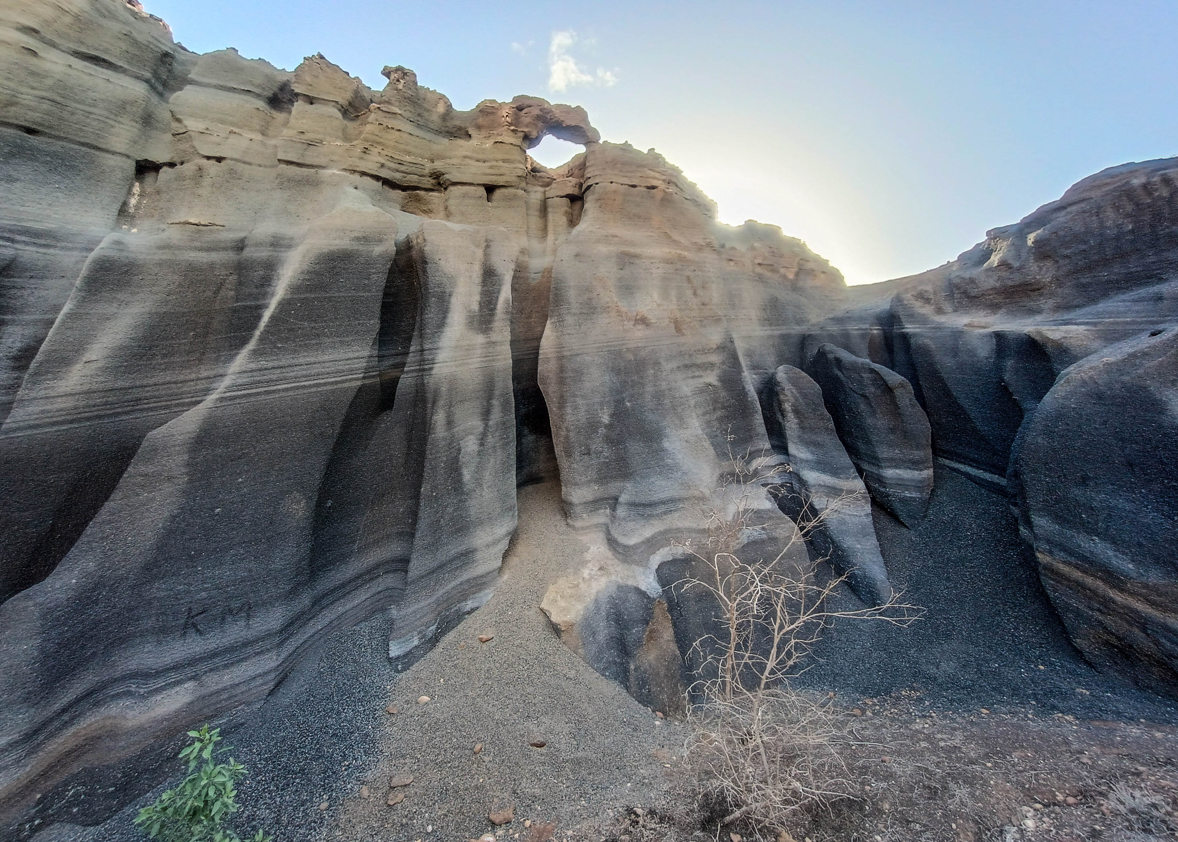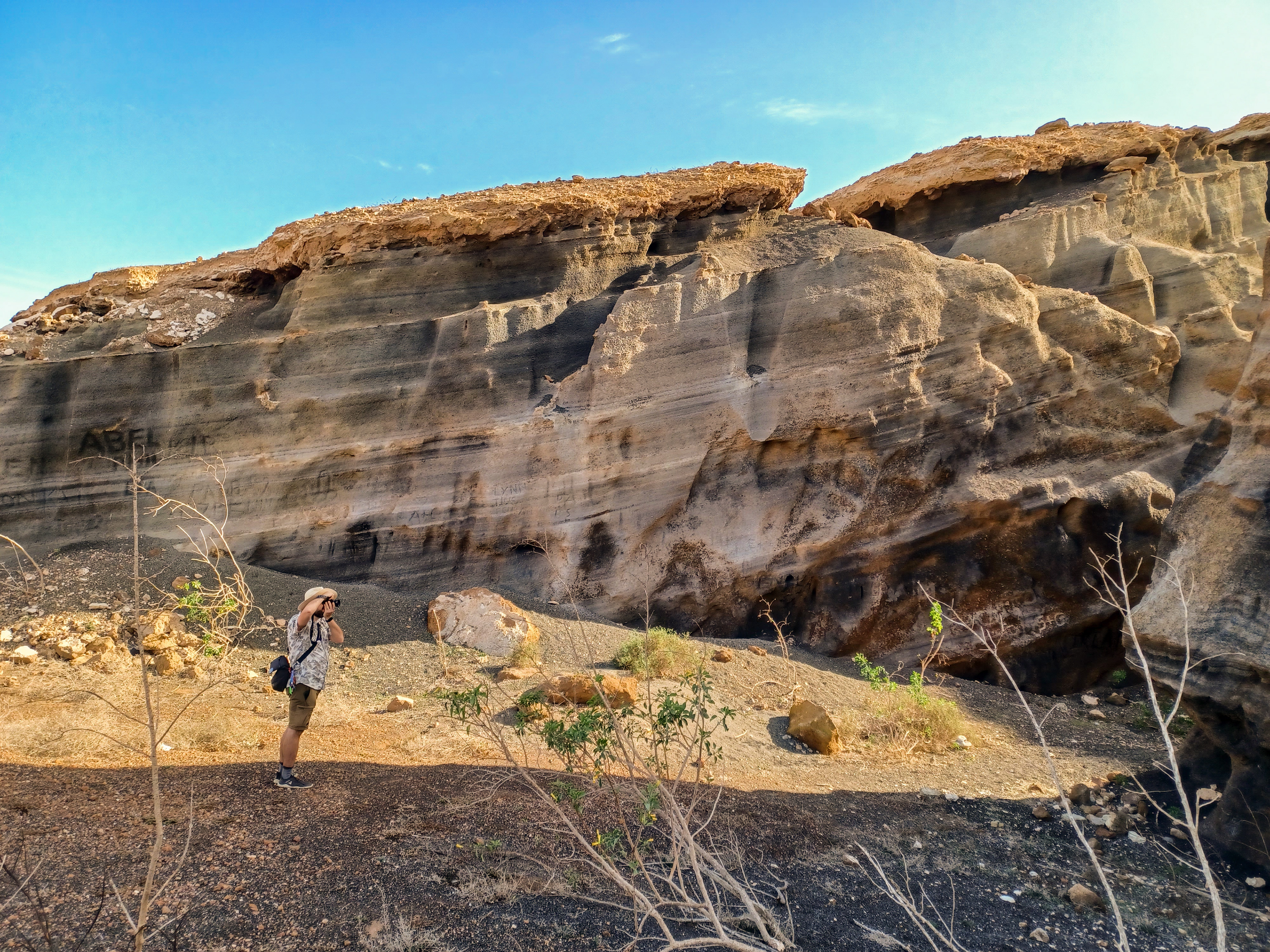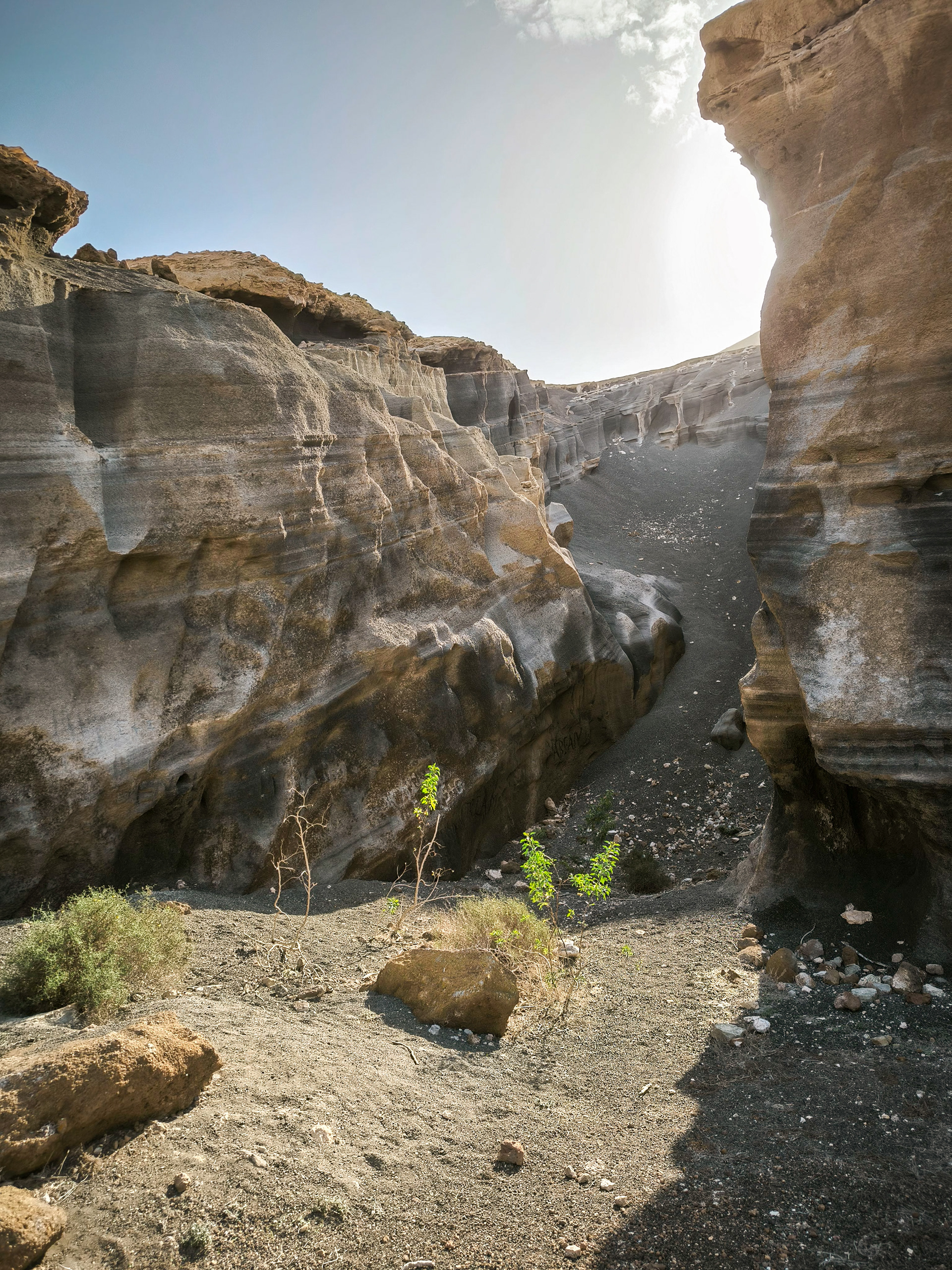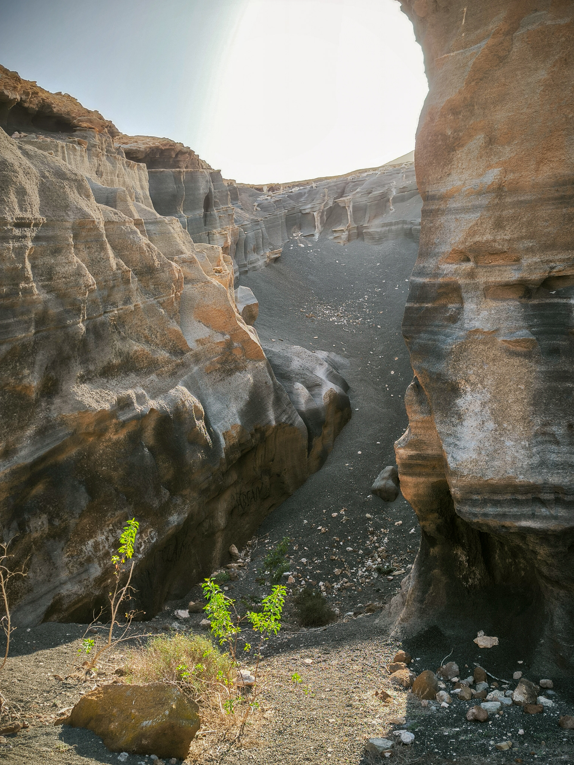 Soon the trail carried us into the dramatic realm of the grietas — long volcanic cracks carved by ancient eruptions. Walking between those towering walls of ash and rock felt like stepping into the island’s geological memory. Every layer revealed a different chapter of Lanzarote’s fiery past.