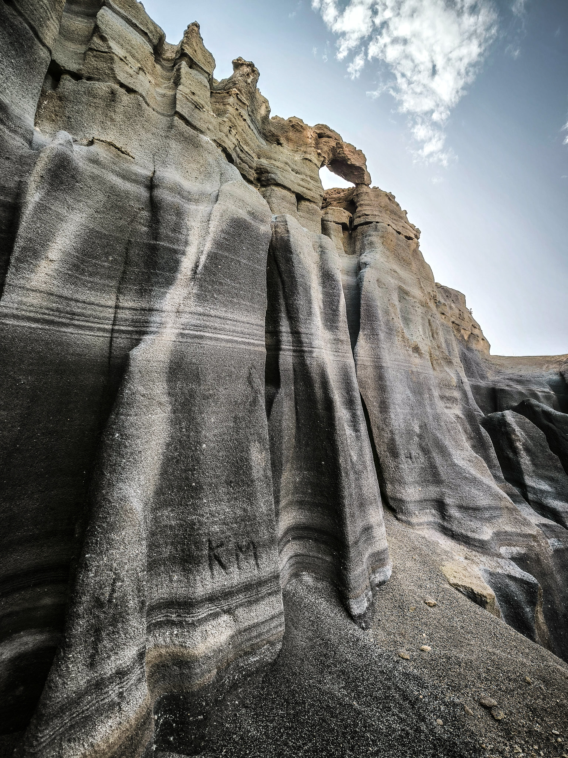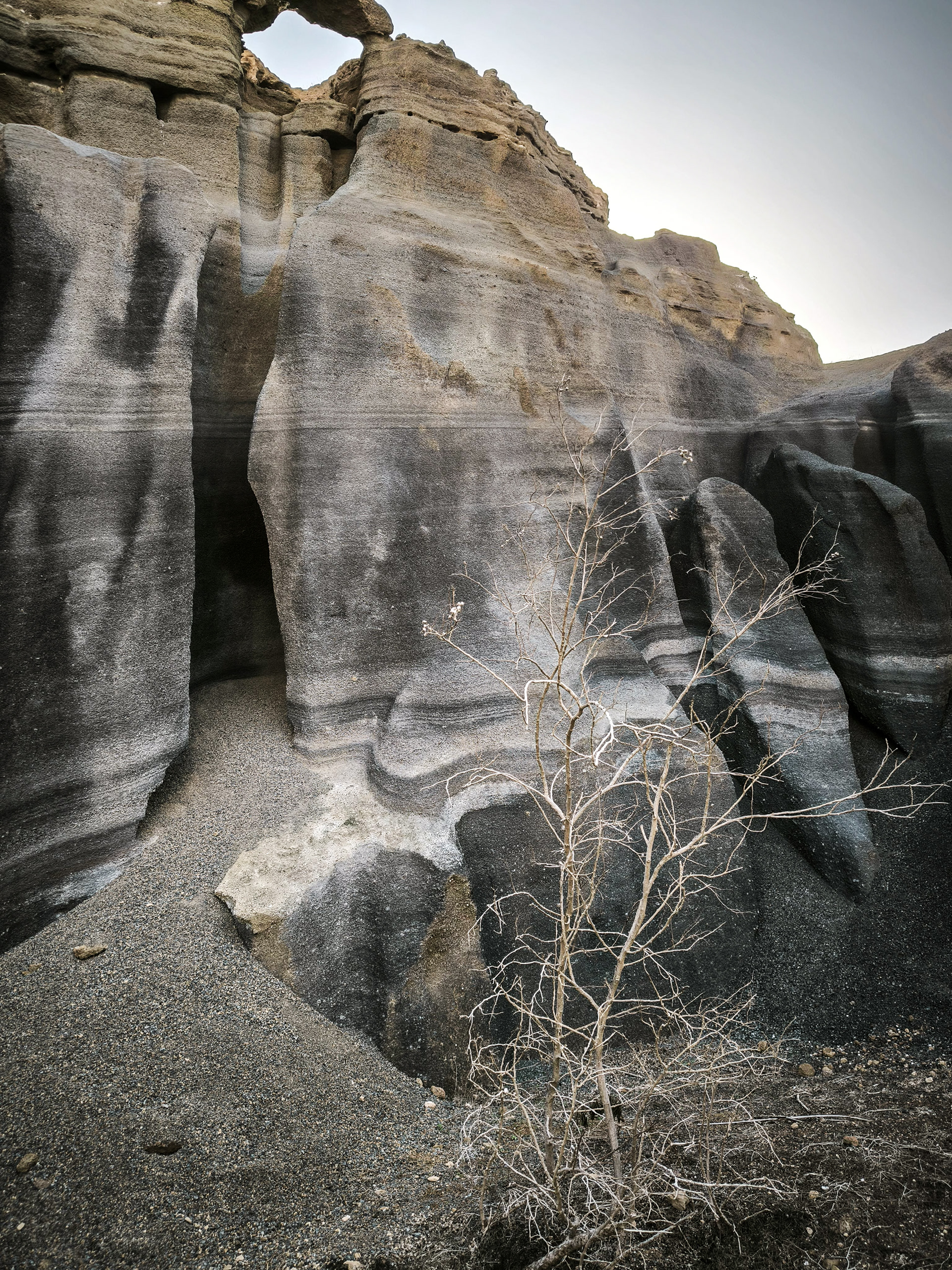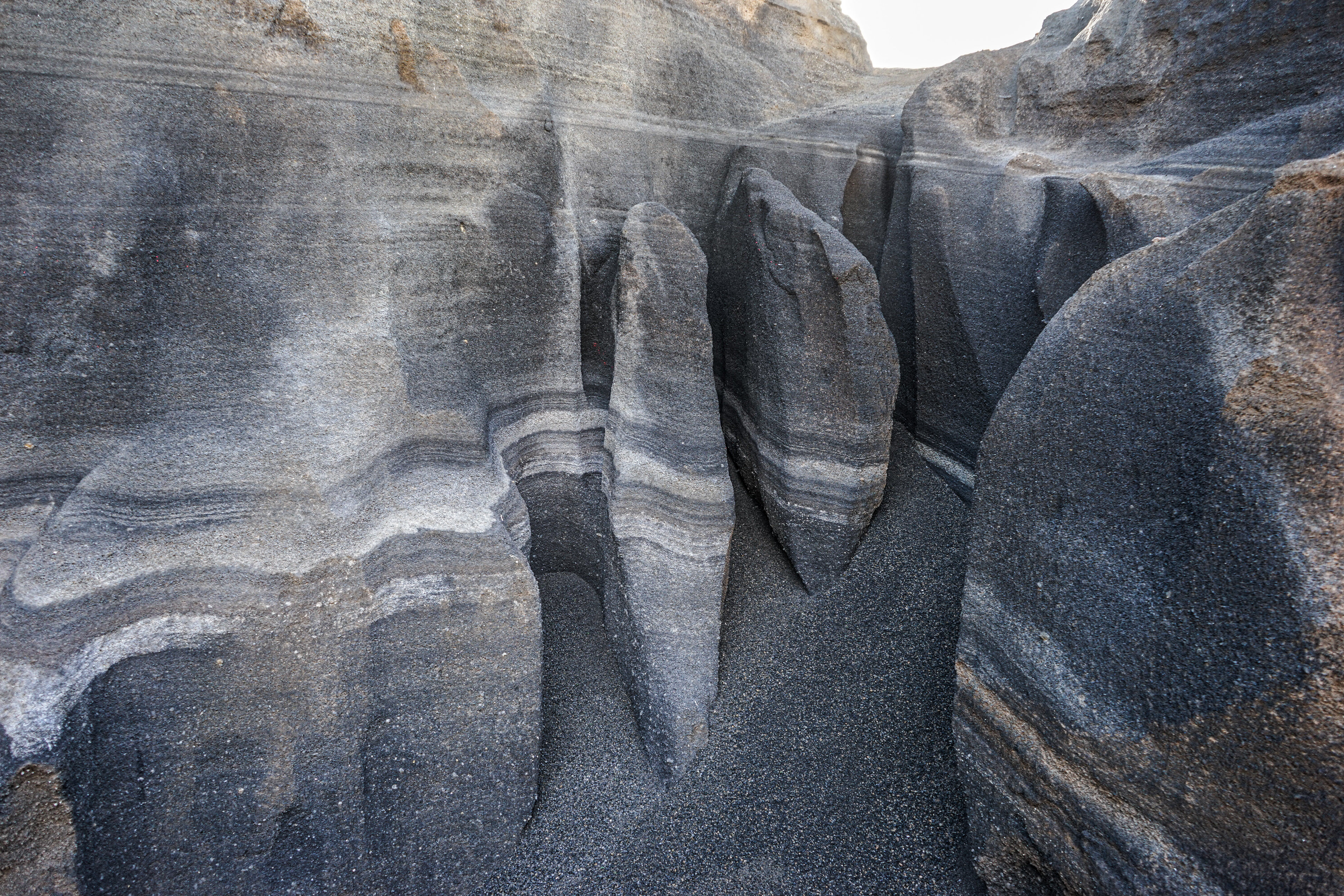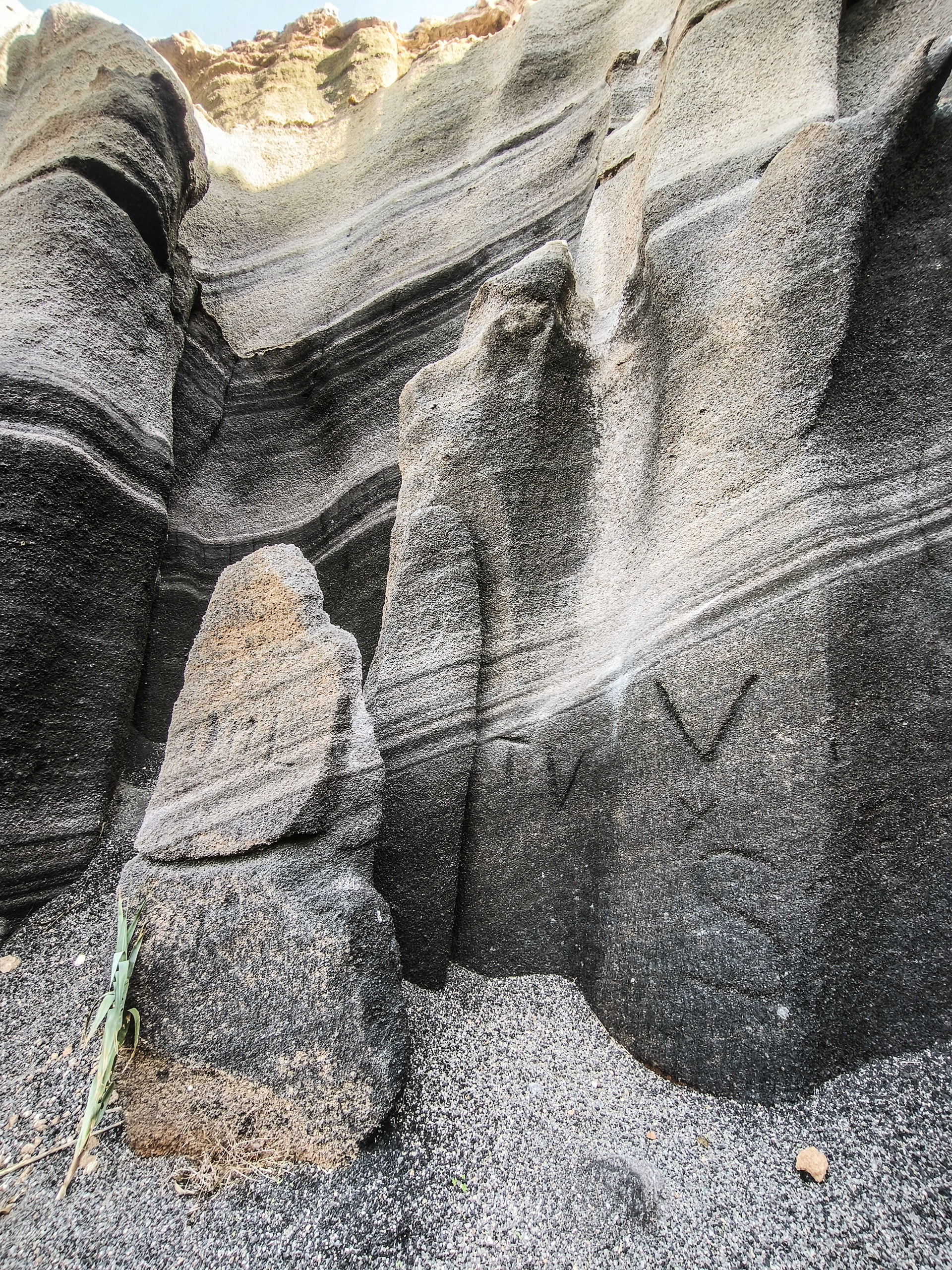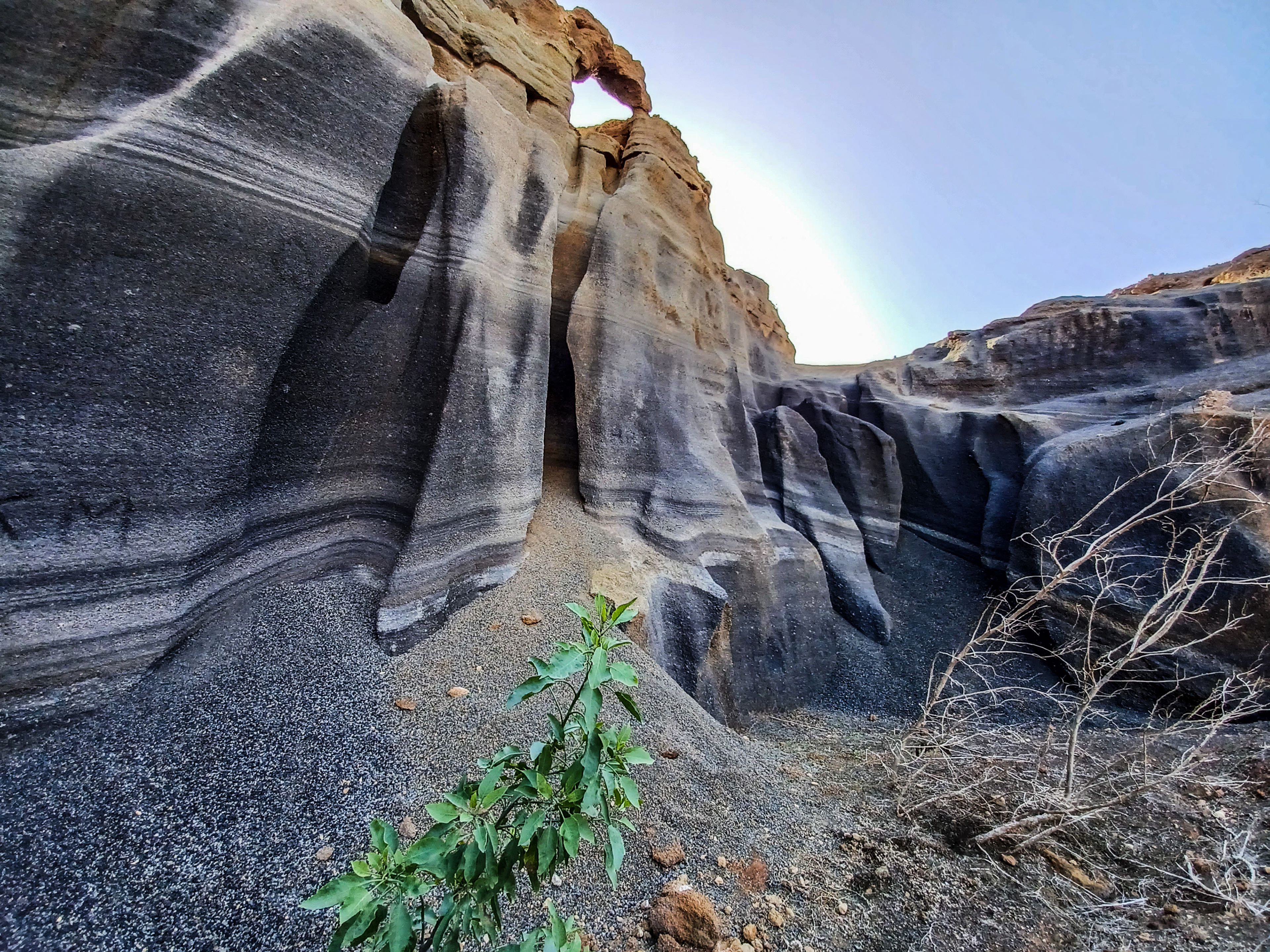 Soon the trail carried us into the dramatic realm of the grietas — long volcanic cracks carved by ancient eruptions. Walking between those towering walls of ash and rock felt like stepping into the island’s geological memory. Every layer revealed a different chapter of Lanzarote’s fiery past.