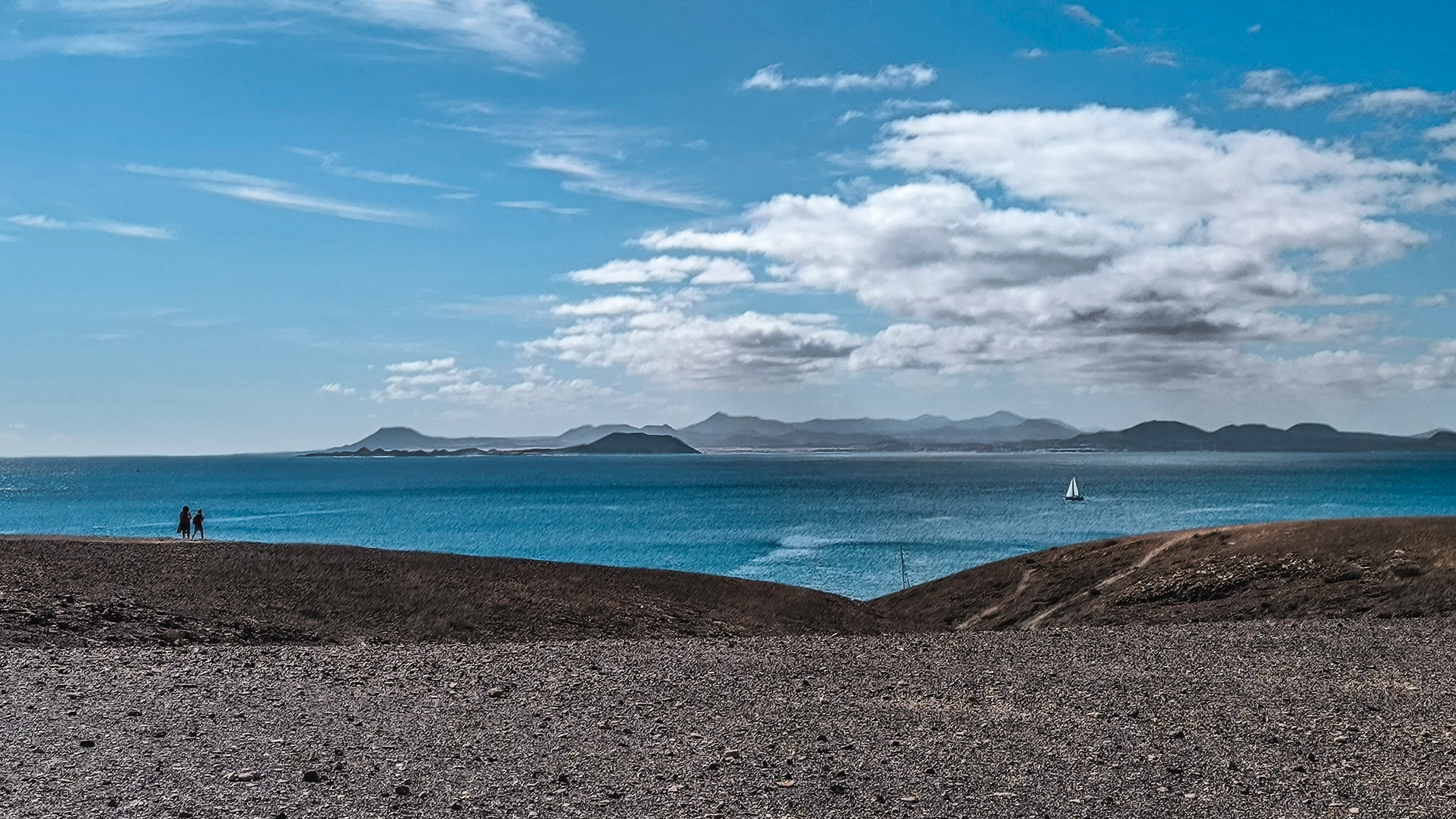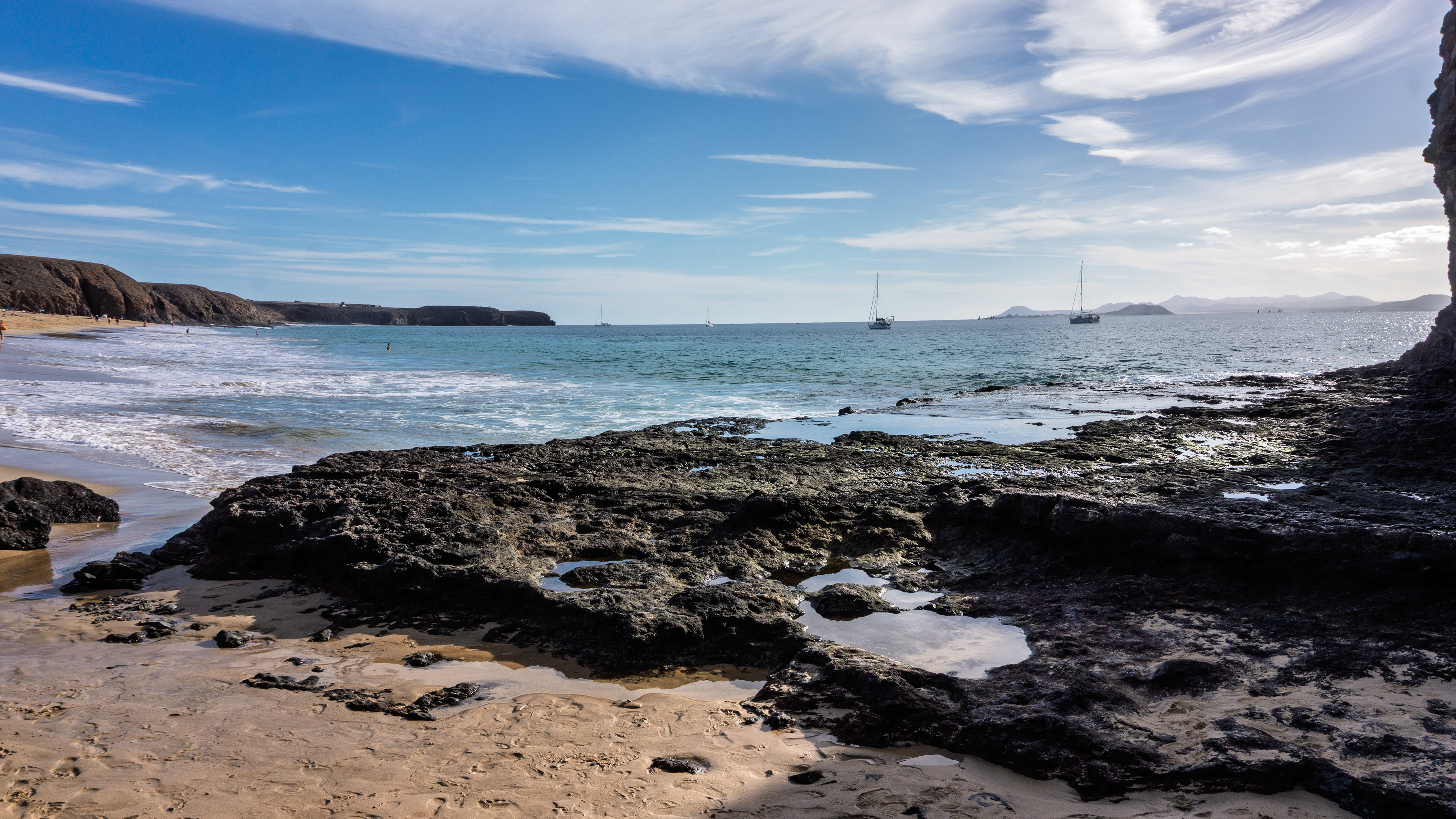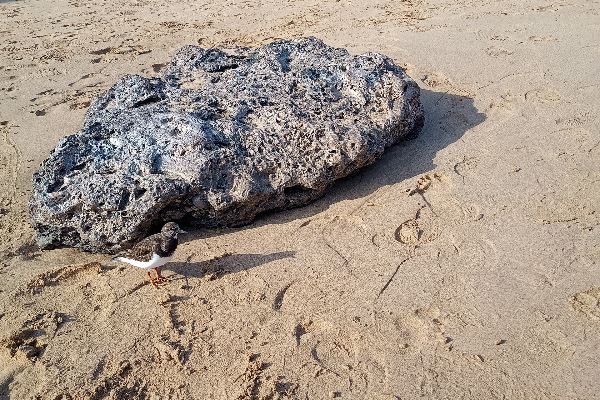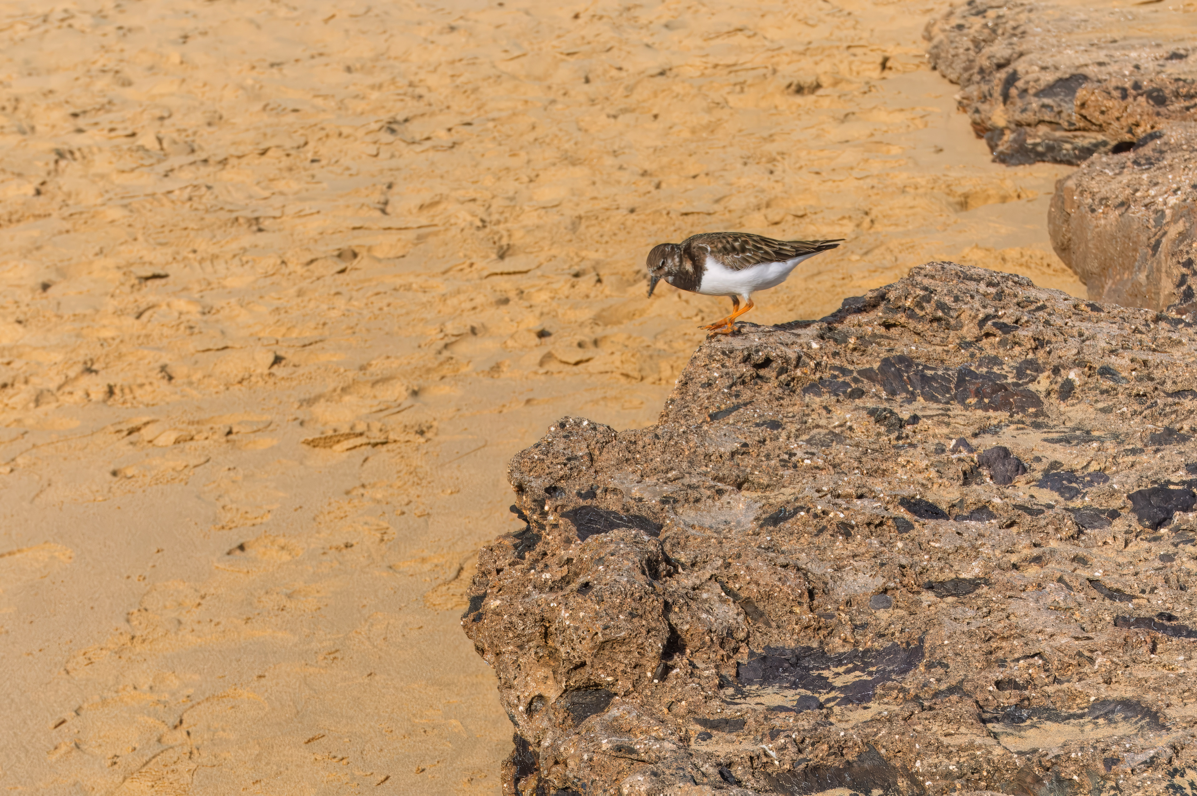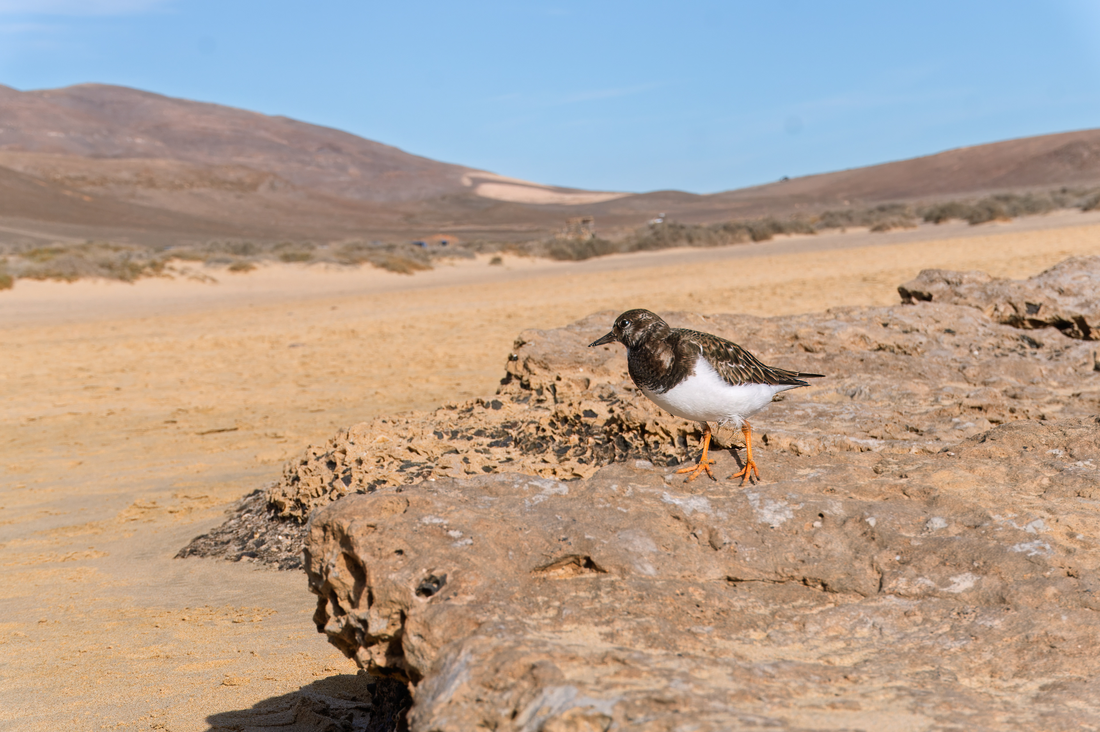 A hike to Playa Mujeres is one of those Lanzarote walks that feels effortless yet deeply rewarding. The trail winds gently through the golden hills of the Papagayo area, opening up to wide views of the Atlantic long before you reach the shore. As you walk, the landscape shifts from dusty volcanic paths to soft sand, with the sea growing brighter and bluer at every turn. Playa Mujeres itself appears like a calm, open crescent — spacious, quiet, and framed by low cliffs that glow warm in the afternoon sun. Down by the waterline, a small ruddy turnstone trotted confidently across the rocks, flipping pebbles in search of snacks as if it owned the entire beach.