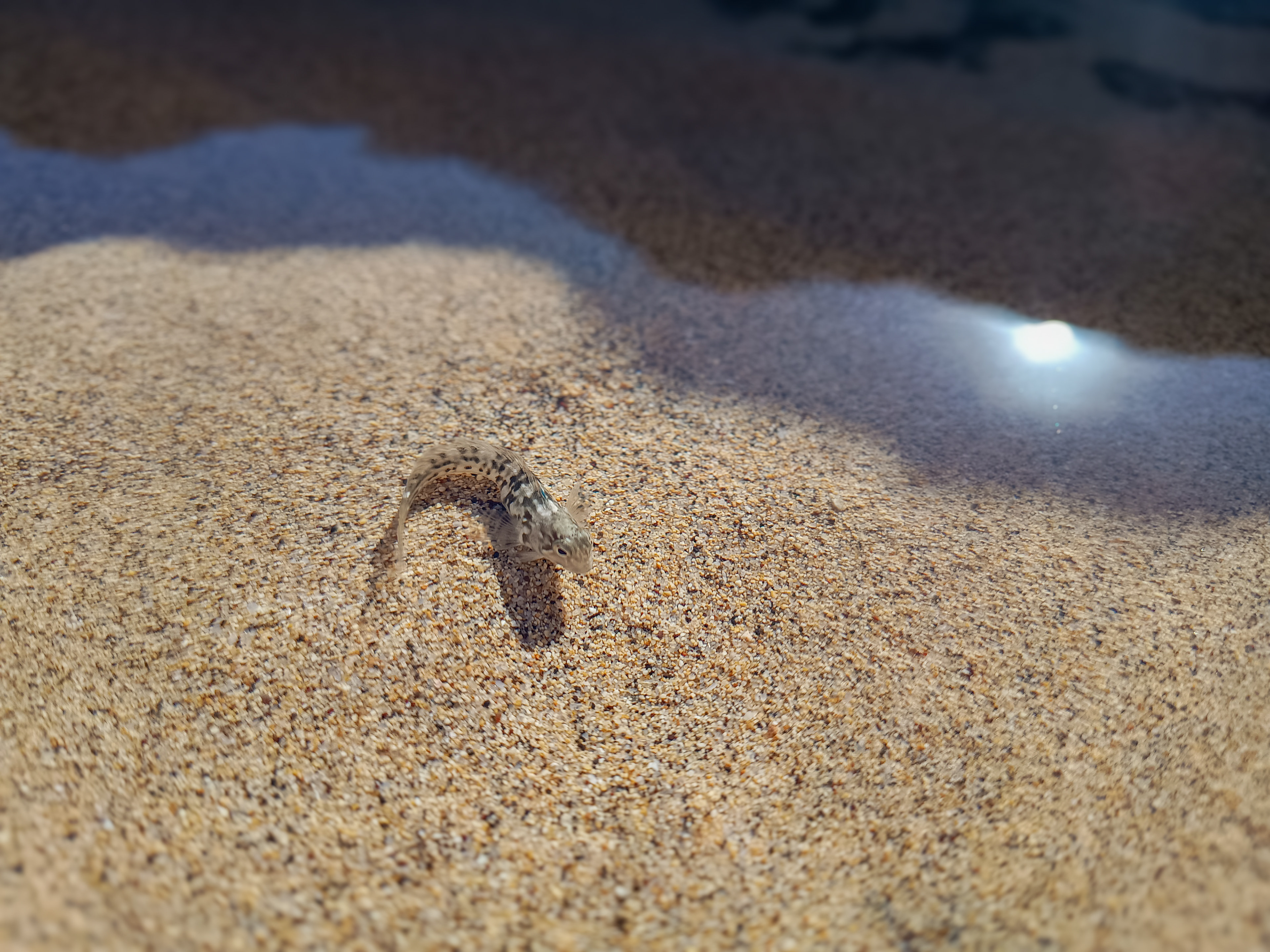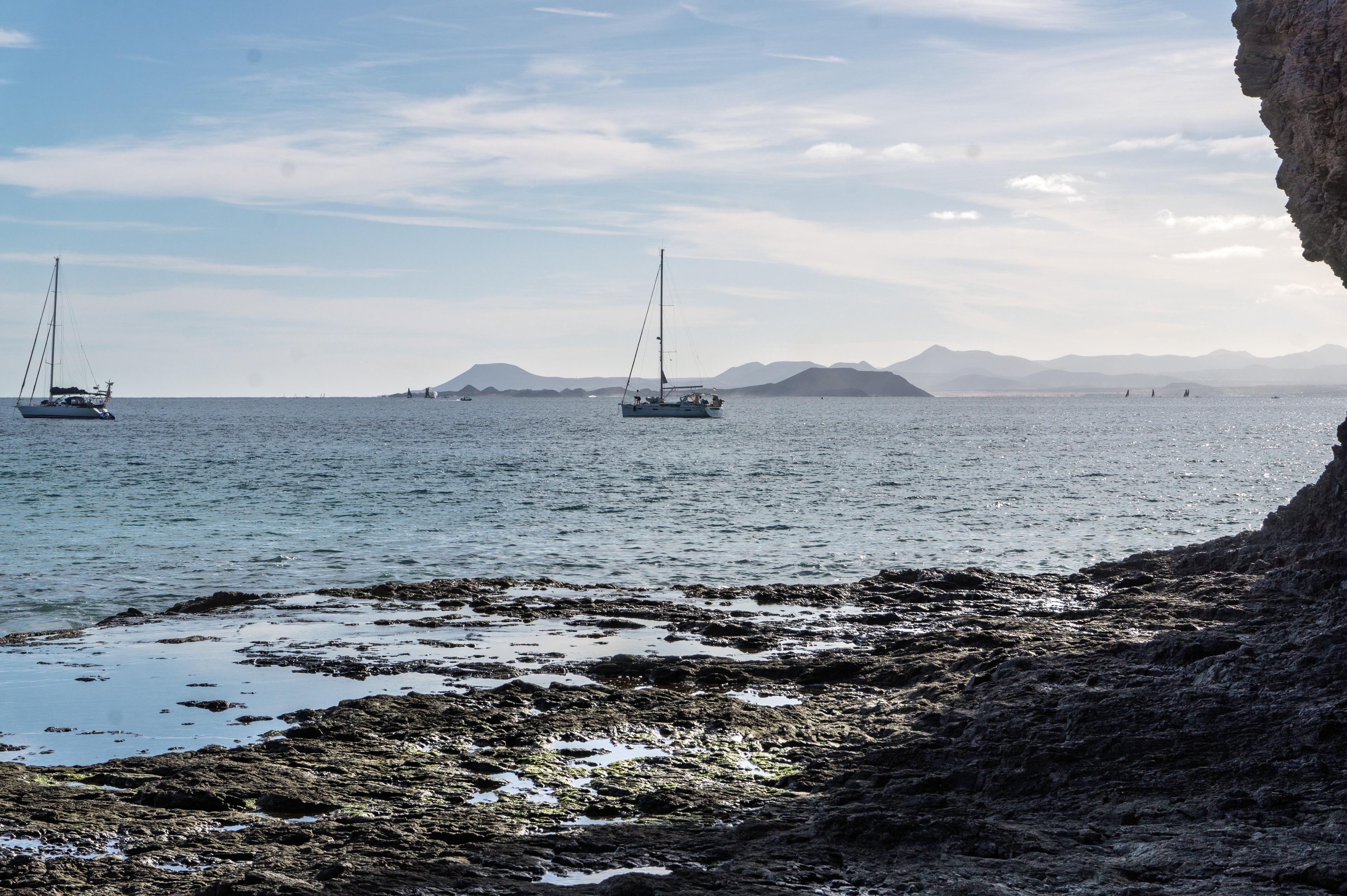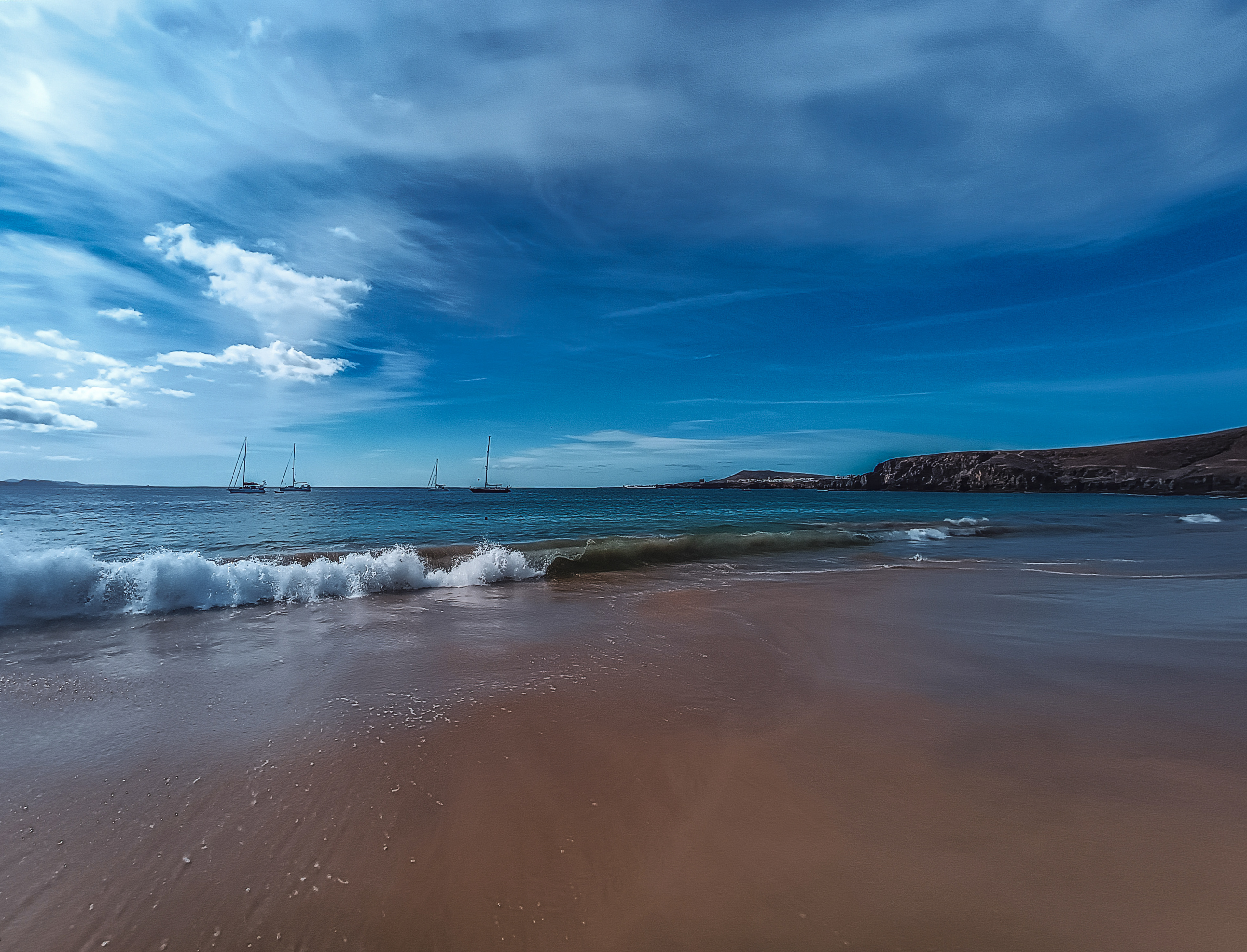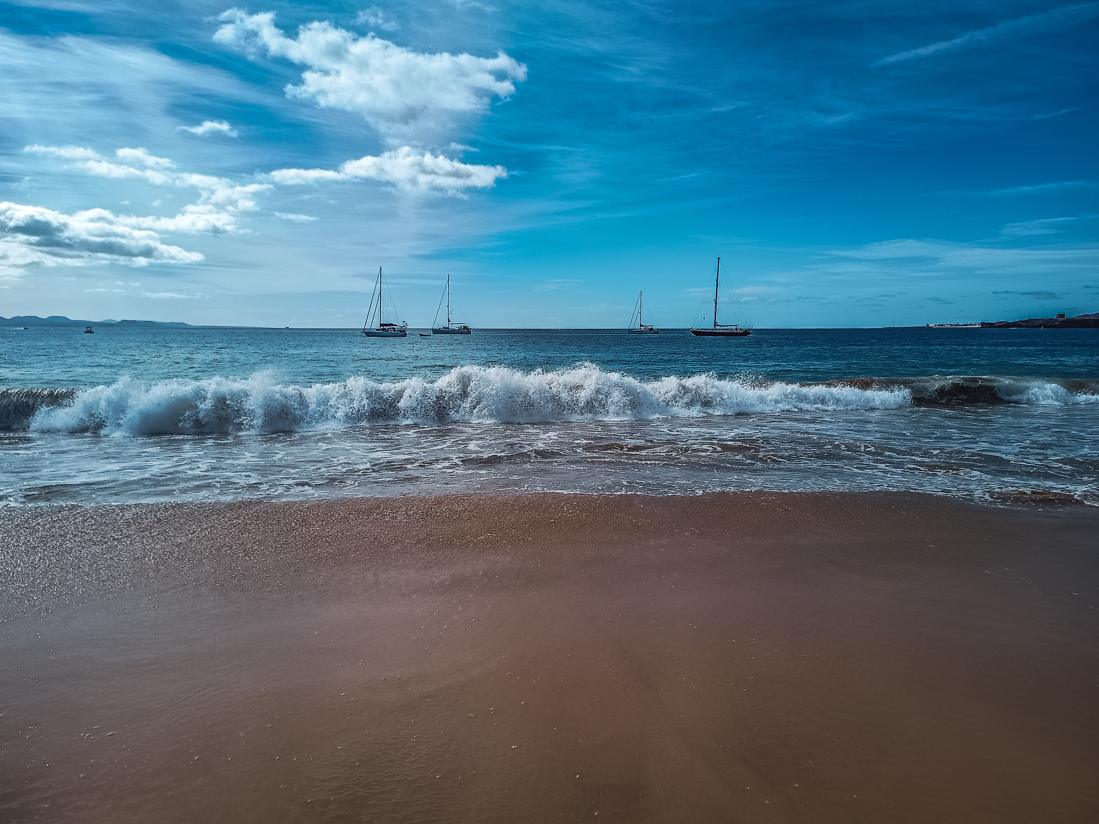 A hike to Playa Mujeres is one of those Lanzarote walks that feels effortless yet deeply rewarding. The trail winds gently through the golden hills of the Papagayo area, opening up to wide views of the Atlantic long before you reach the shore. As you walk, the landscape shifts from dusty volcanic paths to soft sand, with the sea growing brighter and bluer at every turn. Playa Mujeres itself appears like a calm, open crescent — spacious, quiet, and framed by low cliffs that glow warm in the afternoon sun. Down by the waterline, a small ruddy turnstone trotted confidently across the rocks, flipping pebbles in search of snacks as if it owned the entire beach.