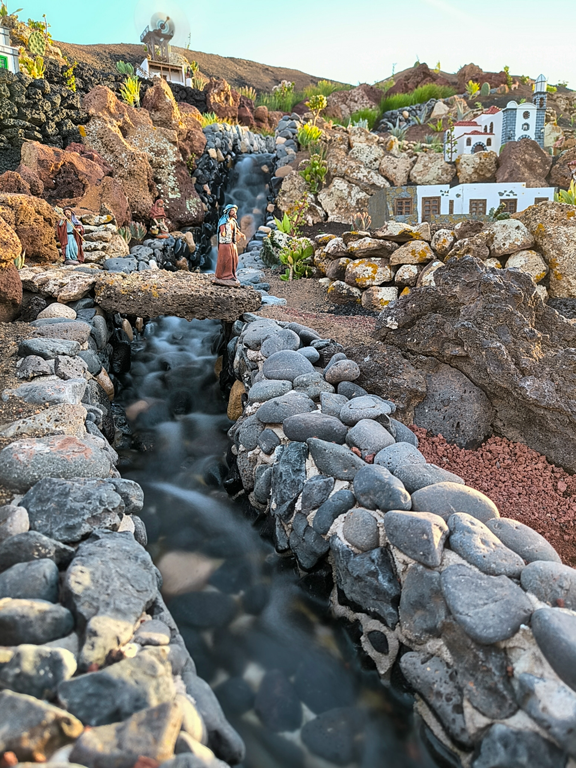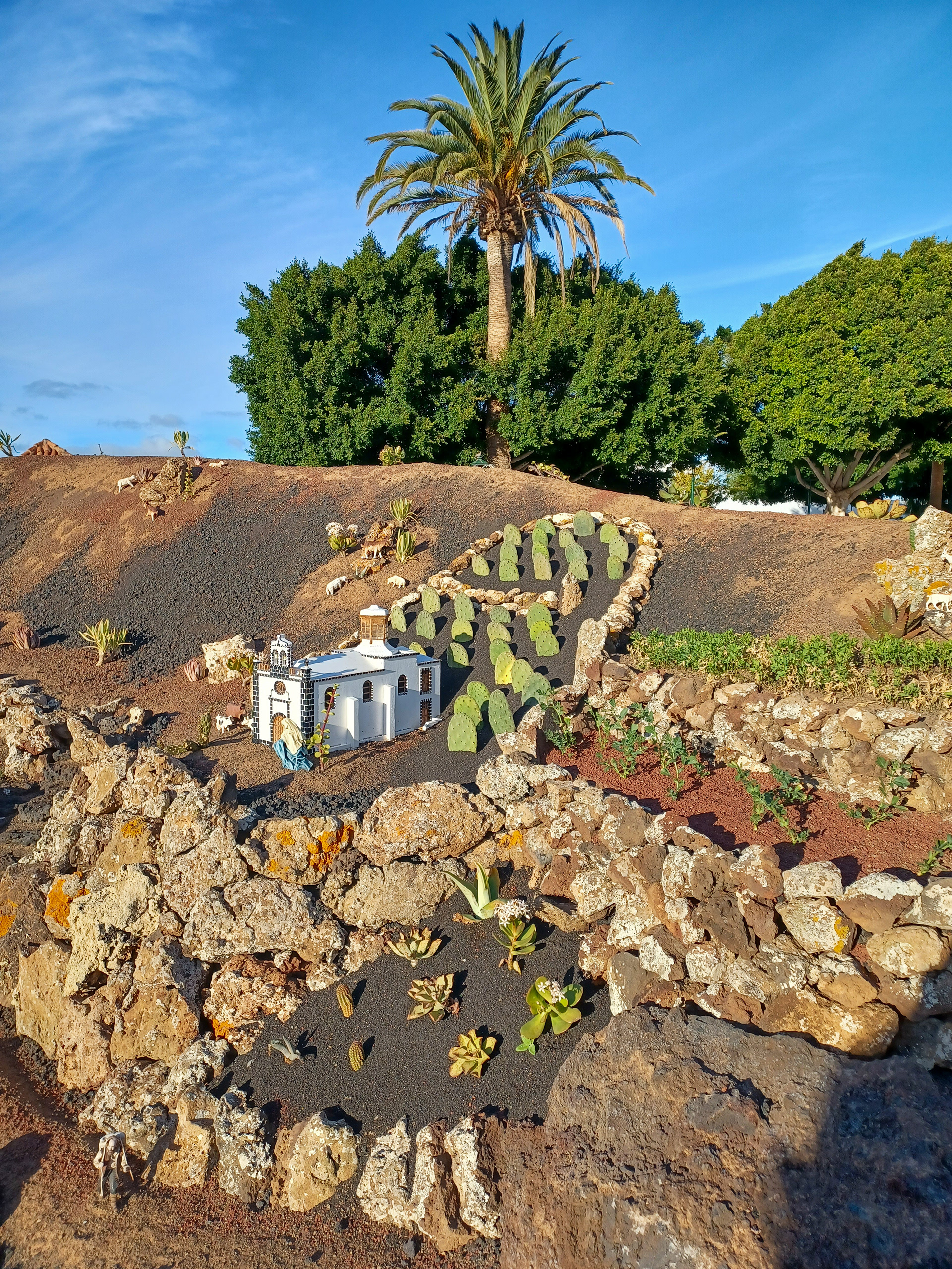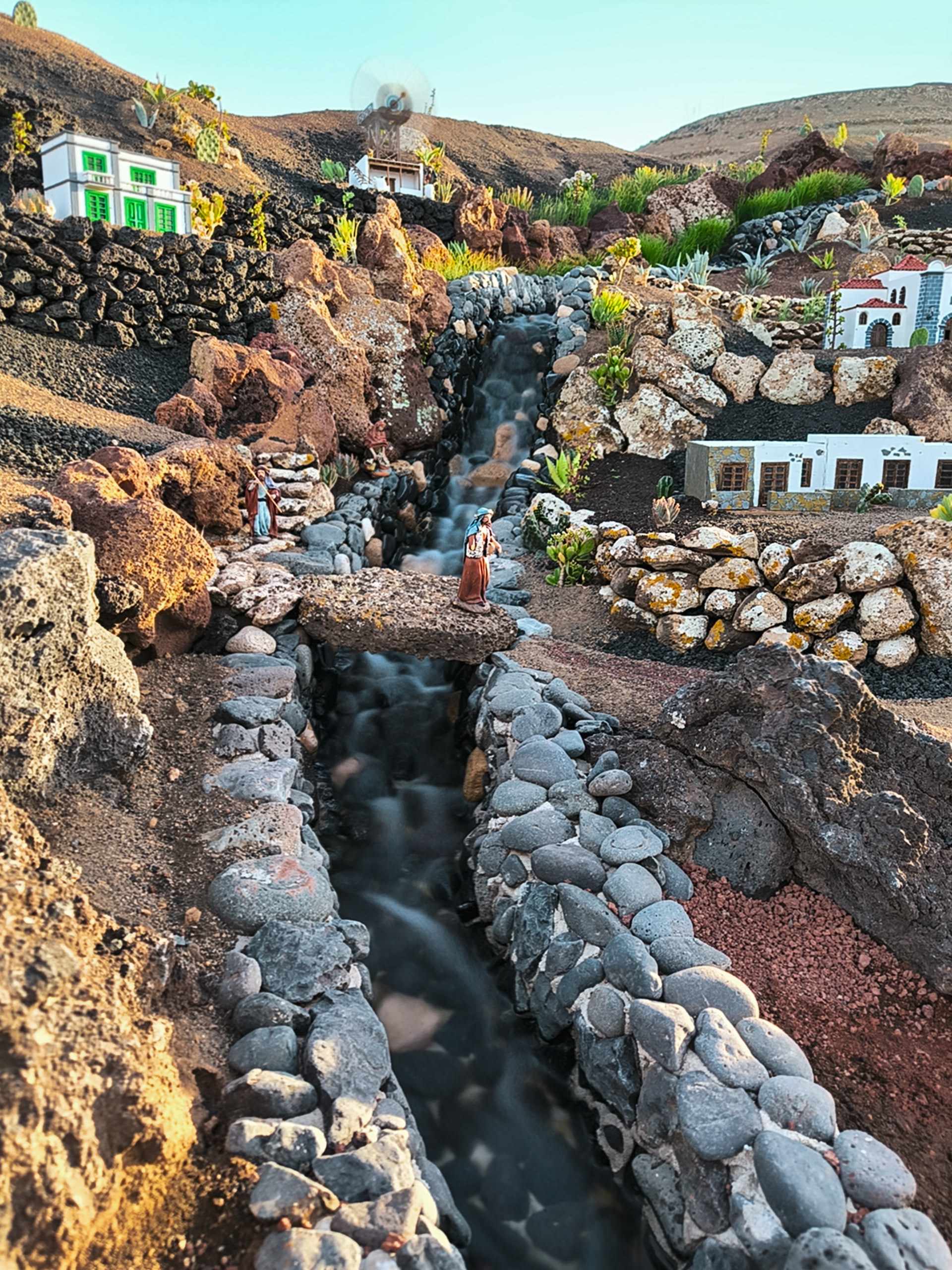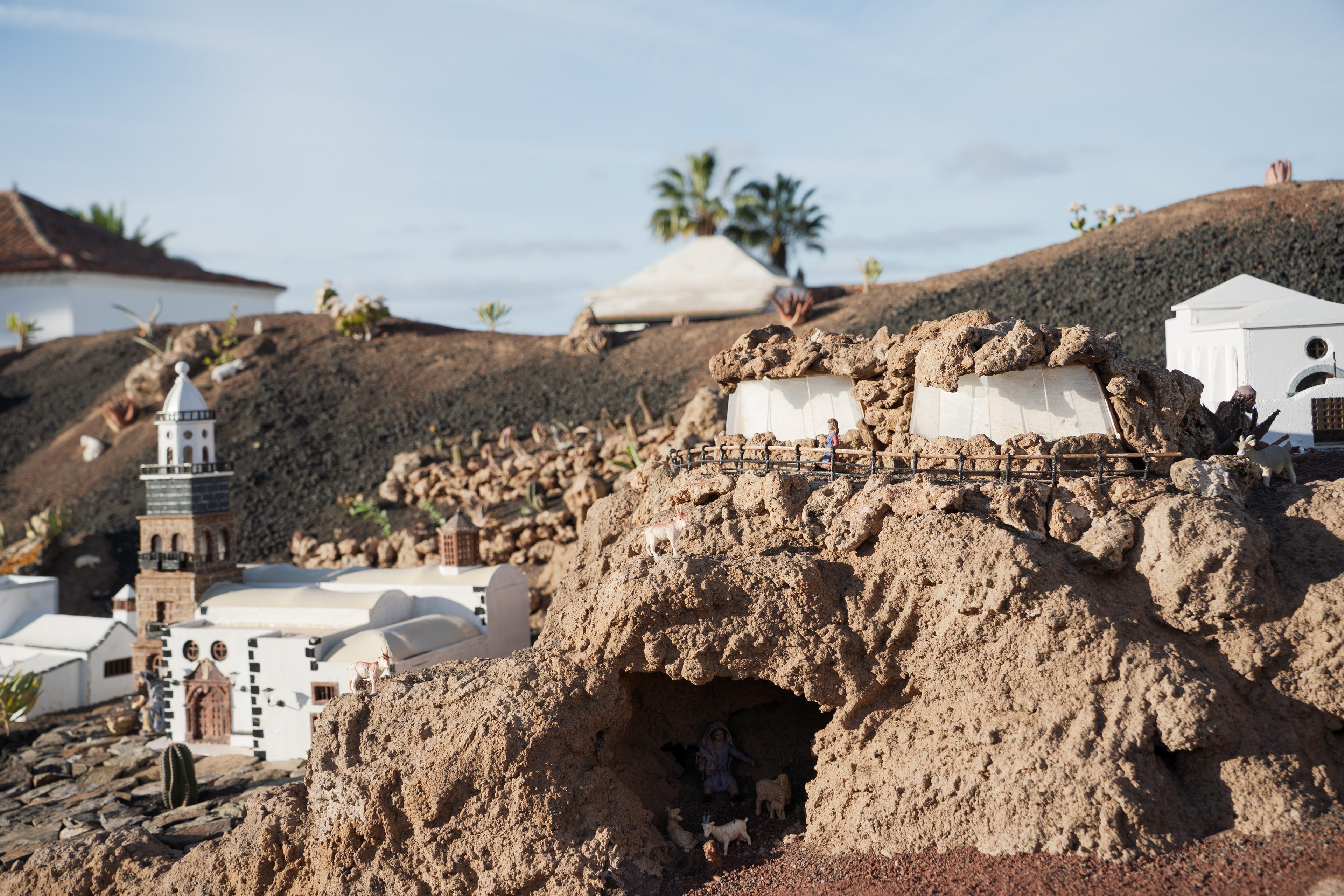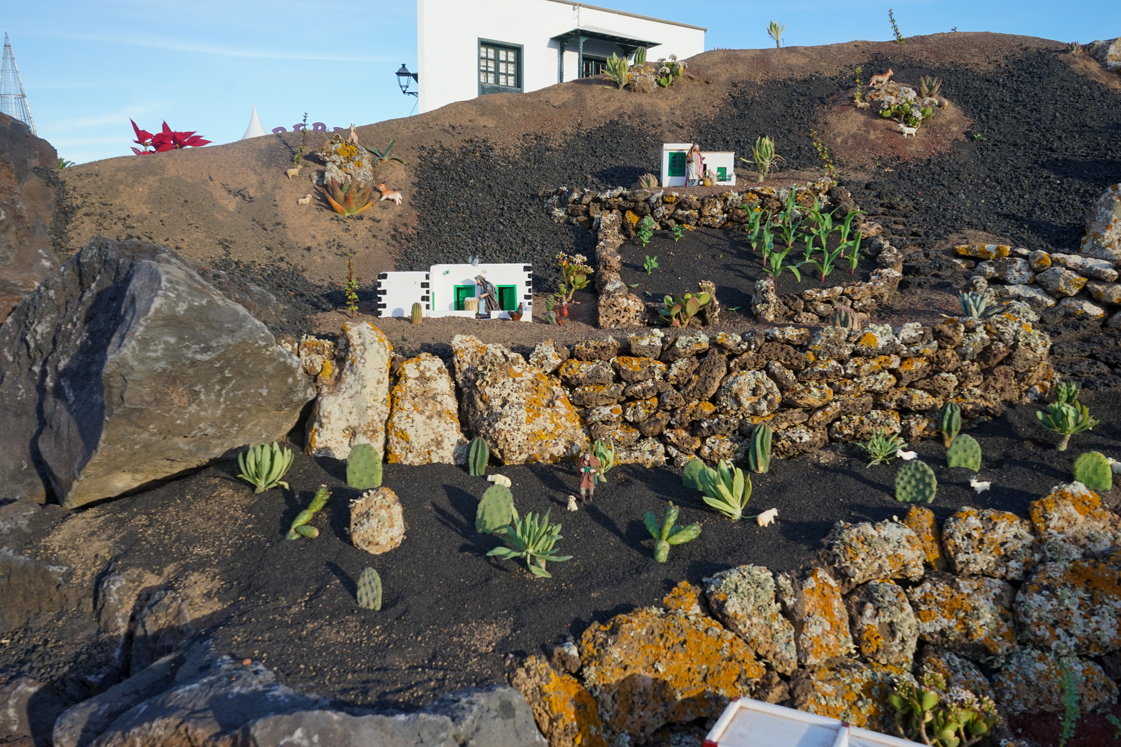 Yaiza’s natural nativity scene is anything but modest — it’s a sprawling, open‑air Christmas landscape that transforms the village square into a miniature world of its own. Built with volcanic stone, sand, water features, and lovingly crafted figures, the Belén stretches across a large outdoor space, inviting visitors to wander slowly around its detailed scenes. Traditional Canarian houses, shepherds, fishermen, and biblical tableaux blend seamlessly with Lanzarote’s rugged terrain, creating a display that feels both grand in scale and deeply rooted in local identity. With the mountains rising behind it and the soft winter light settling over the village, Yaiza’s Belén becomes a festive landmark — a place where craftsmanship, storytelling, and island heritage come together in a spectacular seasonal tradition.