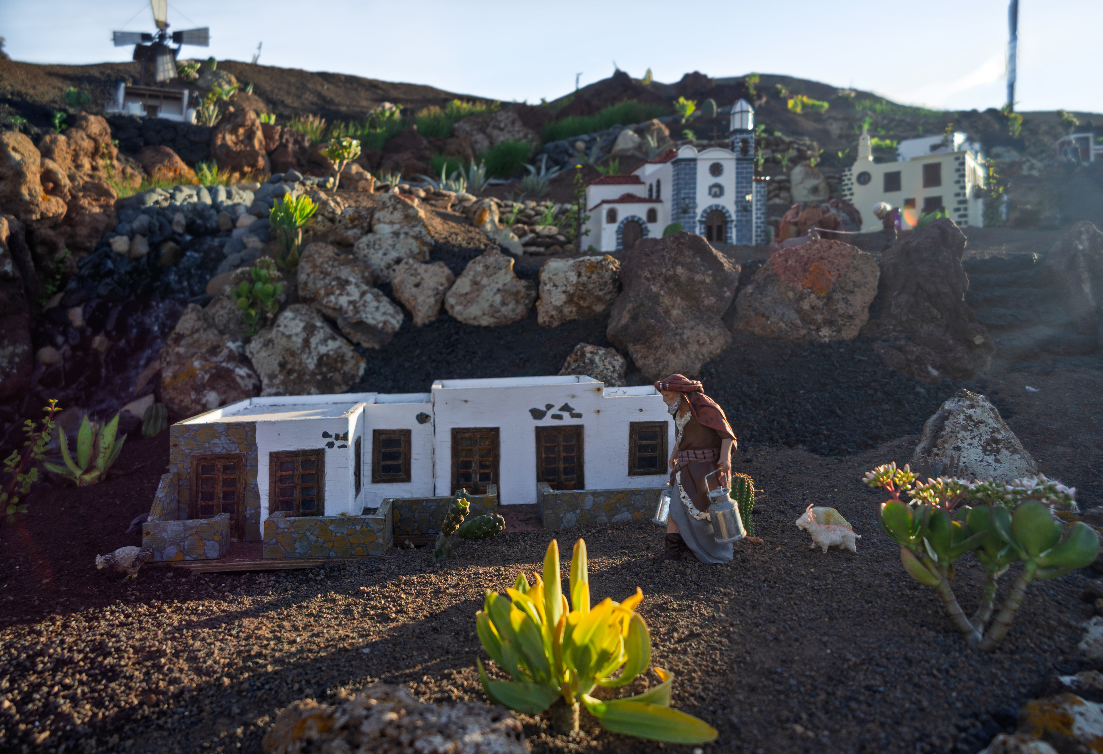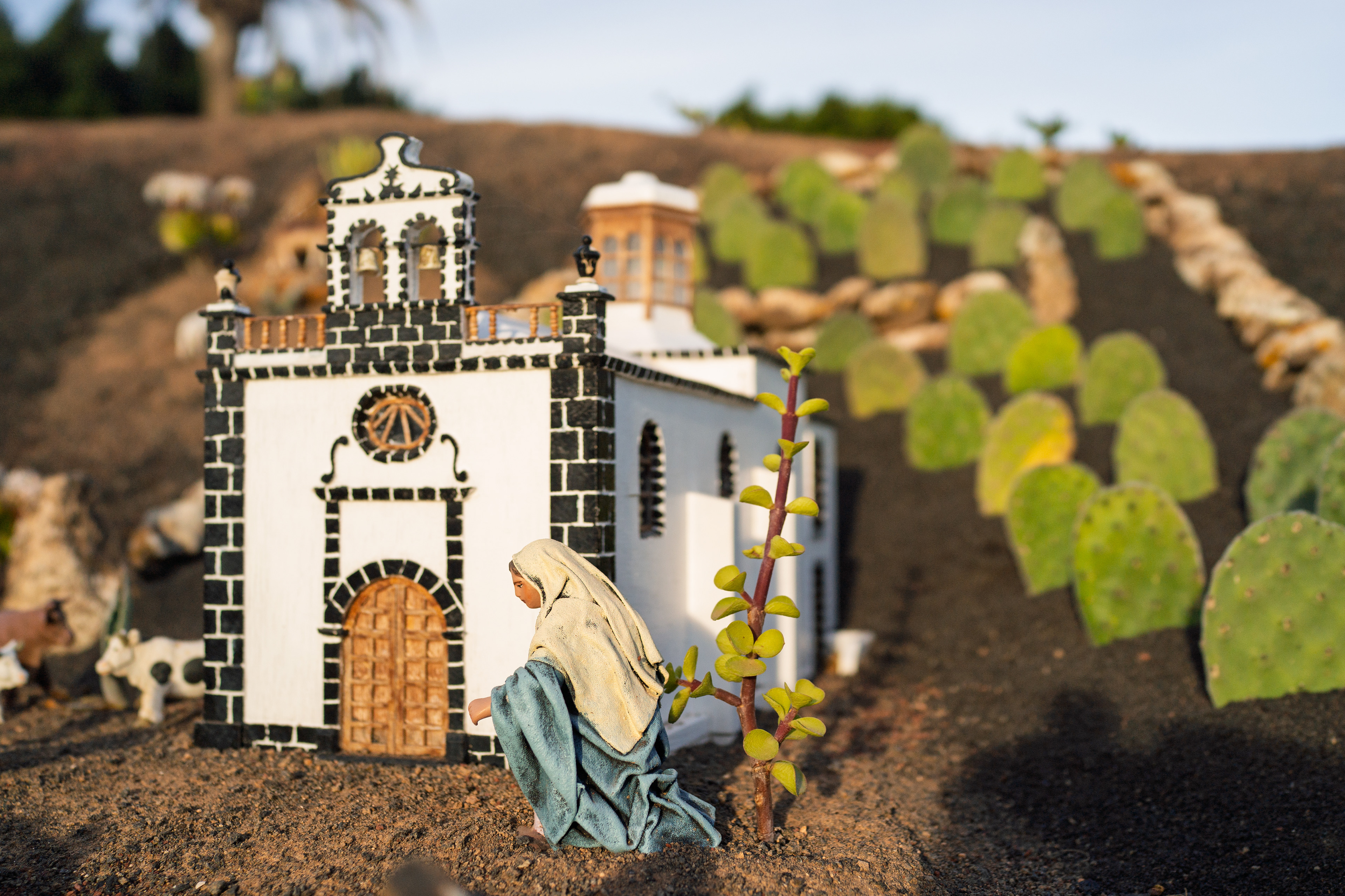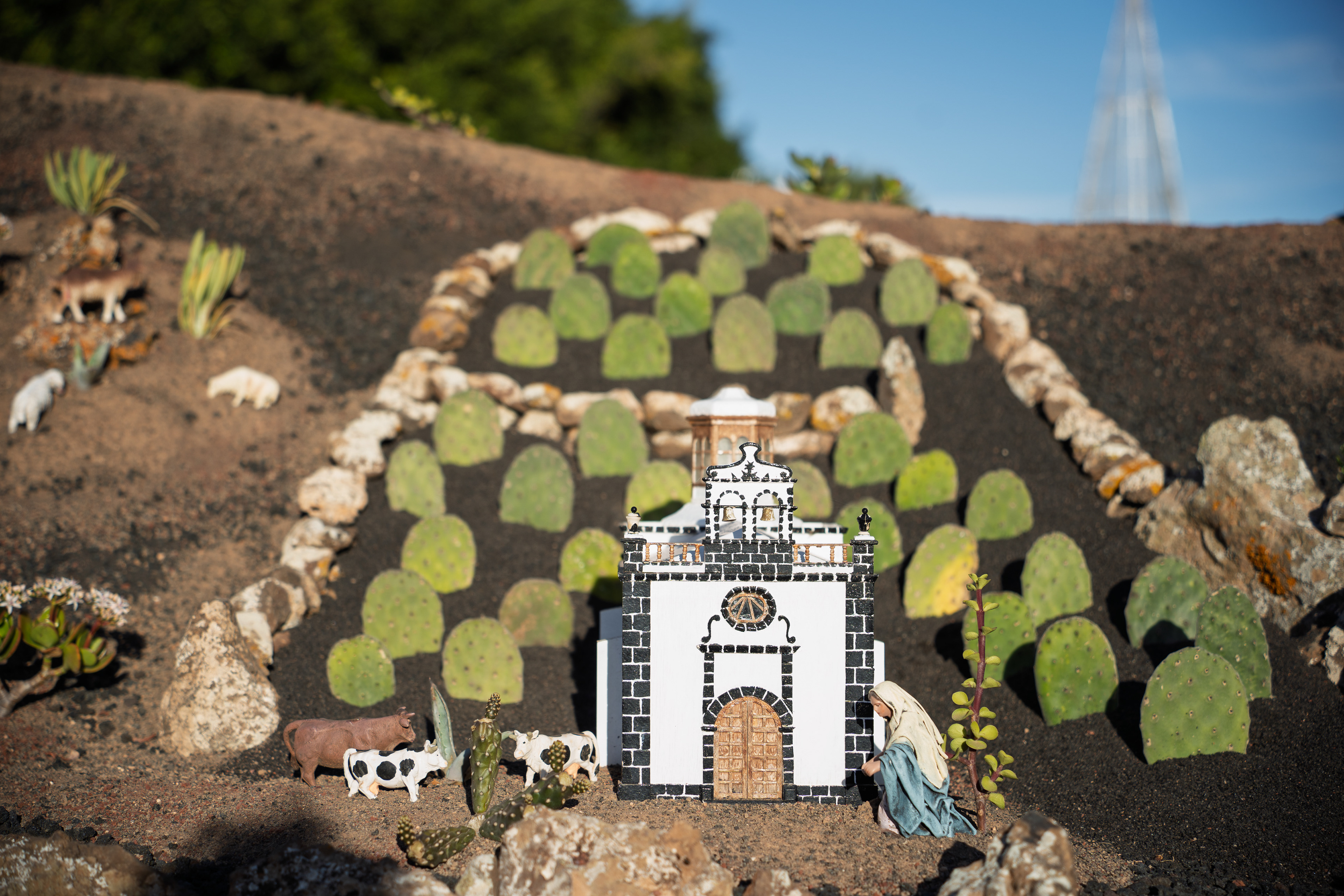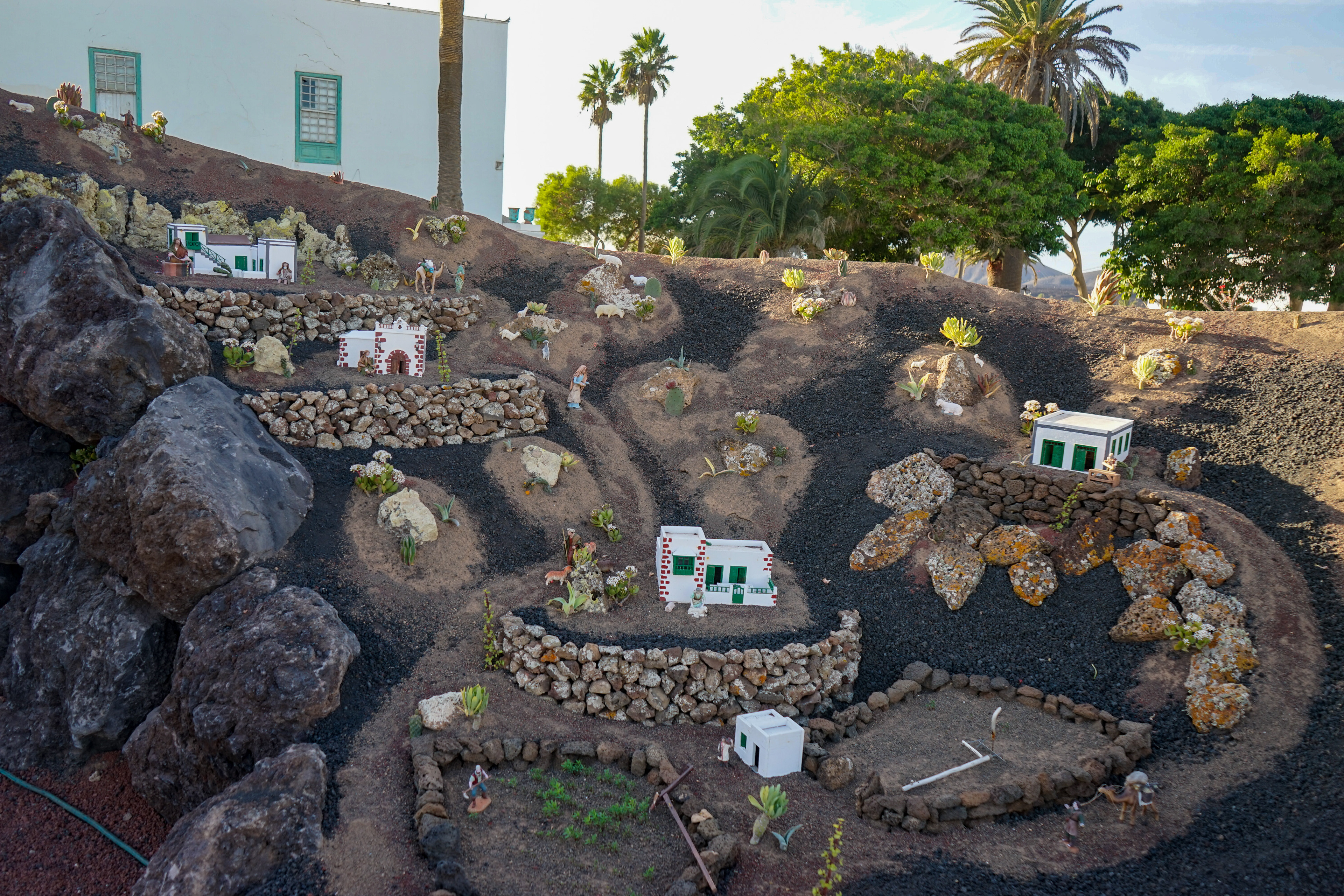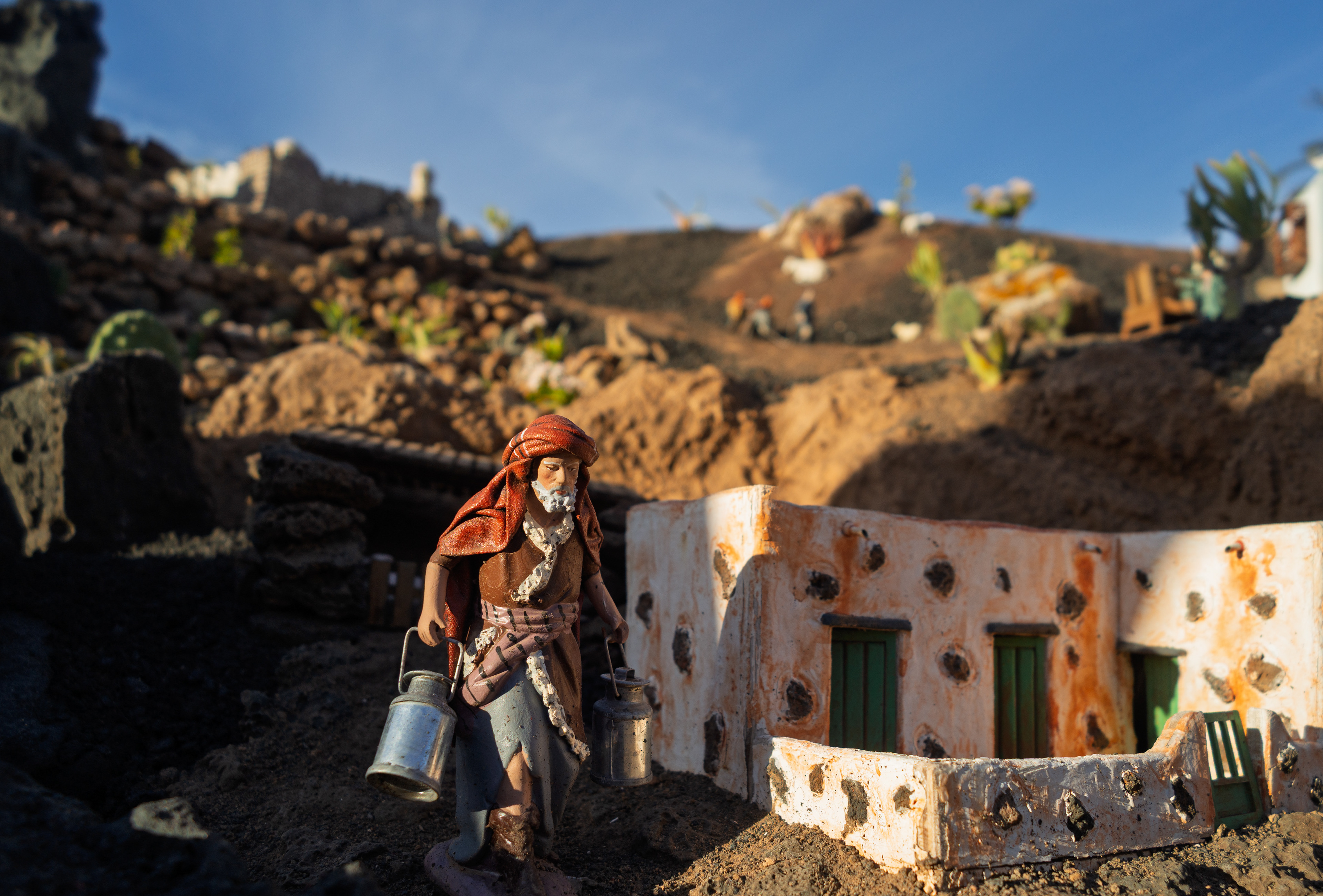 Yaiza’s natural nativity scene is anything but modest — it’s a sprawling, open‑air Christmas landscape that transforms the village square into a miniature world of its own. Built with volcanic stone, sand, water features, and lovingly crafted figures, the Belén stretches across a large outdoor space, inviting visitors to wander slowly around its detailed scenes. Traditional Canarian houses, shepherds, fishermen, and biblical tableaux blend seamlessly with Lanzarote’s rugged terrain, creating a display that feels both grand in scale and deeply rooted in local identity. With the mountains rising behind it and the soft winter light settling over the village, Yaiza’s Belén becomes a festive landmark — a place where craftsmanship, storytelling, and island heritage come together in a spectacular seasonal tradition.