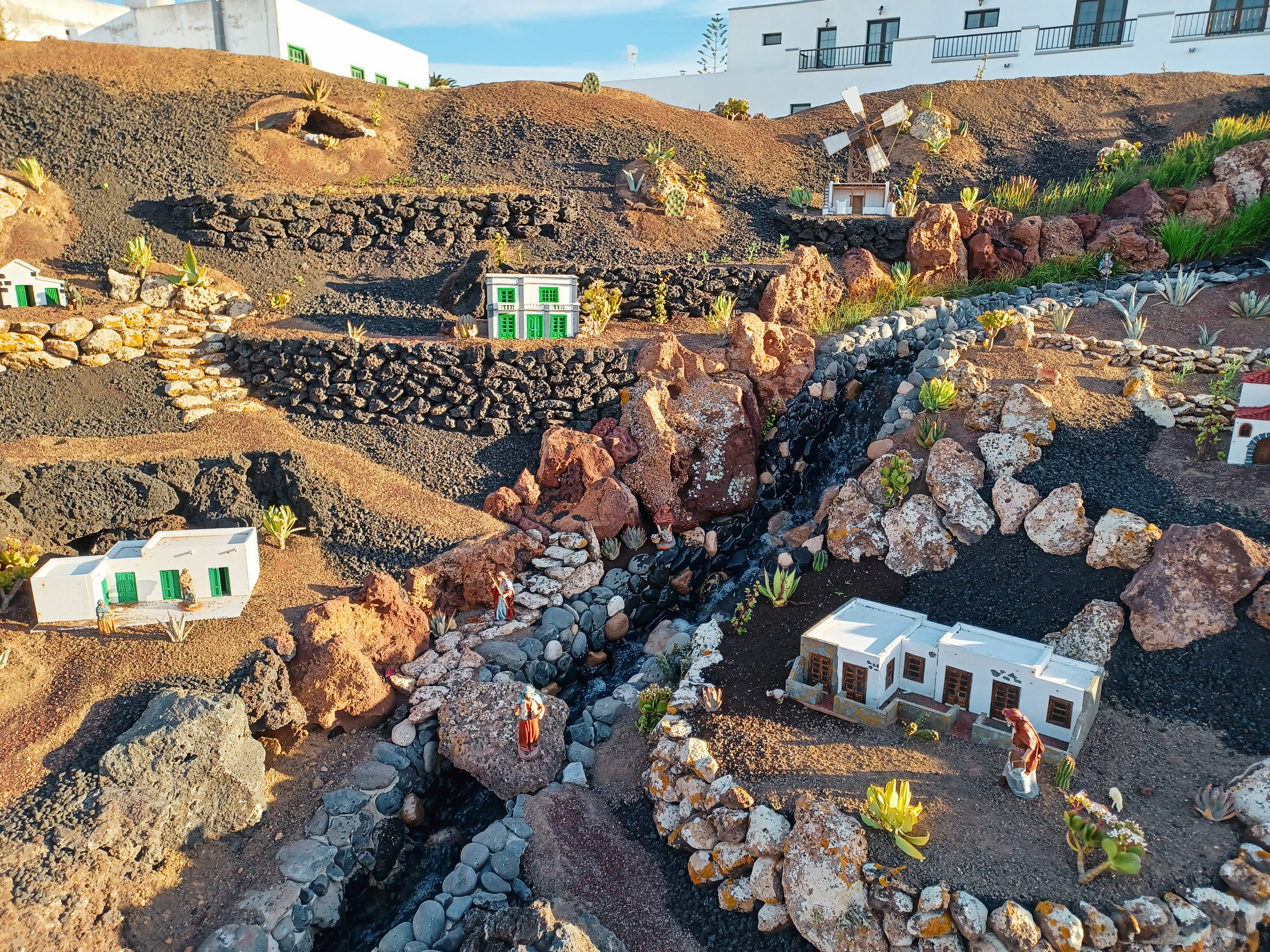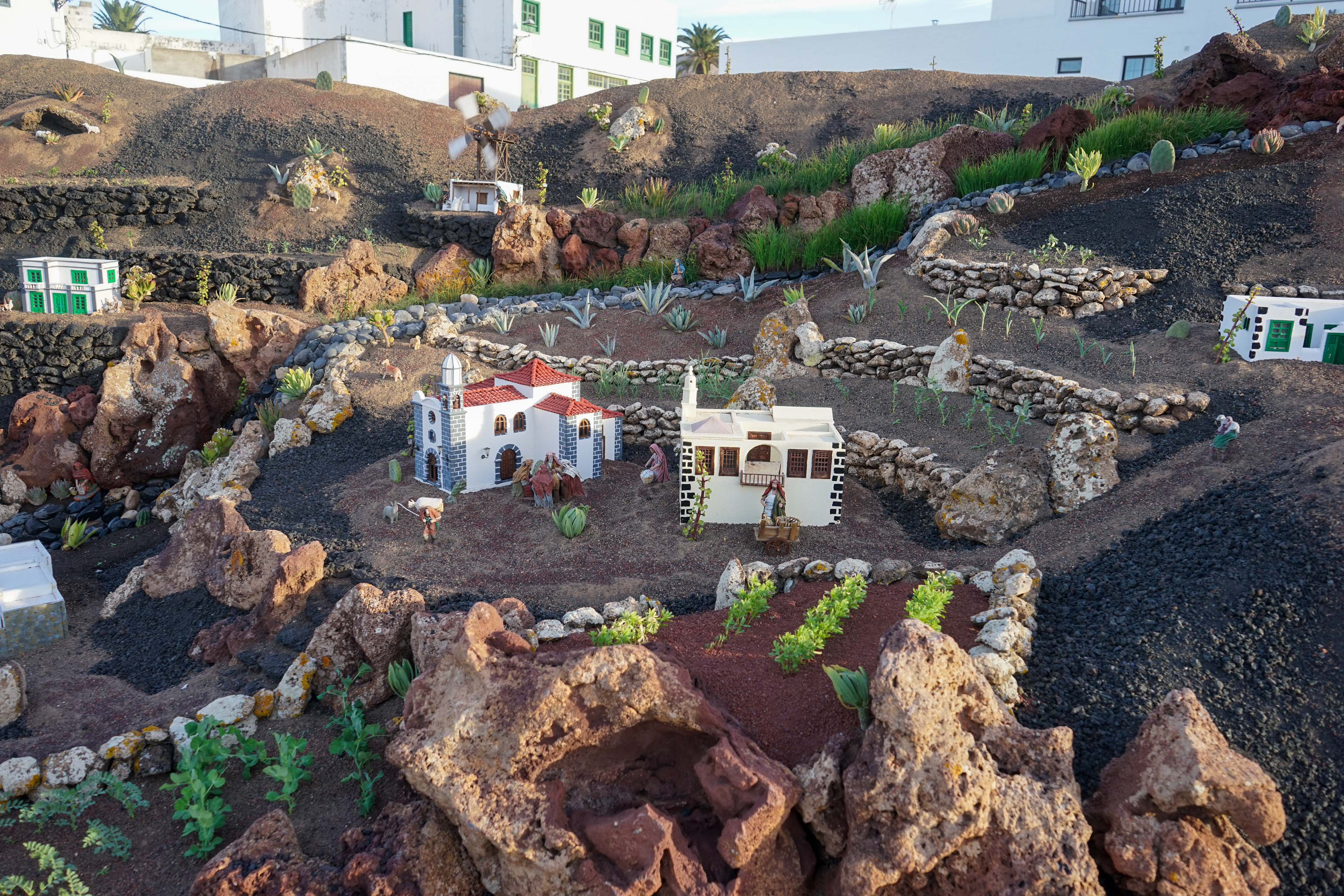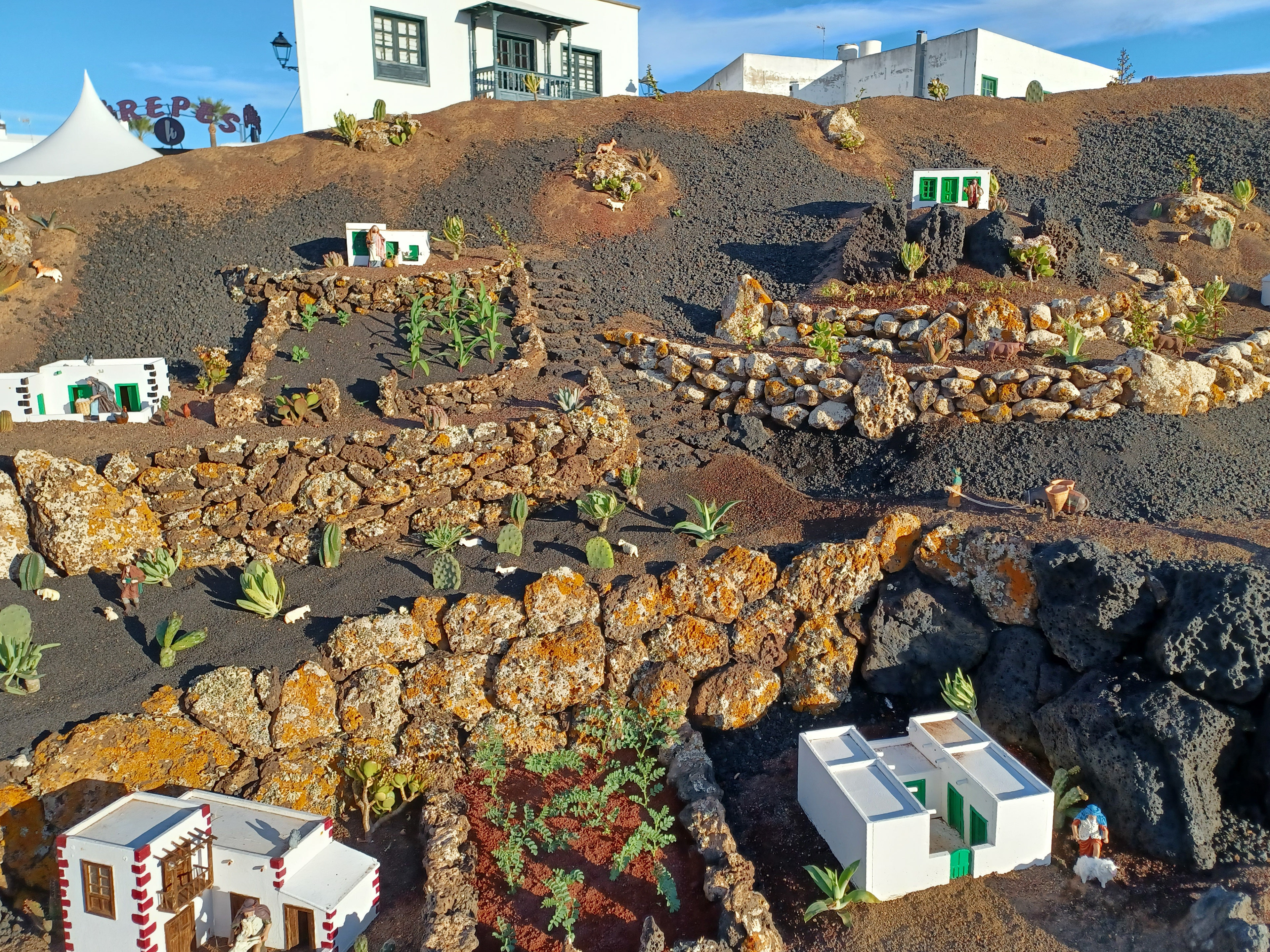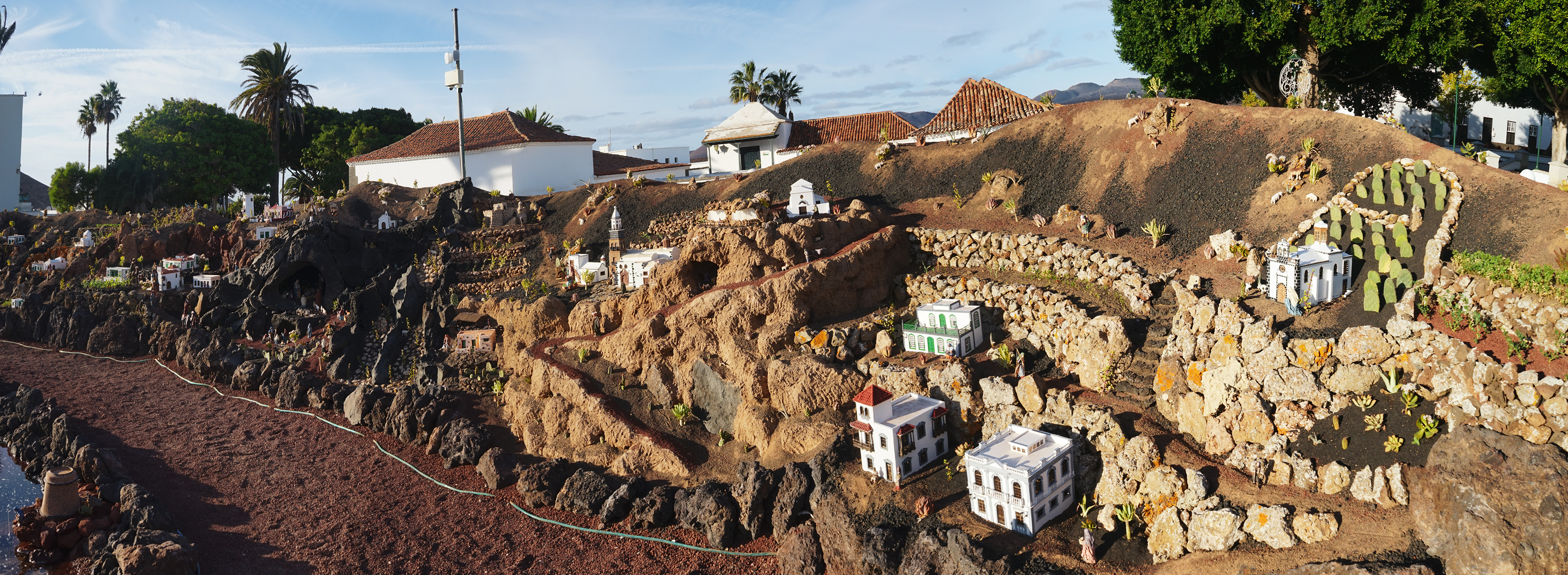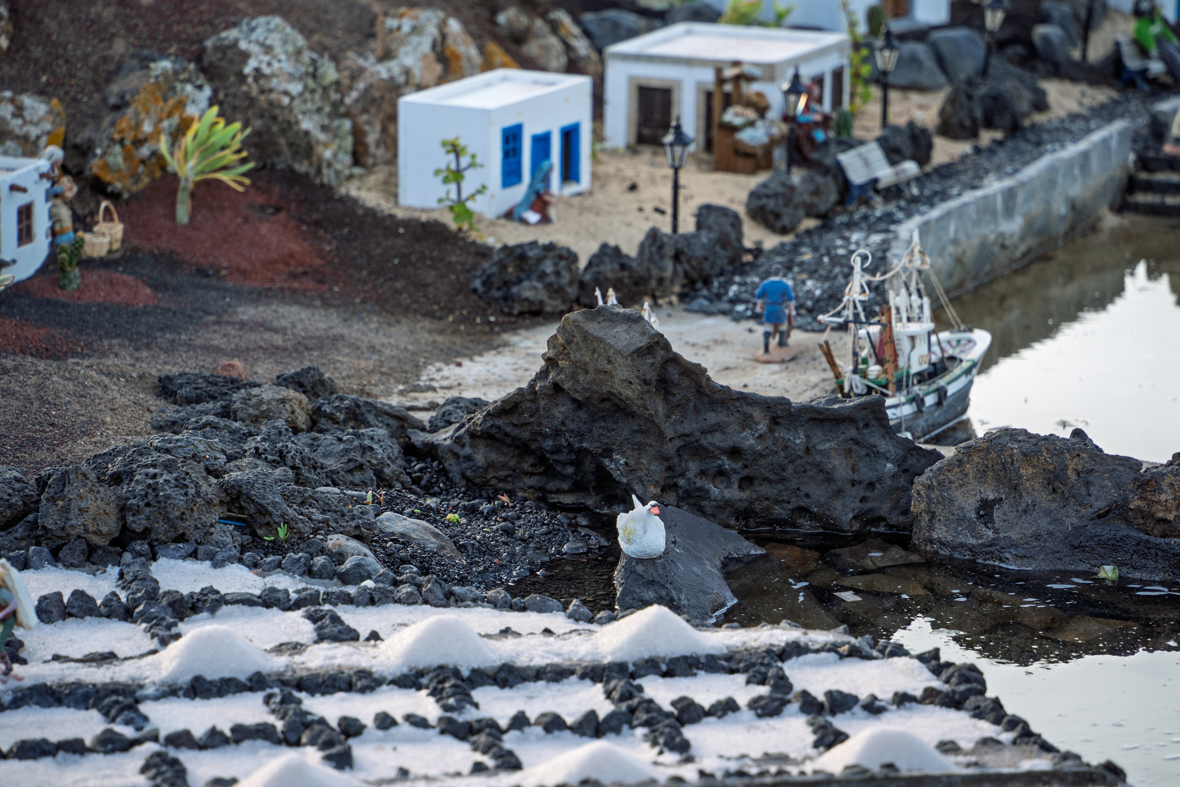 Yaiza’s natural nativity scene is anything but modest — it’s a sprawling, open‑air Christmas landscape that transforms the village square into a miniature world of its own. Built with volcanic stone, sand, water features, and lovingly crafted figures, the Belén stretches across a large outdoor space, inviting visitors to wander slowly around its detailed scenes. Traditional Canarian houses, shepherds, fishermen, and biblical tableaux blend seamlessly with Lanzarote’s rugged terrain, creating a display that feels both grand in scale and deeply rooted in local identity. With the mountains rising behind it and the soft winter light settling over the village, Yaiza’s Belén becomes a festive landmark — a place where craftsmanship, storytelling, and island heritage come together in a spectacular seasonal tradition.