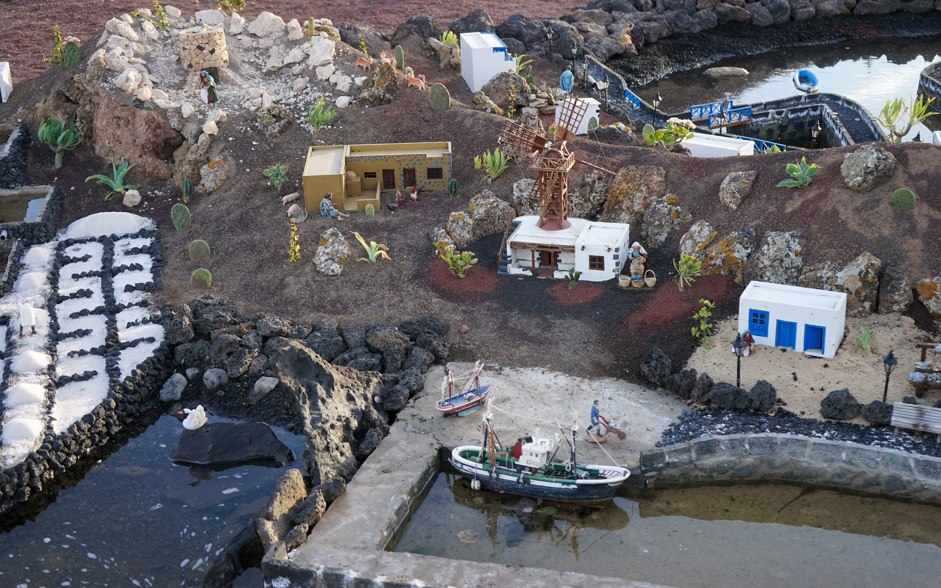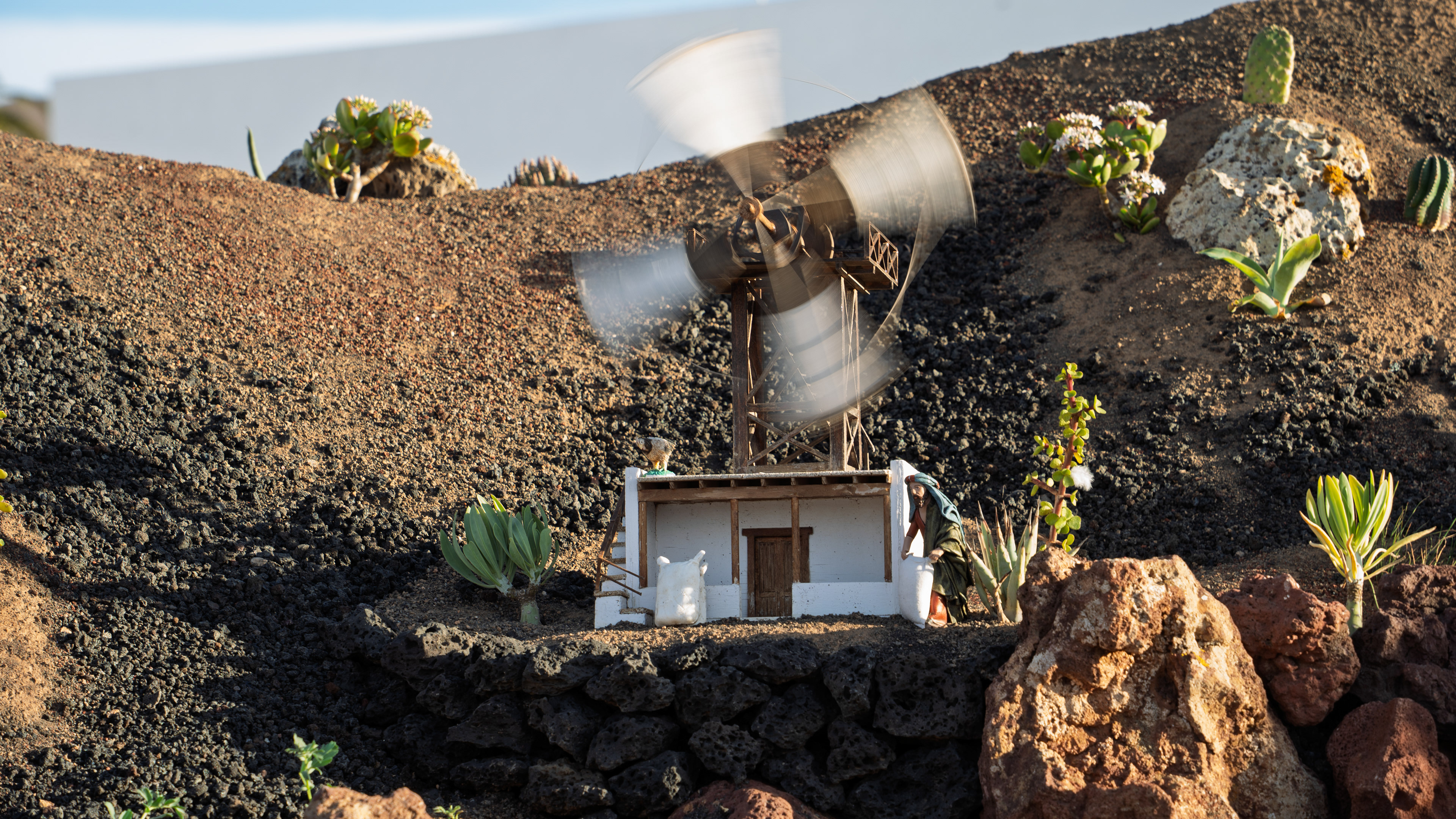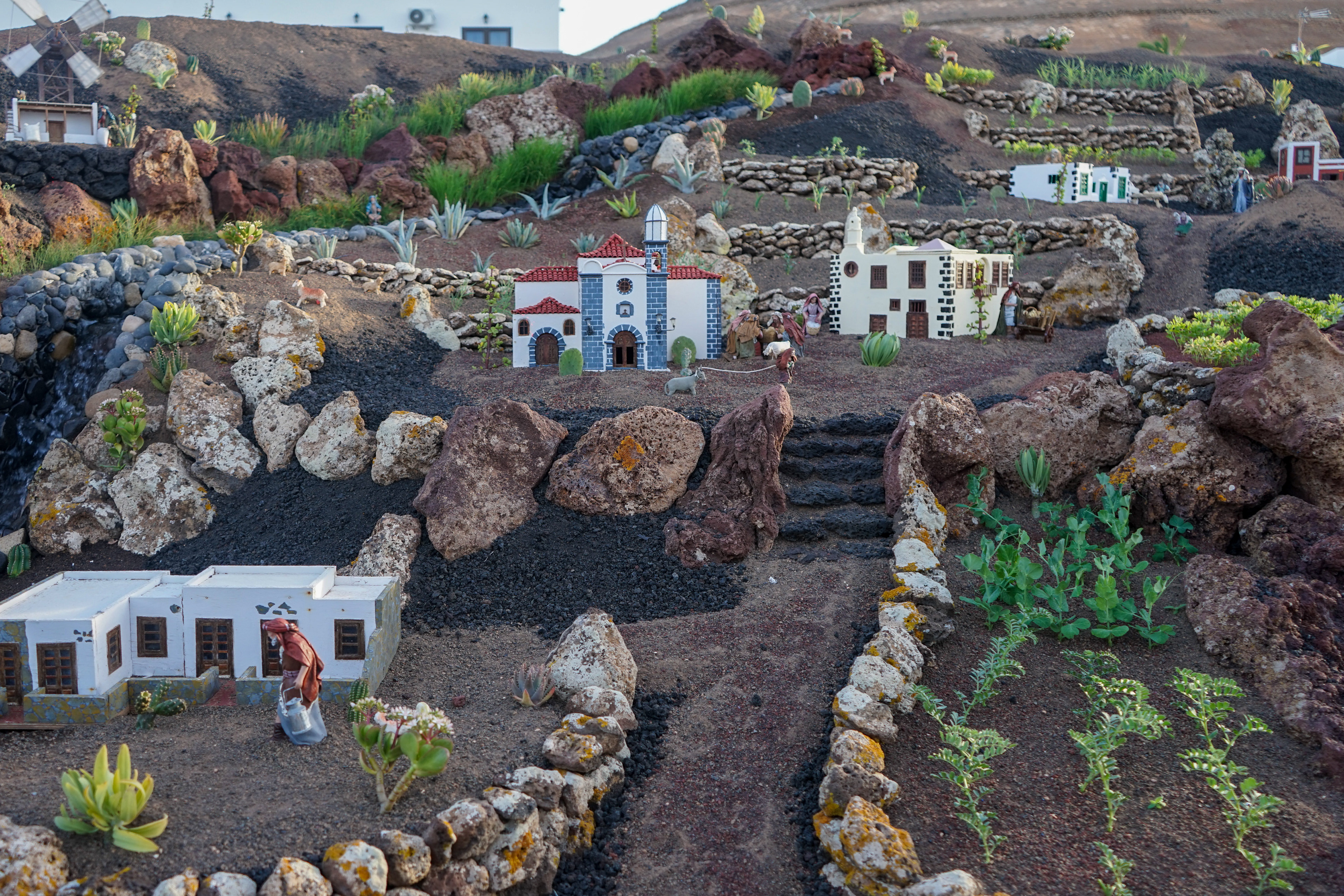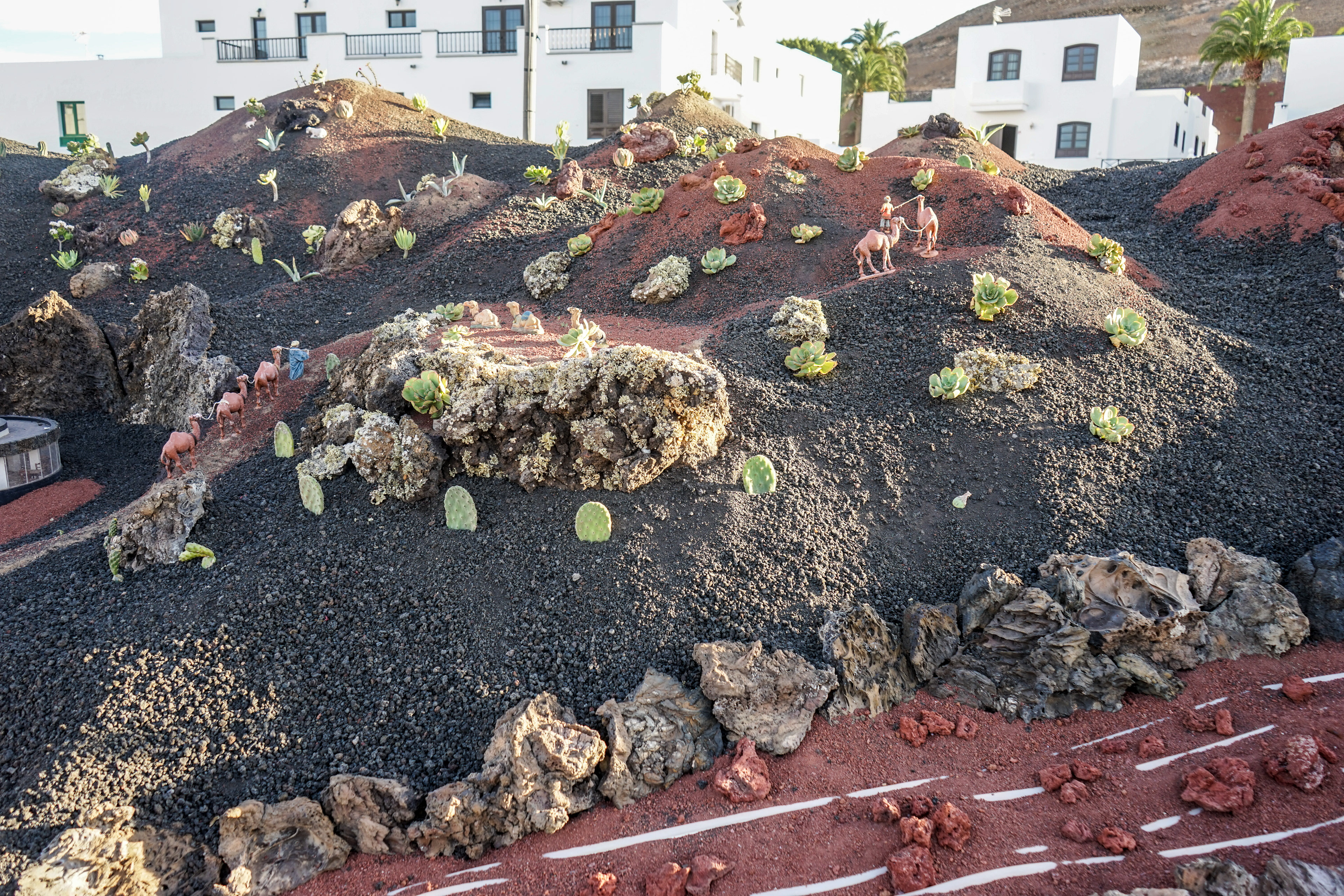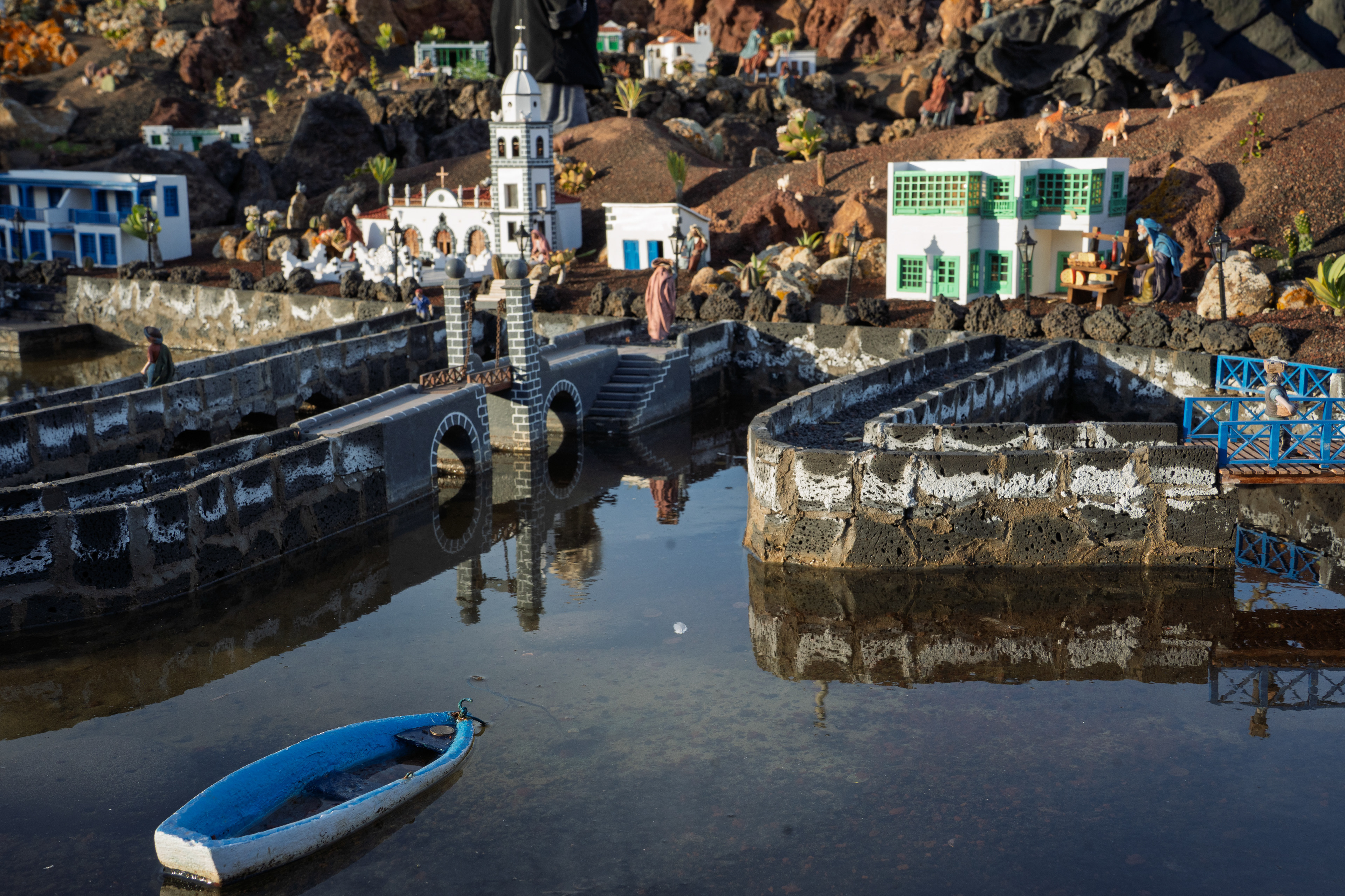 Yaiza’s natural nativity scene is anything but modest — it’s a sprawling, open‑air Christmas landscape that transforms the village square into a miniature world of its own. Built with volcanic stone, sand, water features, and lovingly crafted figures, the Belén stretches across a large outdoor space, inviting visitors to wander slowly around its detailed scenes. Traditional Canarian houses, shepherds, fishermen, and biblical tableaux blend seamlessly with Lanzarote’s rugged terrain, creating a display that feels both grand in scale and deeply rooted in local identity. With the mountains rising behind it and the soft winter light settling over the village, Yaiza’s Belén becomes a festive landmark — a place where craftsmanship, storytelling, and island heritage come together in a spectacular seasonal tradition.