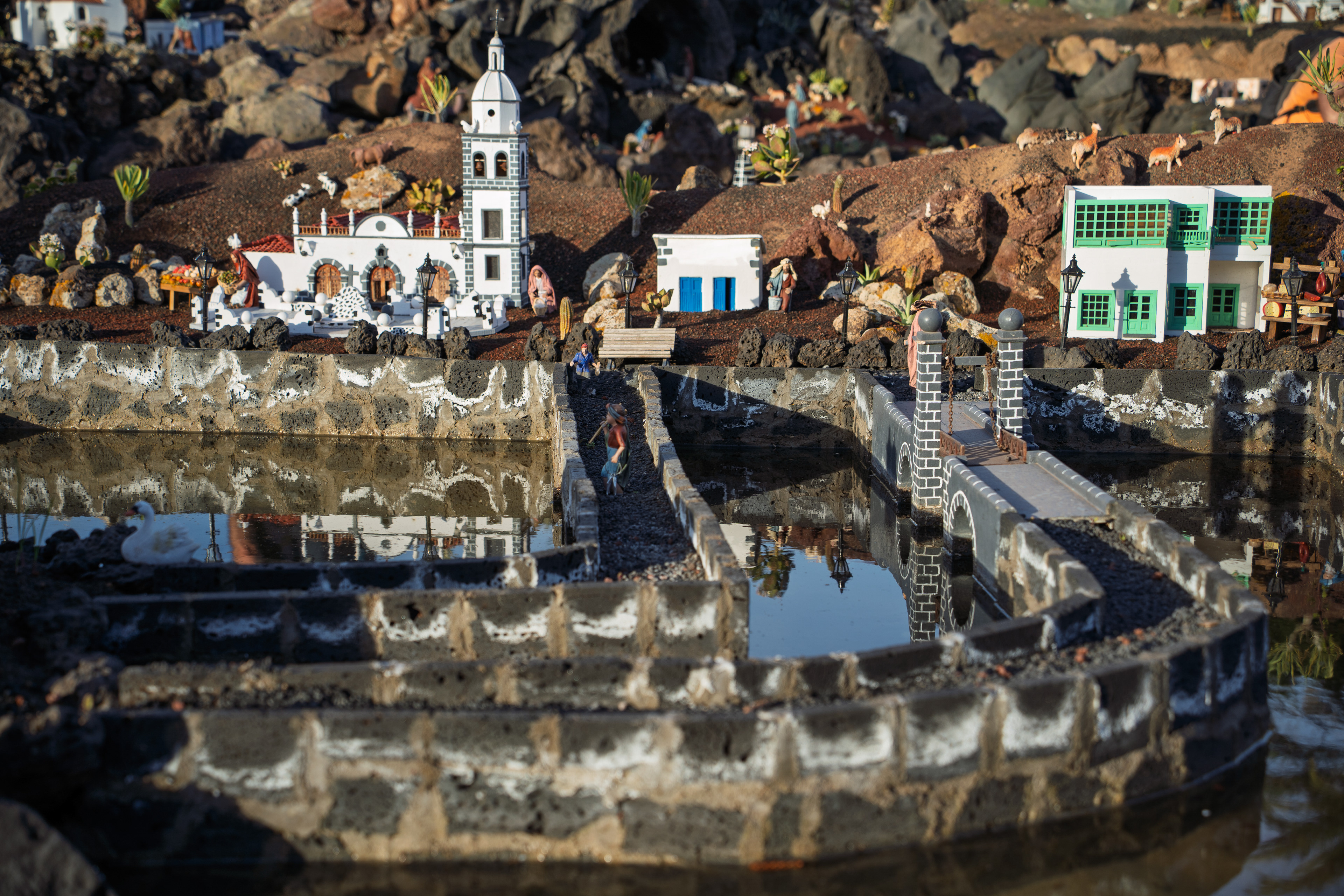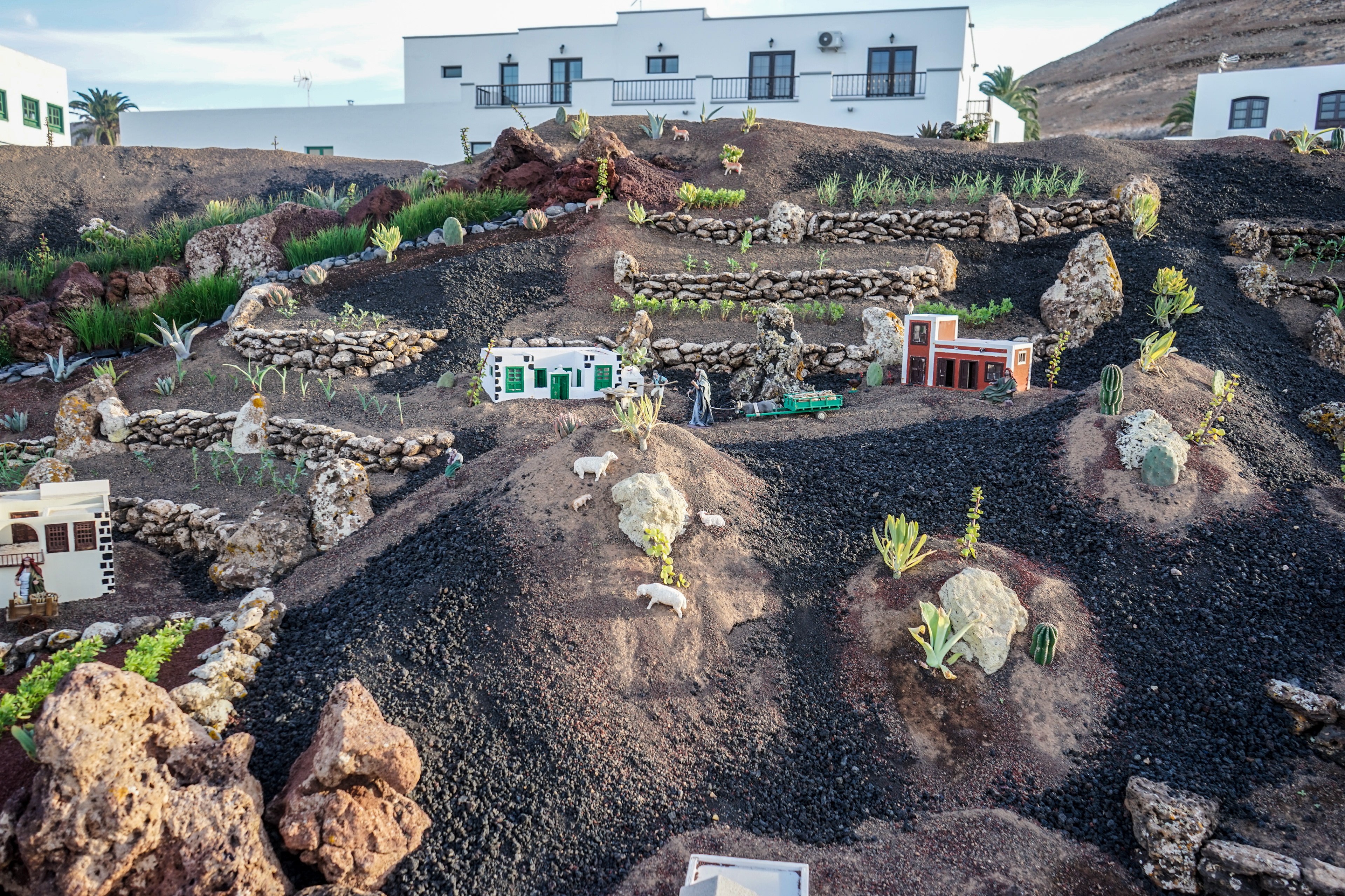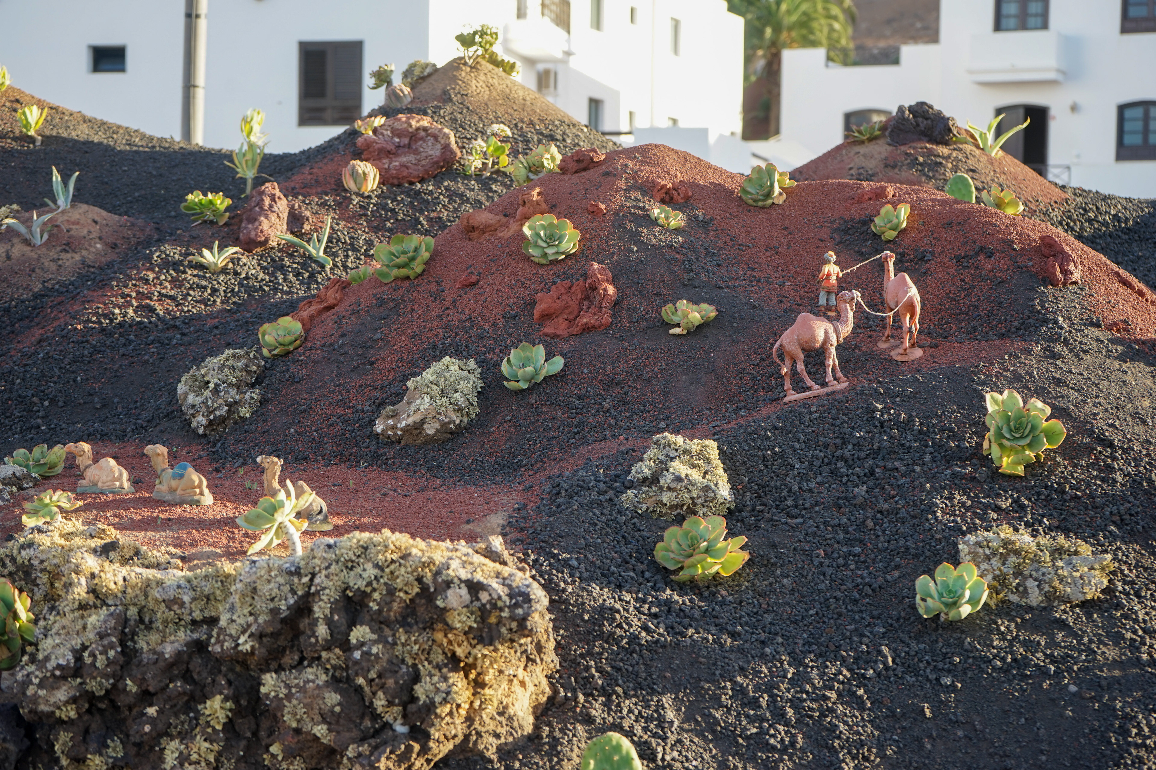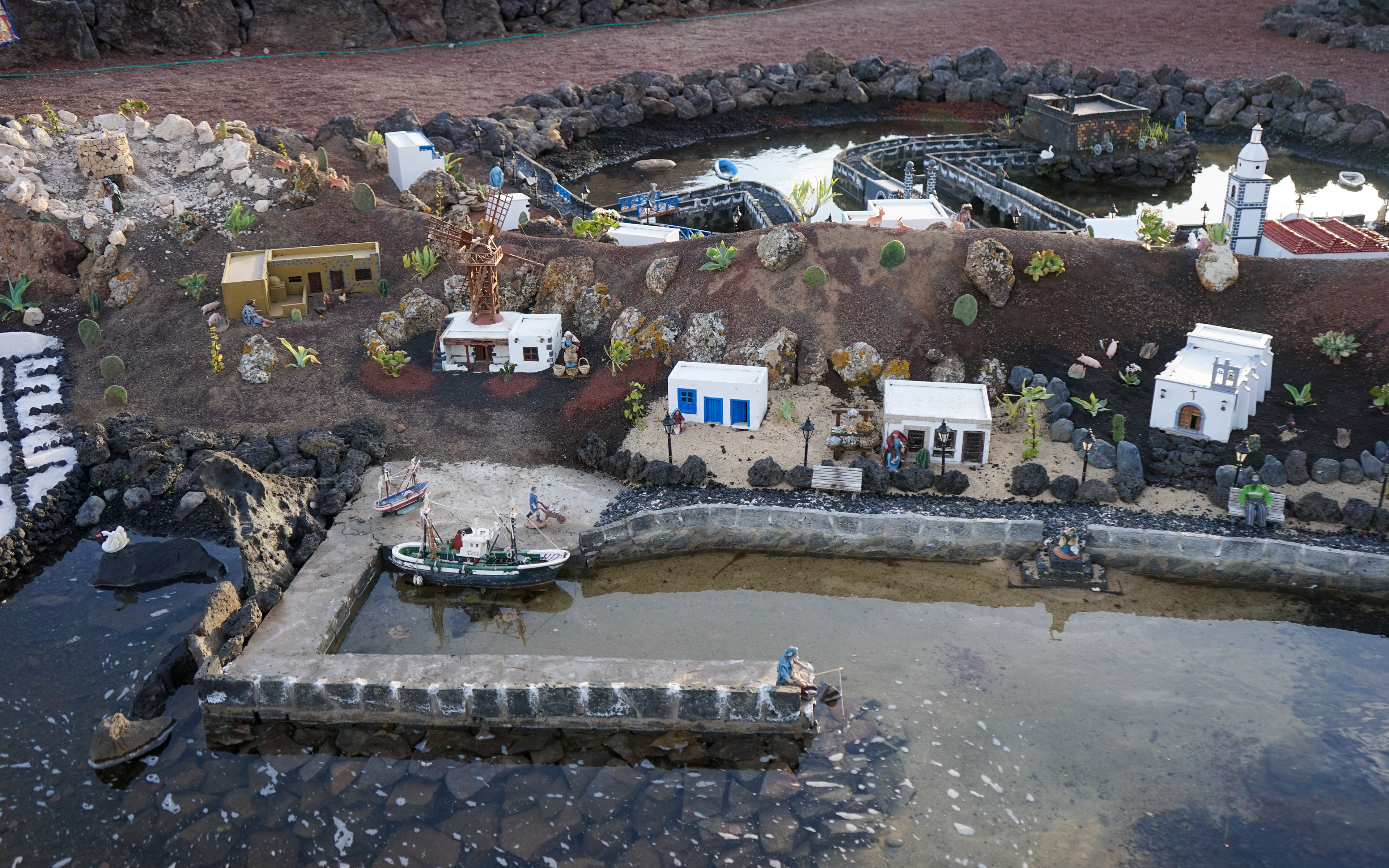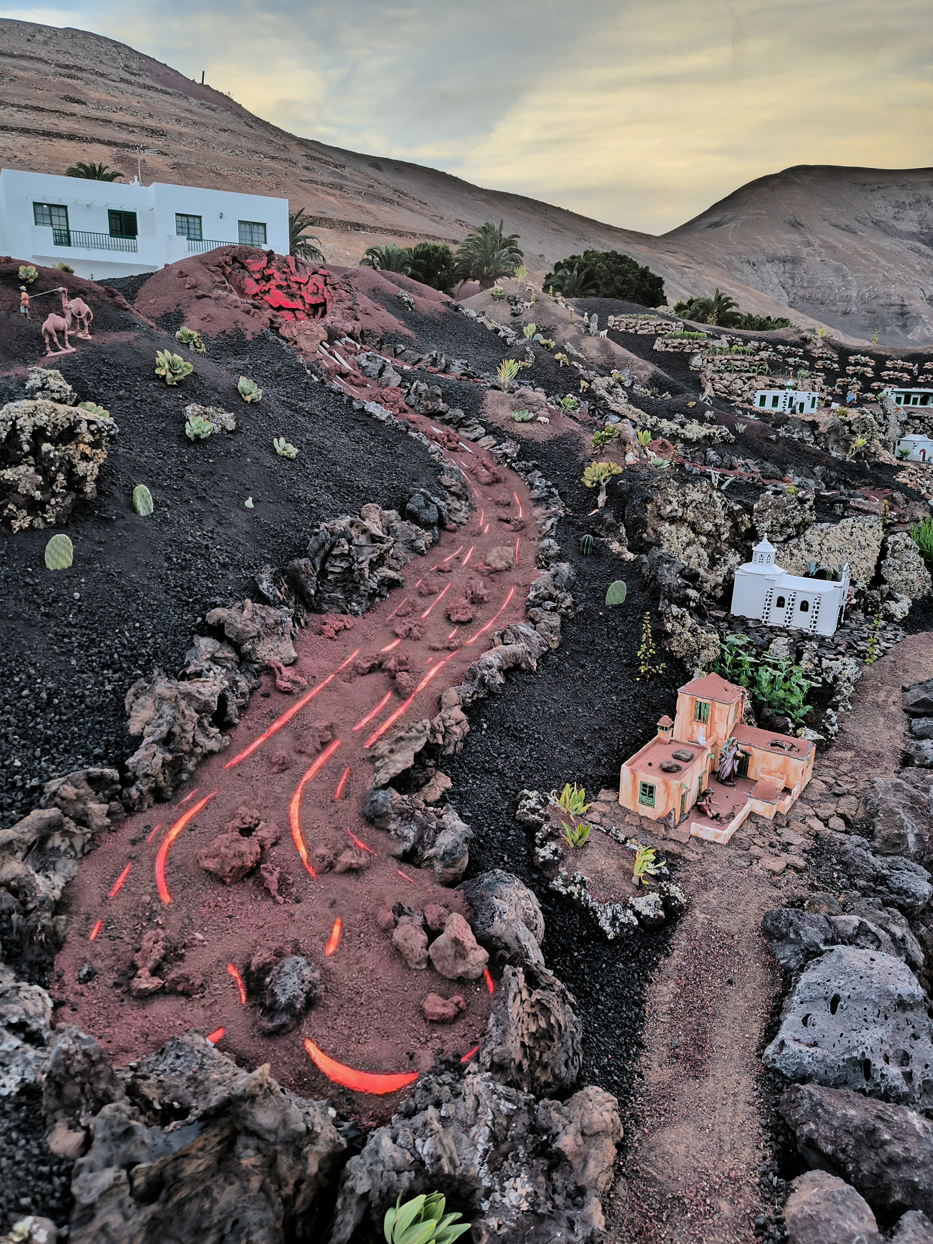 Yaiza’s natural nativity scene is anything but modest — it’s a sprawling, open‑air Christmas landscape that transforms the village square into a miniature world of its own. Built with volcanic stone, sand, water features, and lovingly crafted figures, the Belén stretches across a large outdoor space, inviting visitors to wander slowly around its detailed scenes. Traditional Canarian houses, shepherds, fishermen, and biblical tableaux blend seamlessly with Lanzarote’s rugged terrain, creating a display that feels both grand in scale and deeply rooted in local identity. With the mountains rising behind it and the soft winter light settling over the village, Yaiza’s Belén becomes a festive landmark — a place where craftsmanship, storytelling, and island heritage come together in a spectacular seasonal tradition.