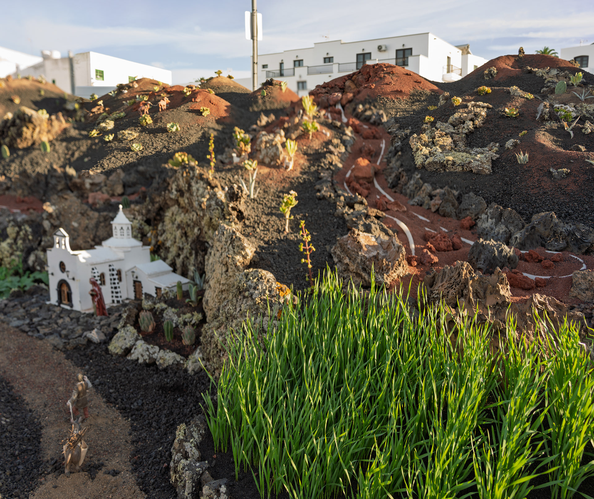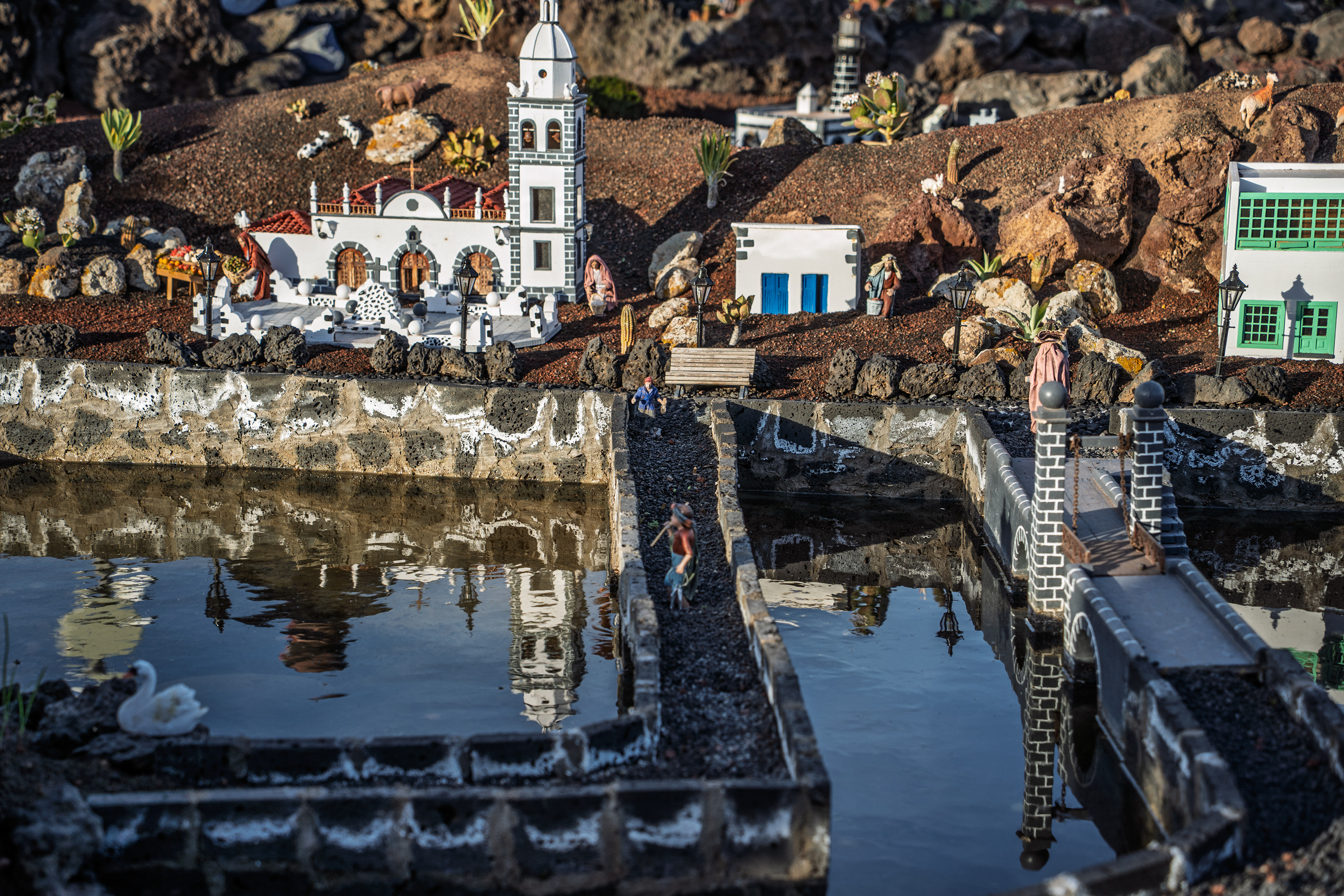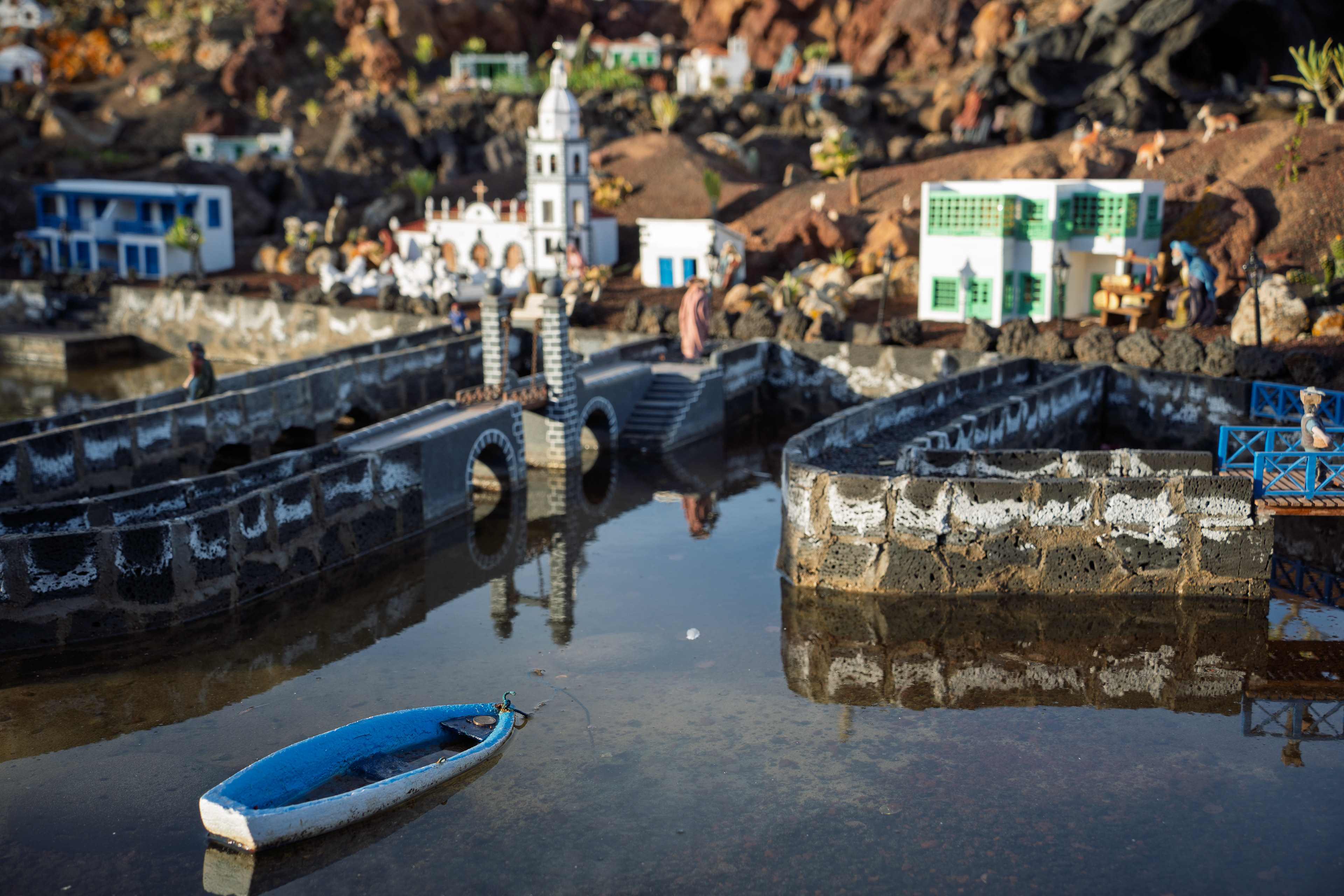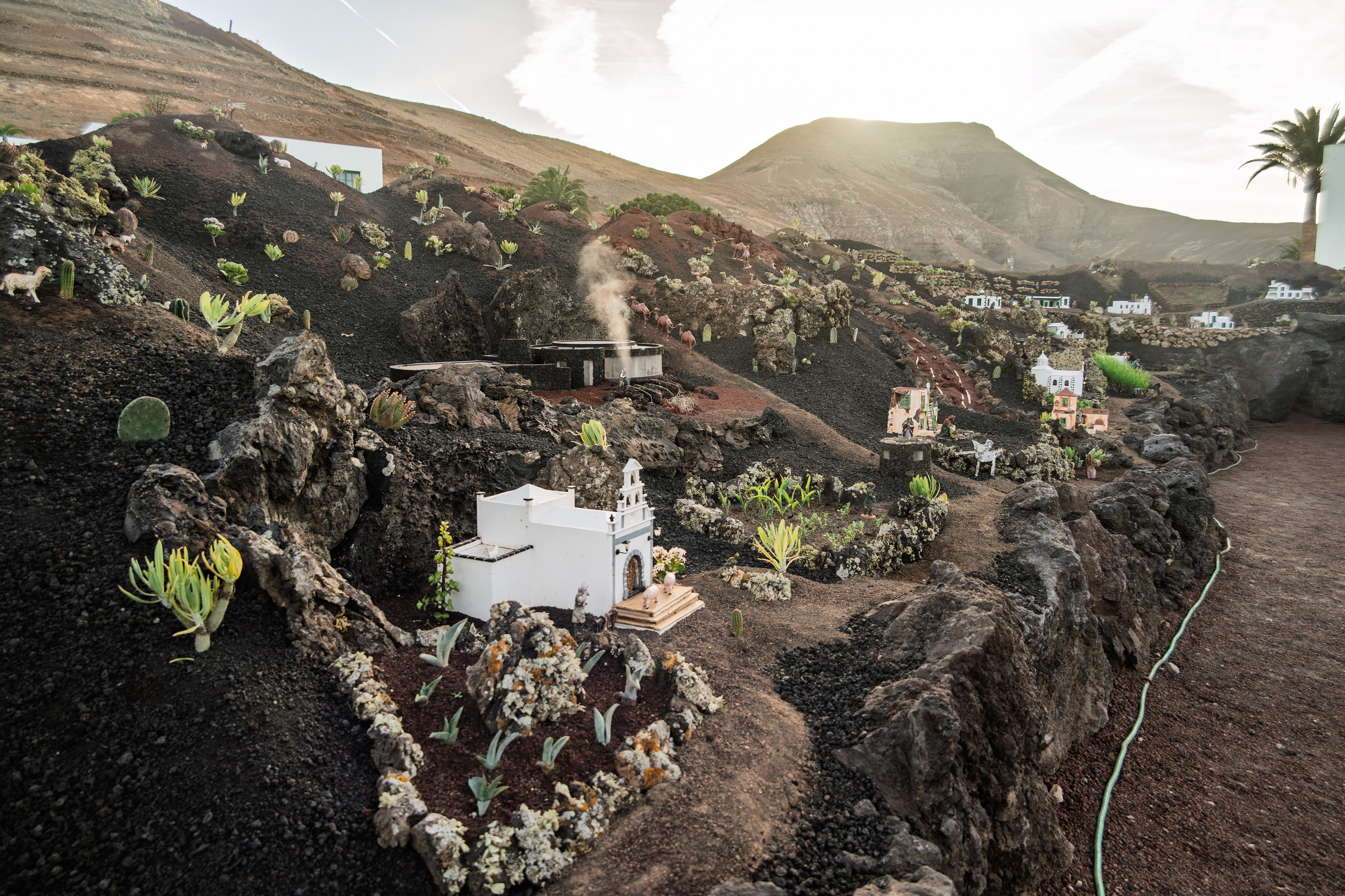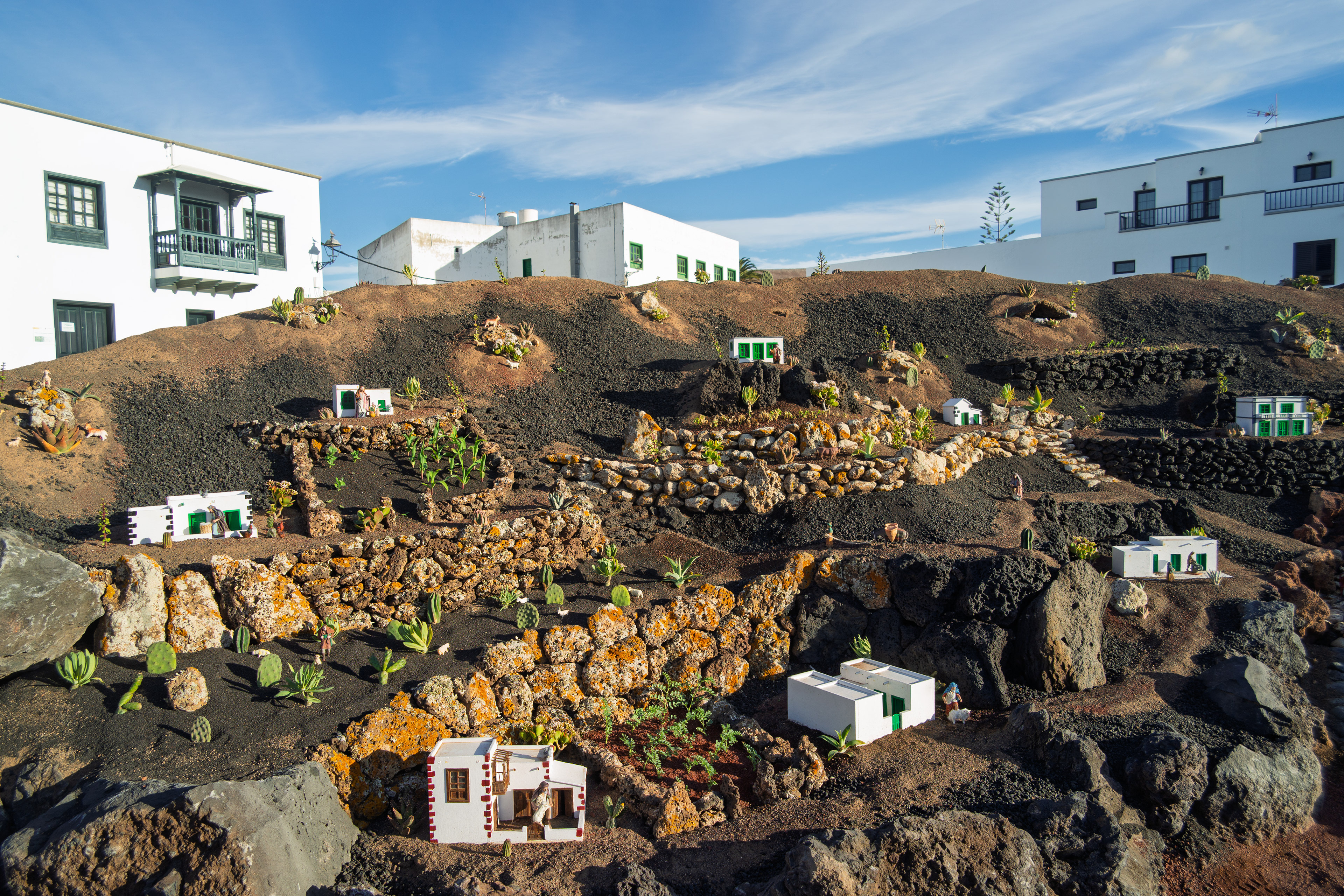 Yaiza’s natural nativity scene is anything but modest — it’s a sprawling, open‑air Christmas landscape that transforms the village square into a miniature world of its own. Built with volcanic stone, sand, water features, and lovingly crafted figures, the Belén stretches across a large outdoor space, inviting visitors to wander slowly around its detailed scenes. Traditional Canarian houses, shepherds, fishermen, and biblical tableaux blend seamlessly with Lanzarote’s rugged terrain, creating a display that feels both grand in scale and deeply rooted in local identity. With the mountains rising behind it and the soft winter light settling over the village, Yaiza’s Belén becomes a festive landmark — a place where craftsmanship, storytelling, and island heritage come together in a spectacular seasonal tradition.