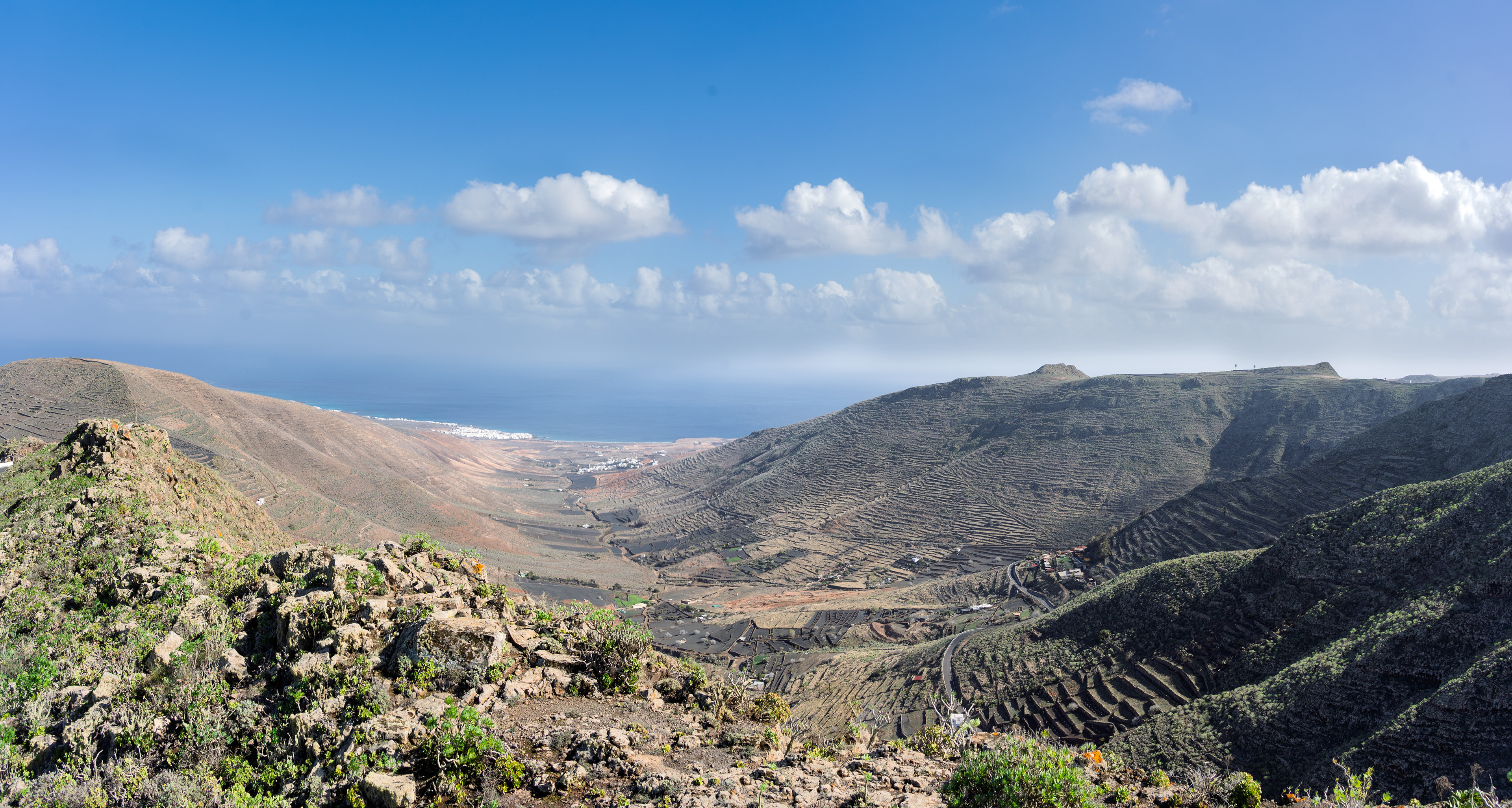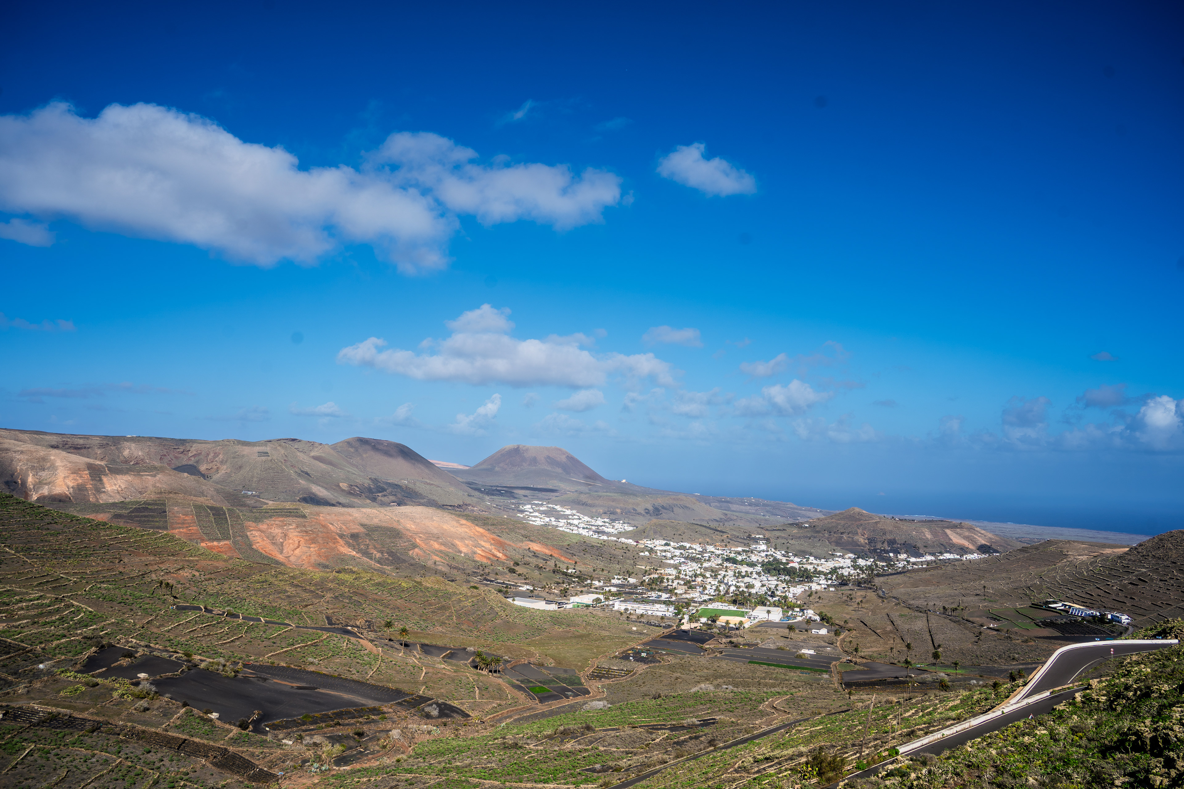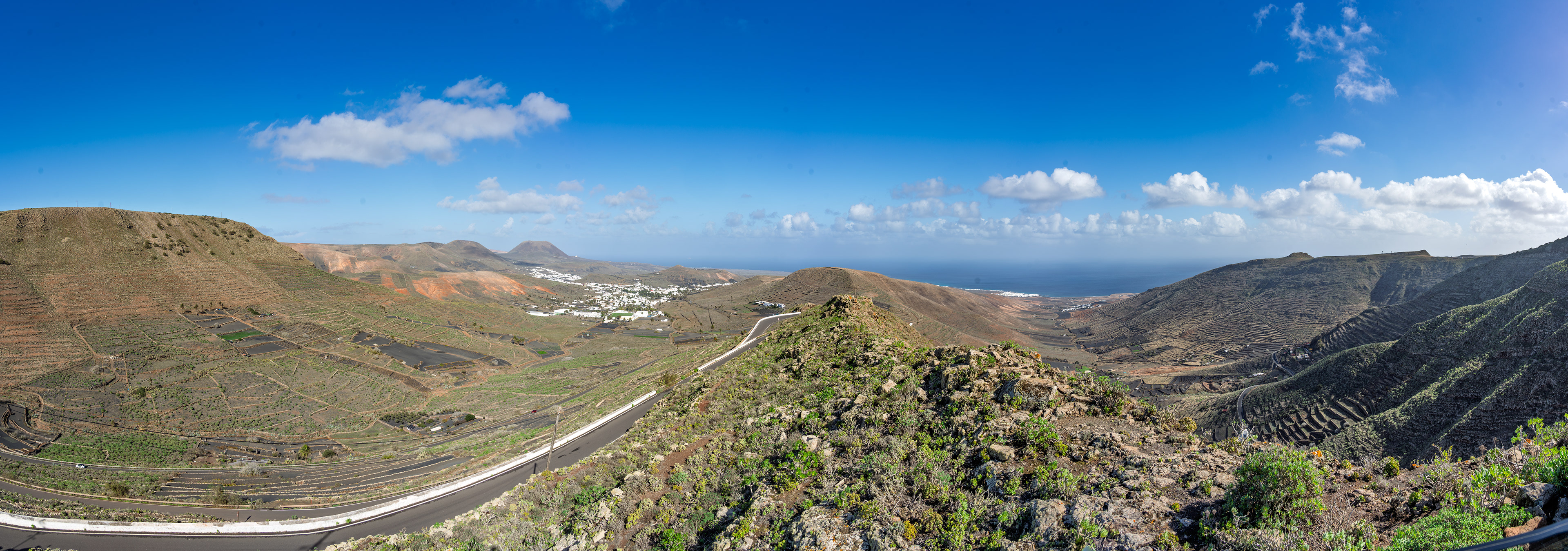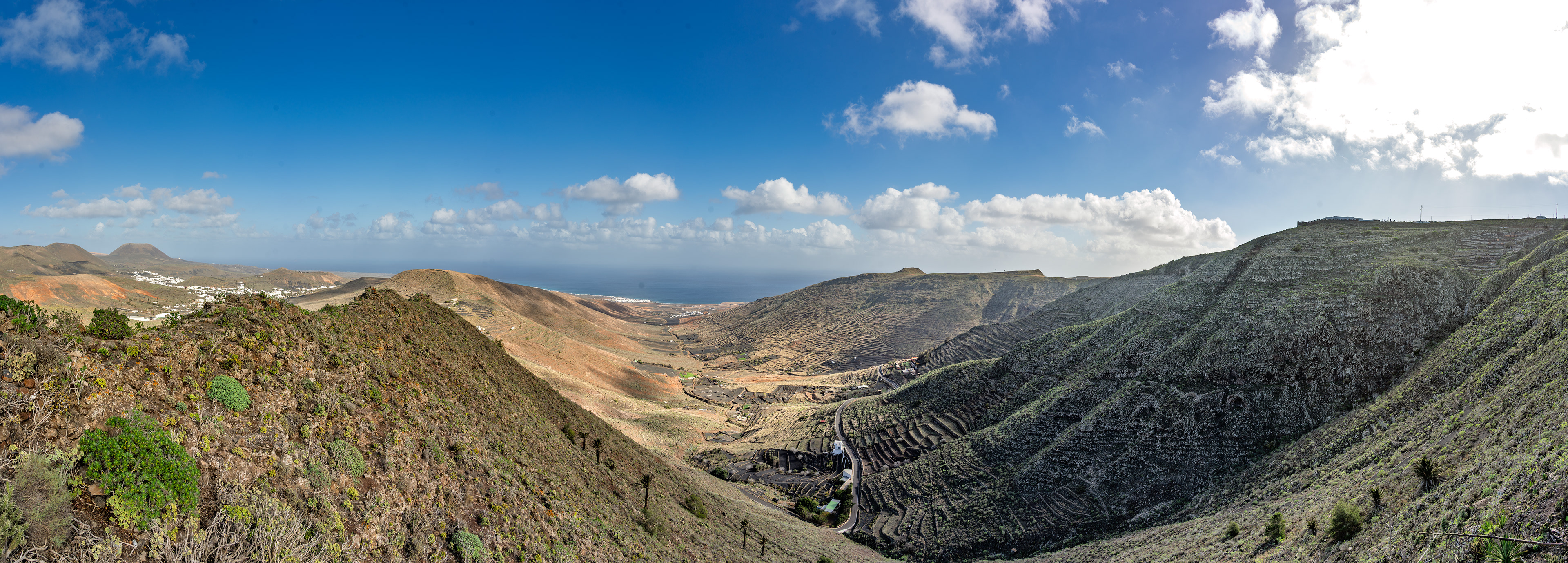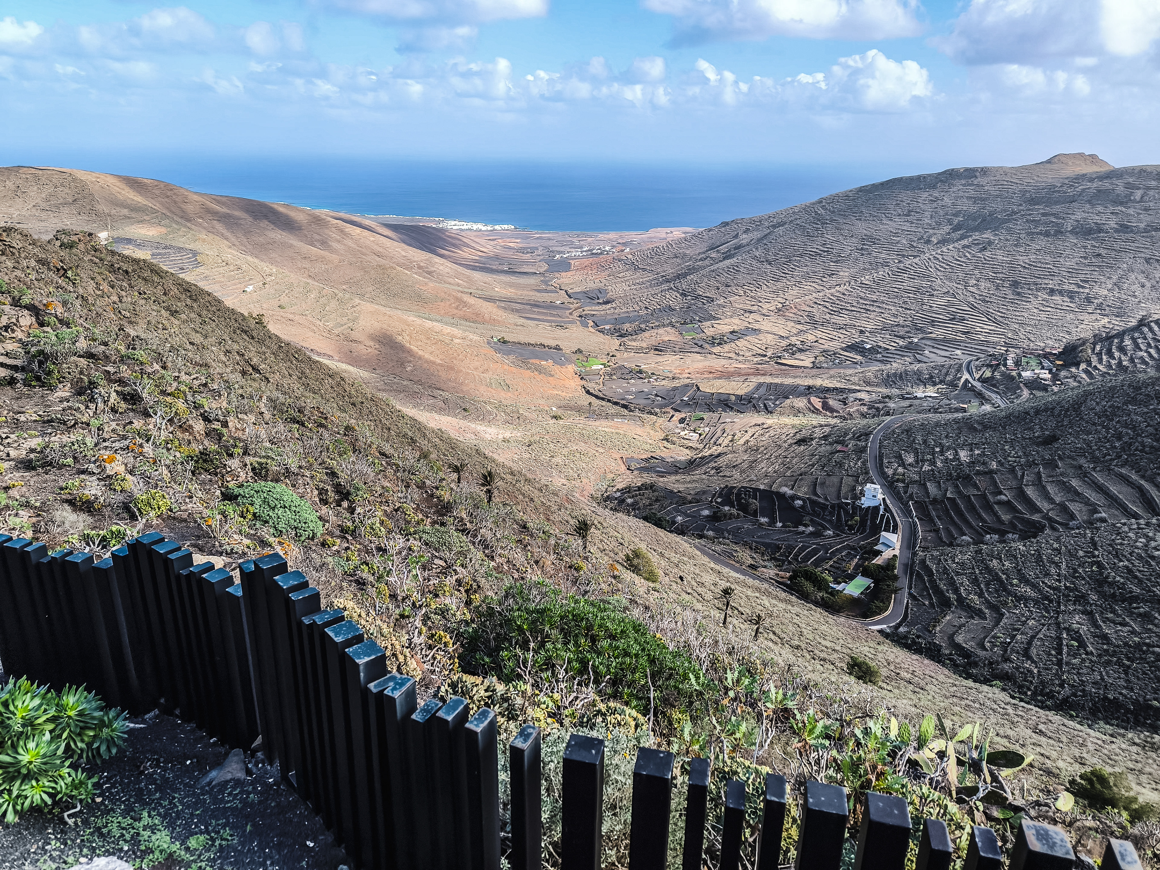 A visit to the Mirador del Haría feels like stepping into one of Lanzarote’s quietest, most breathtaking corners. Tucked into the serpentines above the valley, this small viewpoint opens suddenly onto a sweeping panorama of Haría’s palm‑filled bowl, the surrounding volcanic ridges, and the distant shimmer of the Atlantic. The wind carries a soft, high‑altitude hush, and the world below seems to slow down as you take in the contrast between deep green groves and dark lava slopes. It’s a simple spot — just a platform, a railing, a pause in the road — yet the view has a way of settling into your memory, the kind of place you stumble upon once and never forget.